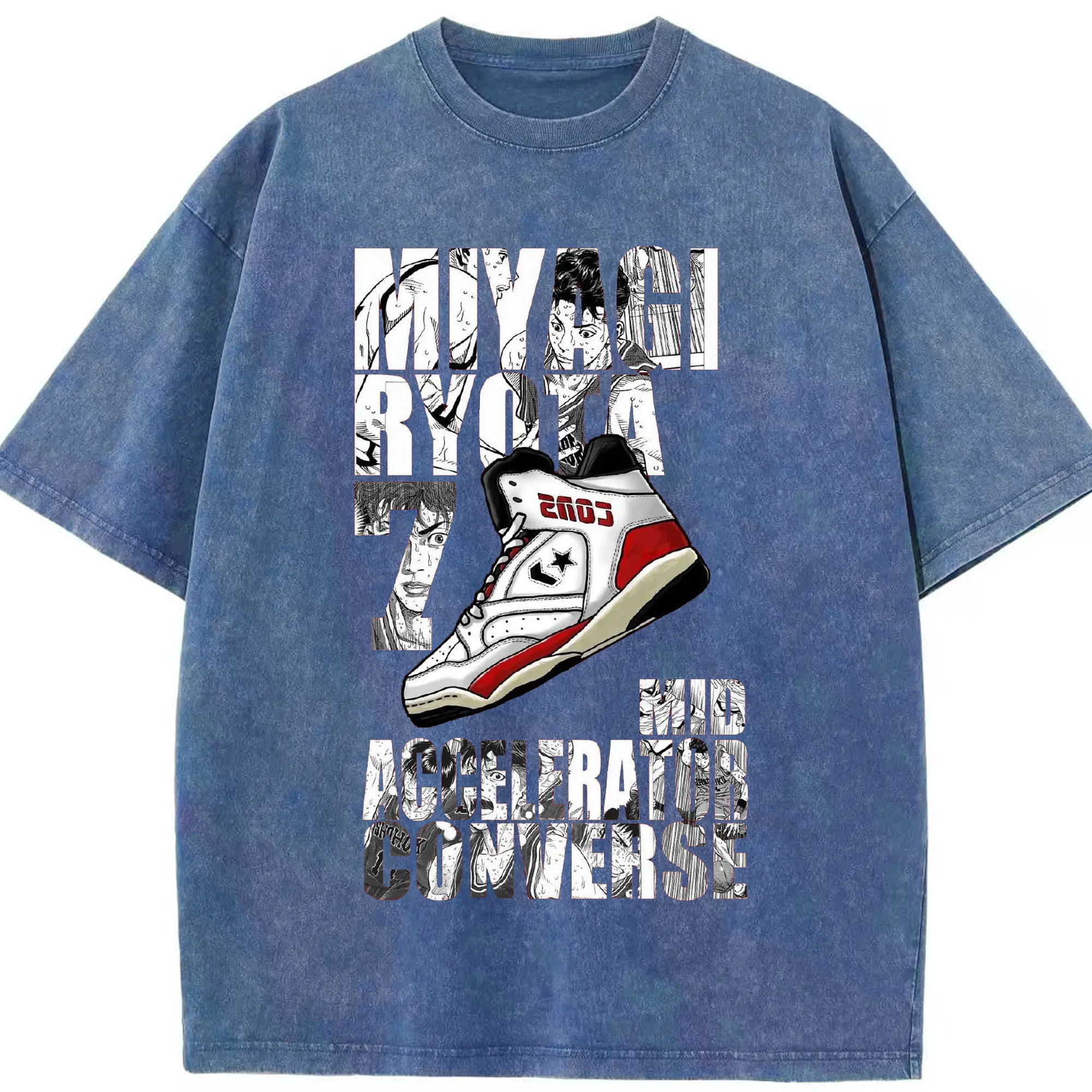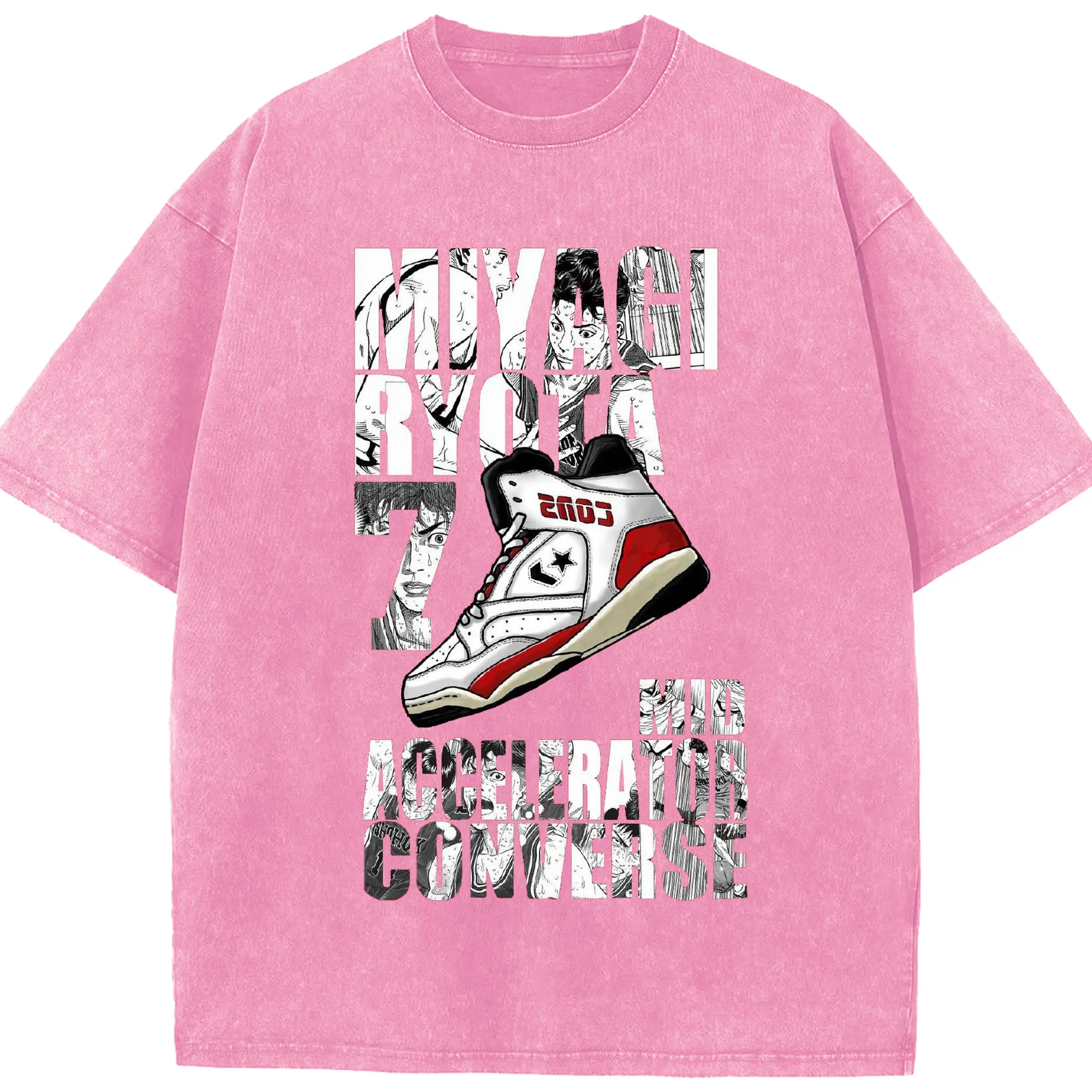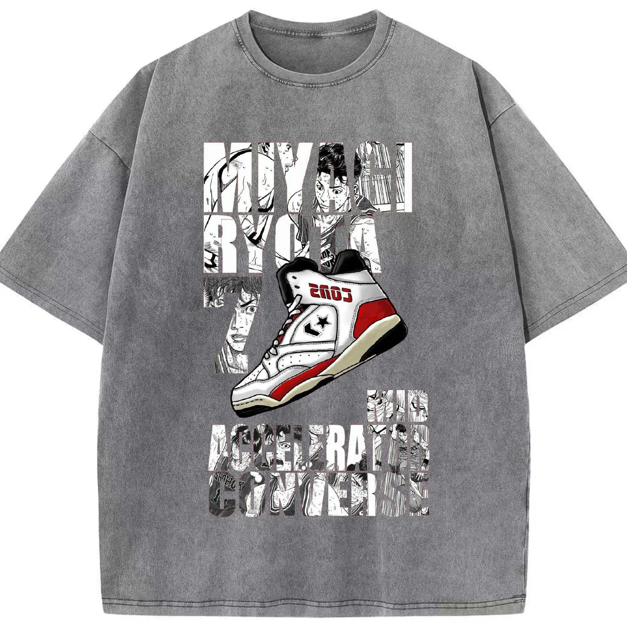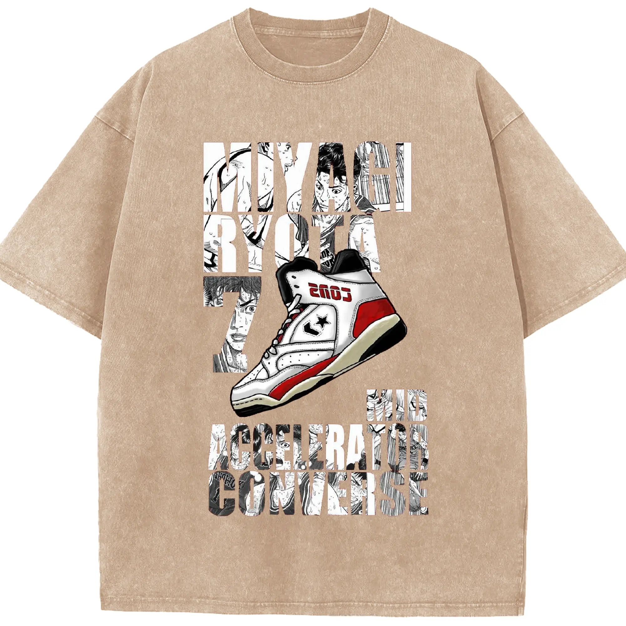 スラムダンクニーカーコラボ限定 - 綿100% ヴィンテージ風 半袖Tシャツ ・ フロントプリント ・ 柔らか肌触り ・ 通気性 快適 ・ スポーツ カジュアル 外出用