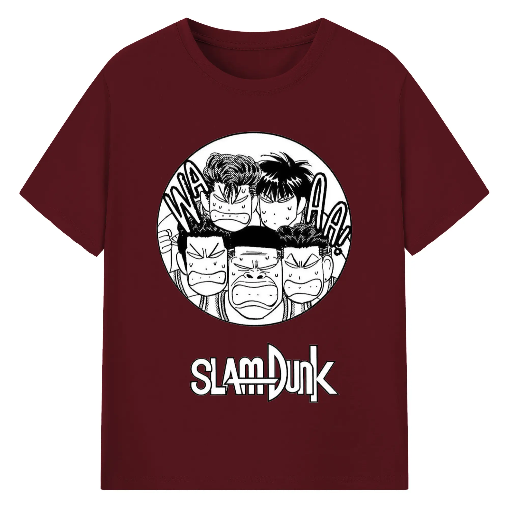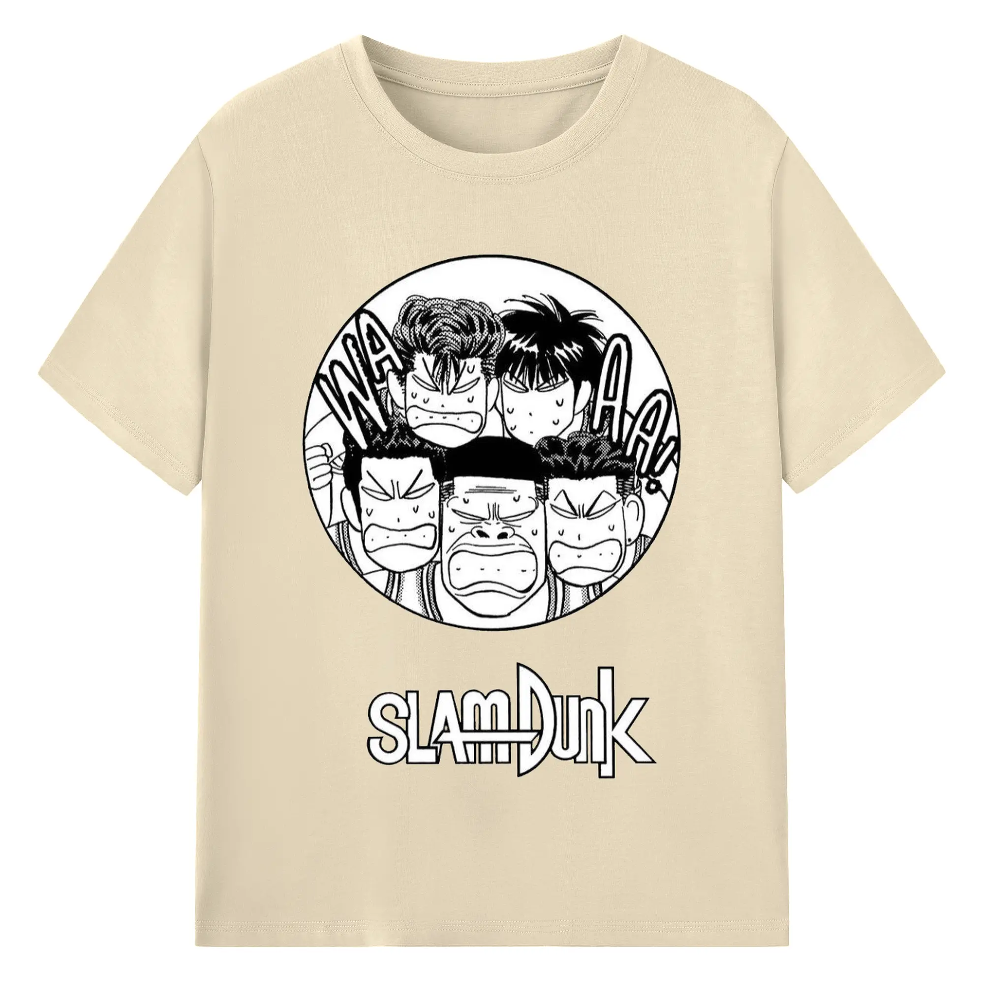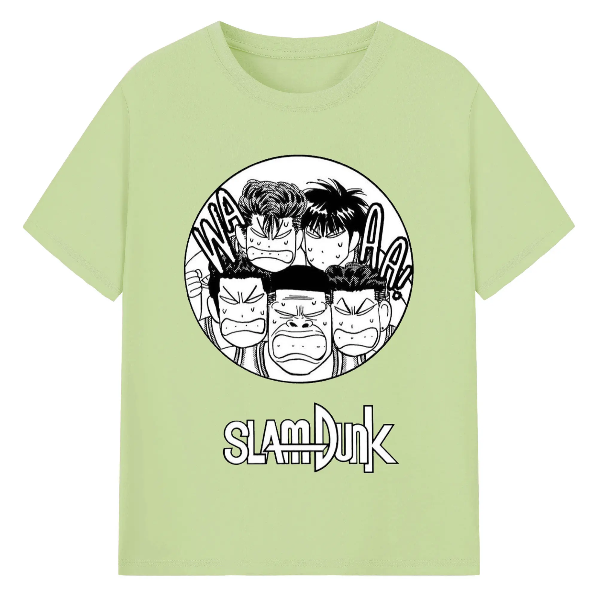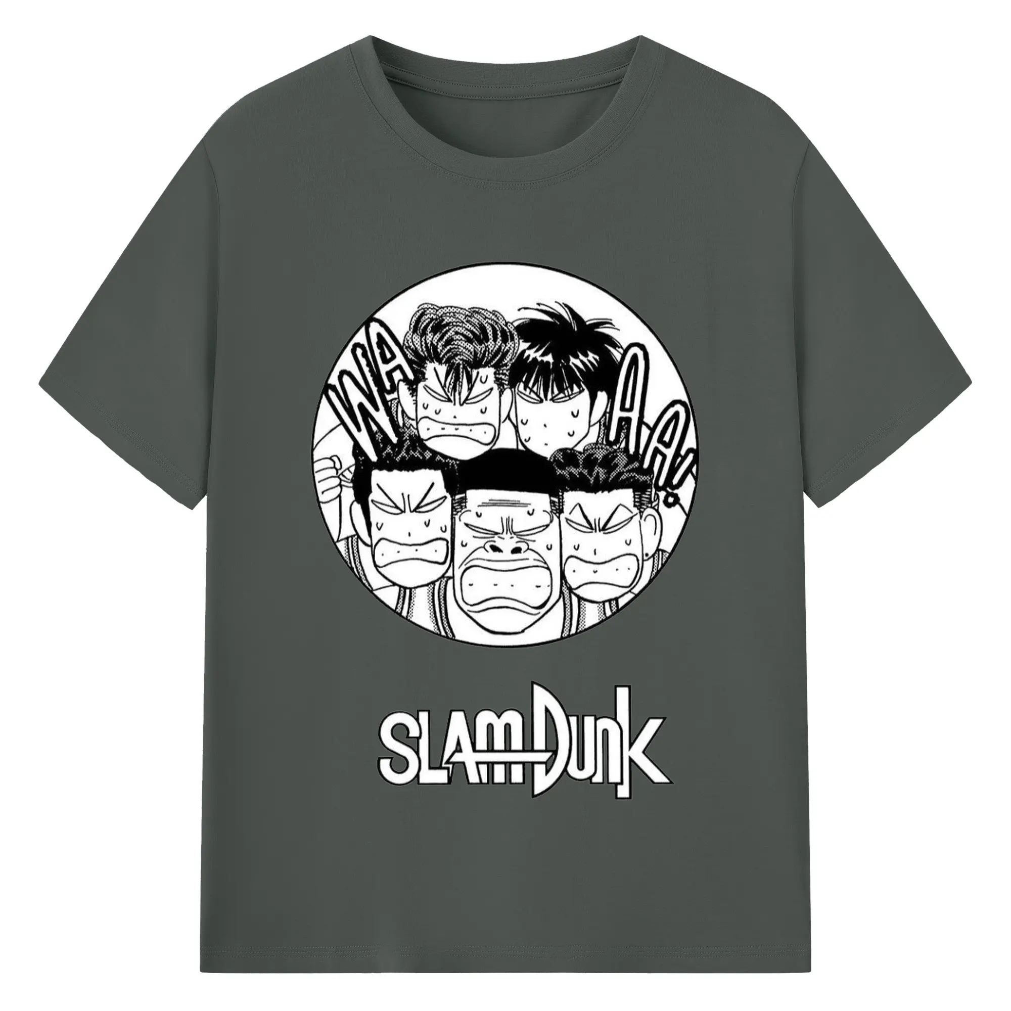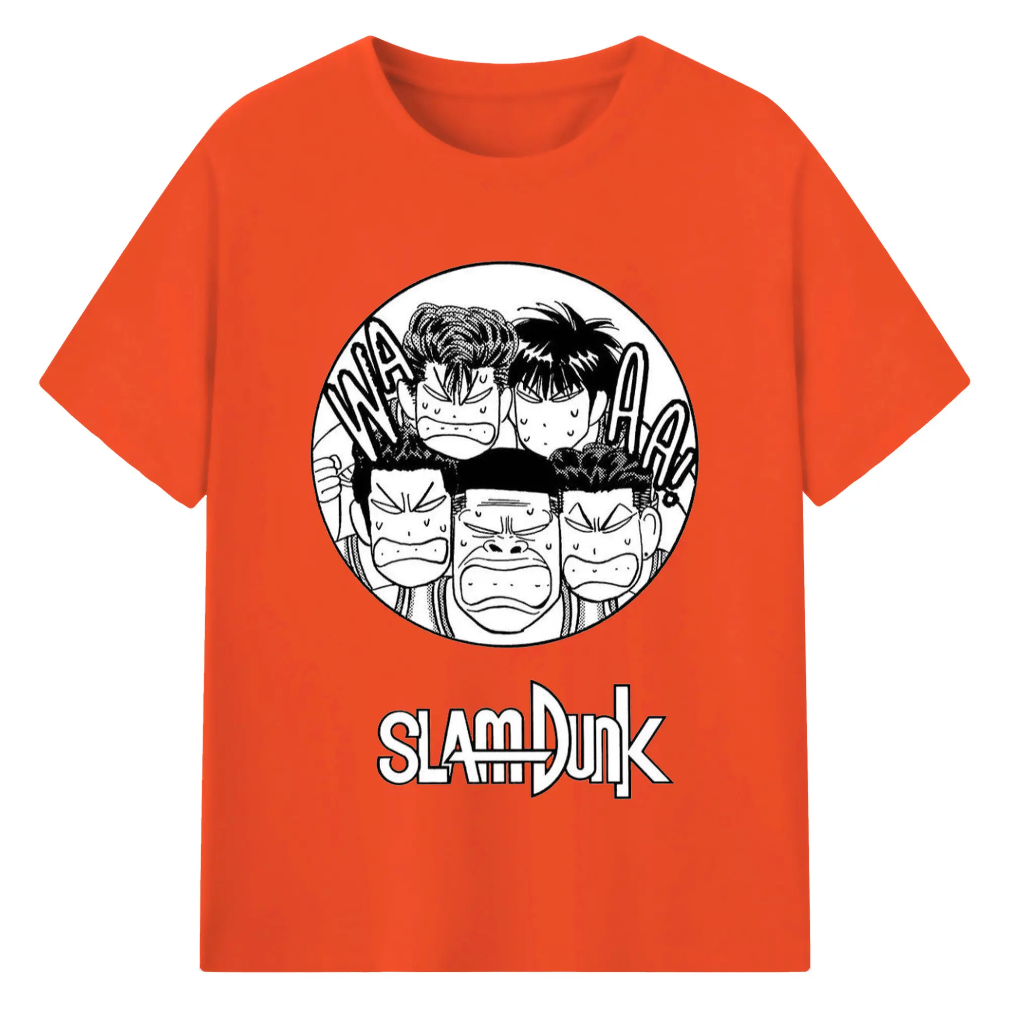 スラムダンクマンガ 湘北 スタメン - 綿100% ヴィンテージ風 半袖Tシャツ ・ フロントプリント ・ 柔らか肌触り ・ 通気性 快適 ・ スポーツ カジュアル 外出用
