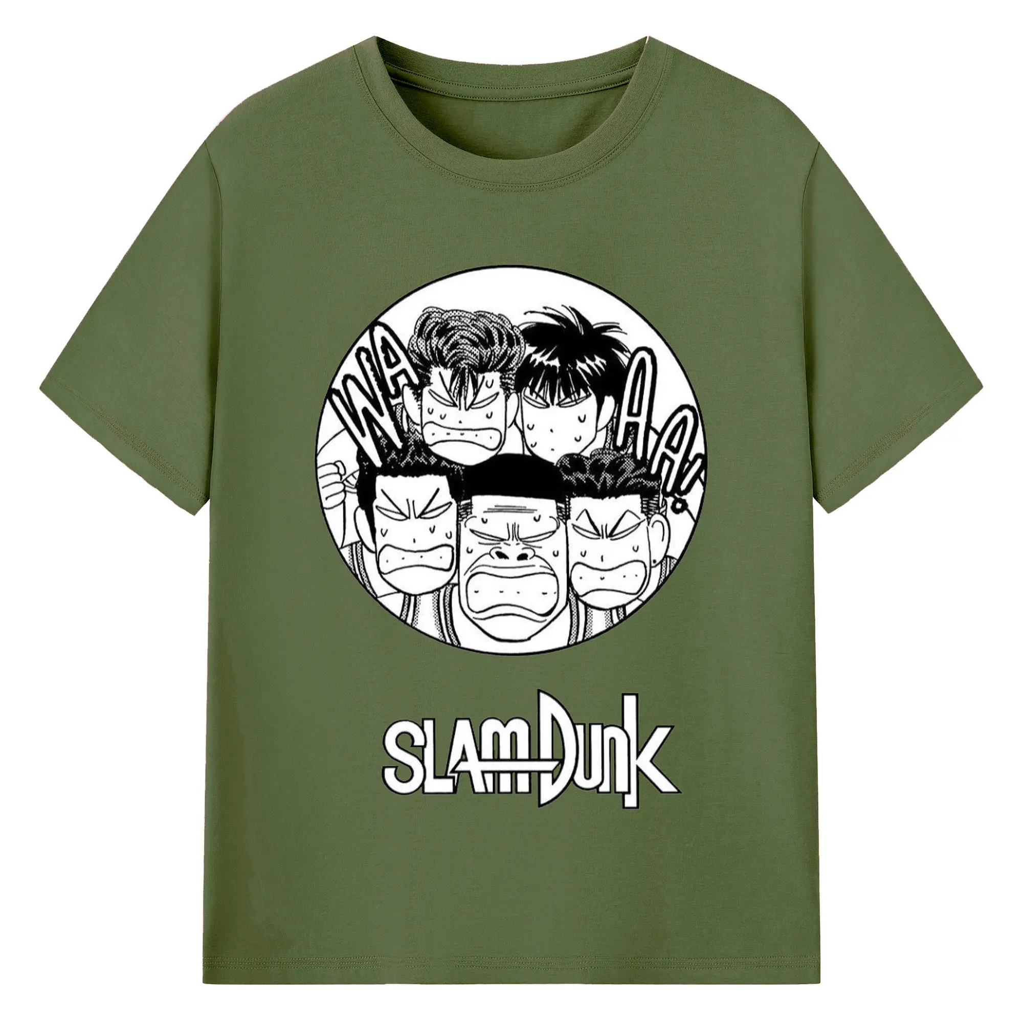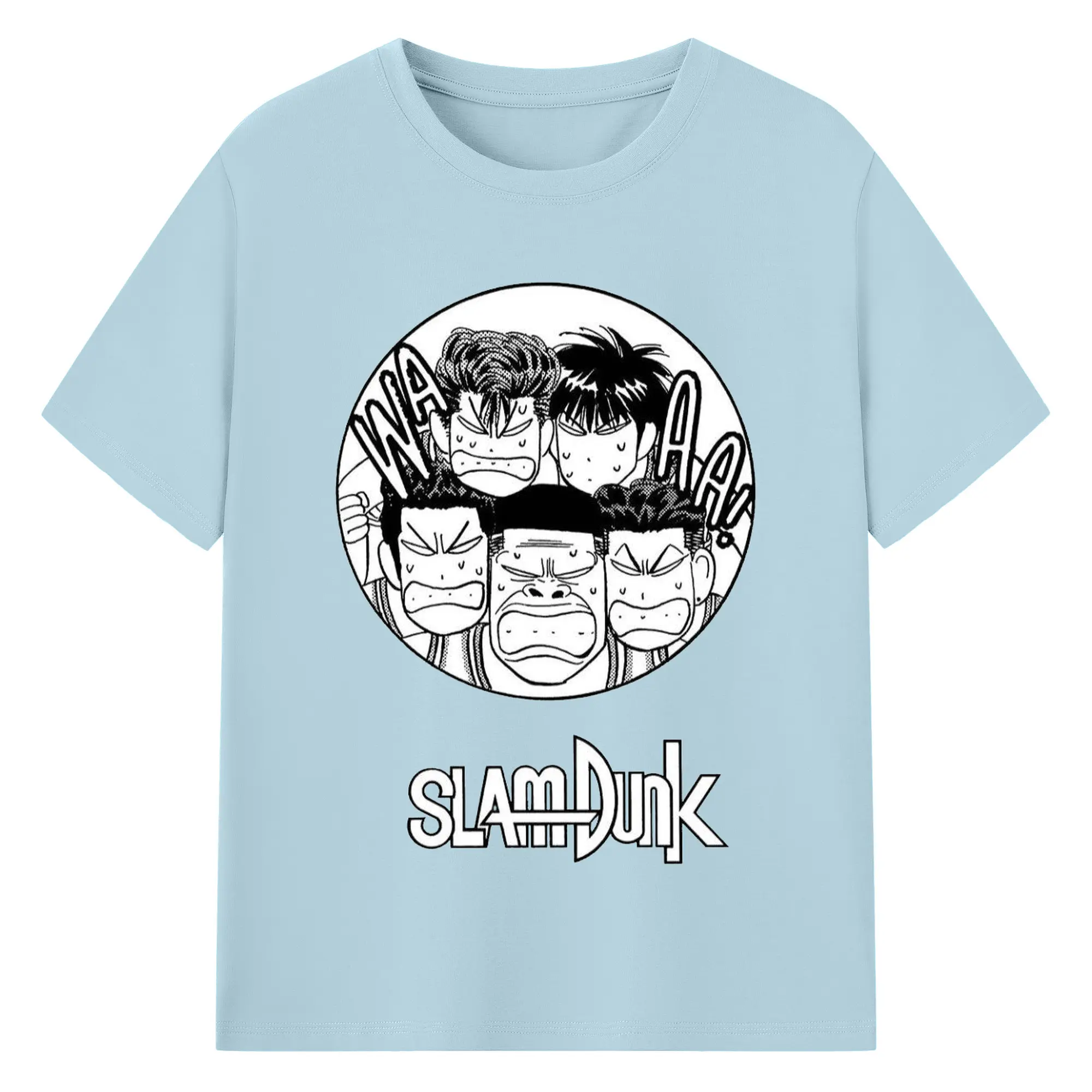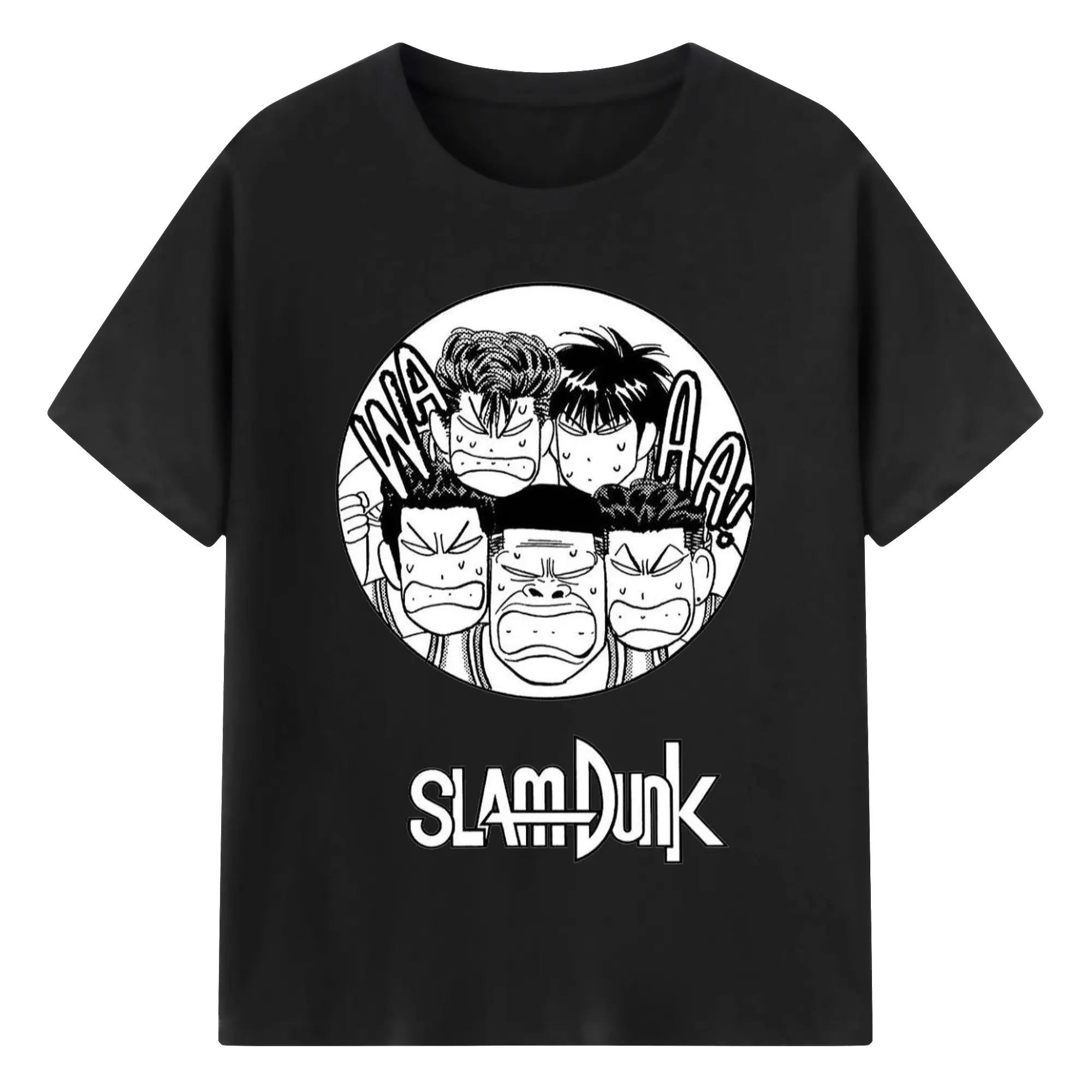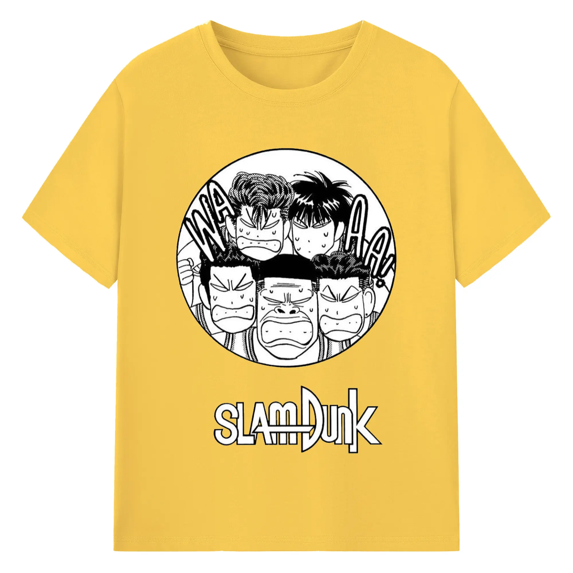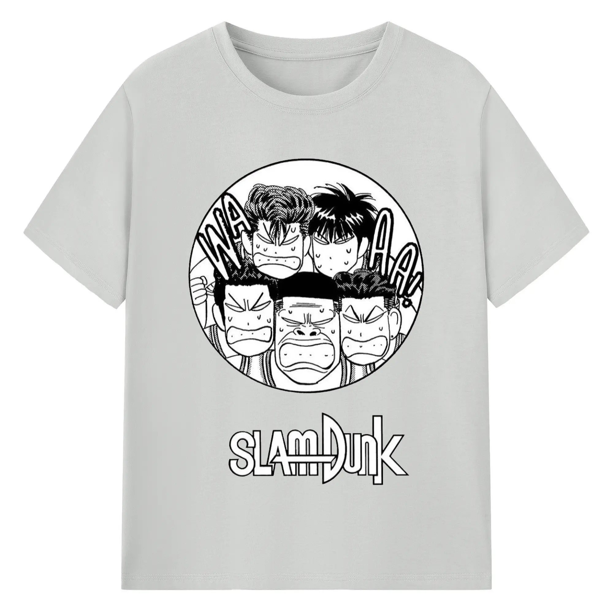 スラムダンクマンガ 湘北 スタメン - 綿100% ヴィンテージ風 半袖Tシャツ ・ フロントプリント ・ 柔らか肌触り ・ 通気性 快適 ・ スポーツ カジュアル 外出用