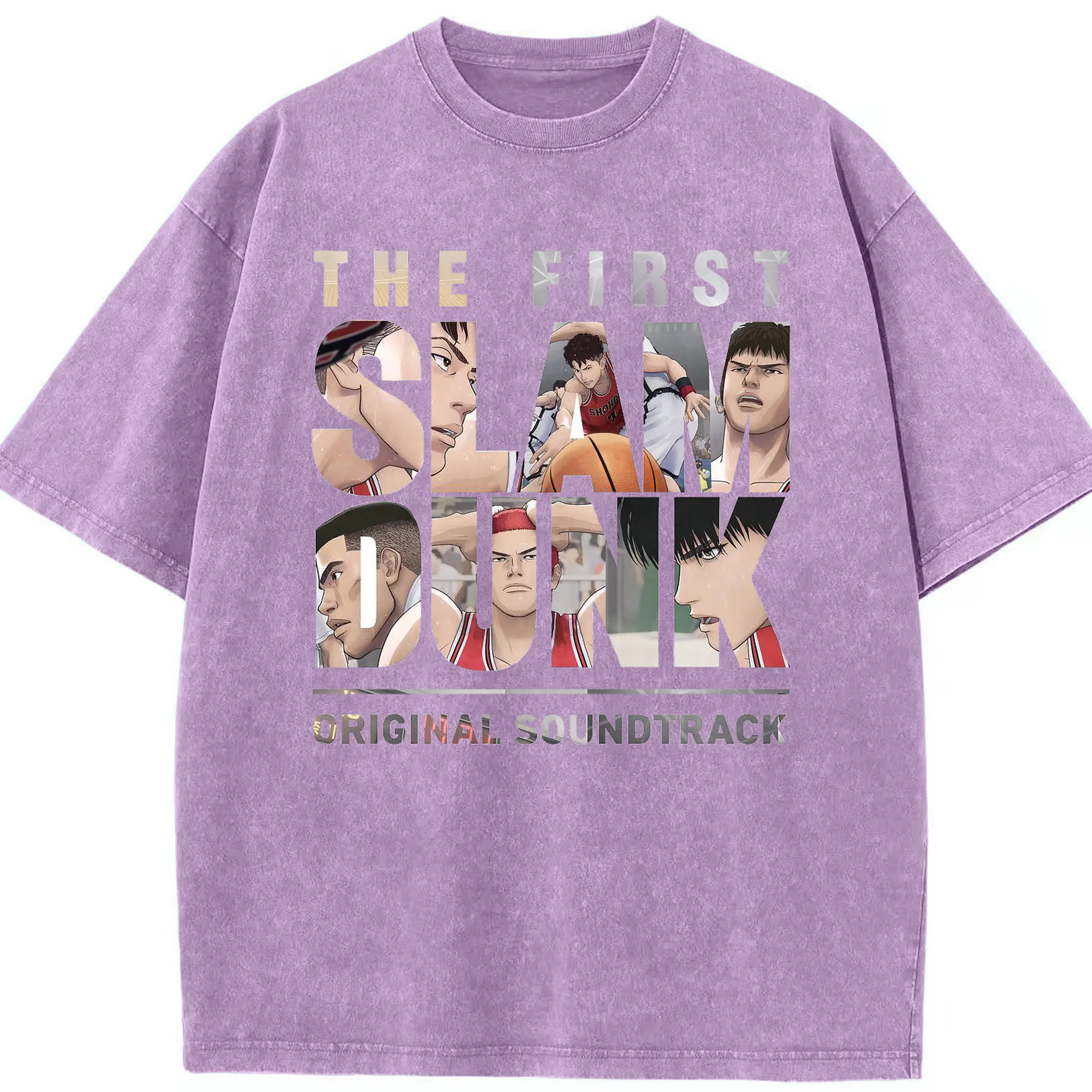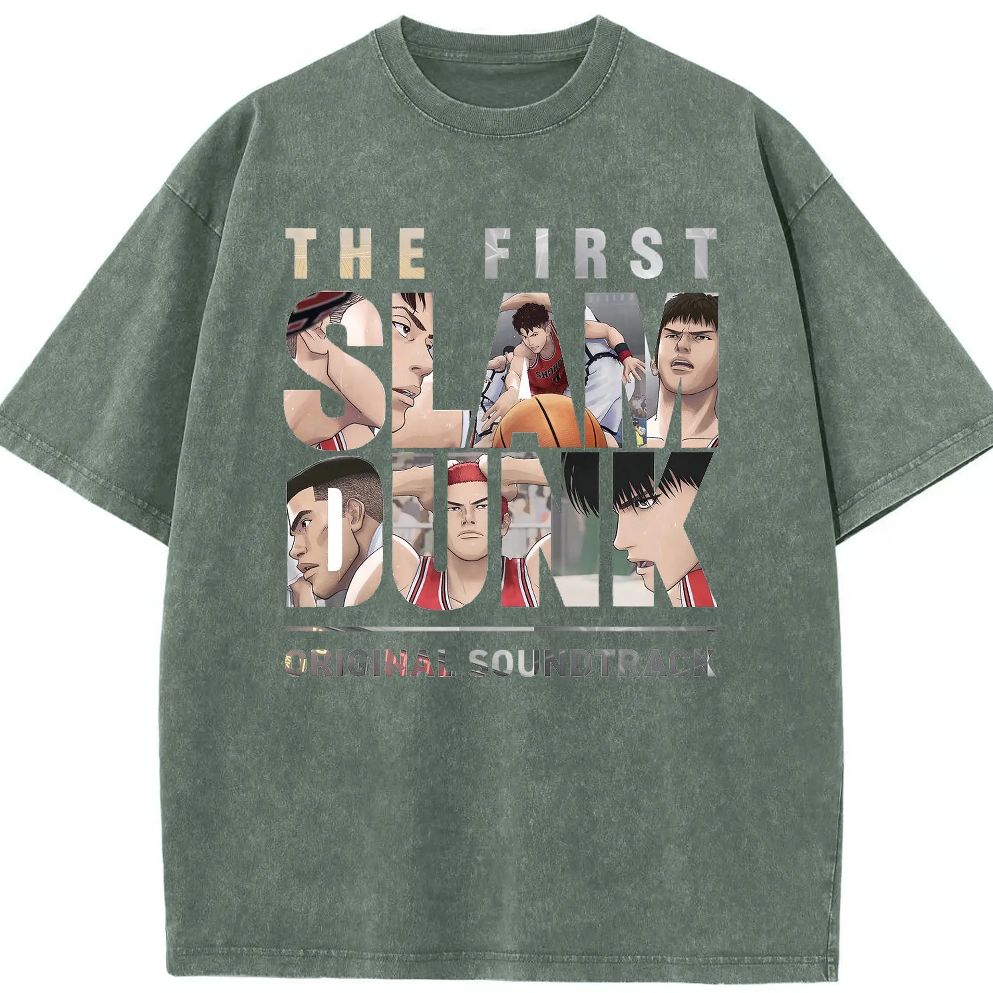 スラムダンク映画 湘北バスケ部 - 綿100% ヴィンテージ風 半袖Tシャツ ・ フロントプリント ・ 柔らか肌触り ・ 通気性 快適 ・ スポーツ カジュアル 外出用