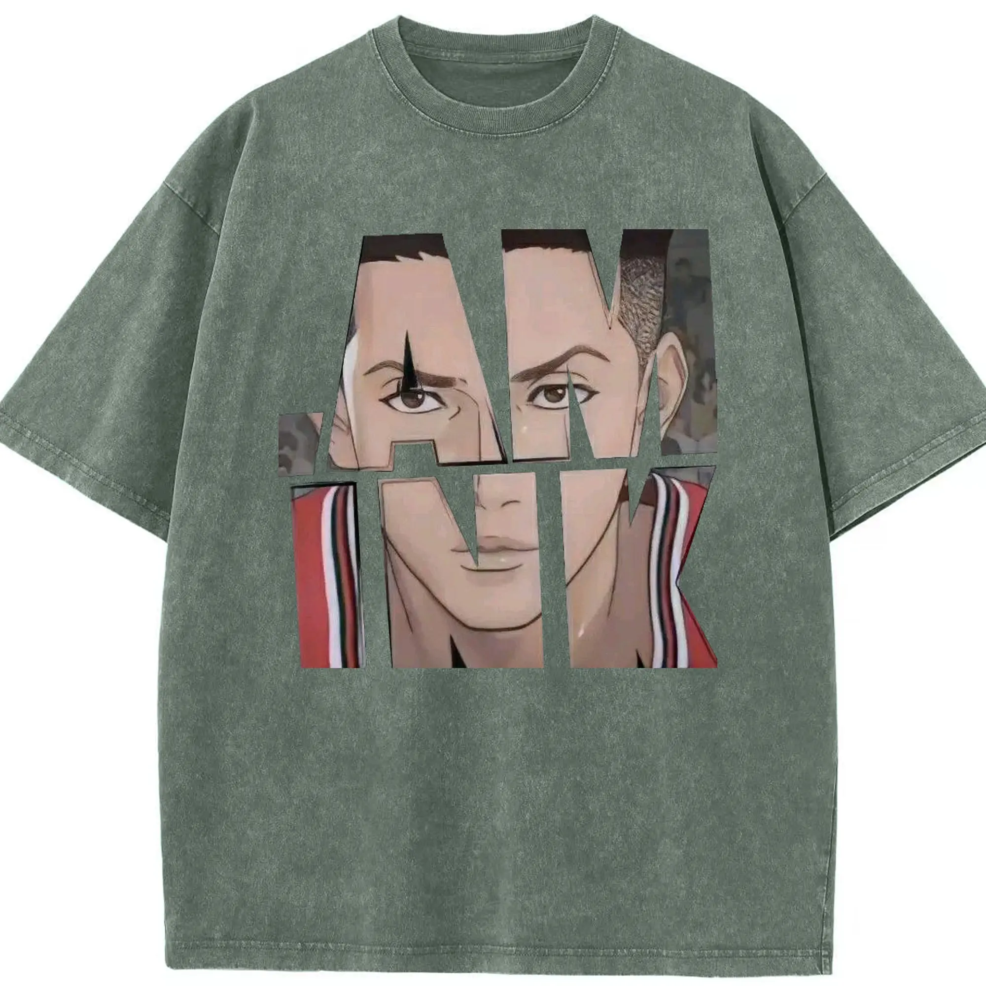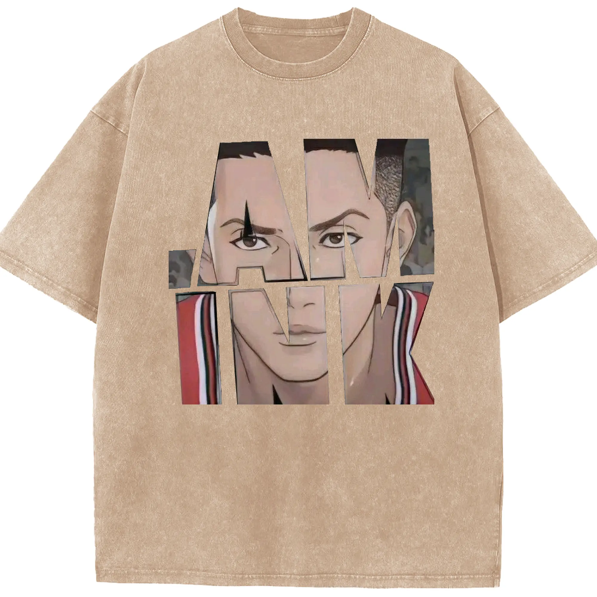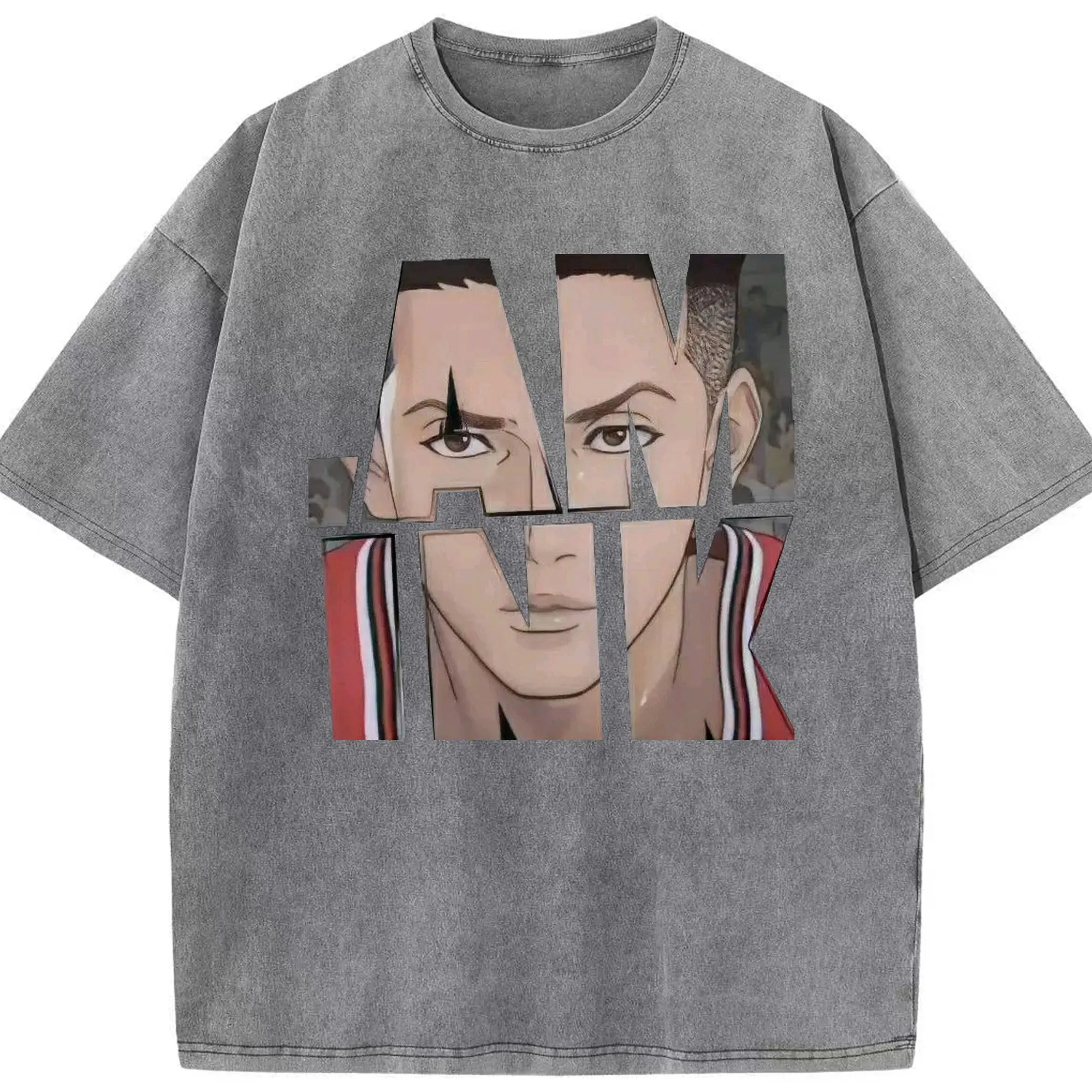 スラムダンク NO.1ガード 宮城 宮城リョータ - 綿100% ヴィンテージ風 半袖Tシャツ ・ フロントプリント ・ 柔らか肌触り ・ 通気性 快適 ・ スポーツ カジュアル 外出用