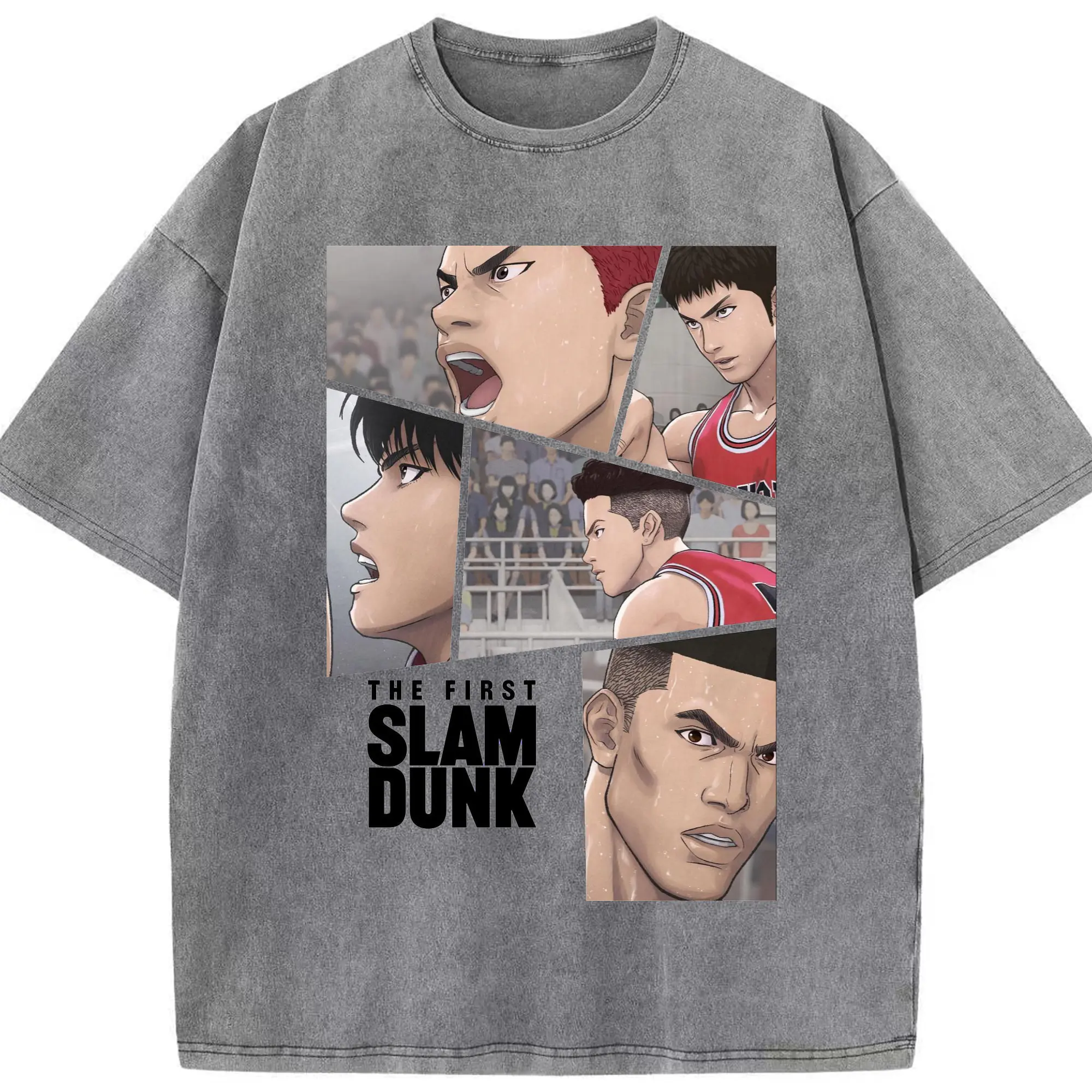 スラムダンク映画 名シーン再現 - 綿100% ヴィンテージ風 半袖Tシャツ ・ フロントプリント ・ 柔らか肌触り ・ 通気性 快適 ・ スポーツ カジュアル 外出用