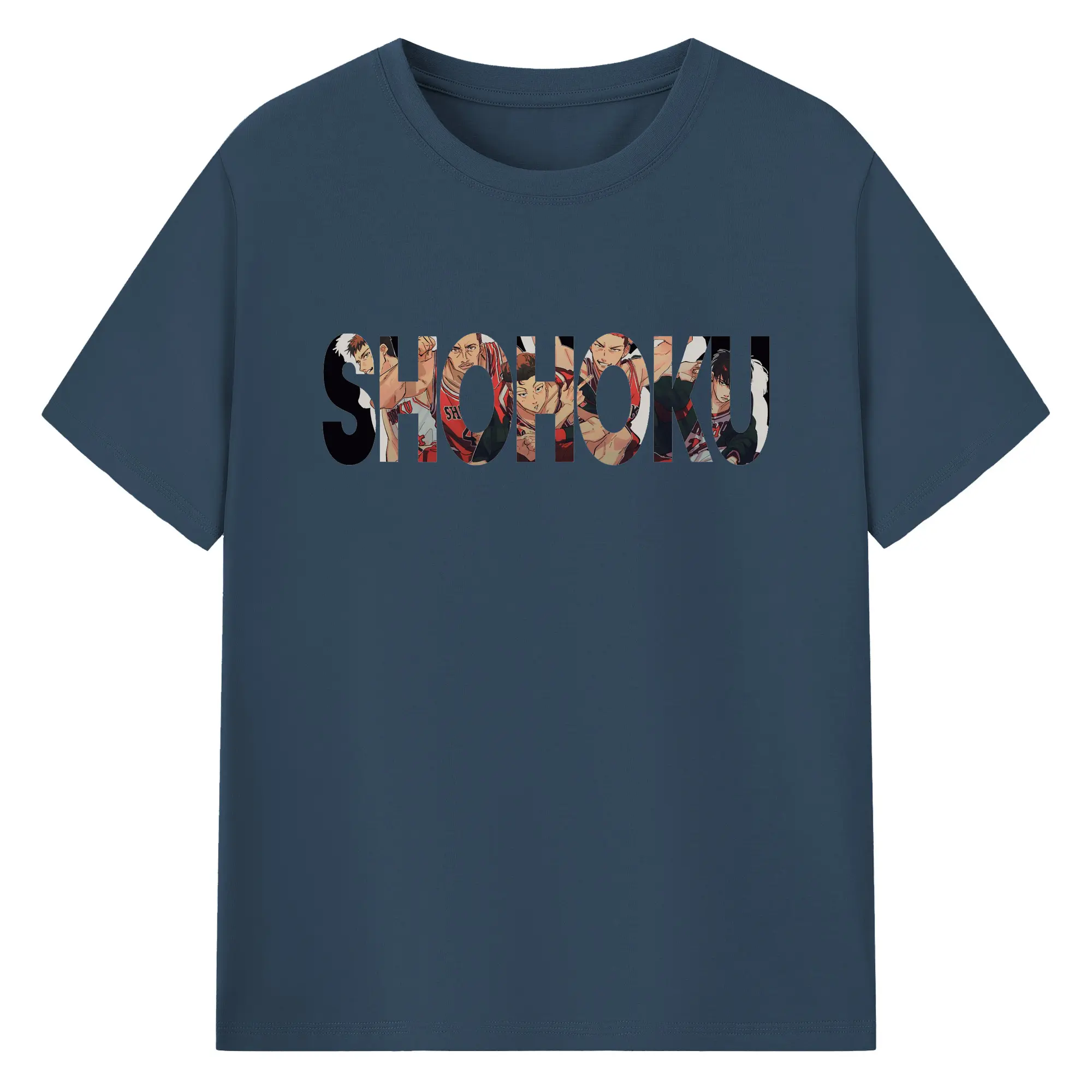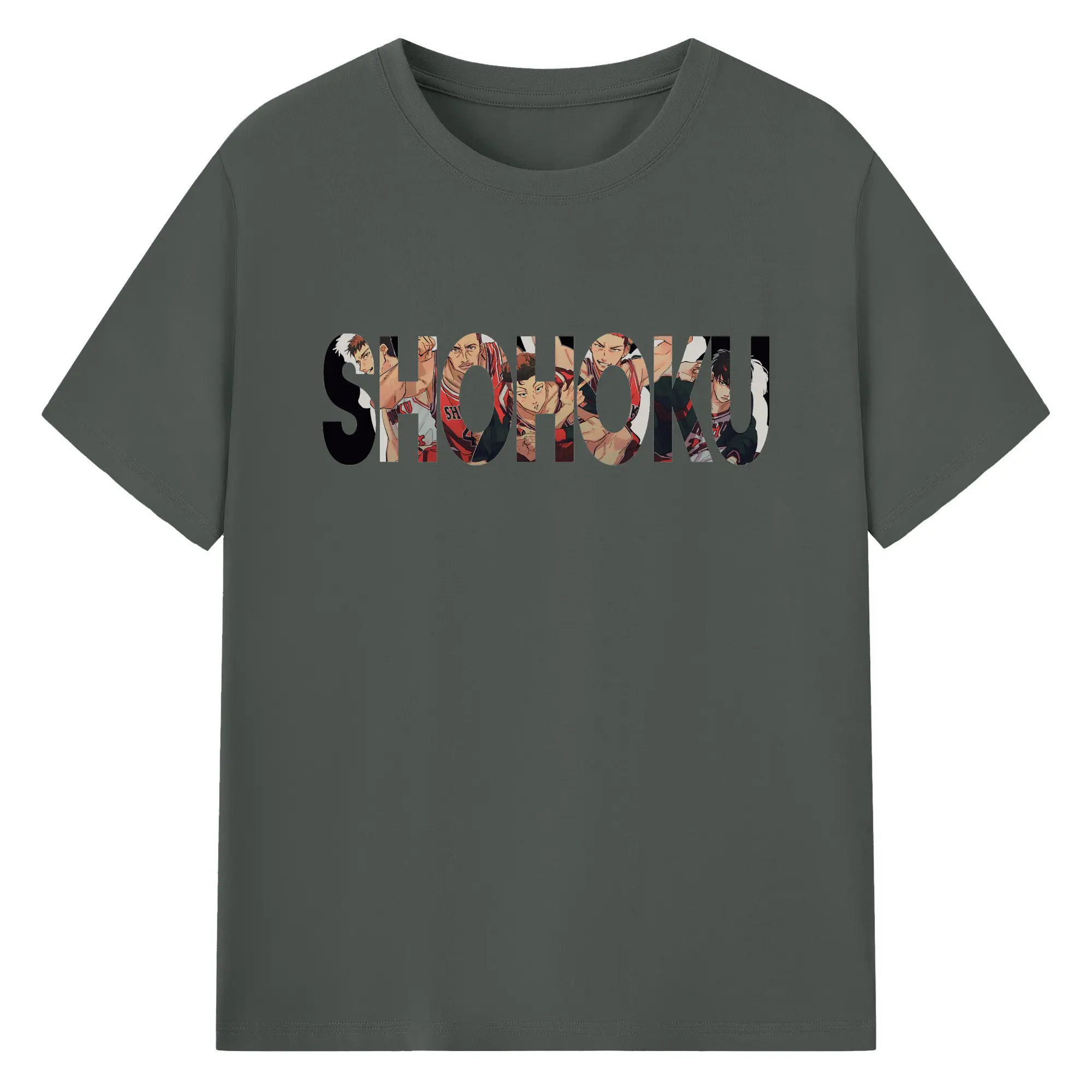 スラムダンク湘北バスケ部 シンプルロゴ - 綿100% 半袖Tシャツ ・ フロントプリント ・ 快適 通気性 ・ 日常使い 散歩 スポーツ用