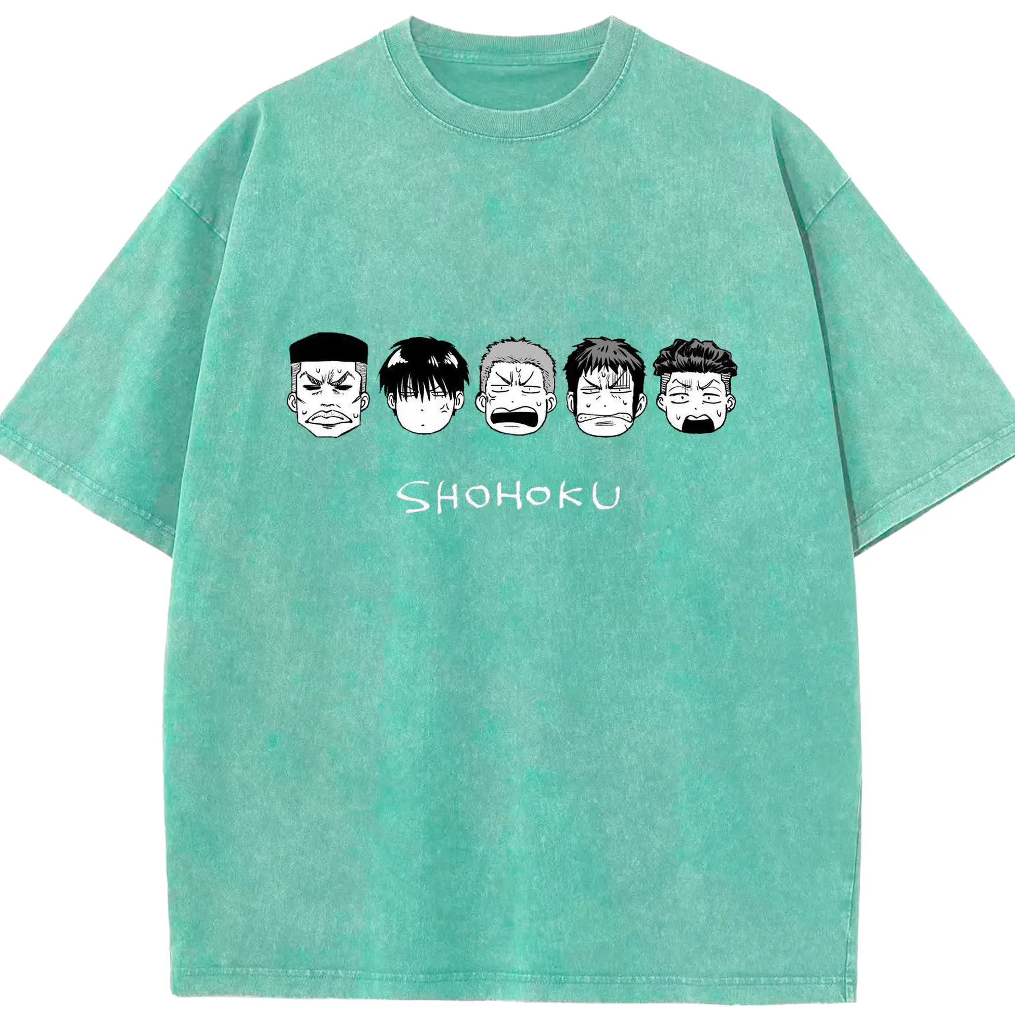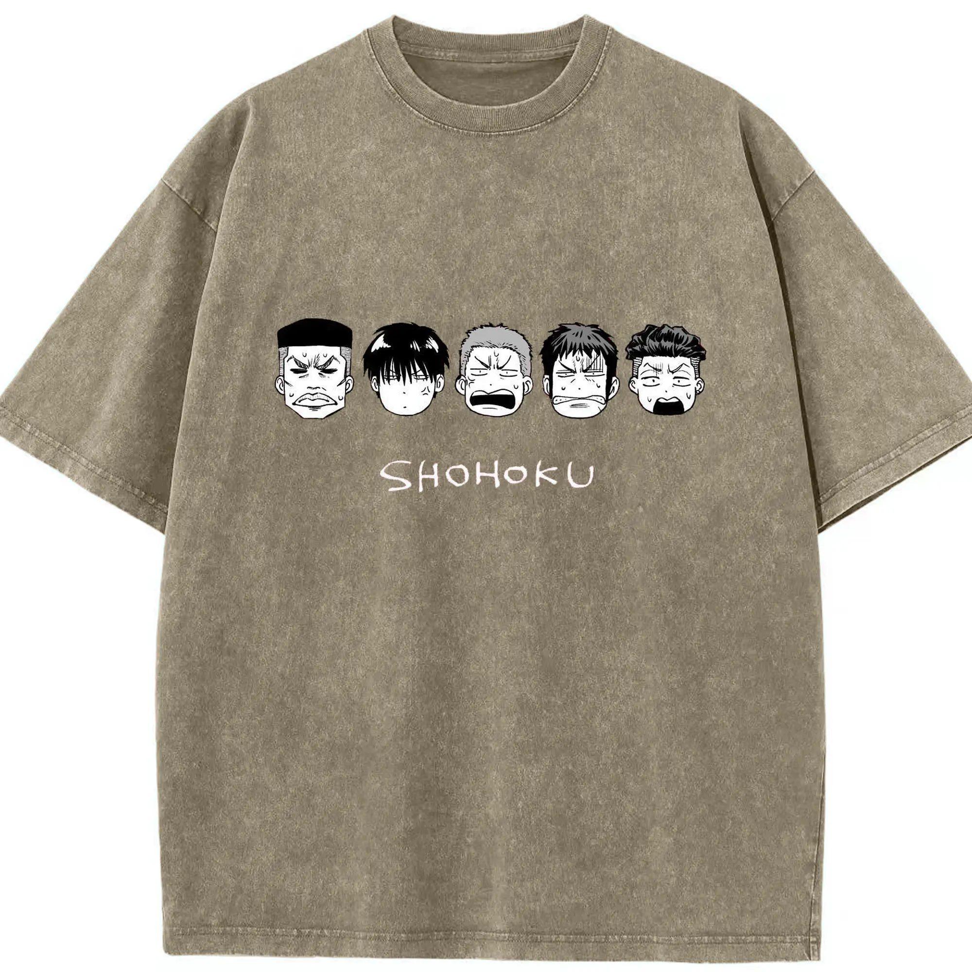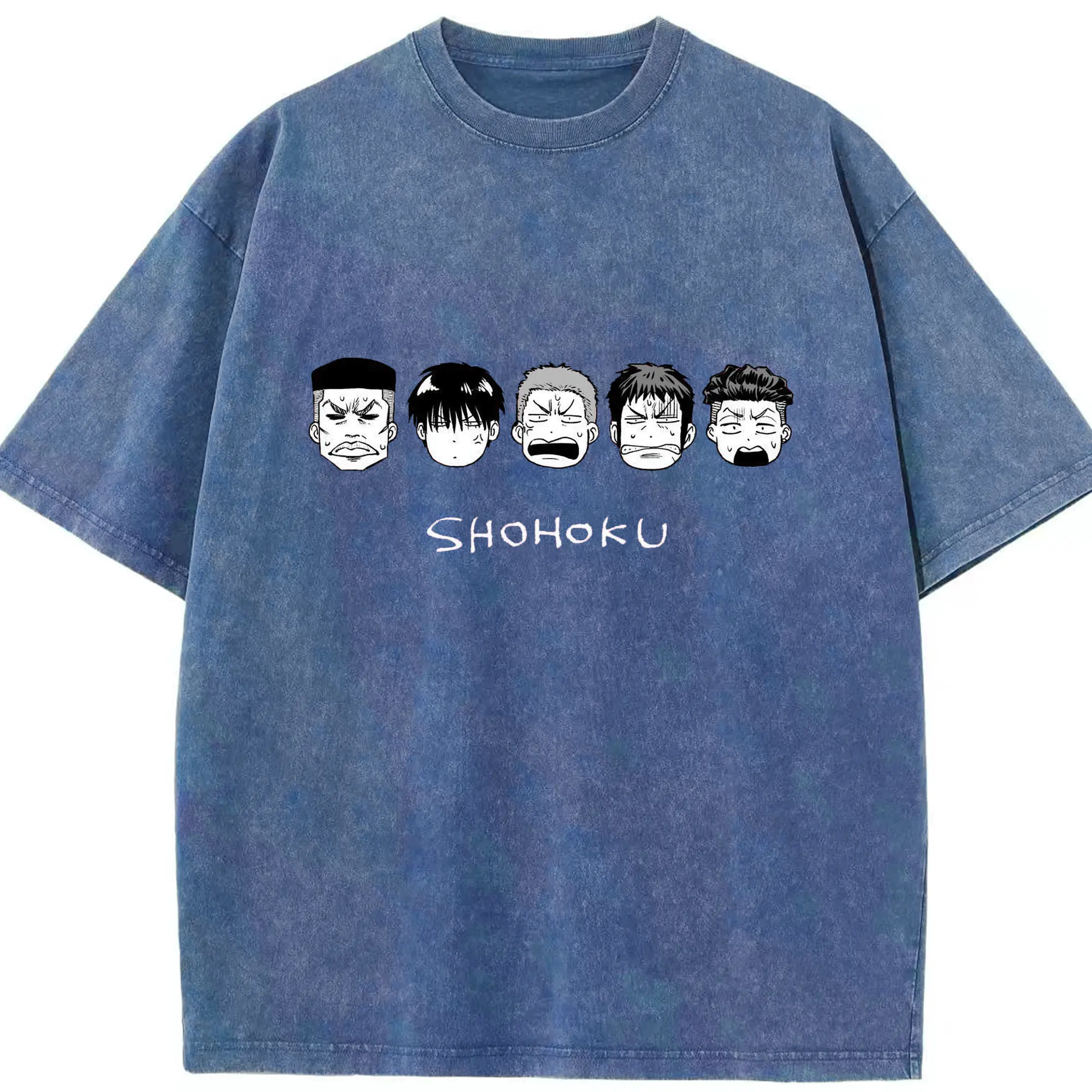 スラムダンク デフォルト 湘北高校 - 綿100% ヴィンテージ風 半袖Tシャツ ・ フロントプリント ・ 柔らか肌触り ・ 通気性 快適 ・ スポーツ カジュアル 外出用