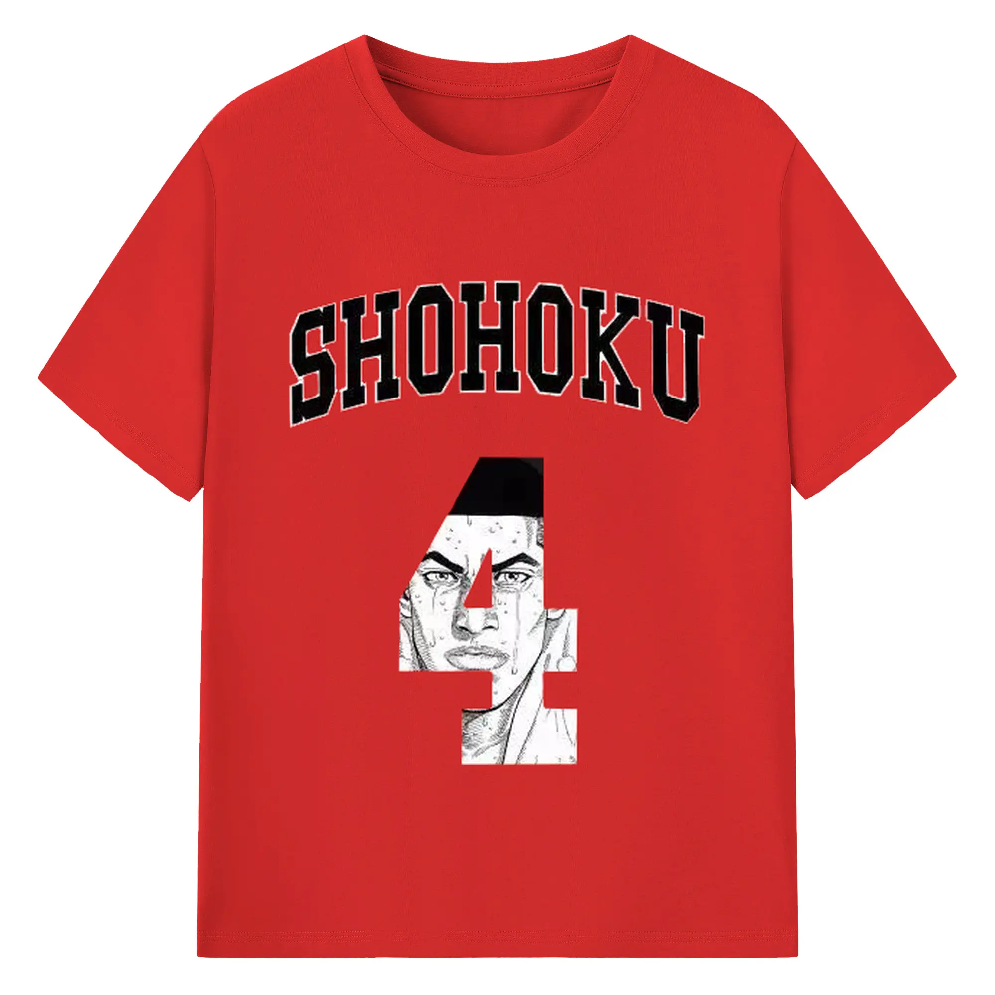 スラムダンク マンガ 赤木剛憲隊長 4番 - 綿100% 半袖Tシャツ ・ フロントプリント ・ 快適 通気性 ・ 日常使い 散歩 スポーツ用