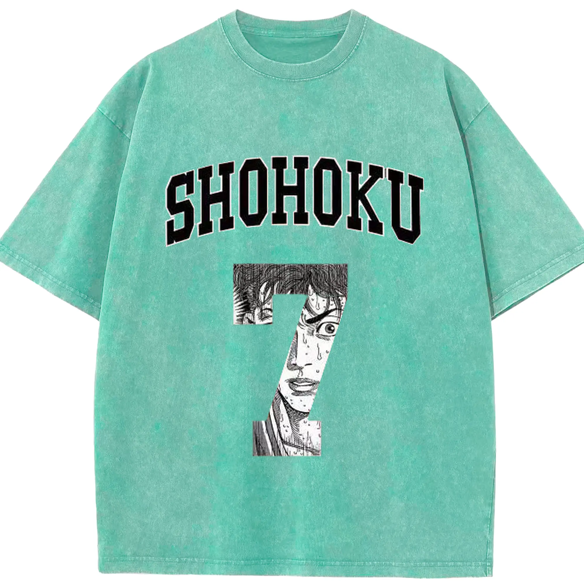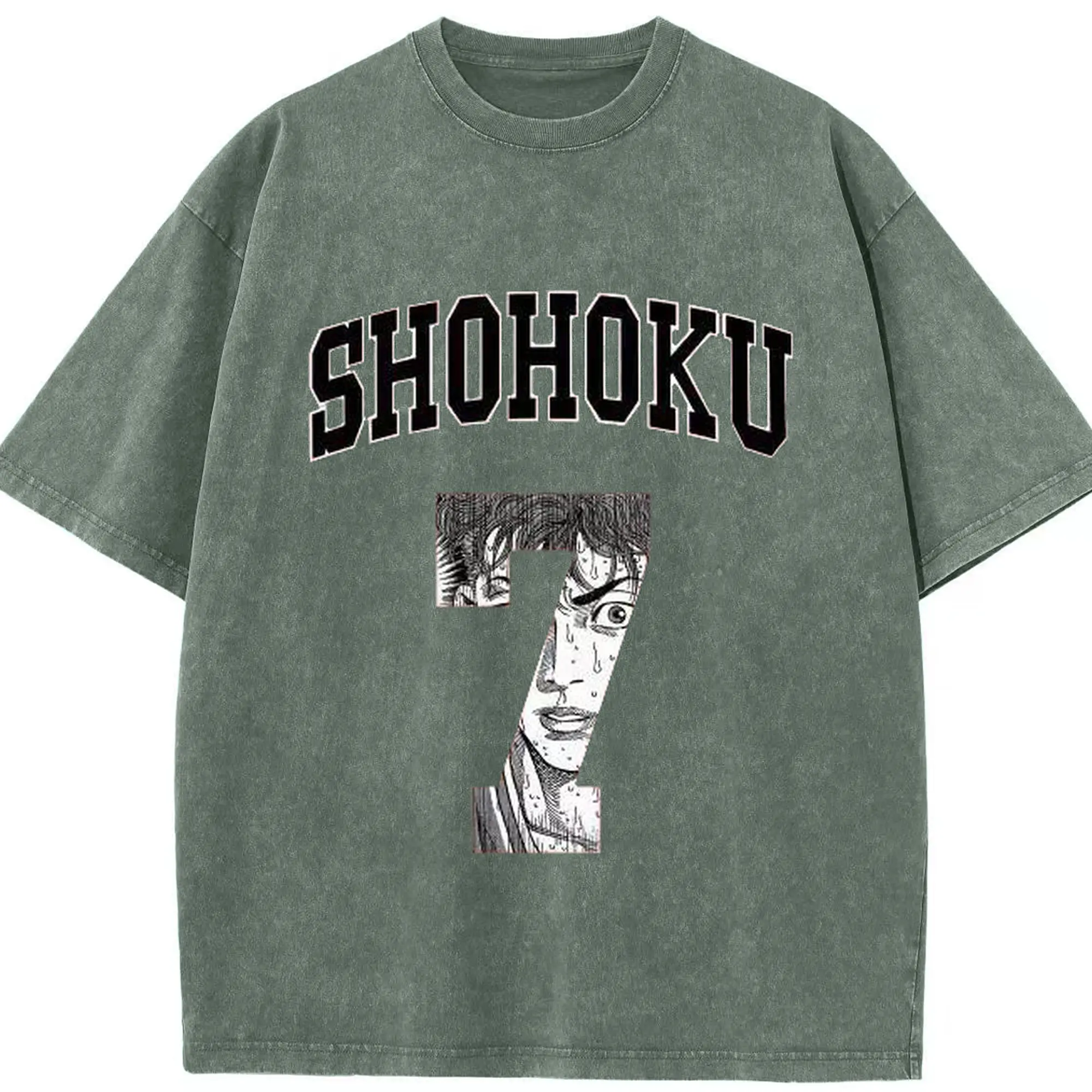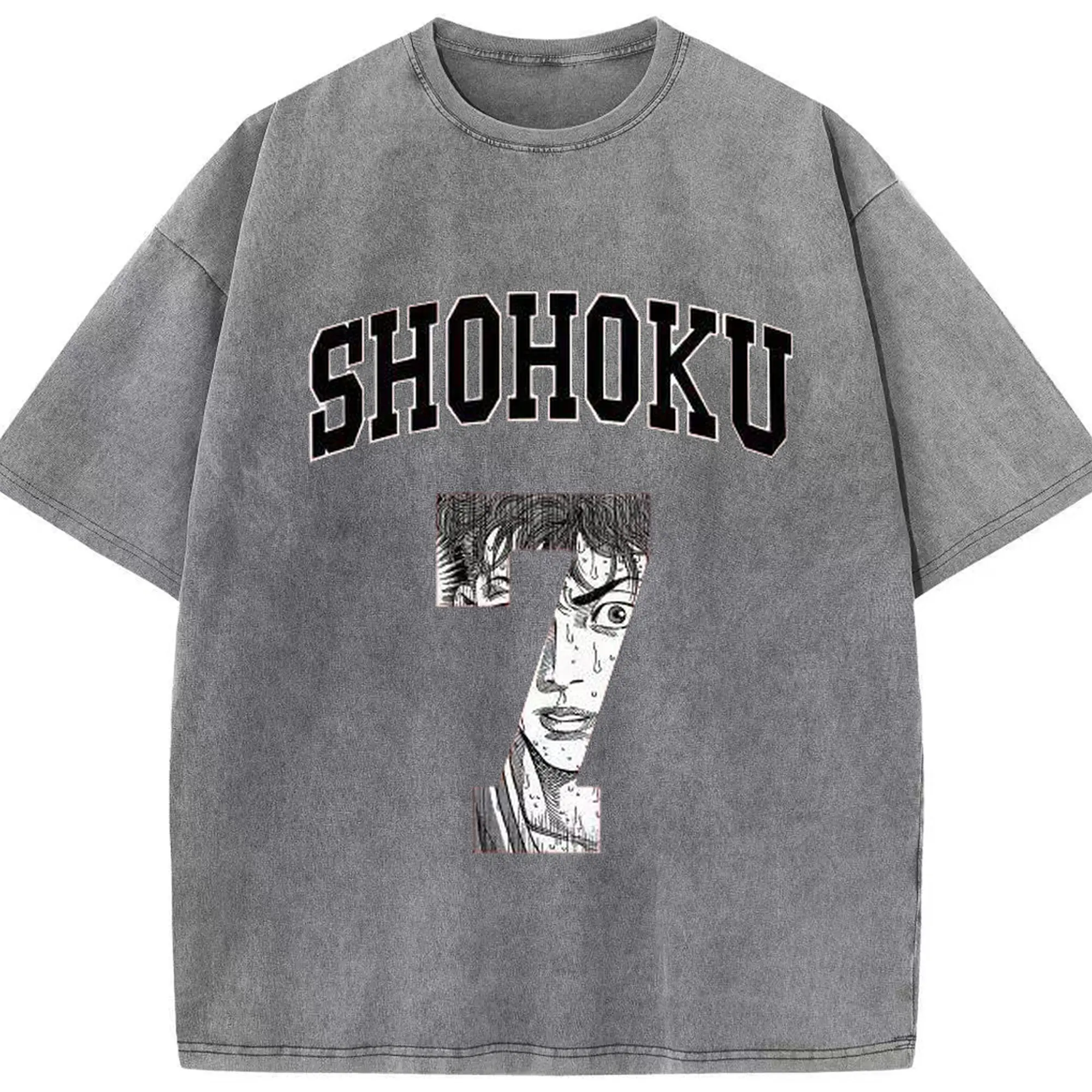 スラムダンクマンガ アートプリント - 綿100% ヴィンテージ風 半袖Tシャツ ・ フロントプリント ・ 柔らか肌触り ・ 通気性 快適 ・ スポーツ カジュアル 外出用