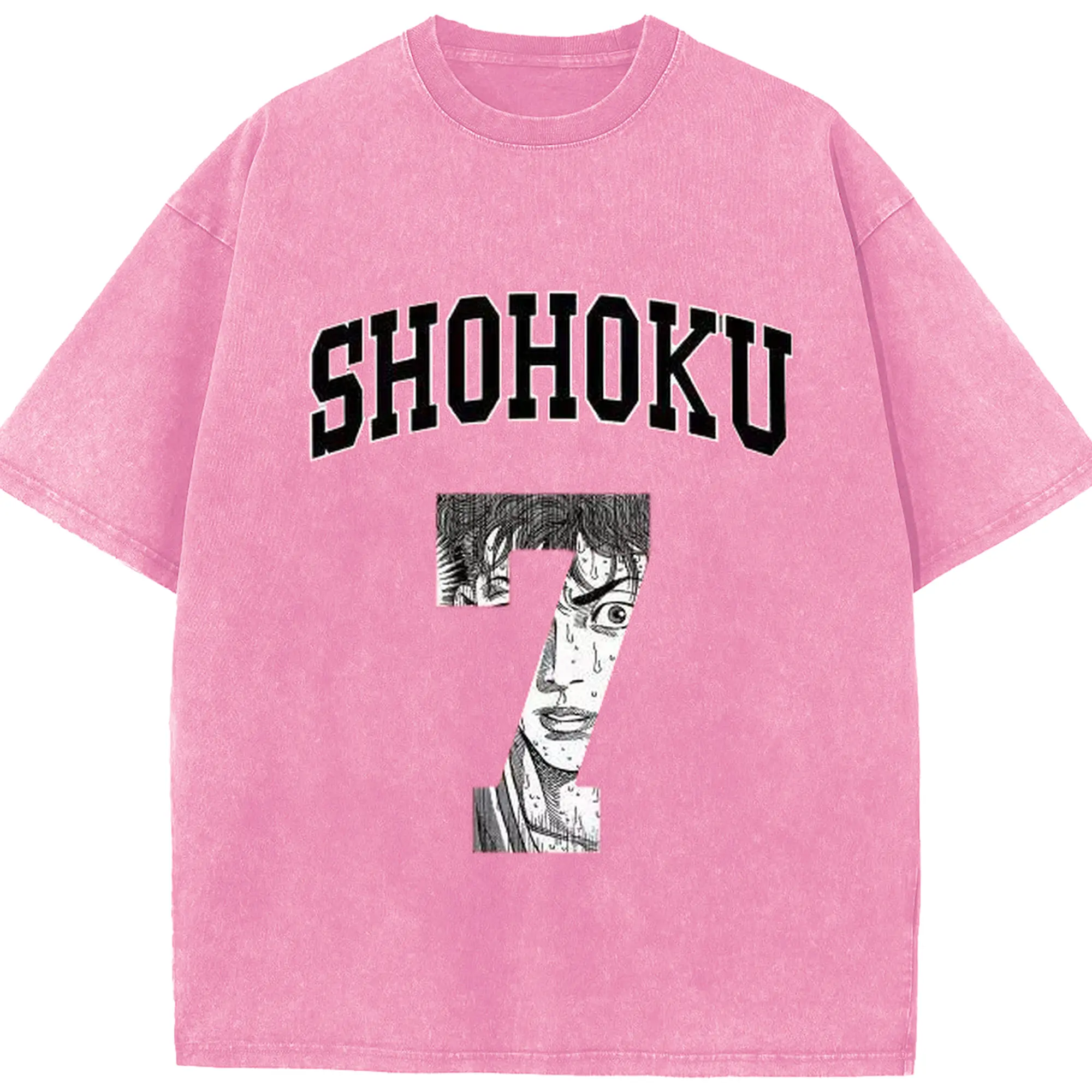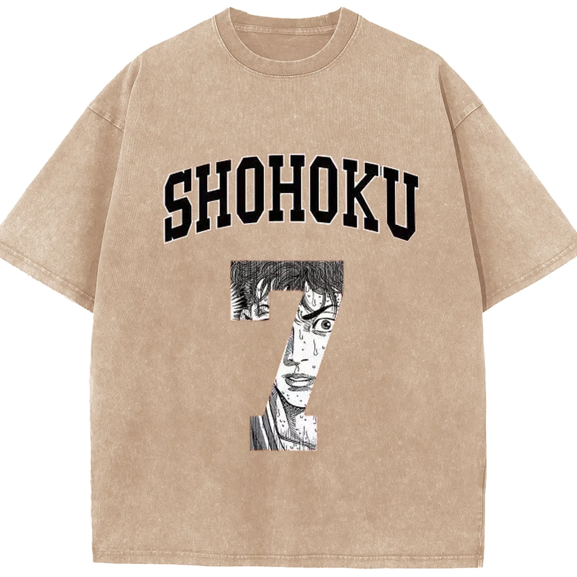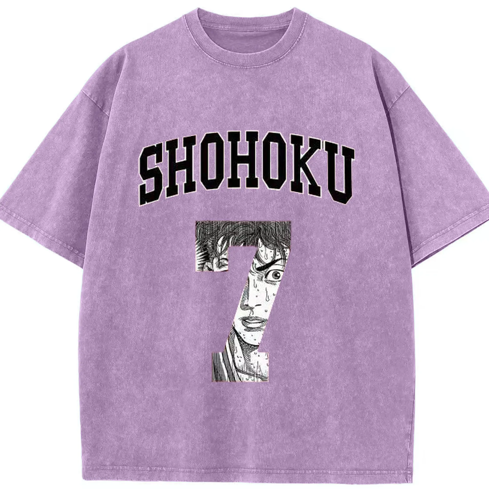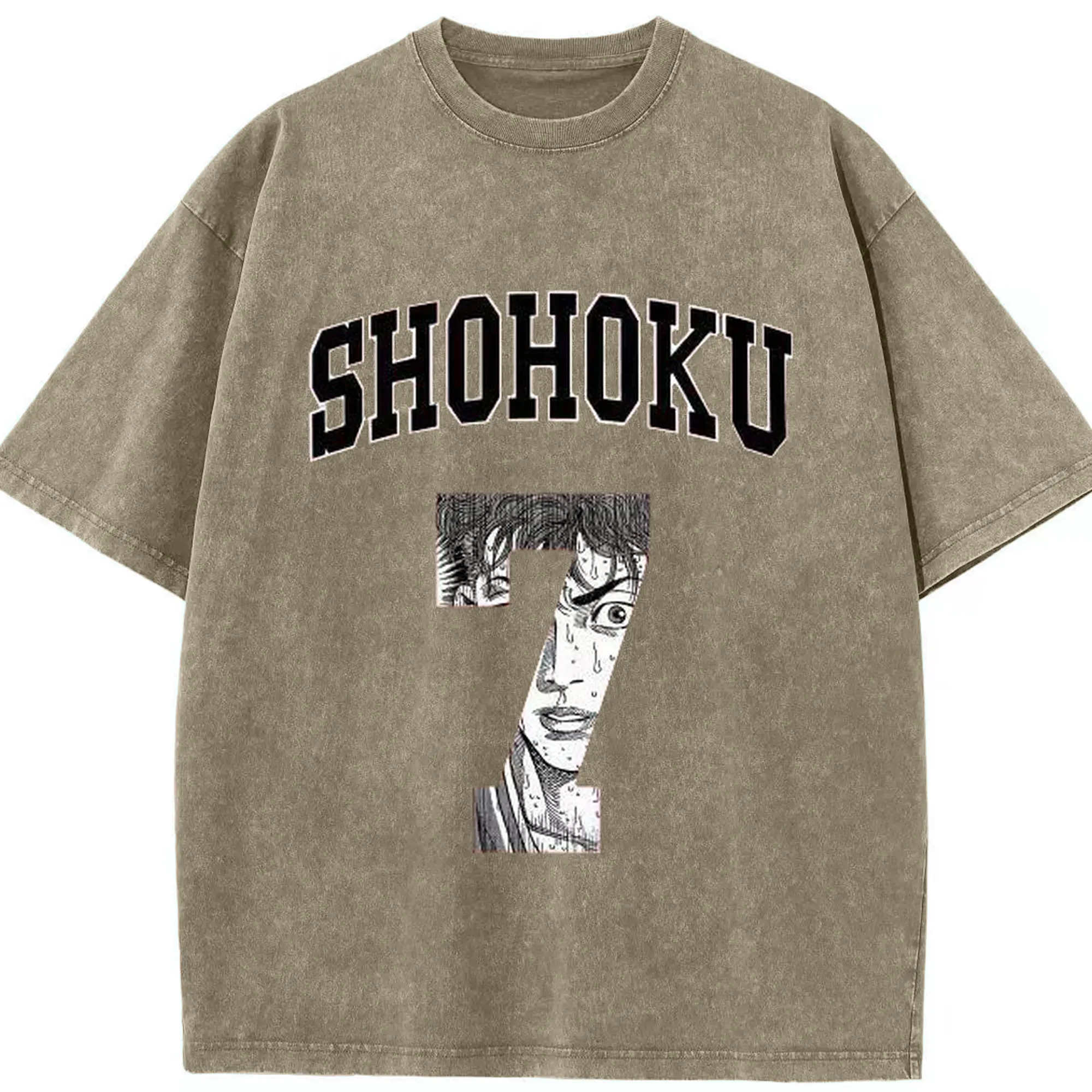 スラムダンクマンガ アートプリント - 綿100% ヴィンテージ風 半袖Tシャツ ・ フロントプリント ・ 柔らか肌触り ・ 通気性 快適 ・ スポーツ カジュアル 外出用