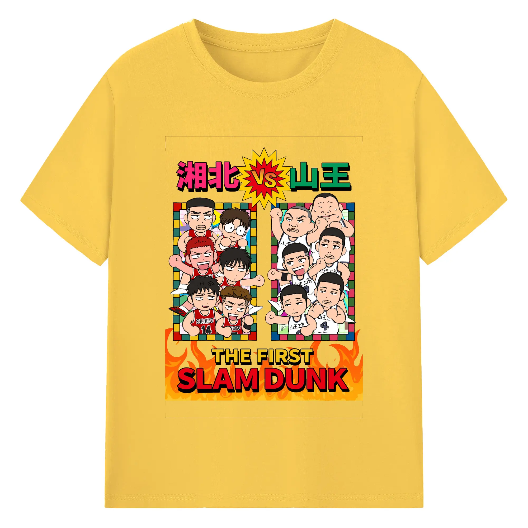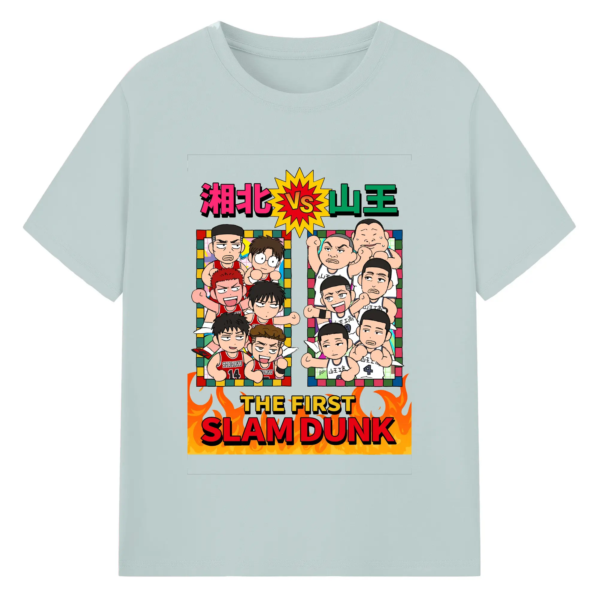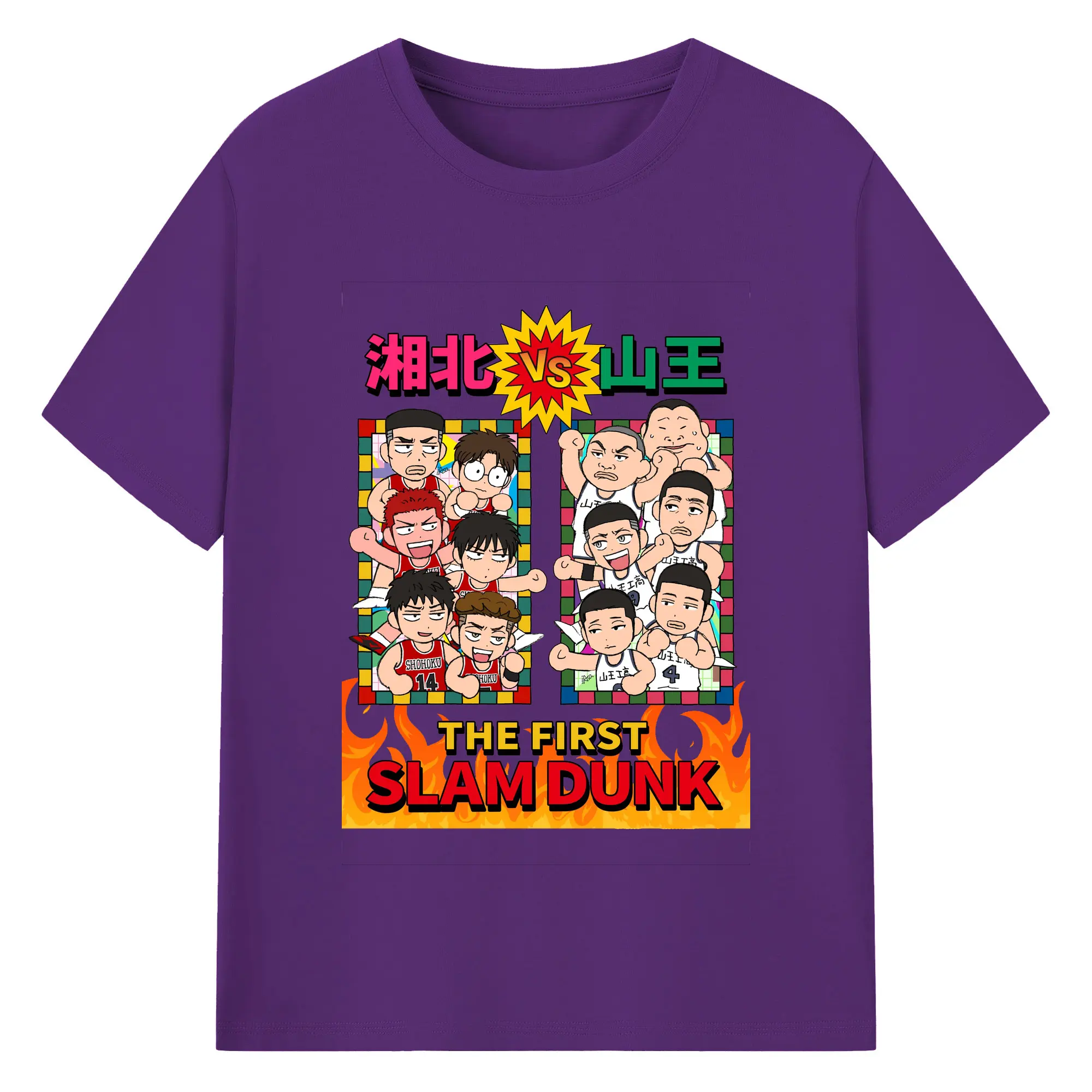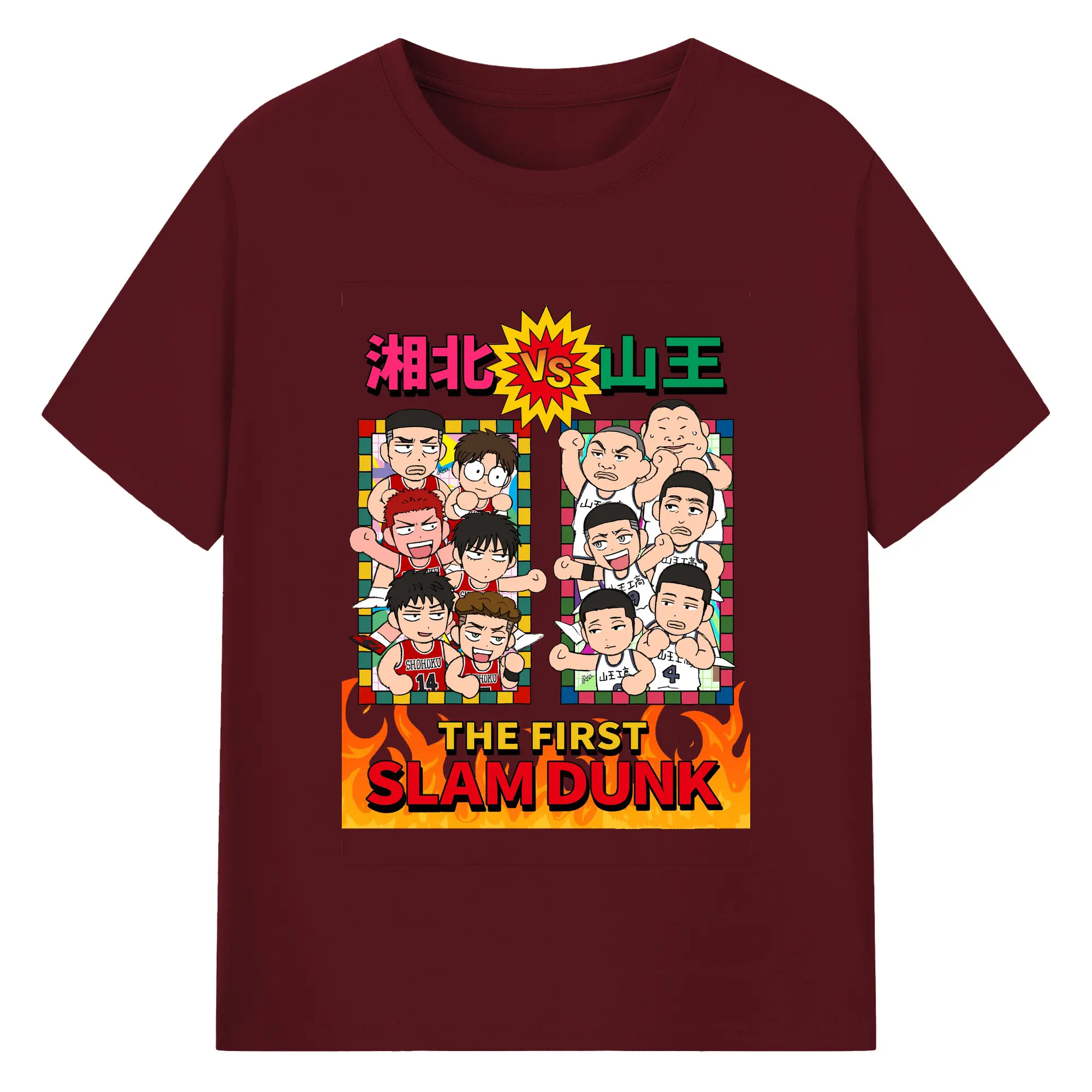 スラムダンク 全国大会湘北VS山王 デフォルメ - 綿100% 半袖Tシャツ ・ フロントプリント ・ 快適 通気性 ・ 日常使い 散歩 スポーツ用