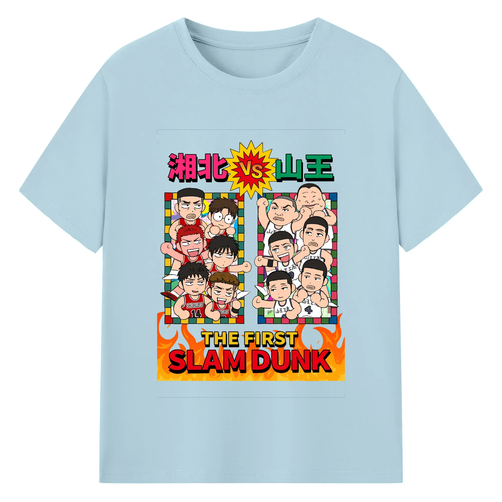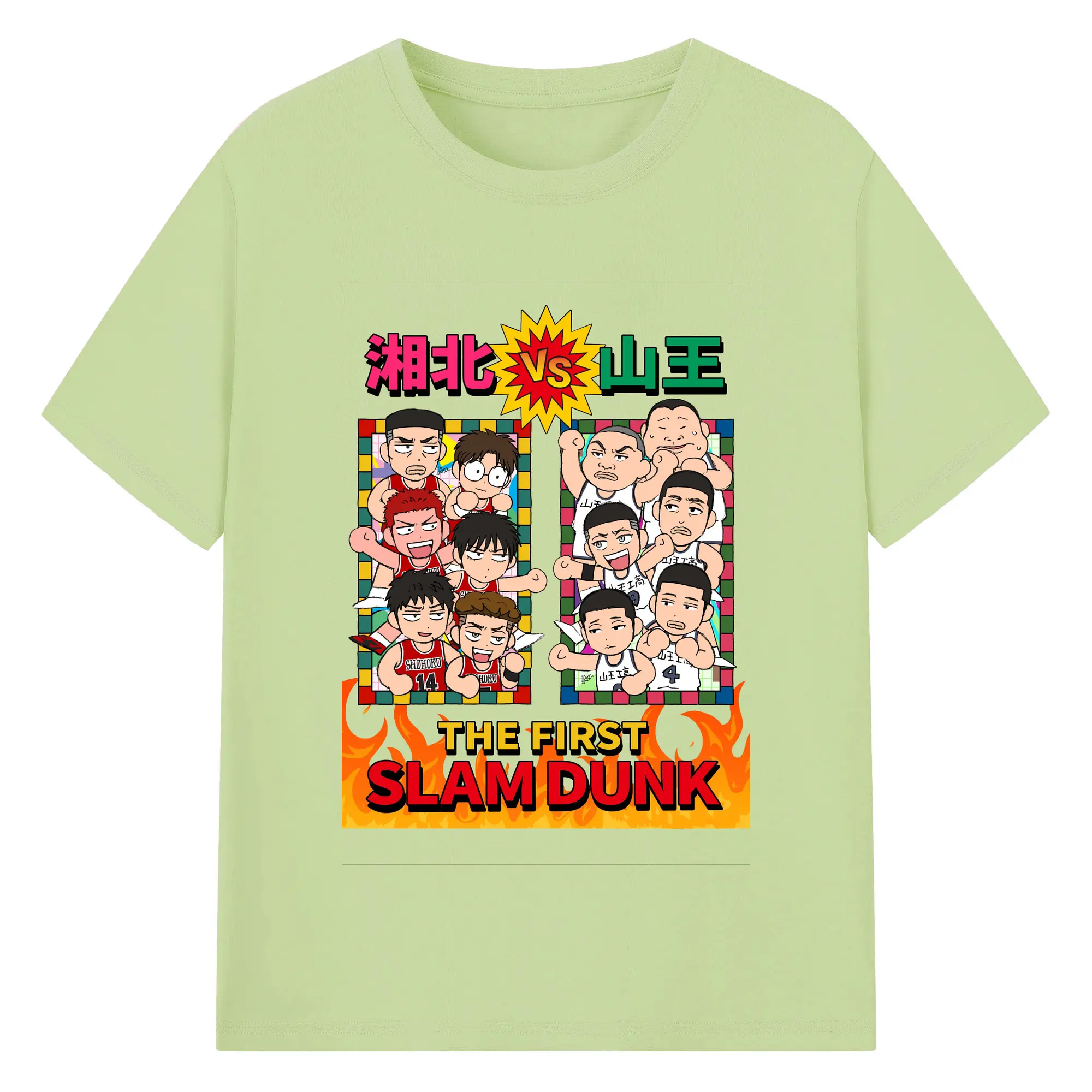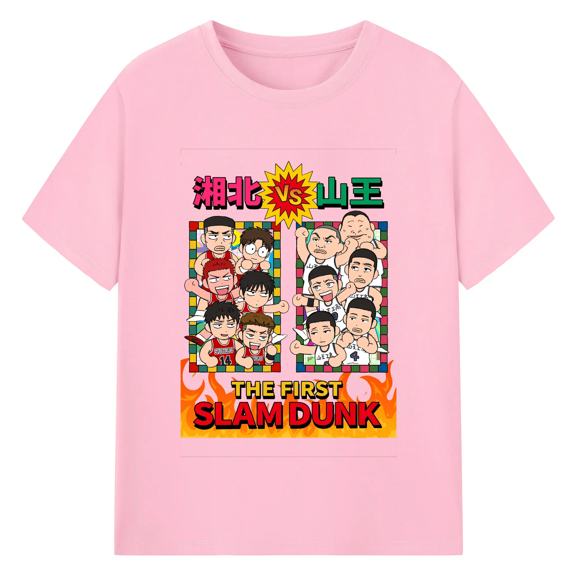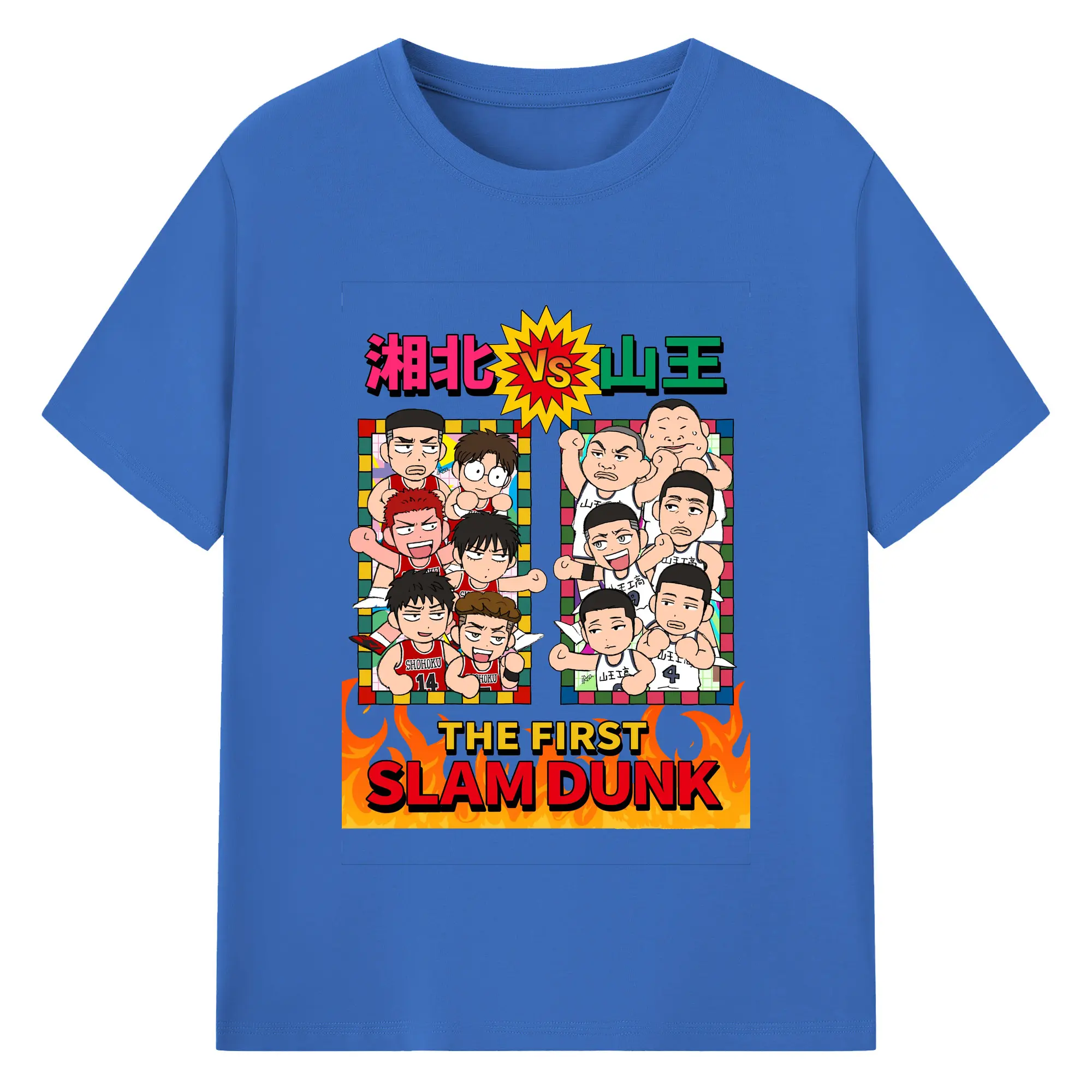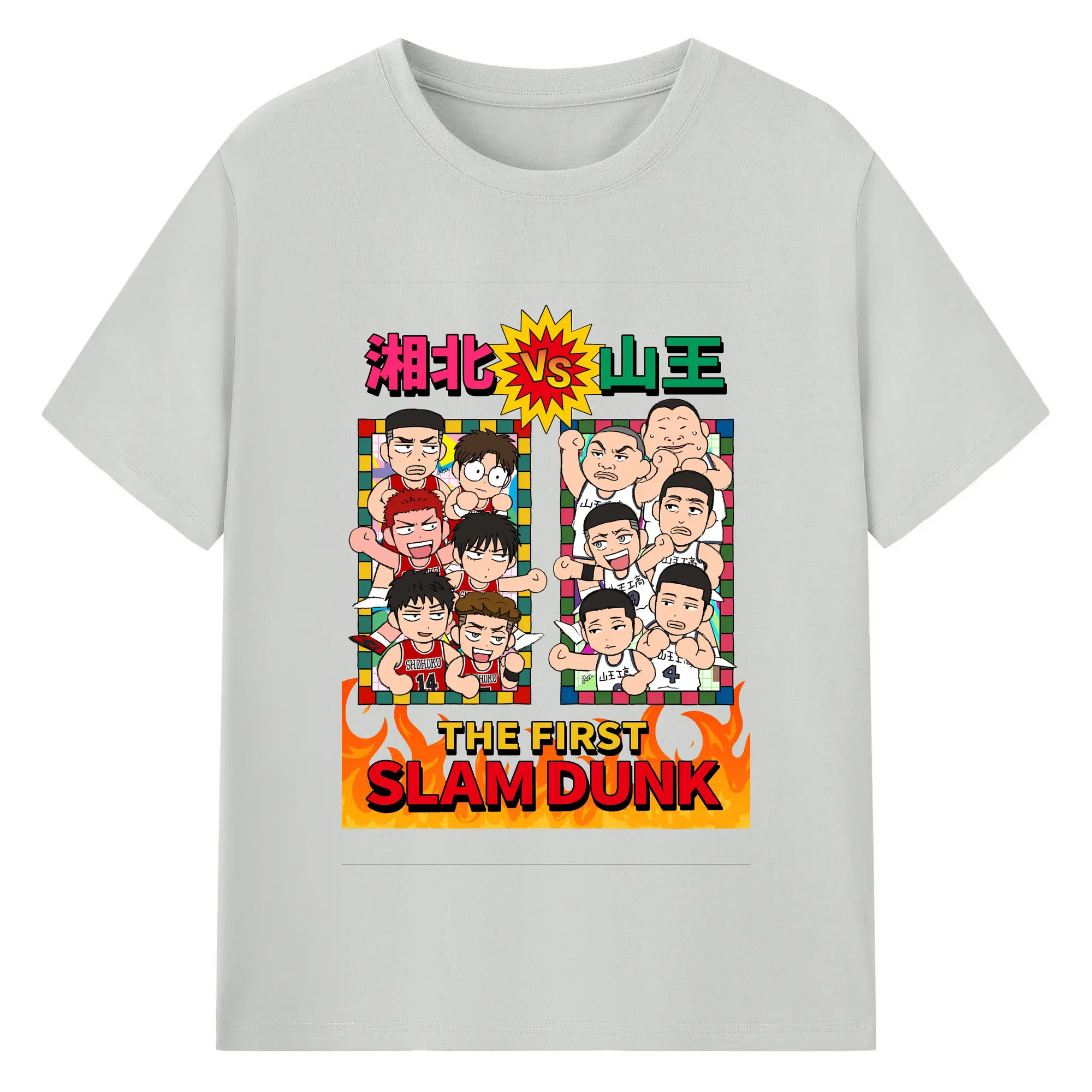 スラムダンク 全国大会湘北VS山王 デフォルメ - 綿100% 半袖Tシャツ ・ フロントプリント ・ 快適 通気性 ・ 日常使い 散歩 スポーツ用