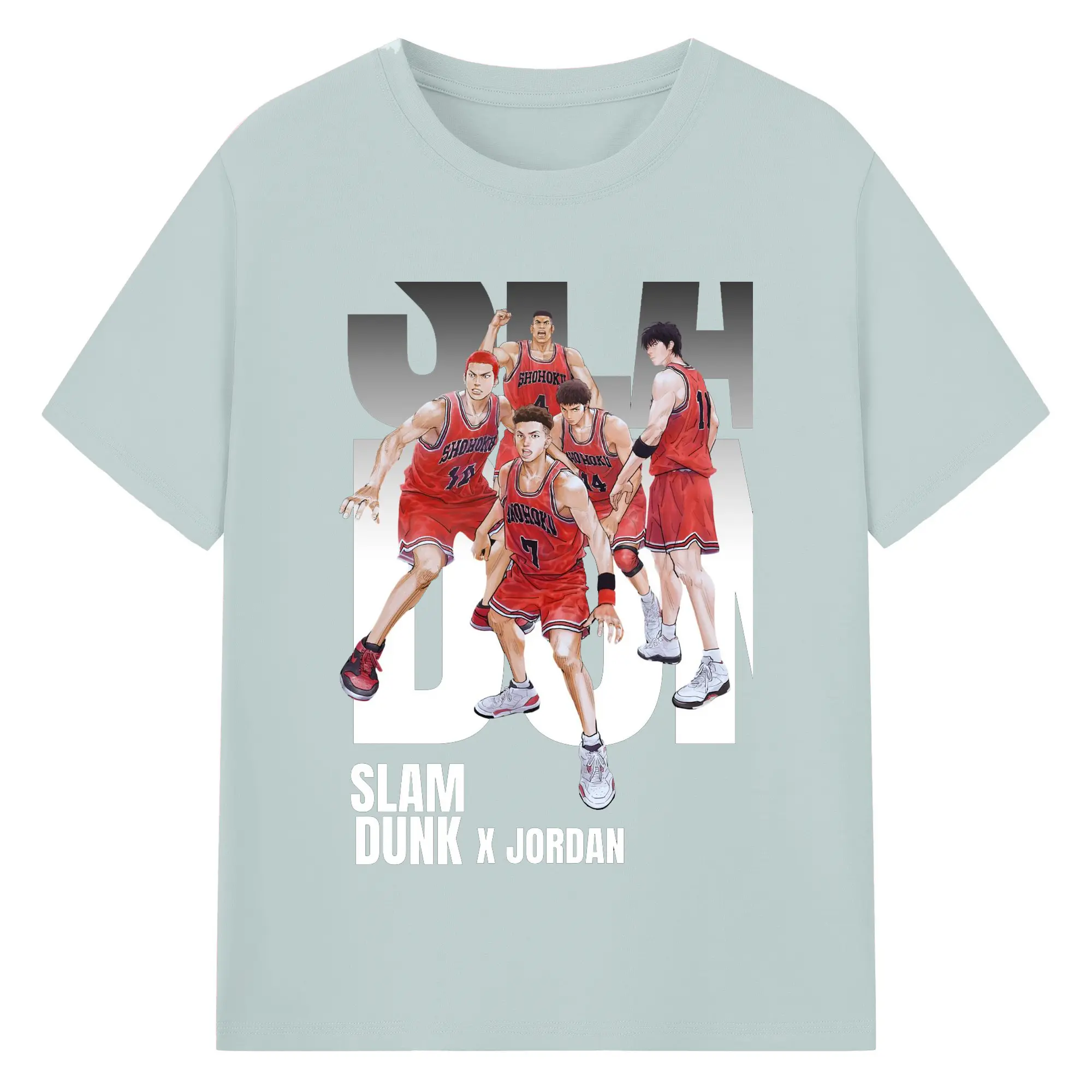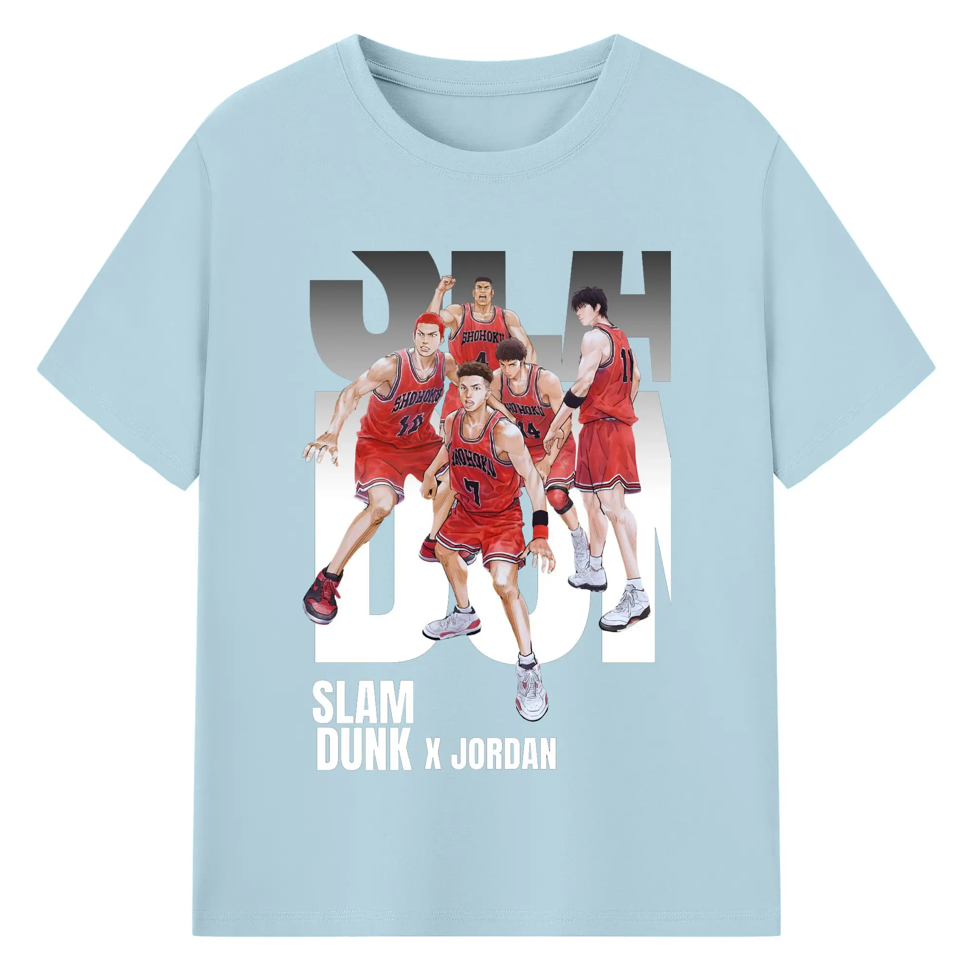 スラムダンク 映画 湘北バスケ部 - 綿100% 半袖Tシャツ ・ フロントプリント ・ 快適 通気性 ・ 日常使い 散歩 スポーツ用