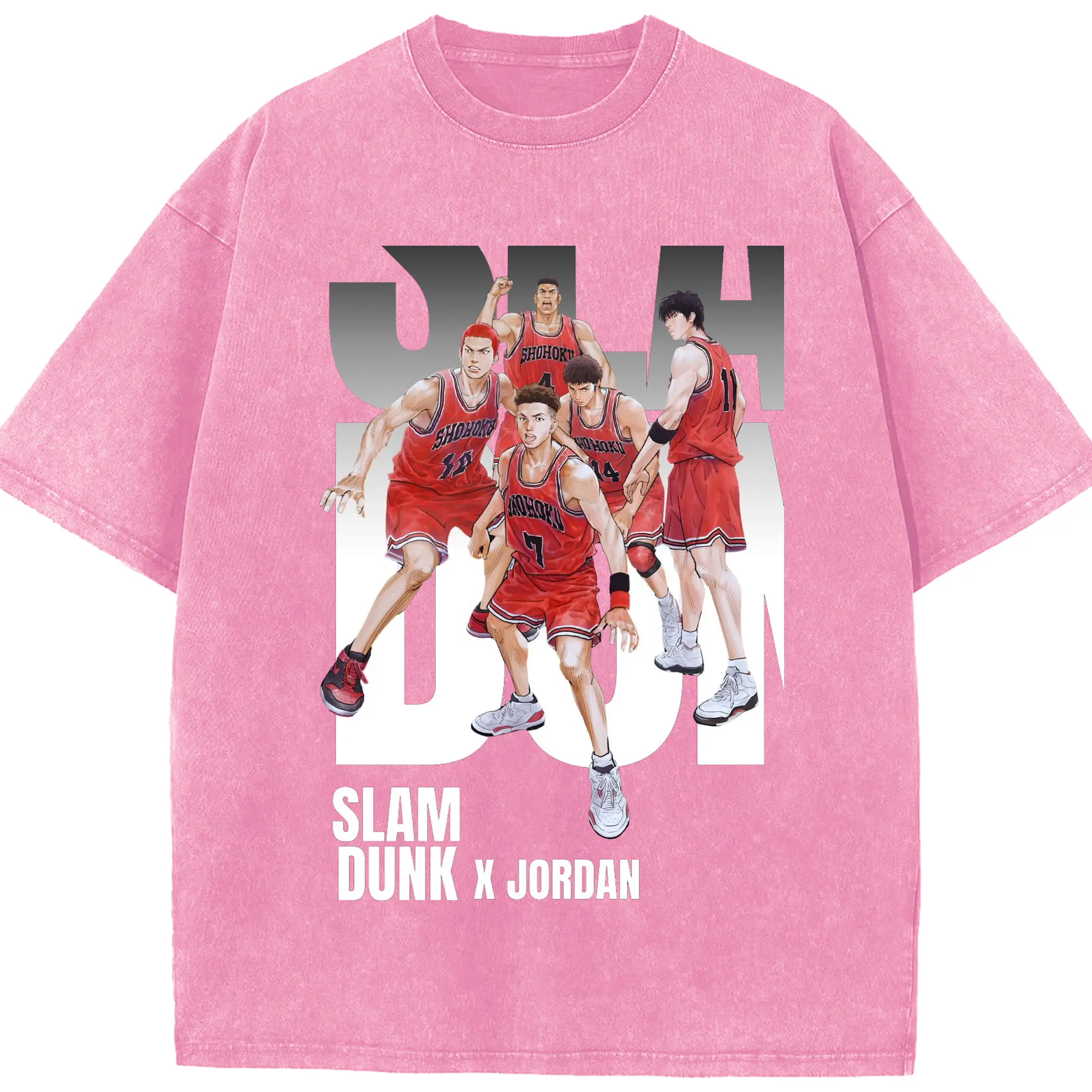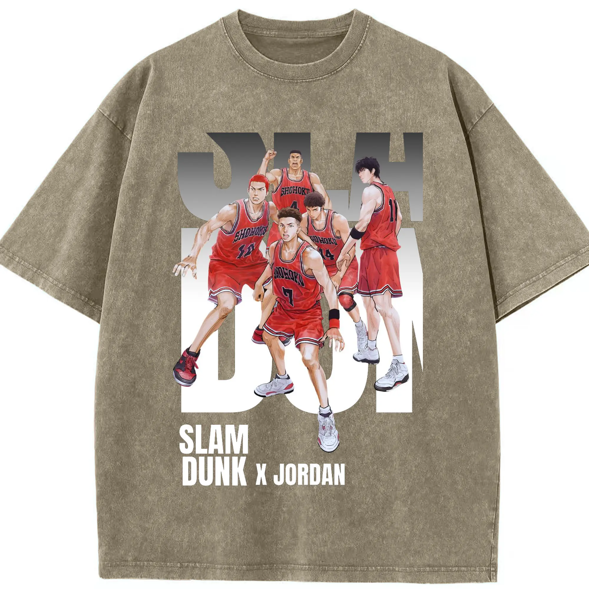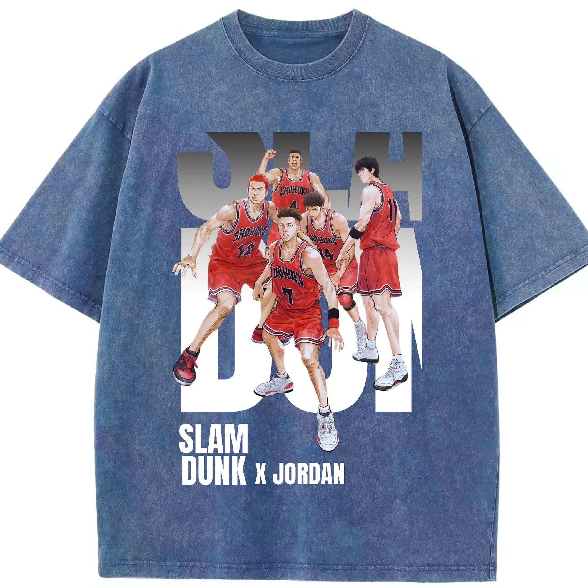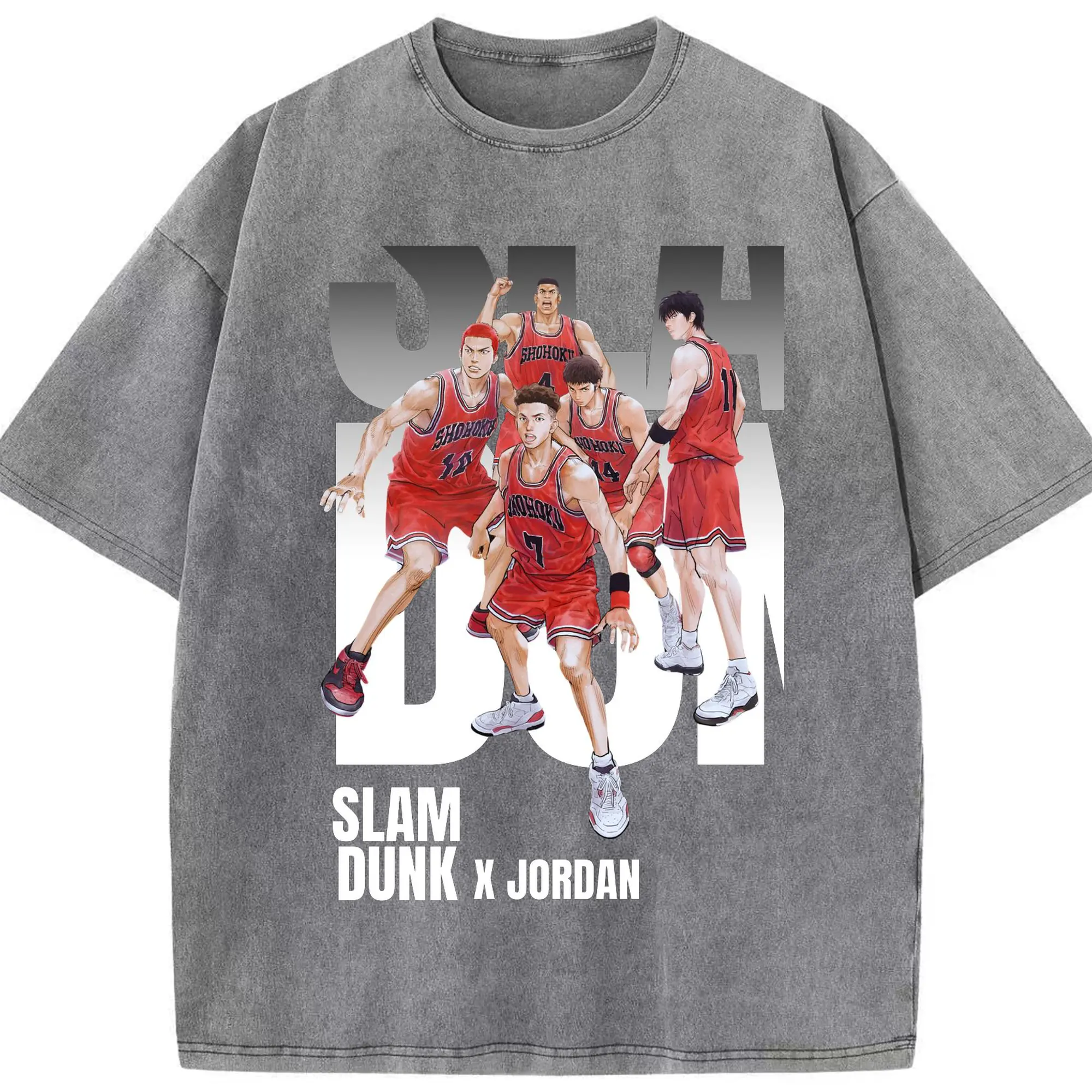 スラムダンク 映画 湘北バスケ部 - 綿100% ヴィンテージ風 半袖Tシャツ ・ フロントプリント ・ 柔らか肌触り ・ 通気性 快適 ・ スポーツ カジュアル 外出用
