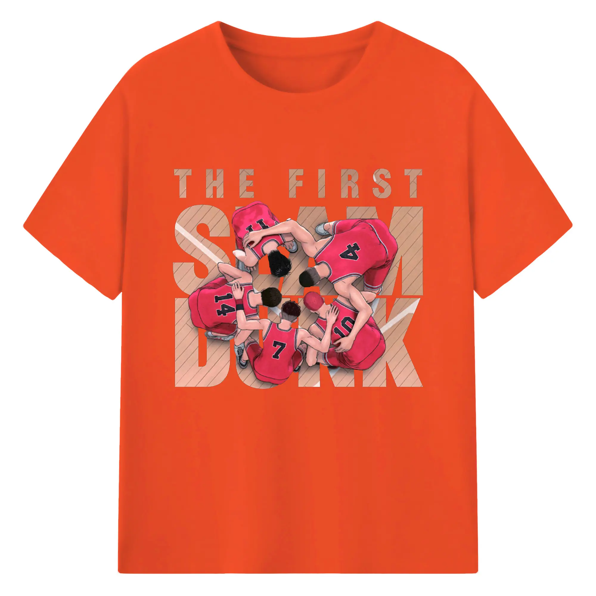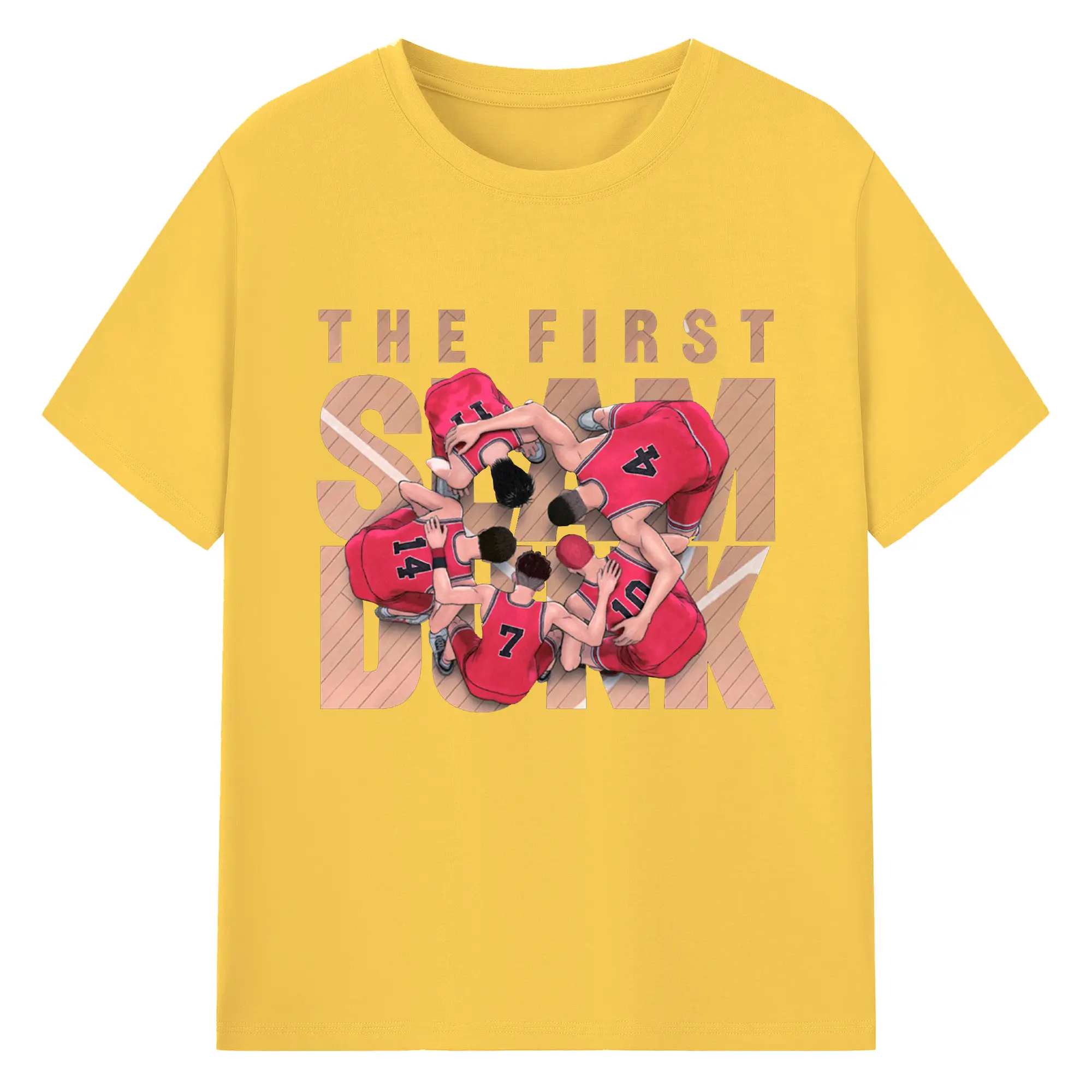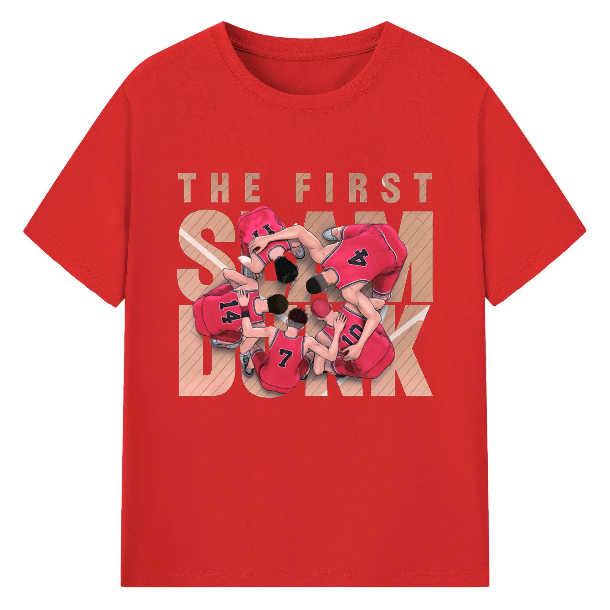 スラムダンク 映画 湘北バスケ部 - 綿100% 半袖Tシャツ ・ フロントプリント ・ 快適 通気性 ・ 日常使い 散歩 スポーツ用