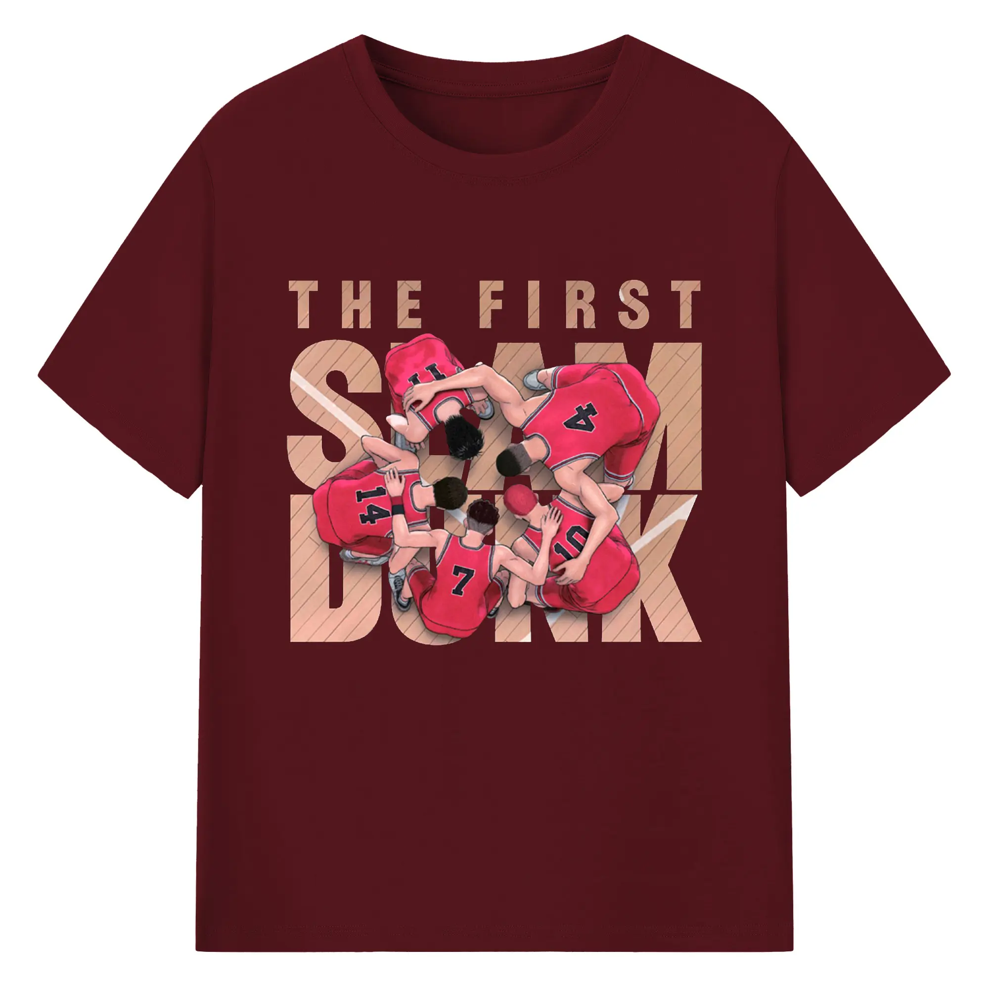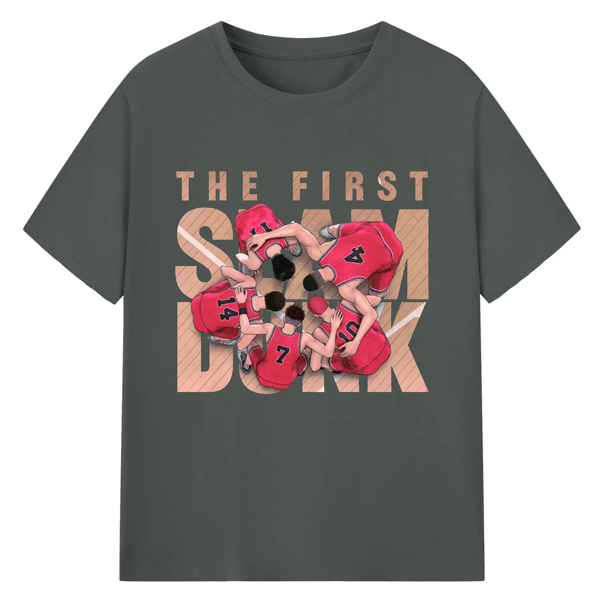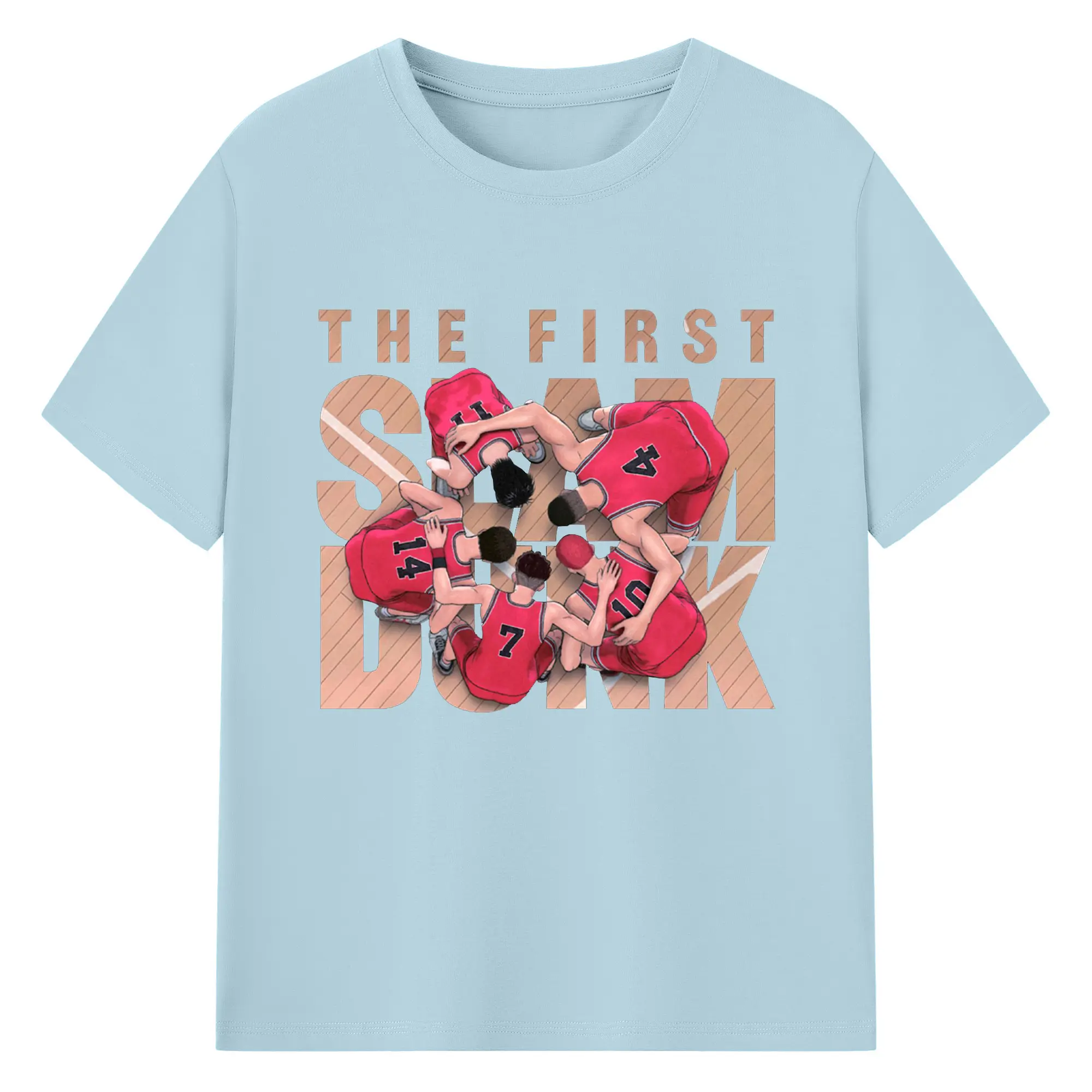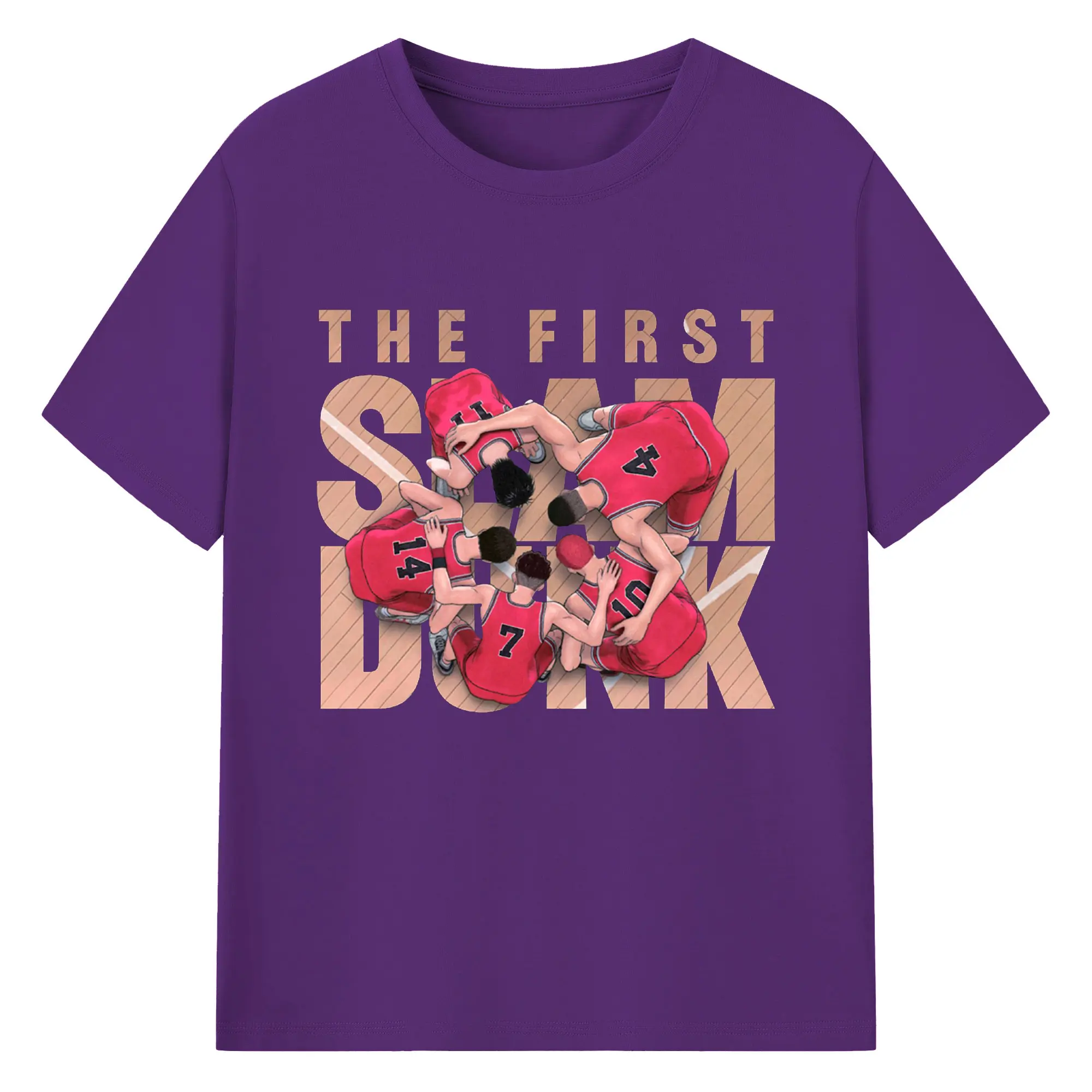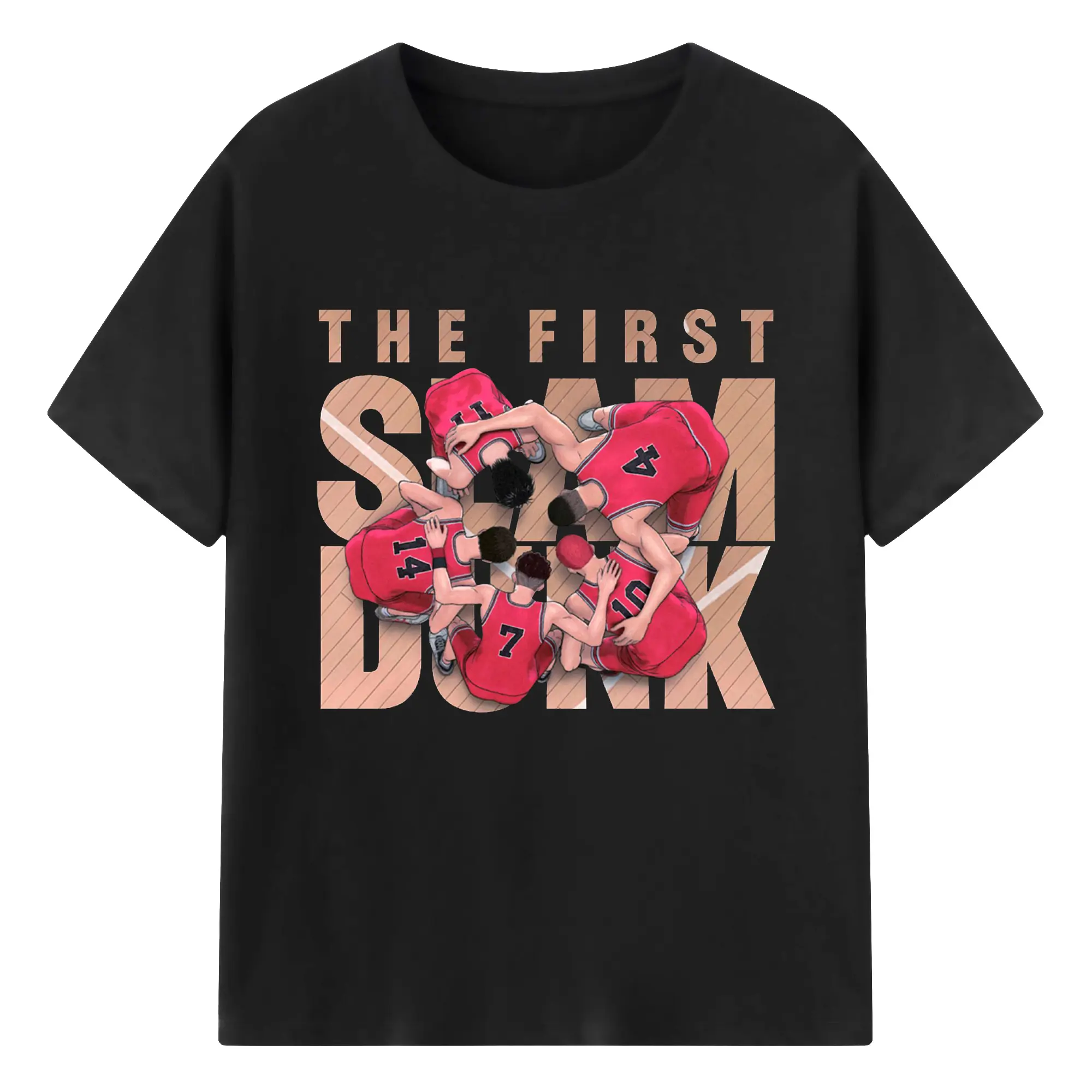 スラムダンク 映画 湘北バスケ部 - 綿100% 半袖Tシャツ ・ フロントプリント ・ 快適 通気性 ・ 日常使い 散歩 スポーツ用