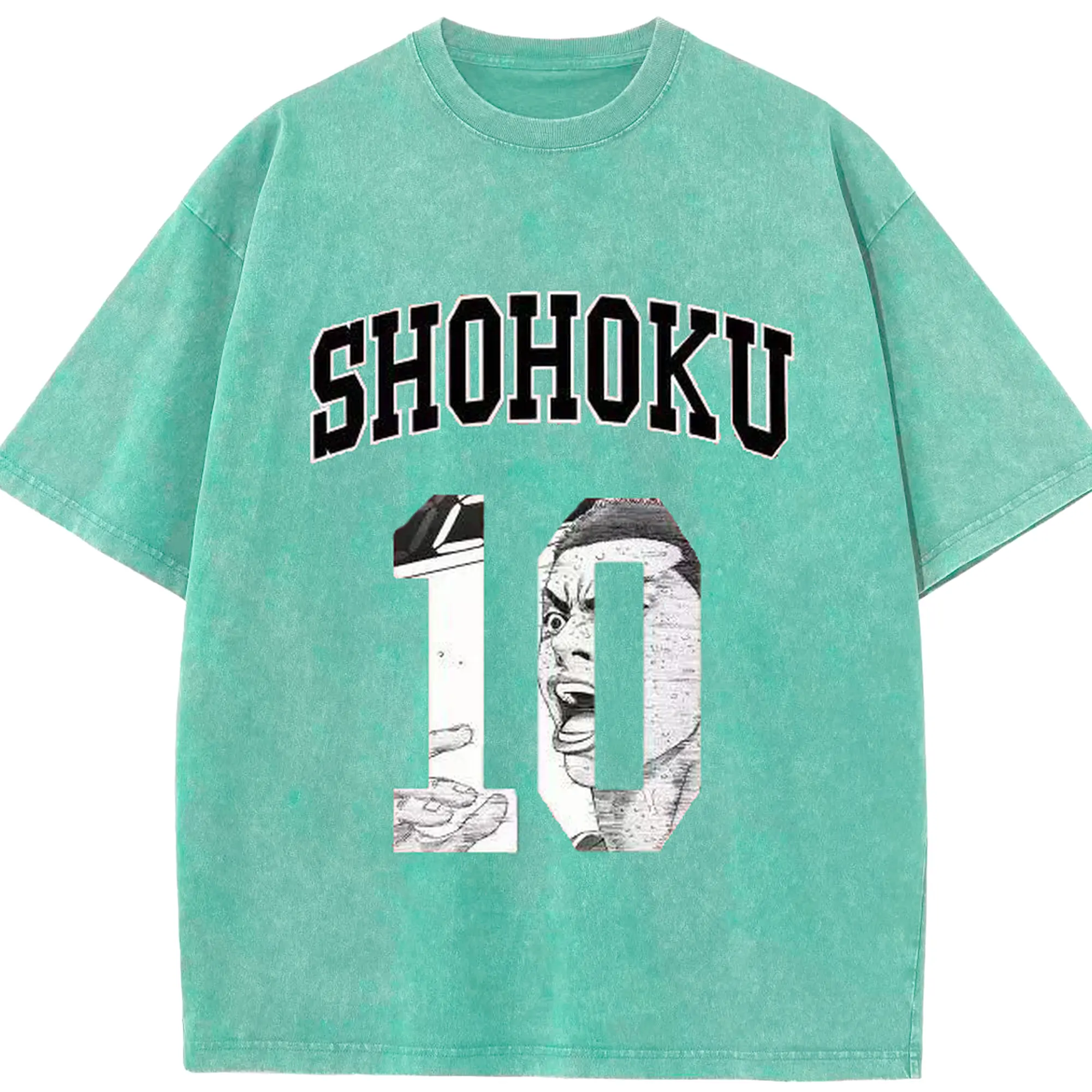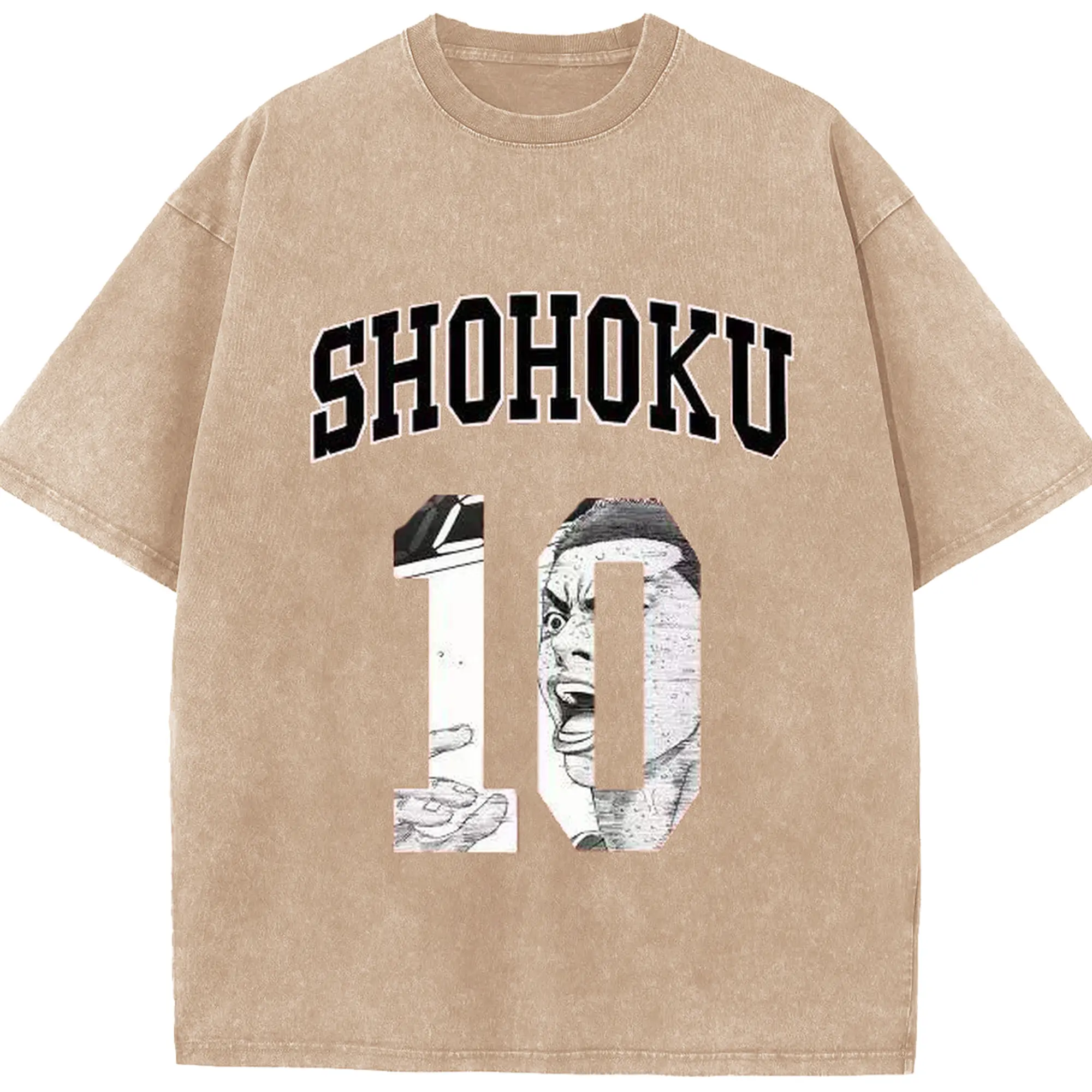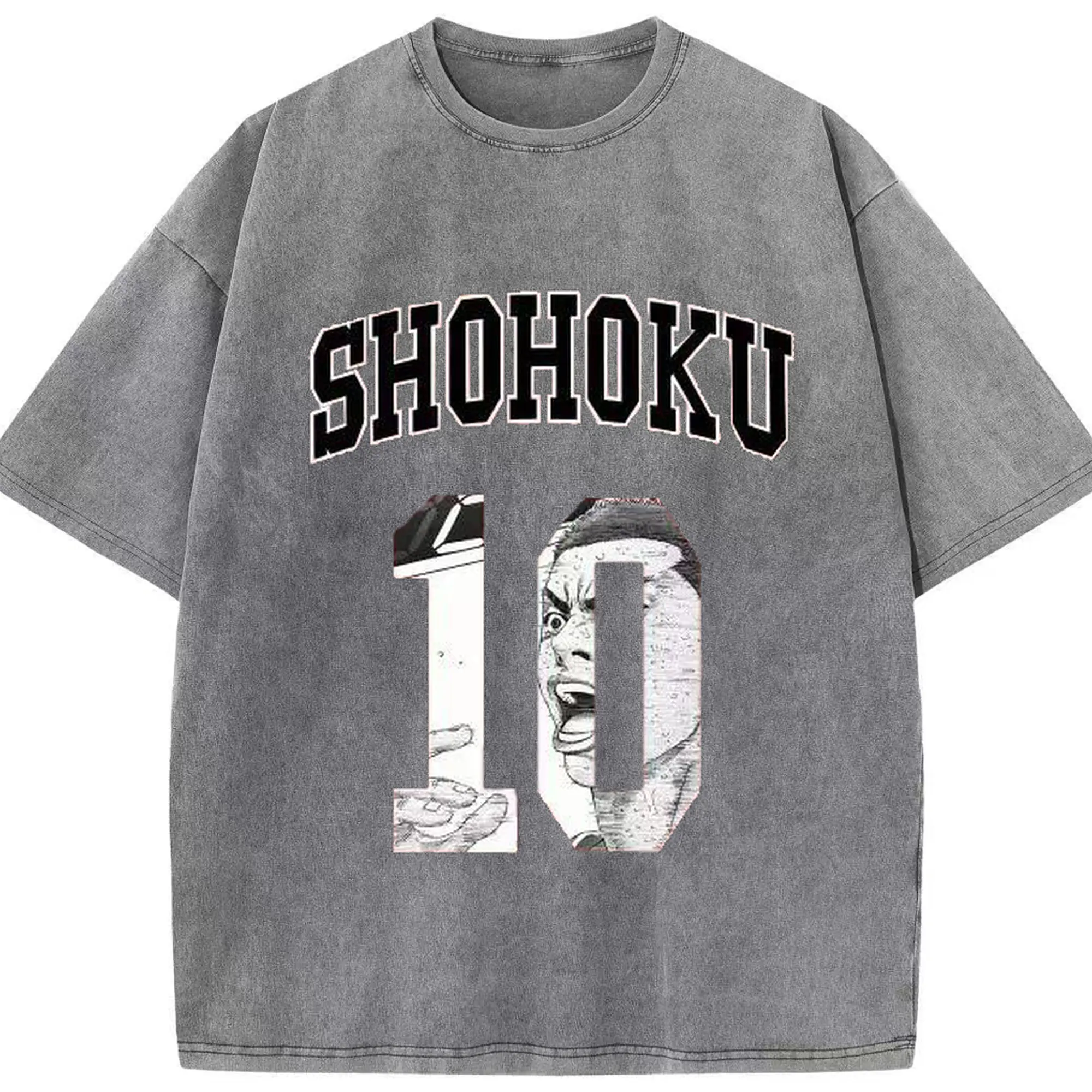 スラムダンク 櫻木花道 10番 - 綿100% ヴィンテージ風 半袖Tシャツ ・ フロントプリント ・ 柔らか肌触り ・ 通気性 快適 ・ スポーツ カジュアル 外出用
