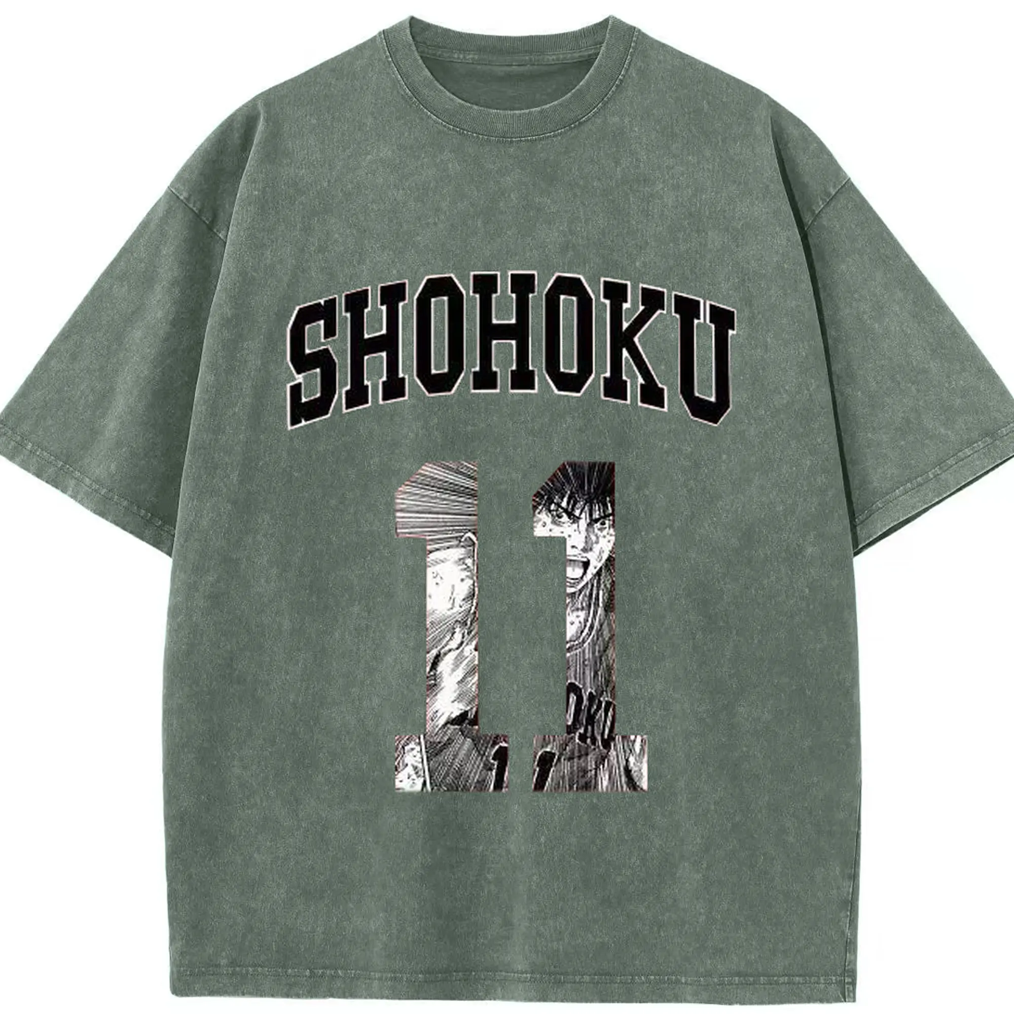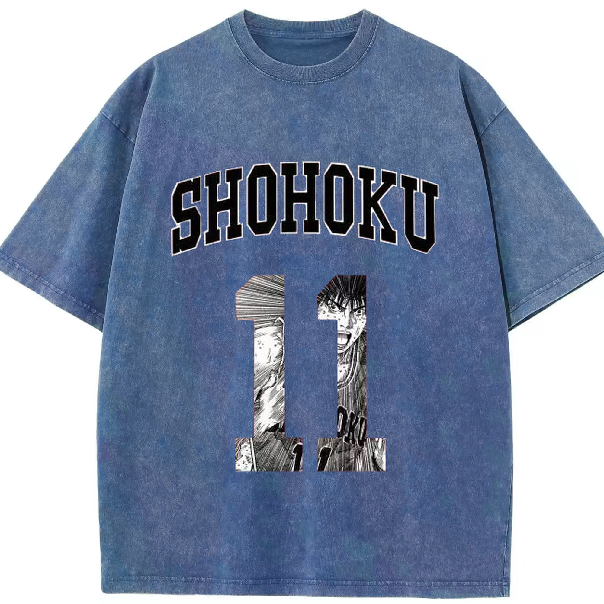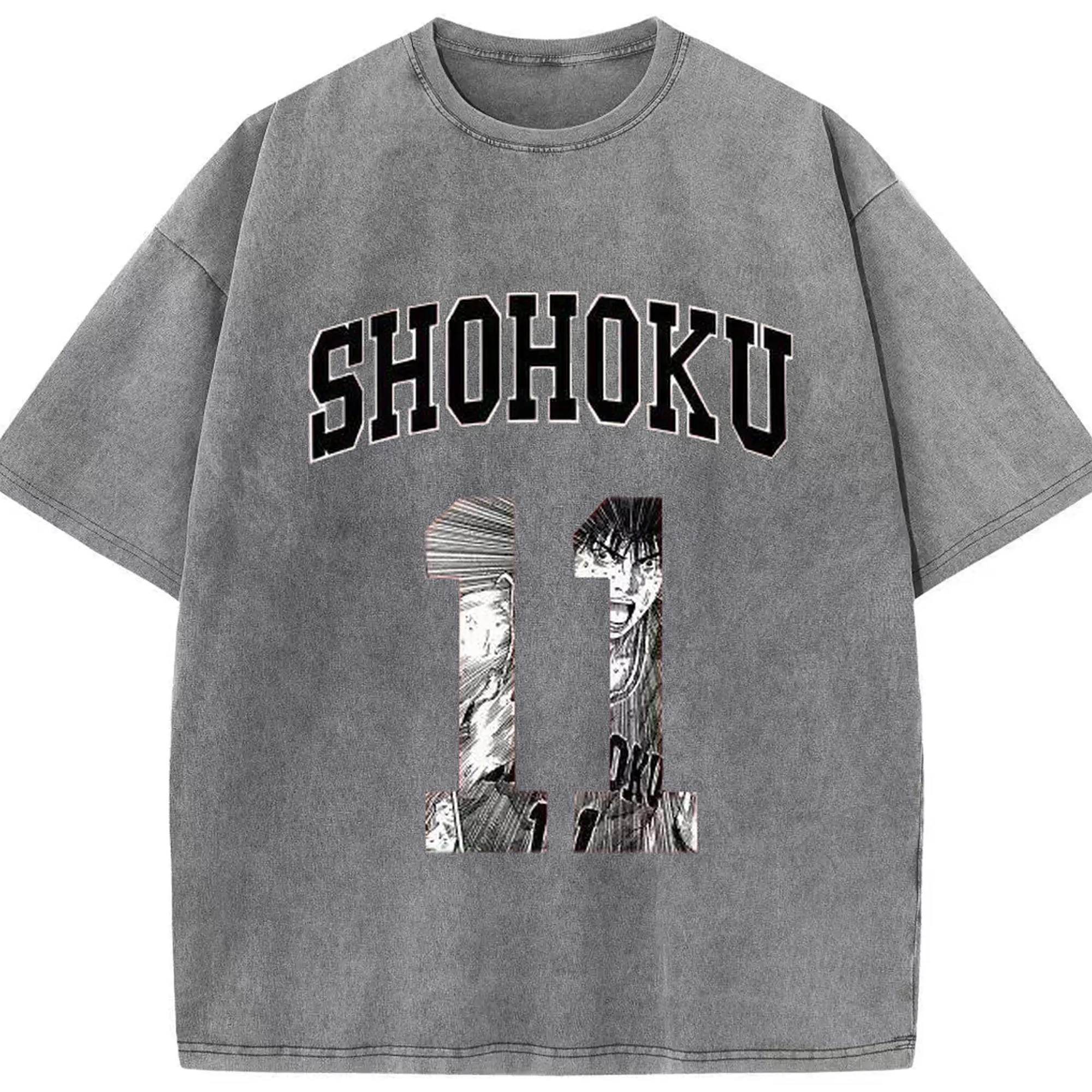 スラムダンク 流川楓 11番 - 綿100% ヴィンテージ風 半袖Tシャツ ・ フロントプリント ・ 柔らか肌触り ・ 通気性 快適 ・ スポーツ カジュアル 外出用