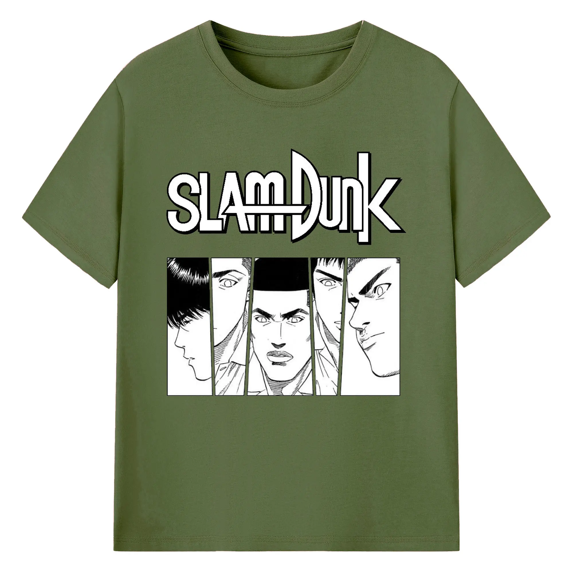 スラムダンク 湘北バスケ部 - 綿100% 半袖Tシャツ ・ フロントプリント ・ 快適 通気性 ・ 日常使い 散歩 スポーツ用