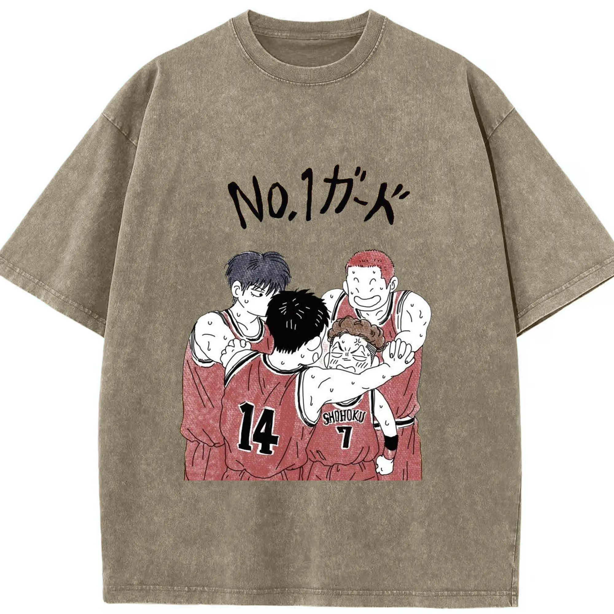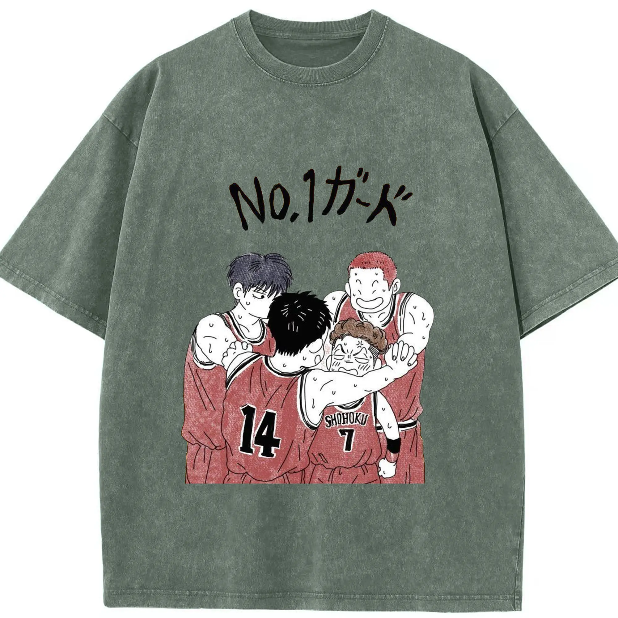 スラムダンク NO.1ガード 宮城 宮城リョータ - 綿100% ヴィンテージ風 半袖Tシャツ ・ フロントプリント ・ 柔らか肌触り ・ 通気性 快適 ・ スポーツ カジュアル 外出用