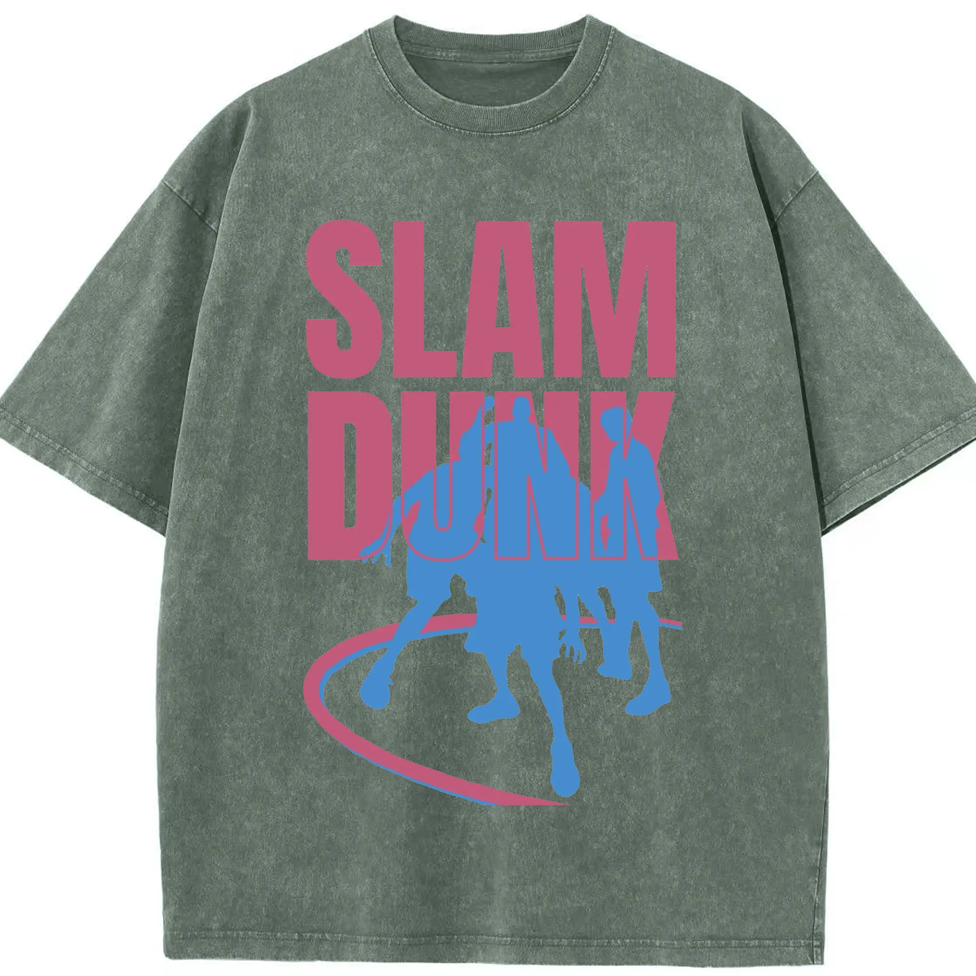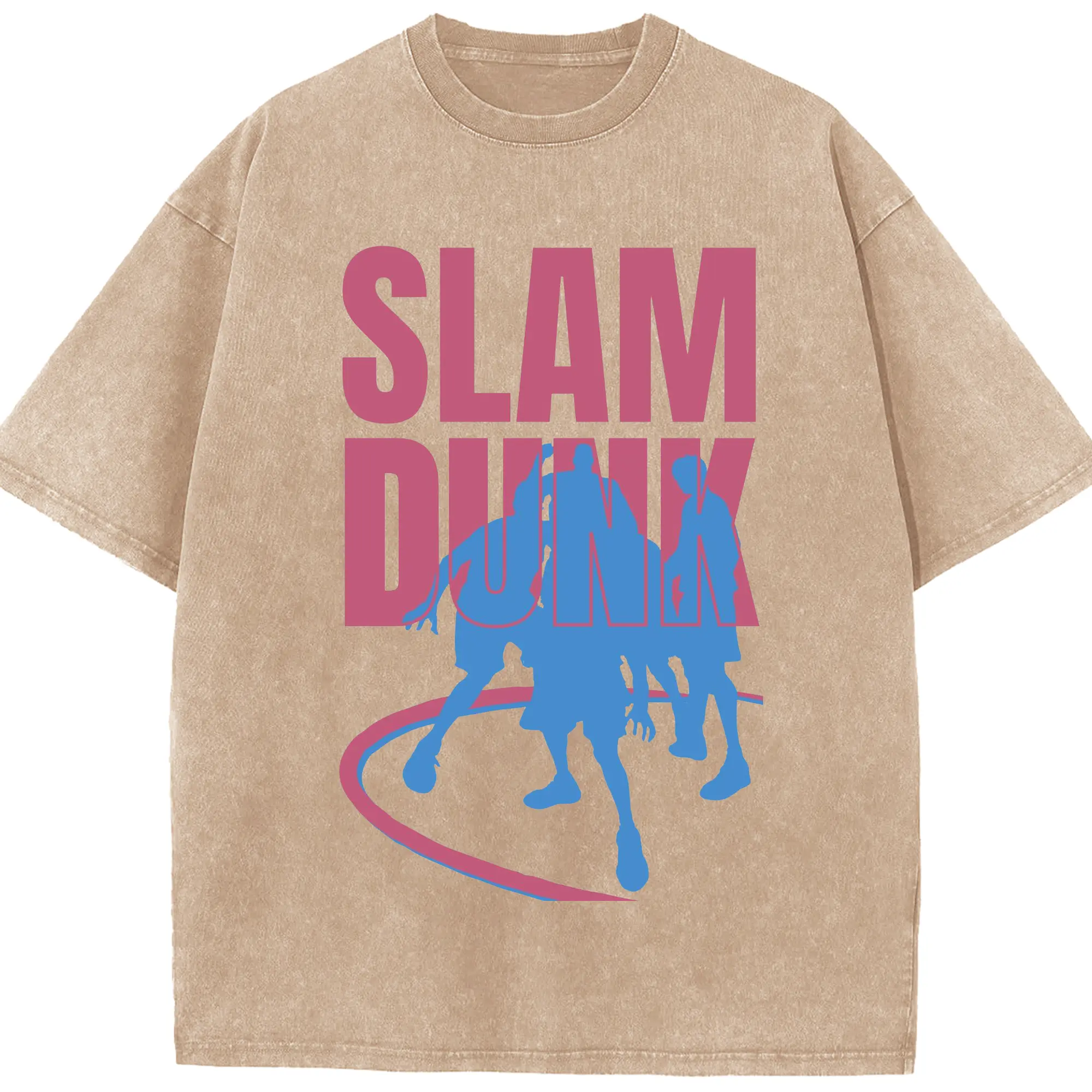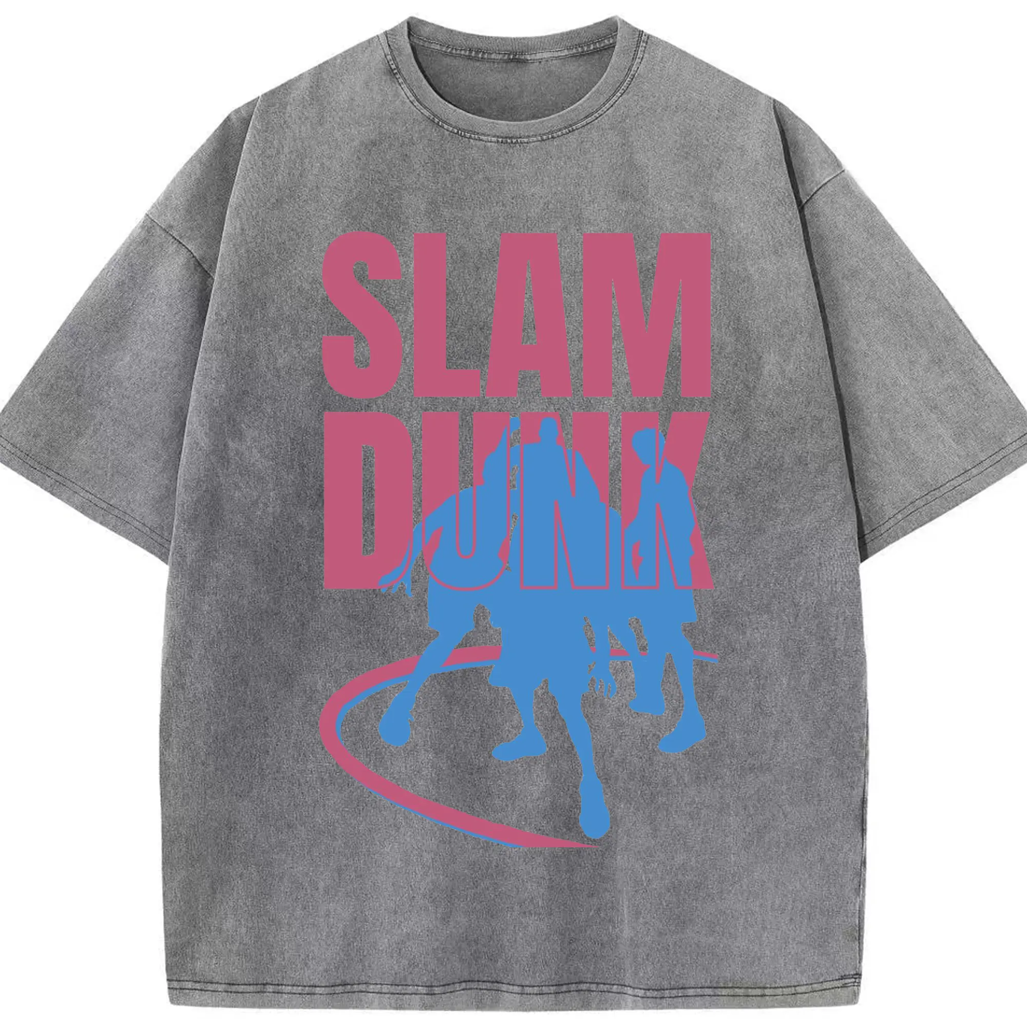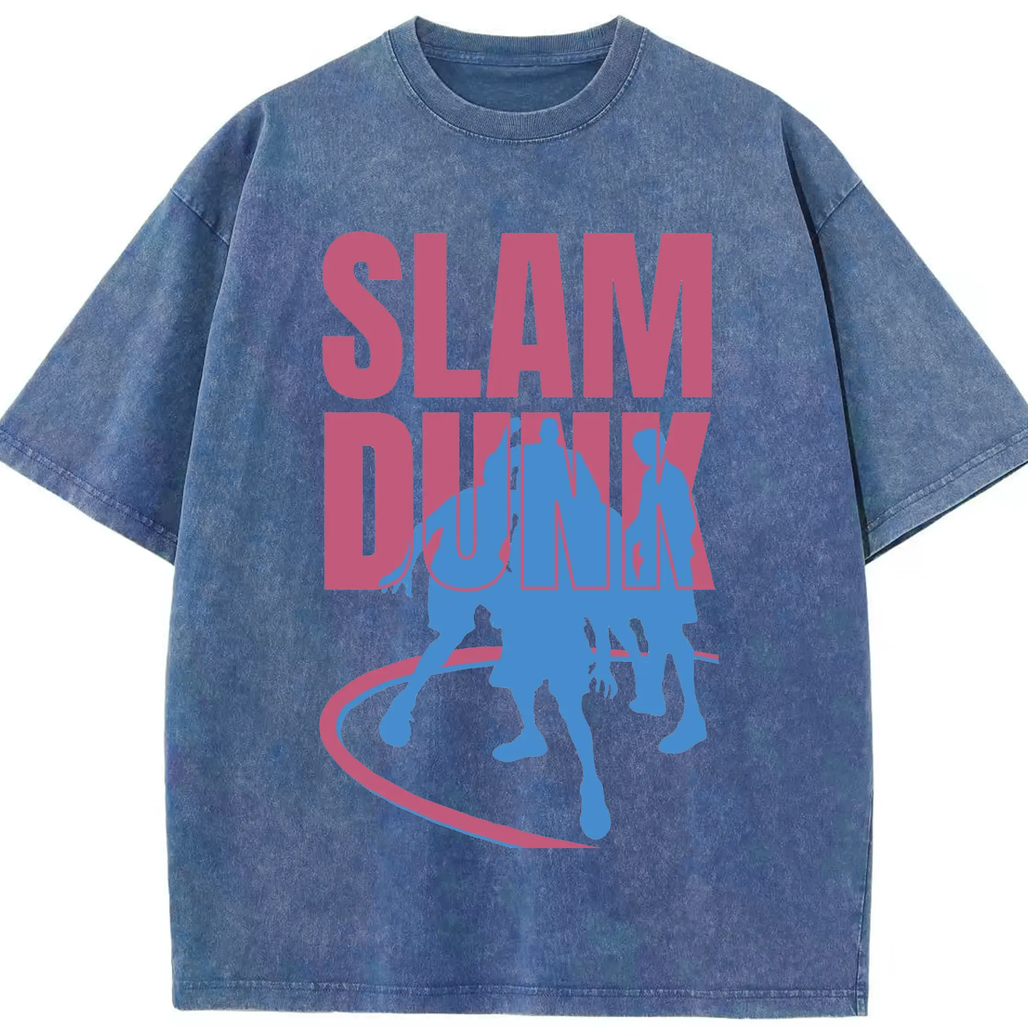スラムダンク - 綿100% ヴィンテージ風 半袖Tシャツ ・ フロントプリント ・ 柔らか肌触り ・ 通気性 快適 ・ スポーツ カジュアル 外出用