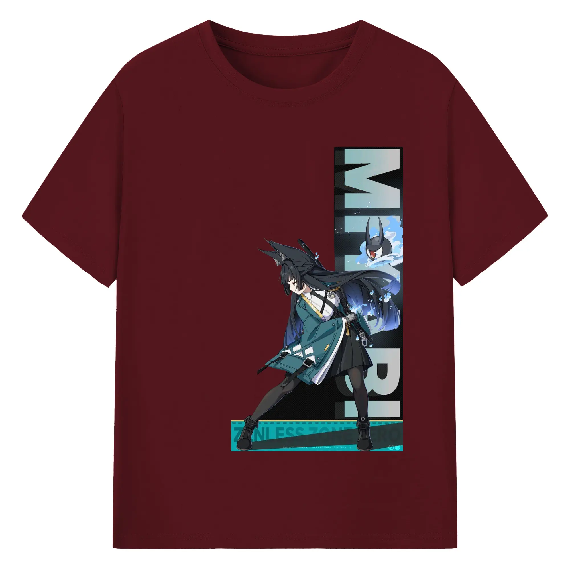 ゼンレスゾーンゼロ 星見 雅 - 綿100% ヴィンテージ風 半袖Tシャツ ・ フロントプリント ・ 柔らか肌触り ・ 通気性 快適 ・ スポーツ カジュアル 外出用