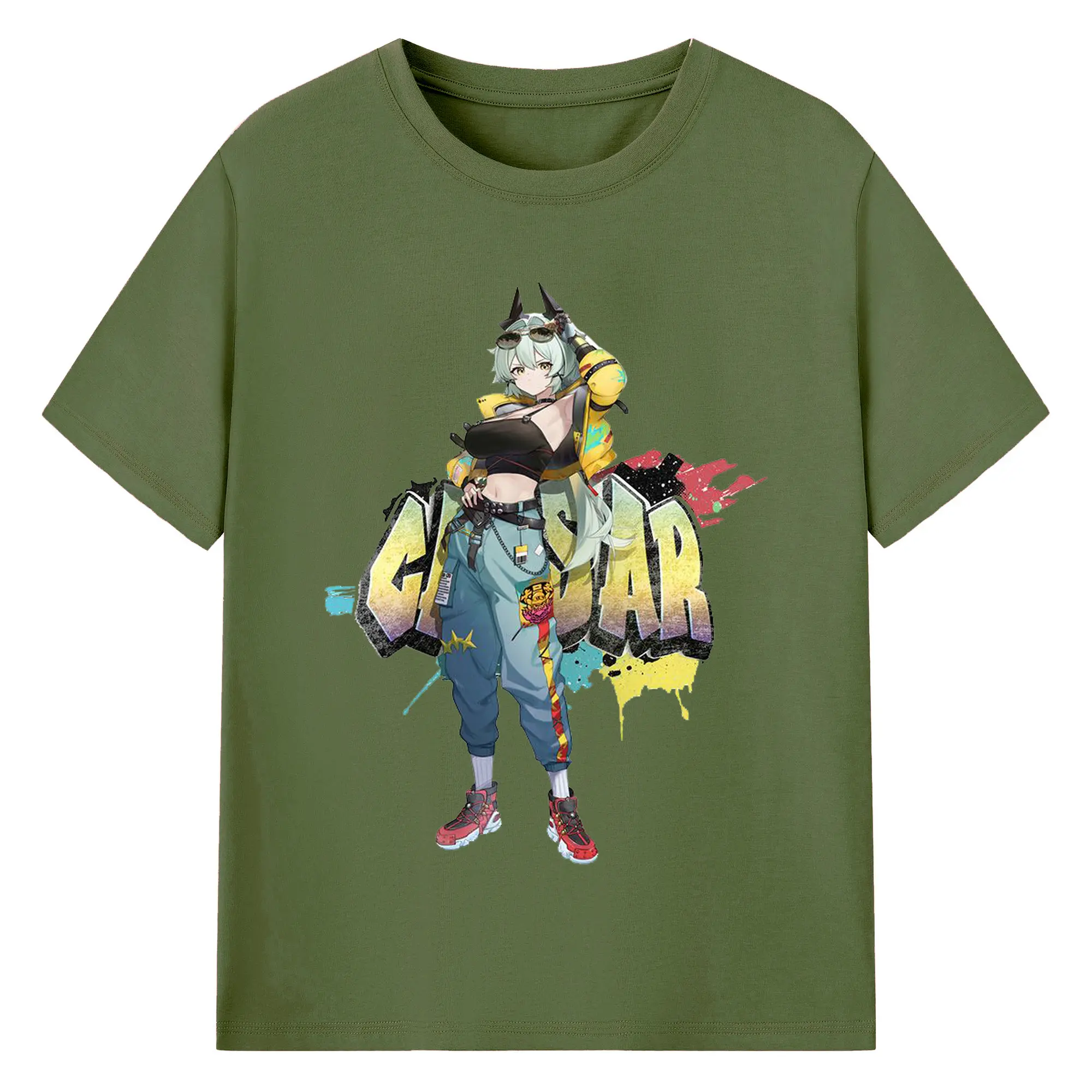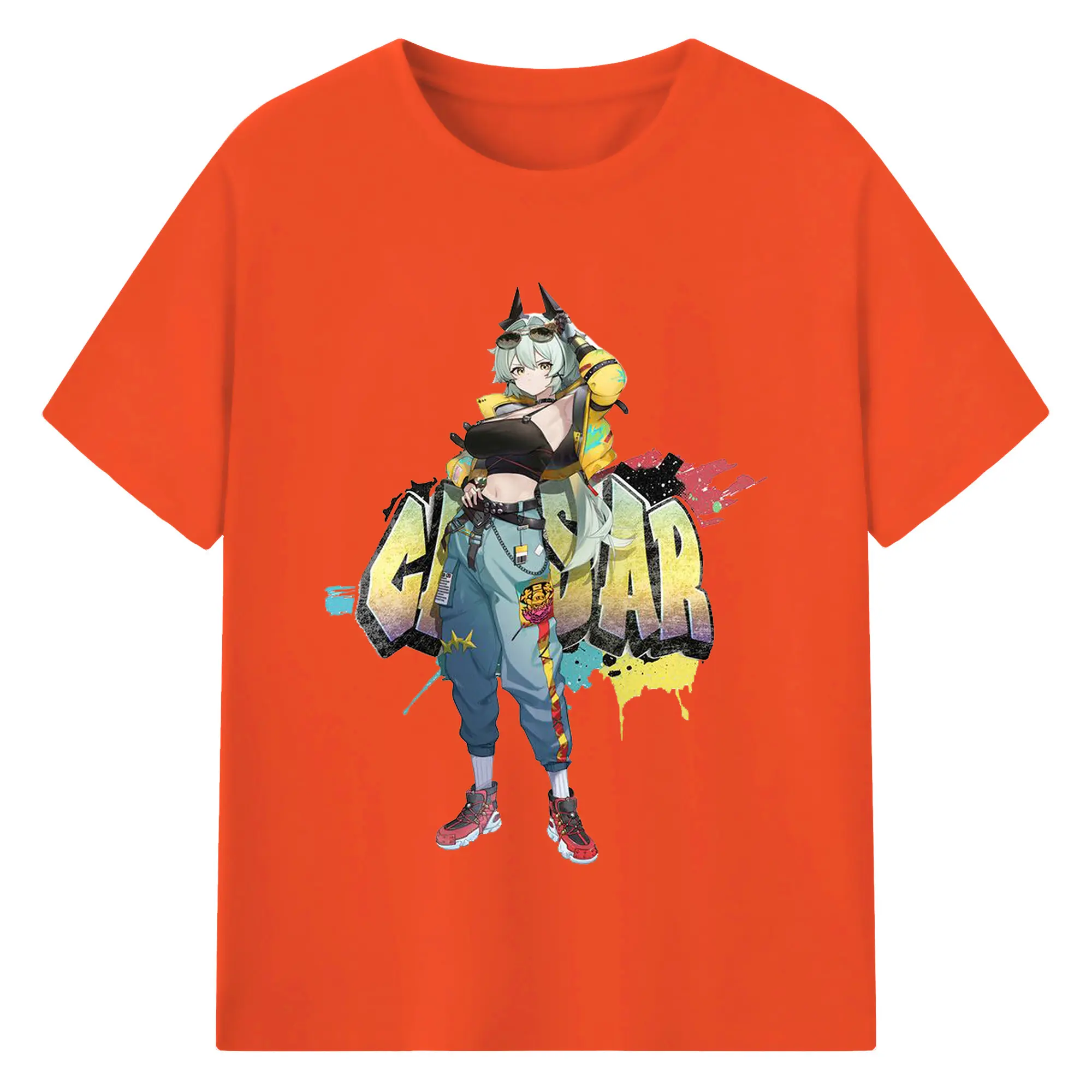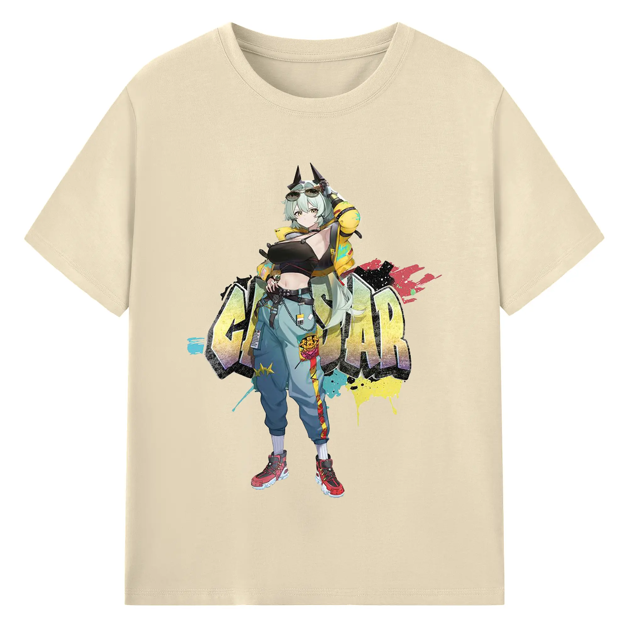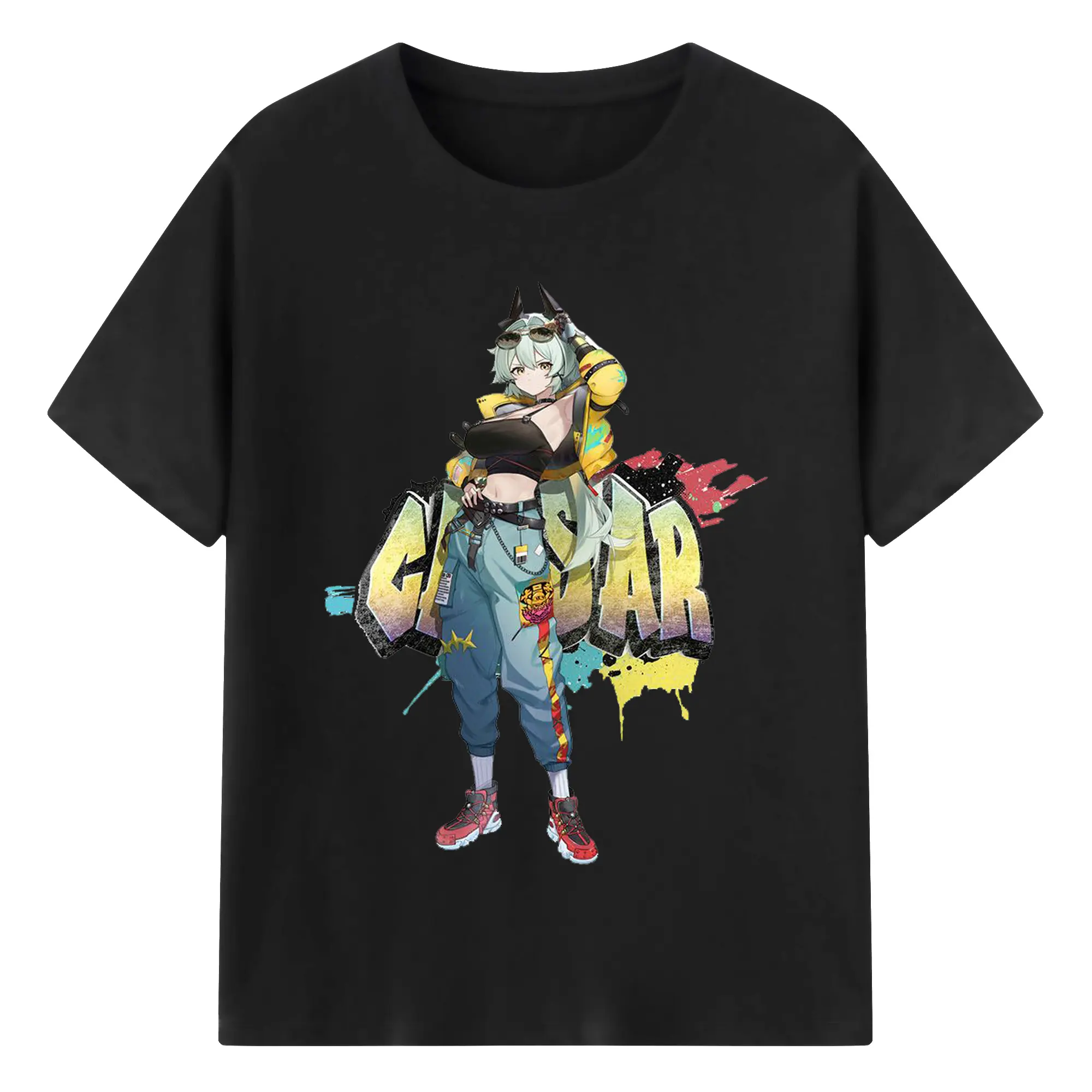 ゼンレスゾーンゼロ シーザー・キング - 綿100% ヴィンテージ風 半袖Tシャツ ・ フロントプリント ・ 柔らか肌触り ・ 通気性 快適 ・ スポーツ カジュアル 外出用