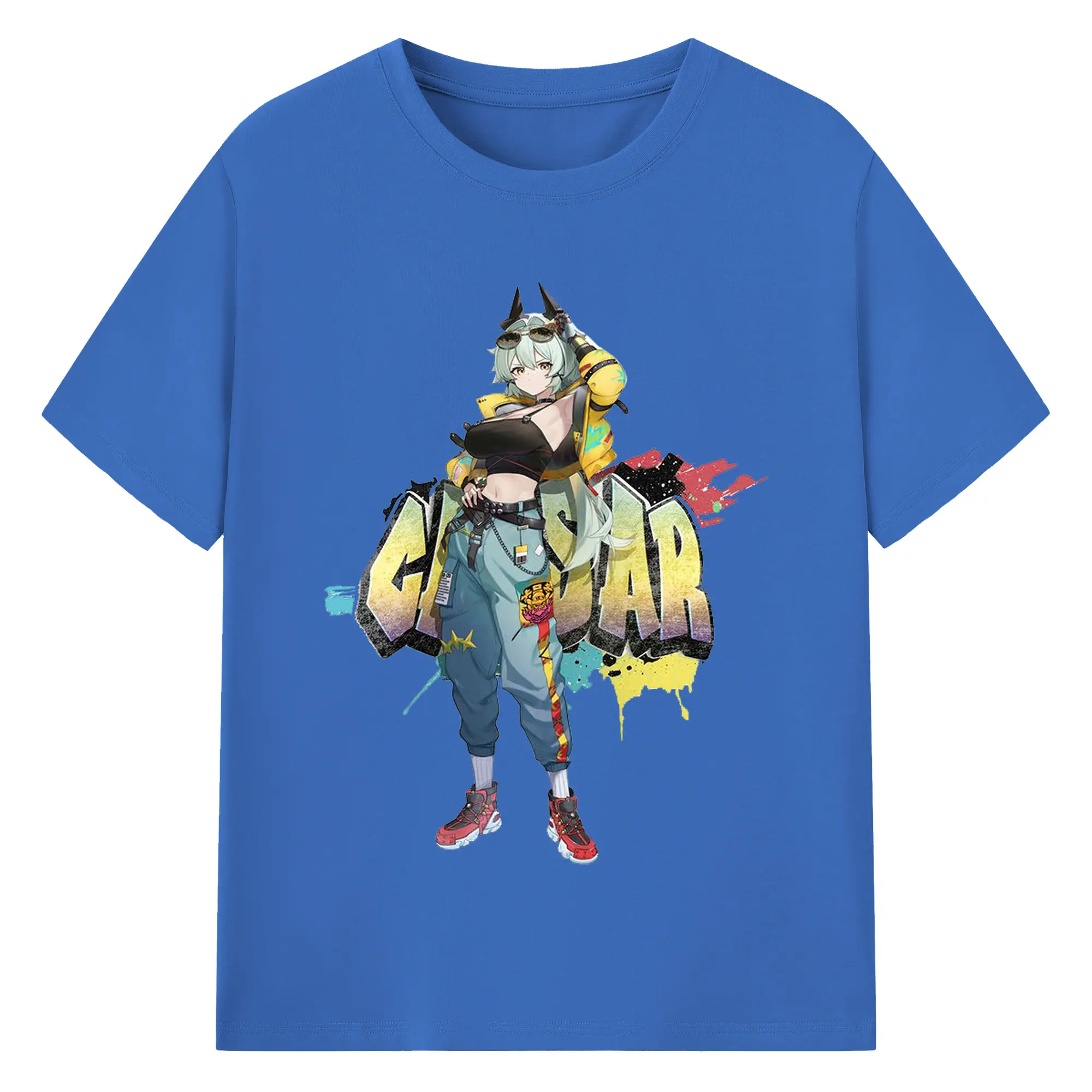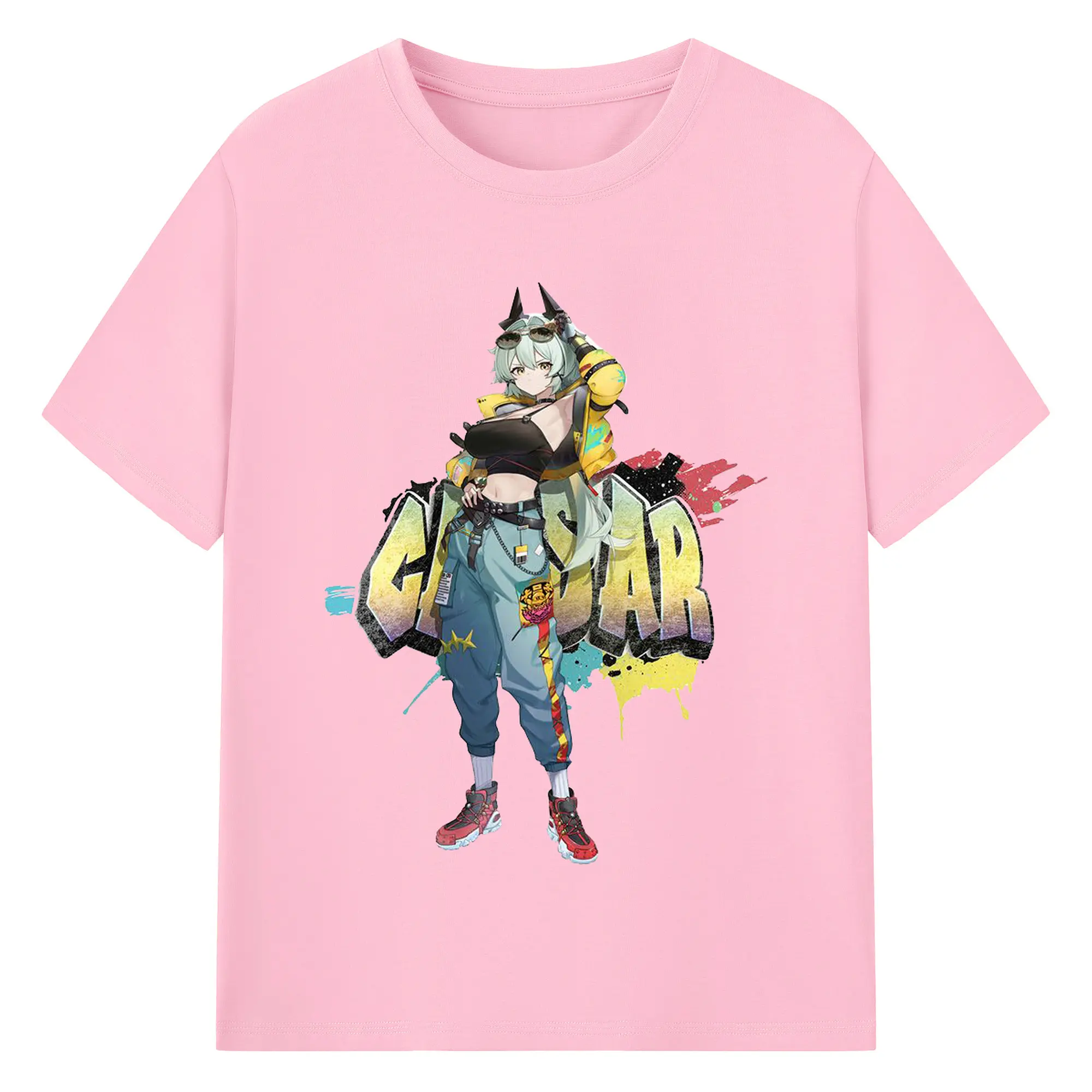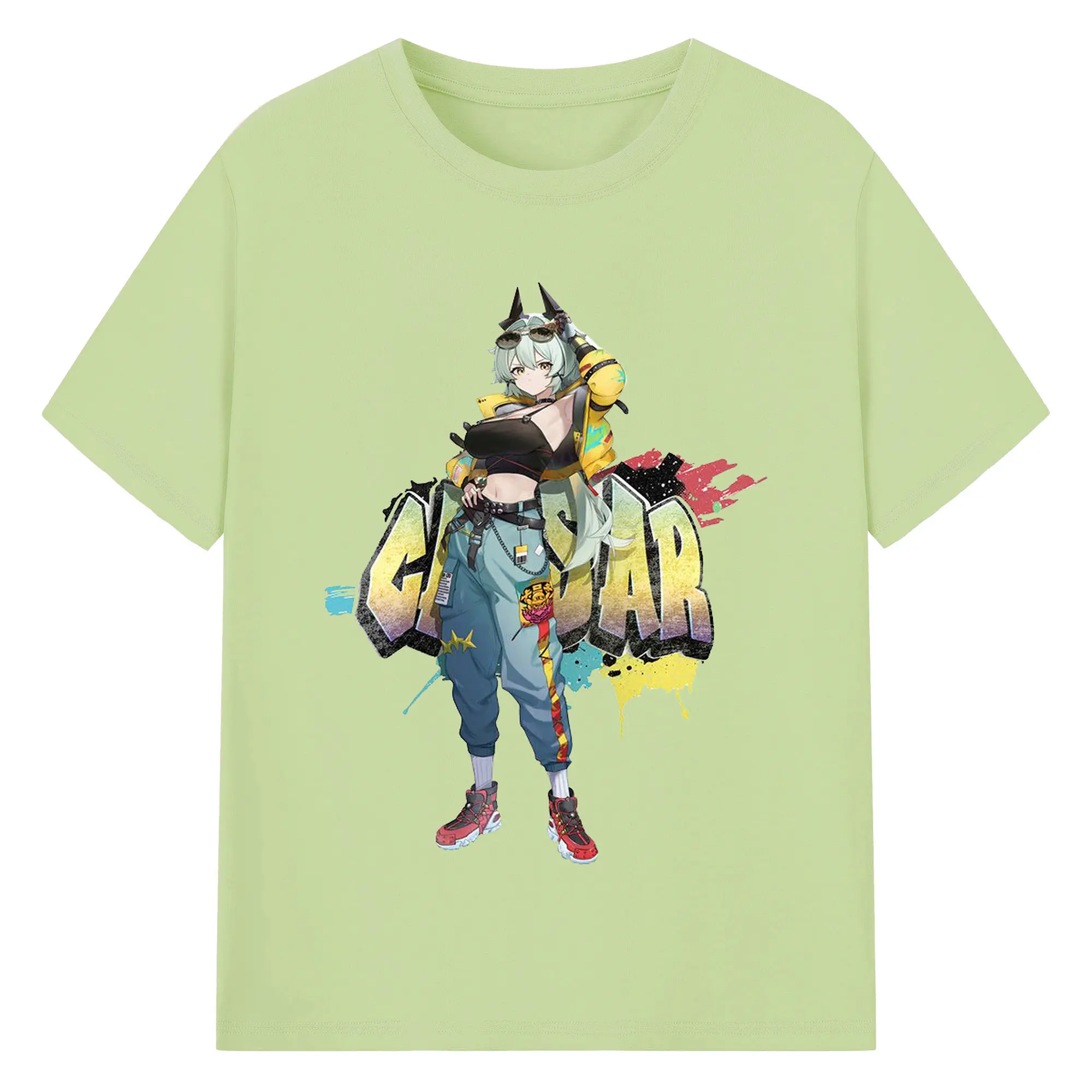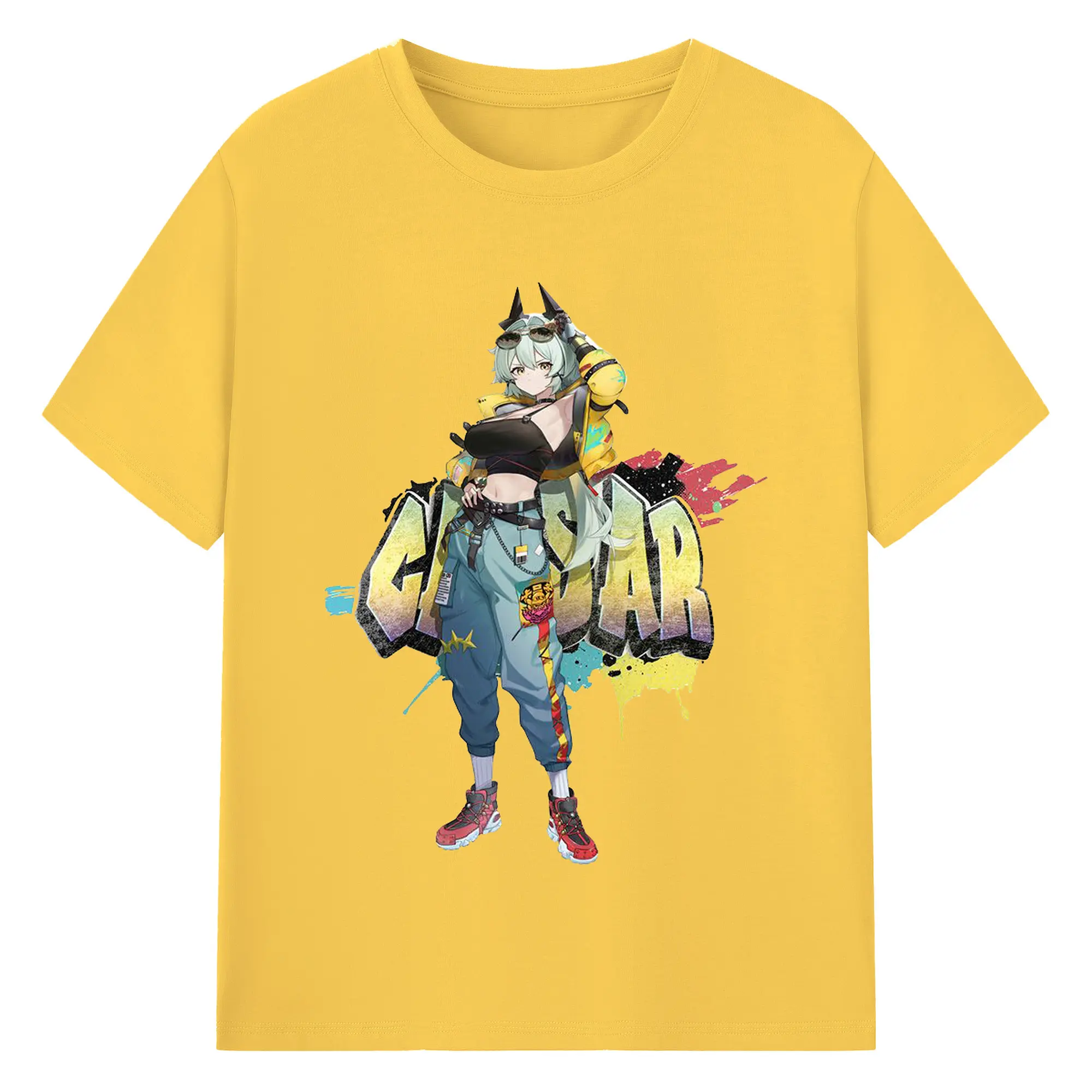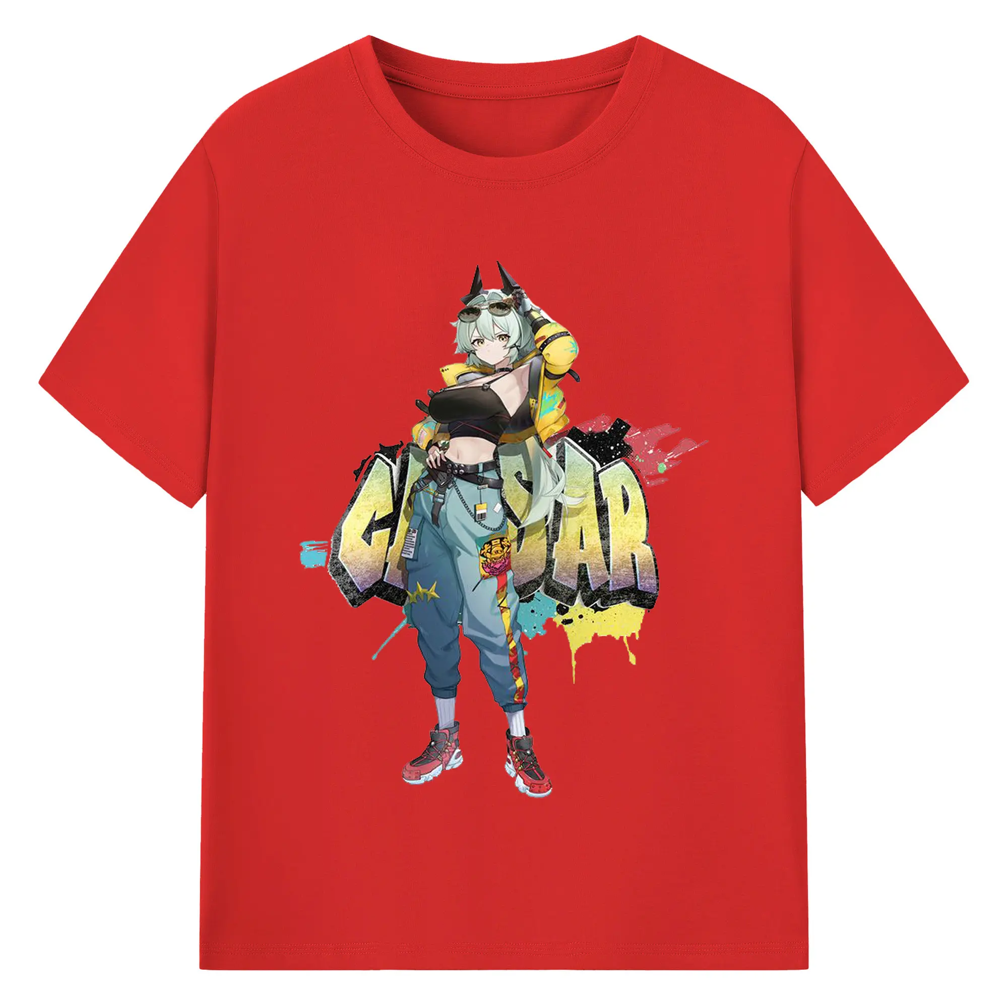 ゼンレスゾーンゼロ シーザー・キング - 綿100% ヴィンテージ風 半袖Tシャツ ・ フロントプリント ・ 柔らか肌触り ・ 通気性 快適 ・ スポーツ カジュアル 外出用