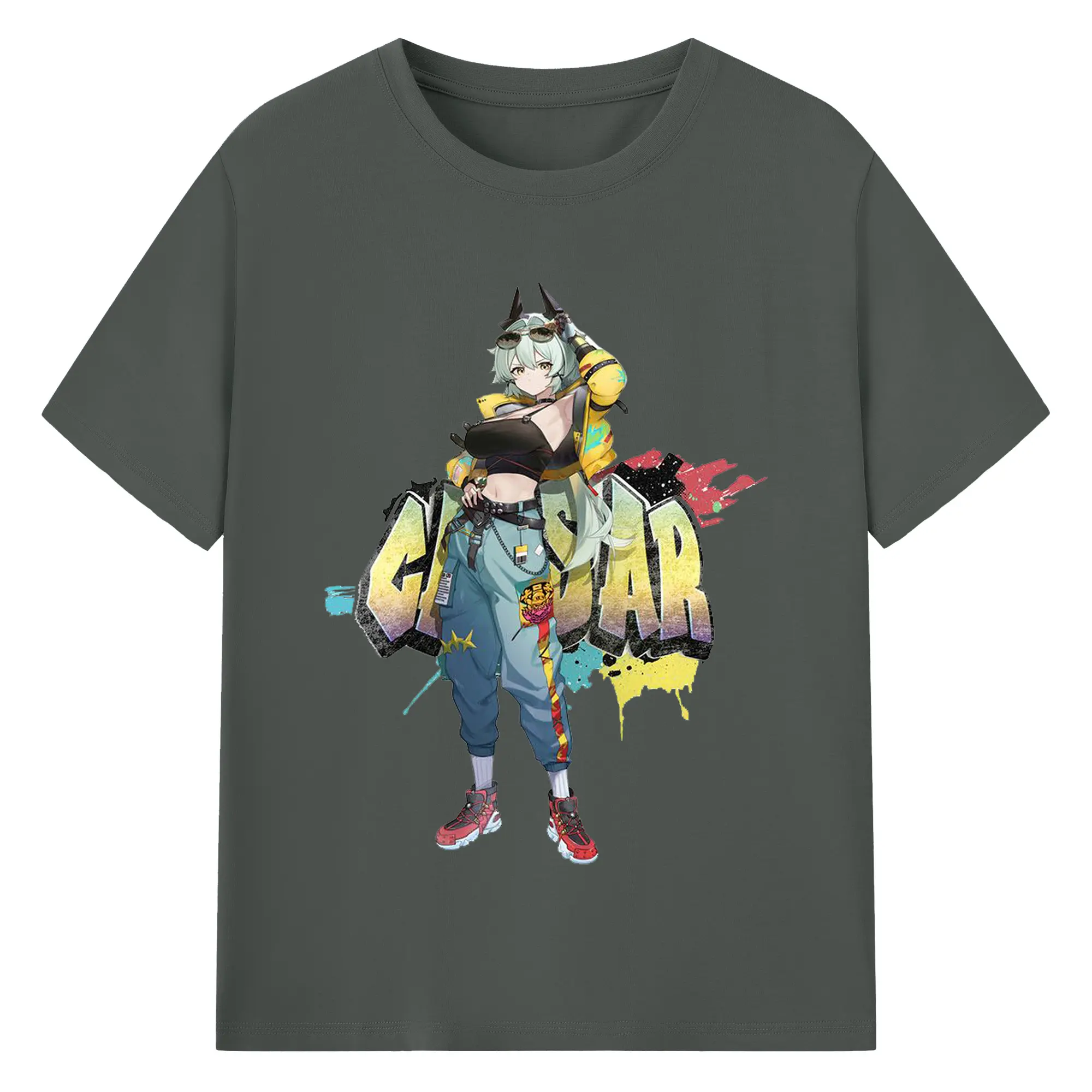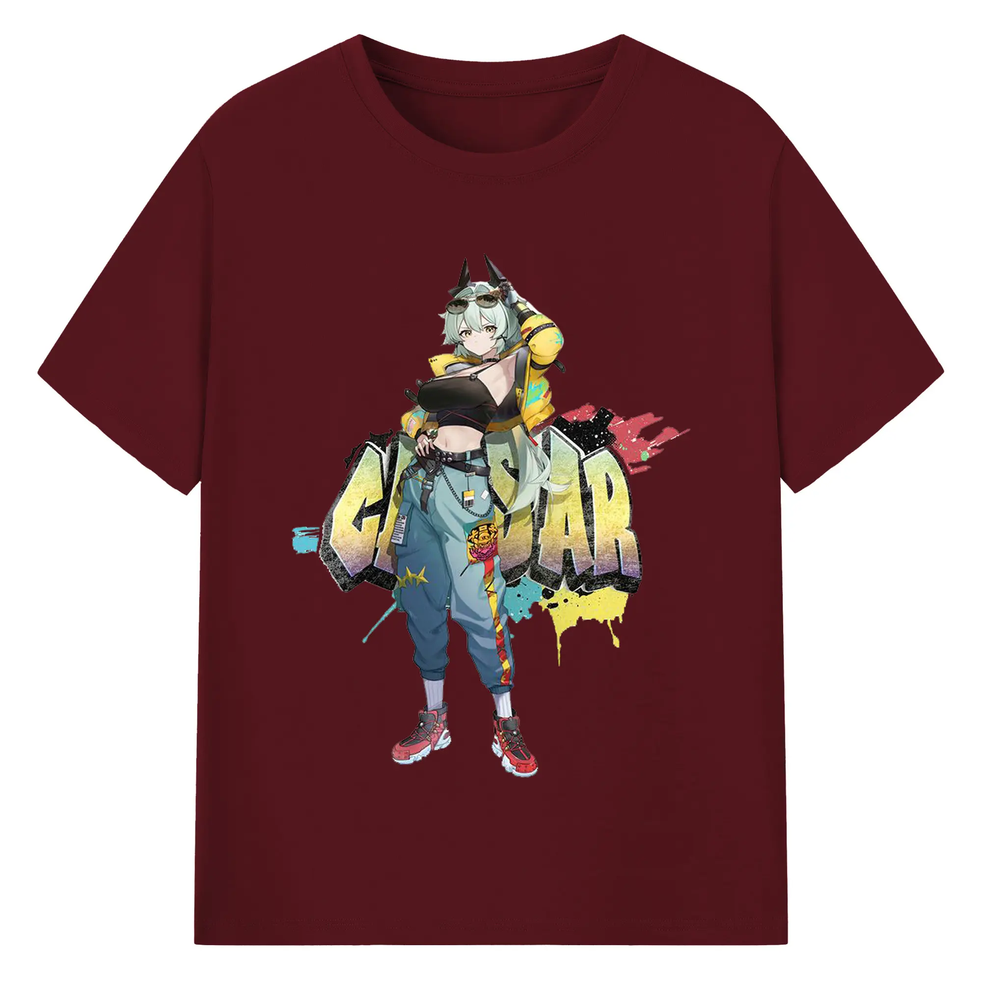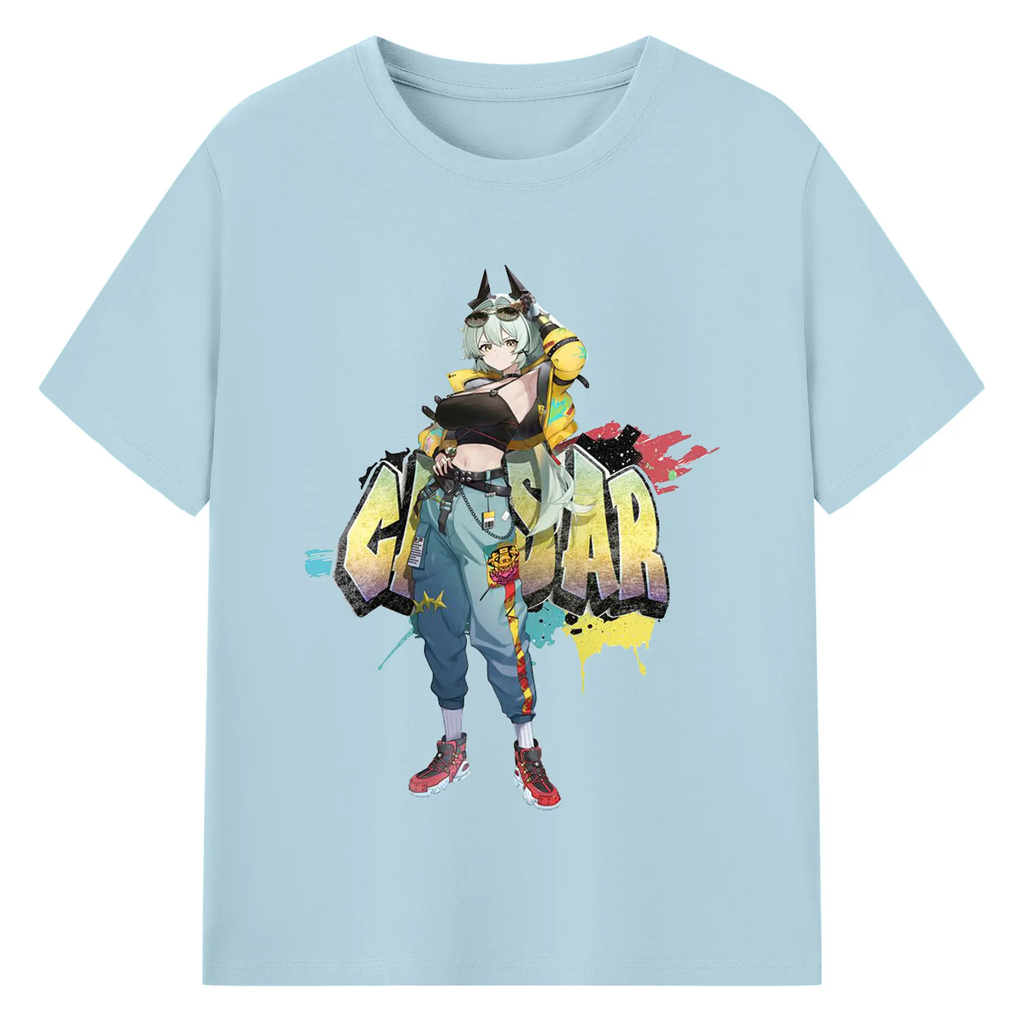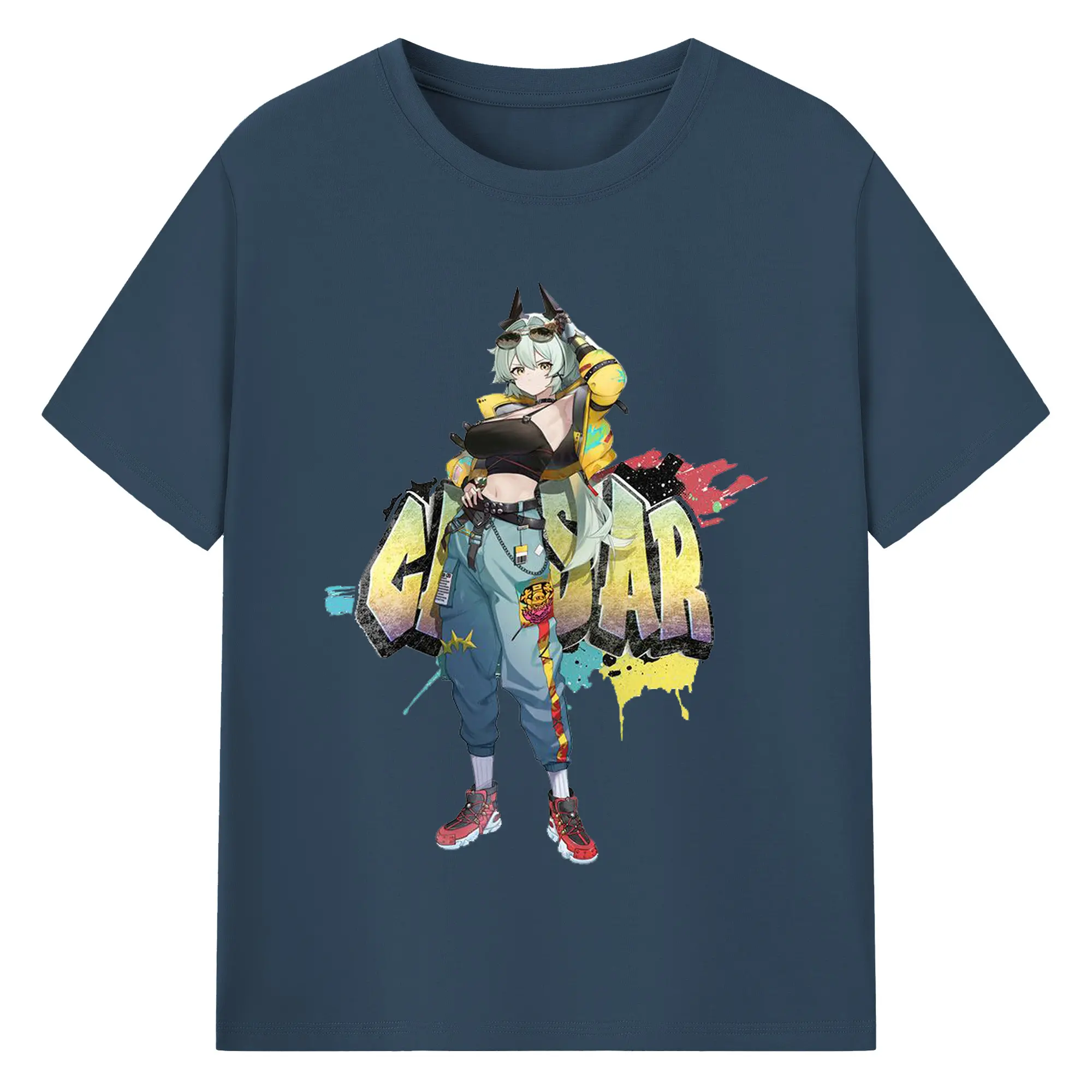 ゼンレスゾーンゼロ シーザー・キング - 綿100% ヴィンテージ風 半袖Tシャツ ・ フロントプリント ・ 柔らか肌触り ・ 通気性 快適 ・ スポーツ カジュアル 外出用