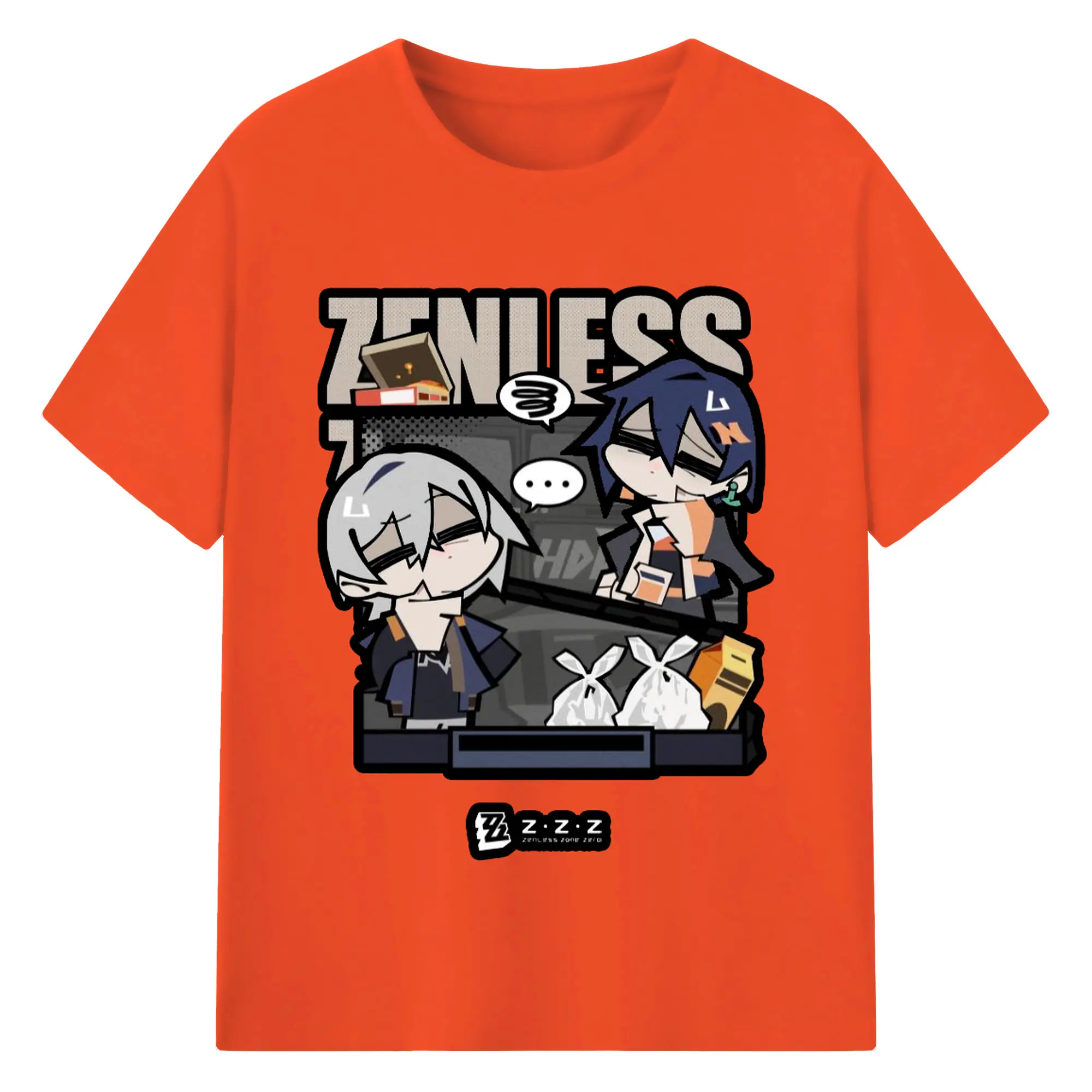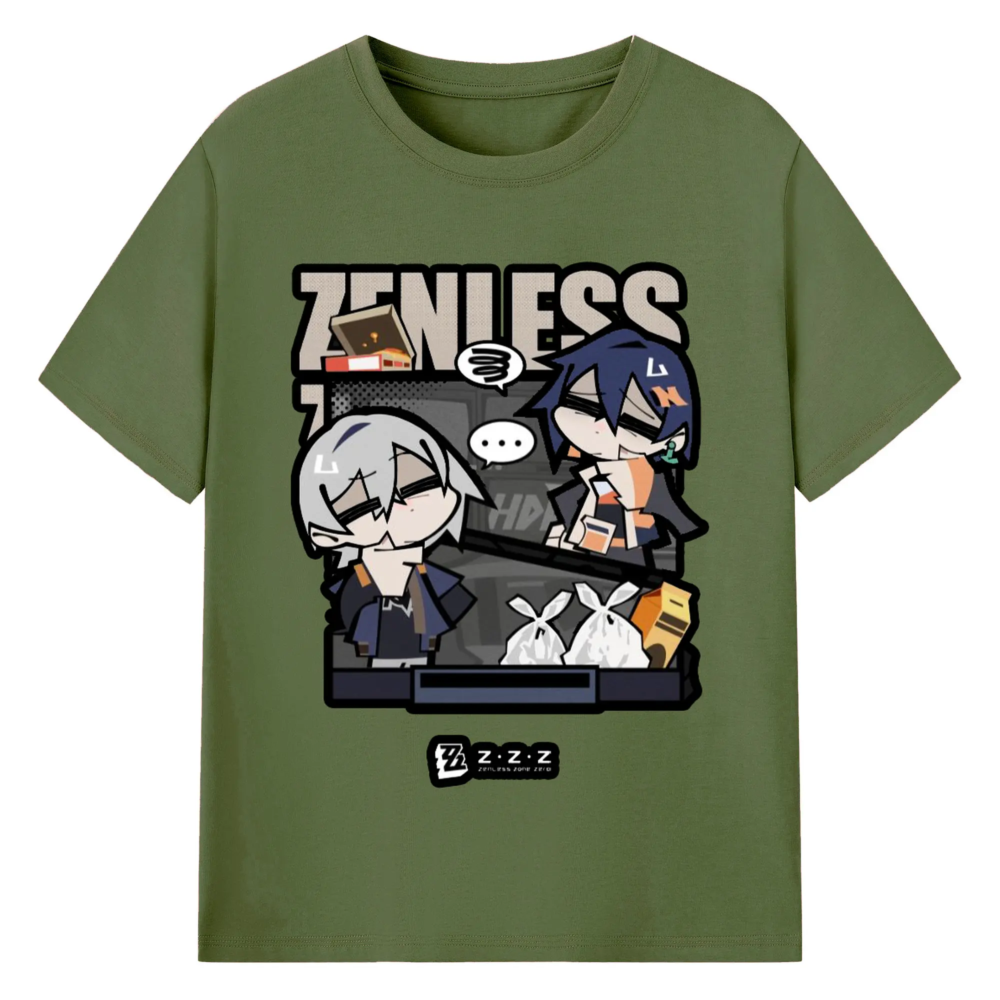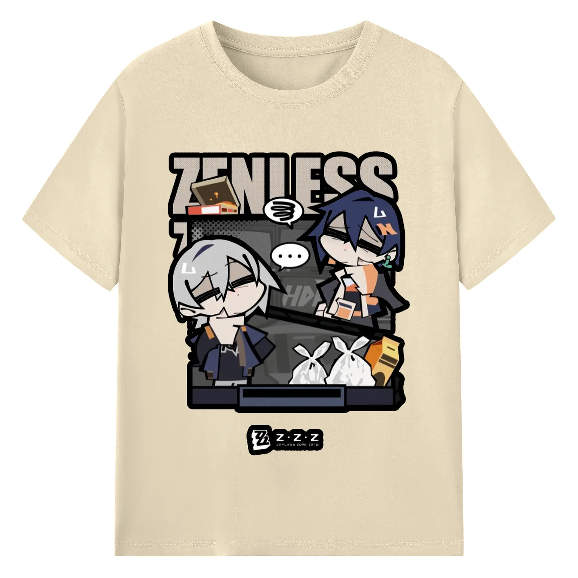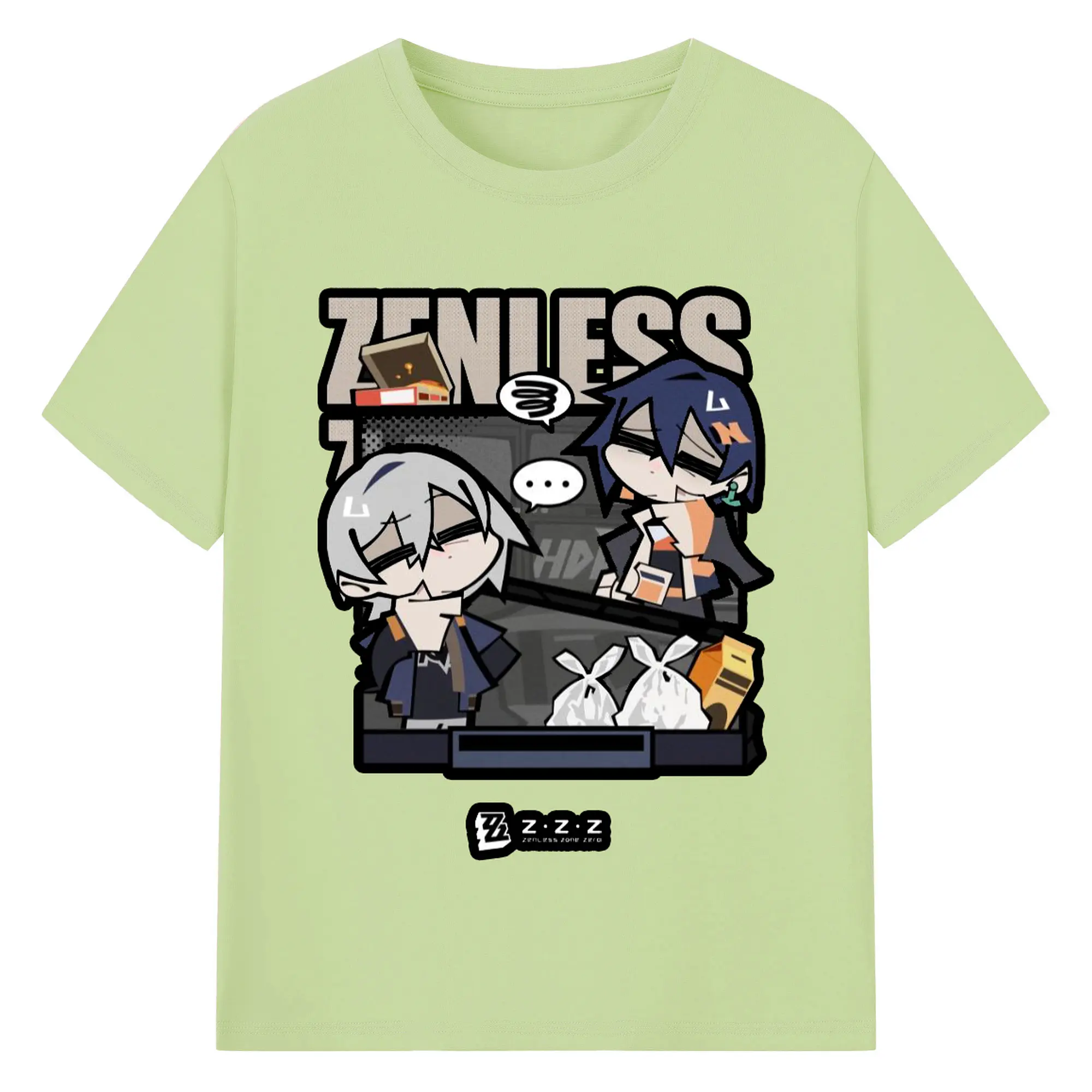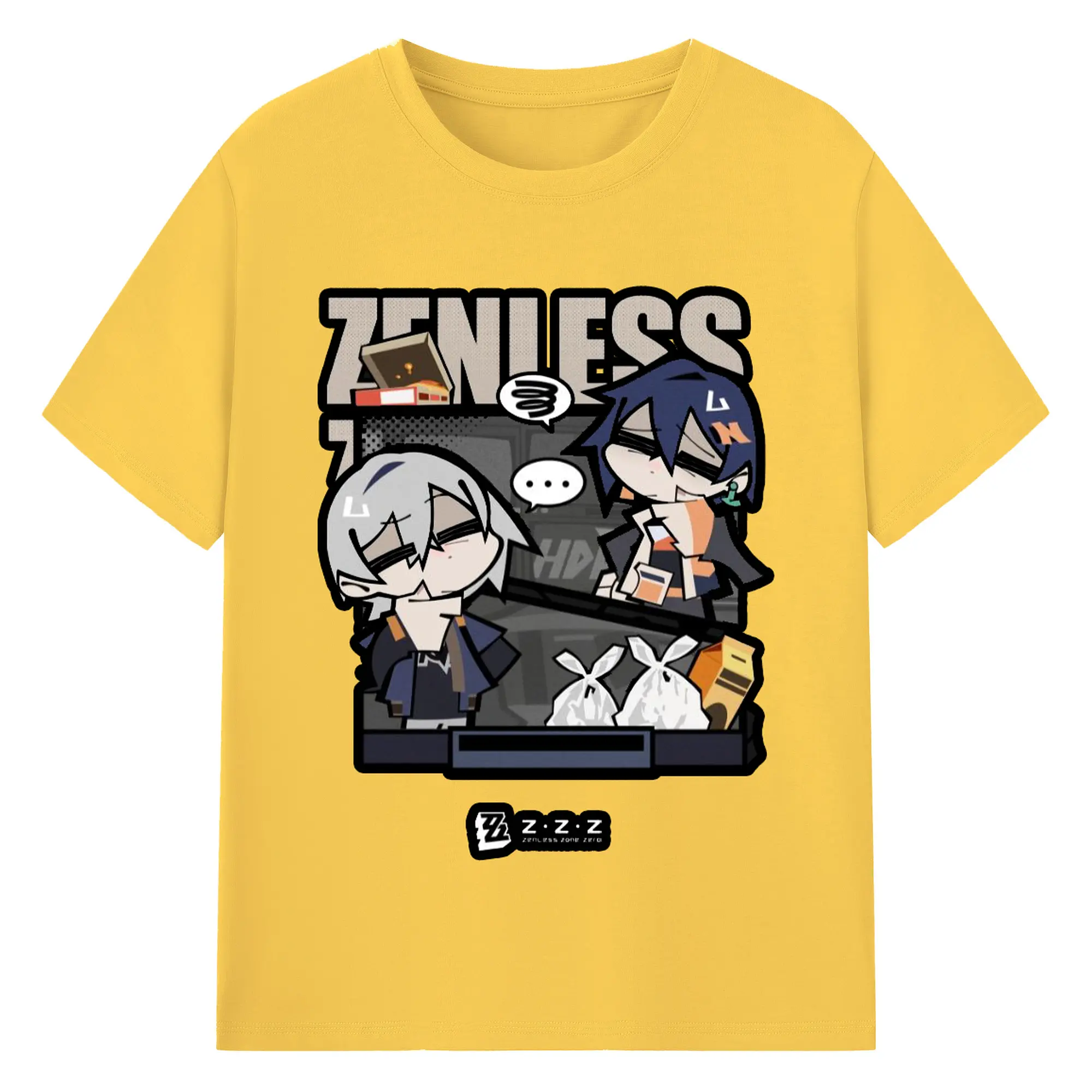 ゼンレスゾーンゼロ フォルメキャラ - 綿100% ヴィンテージ風 半袖Tシャツ ・ フロントプリント ・ 柔らか肌触り ・ 通気性 快適 ・ スポーツ カジュアル 外出用
