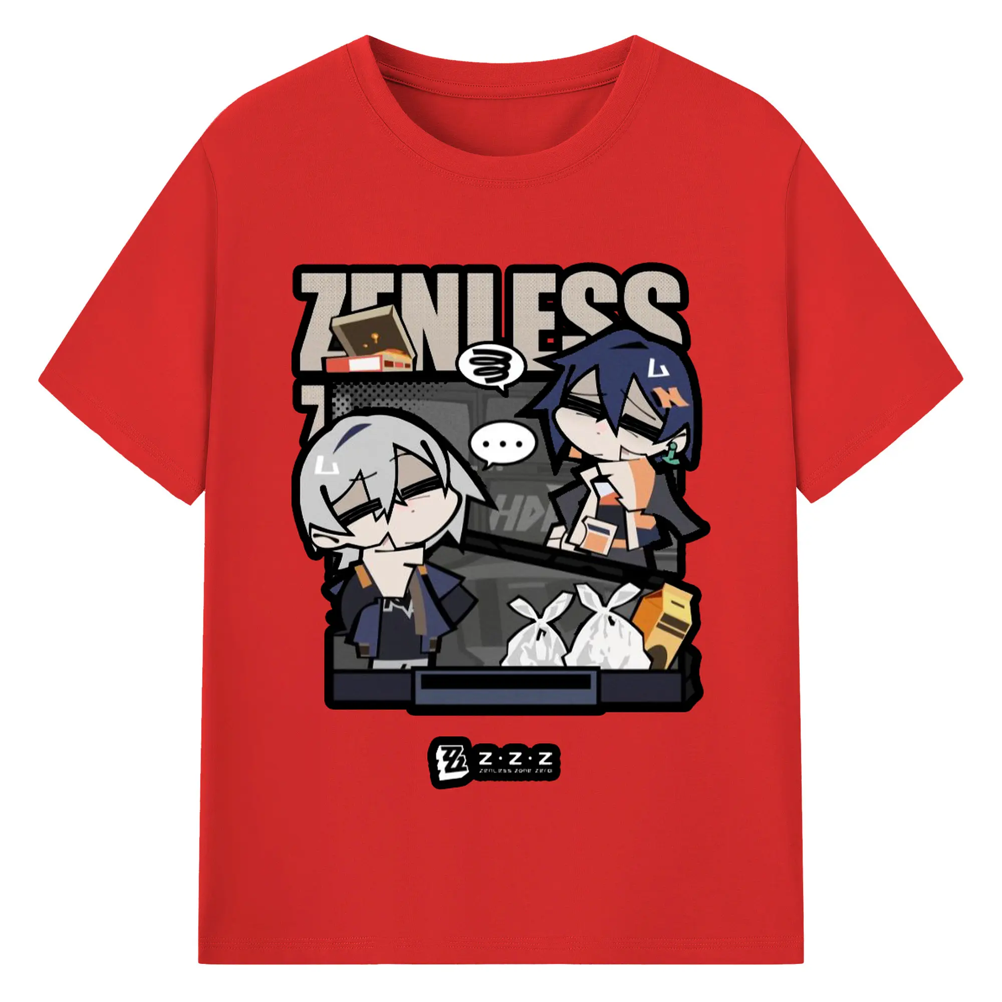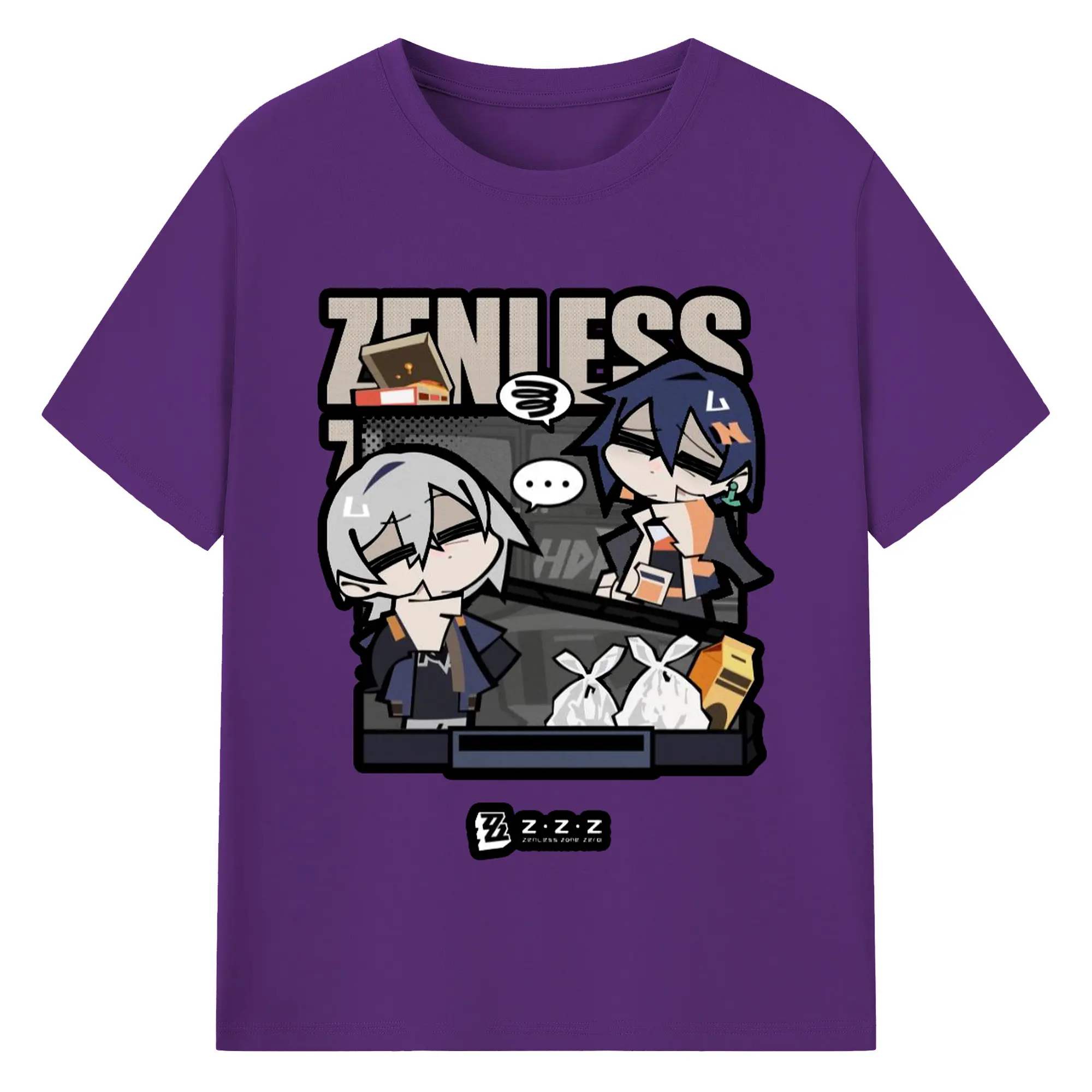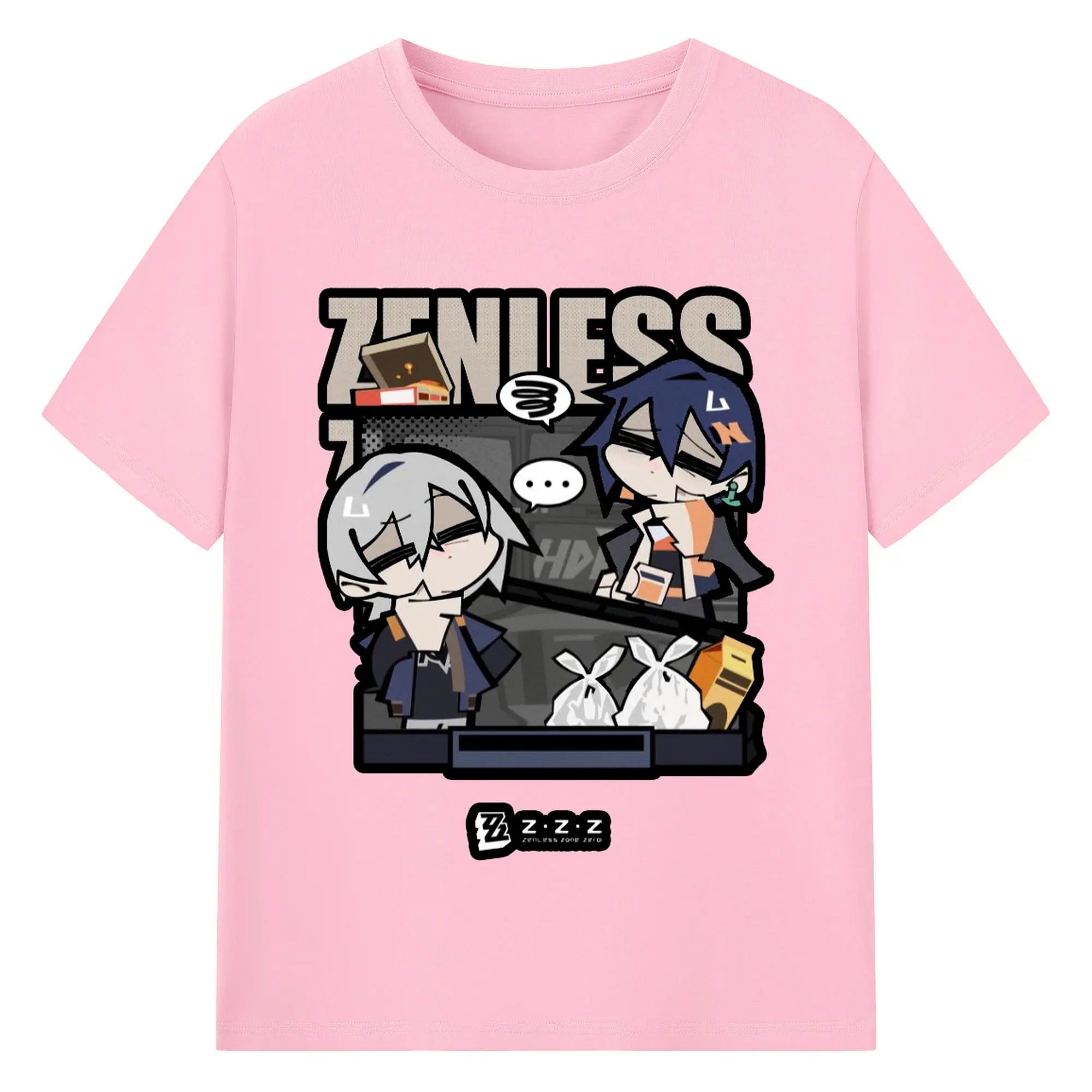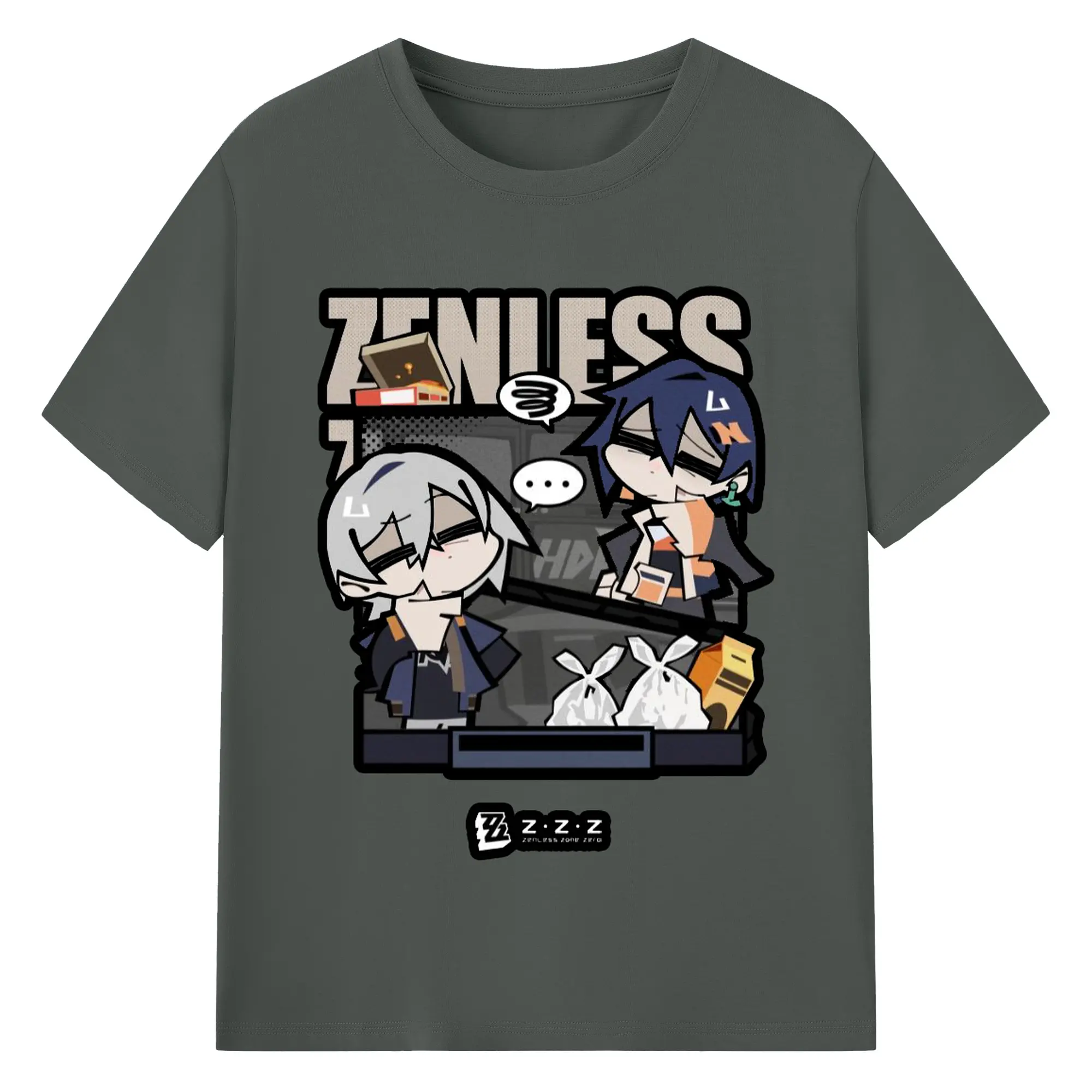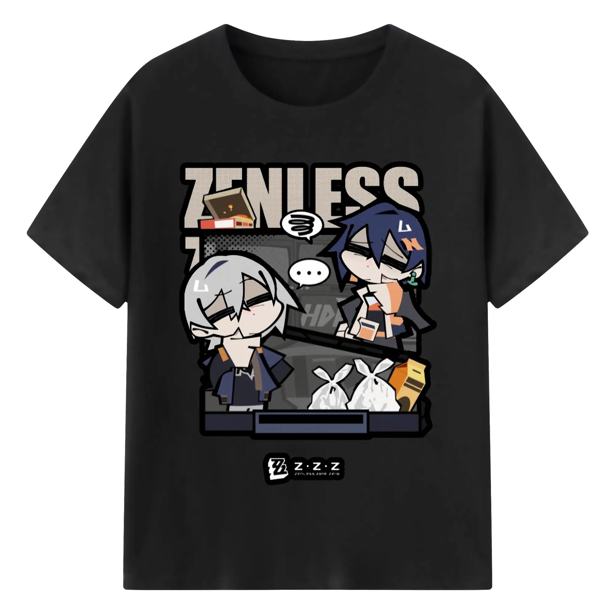ゼンレスゾーンゼロ フォルメキャラ - 綿100% ヴィンテージ風 半袖Tシャツ ・ フロントプリント ・ 柔らか肌触り ・ 通気性 快適 ・ スポーツ カジュアル 外出用