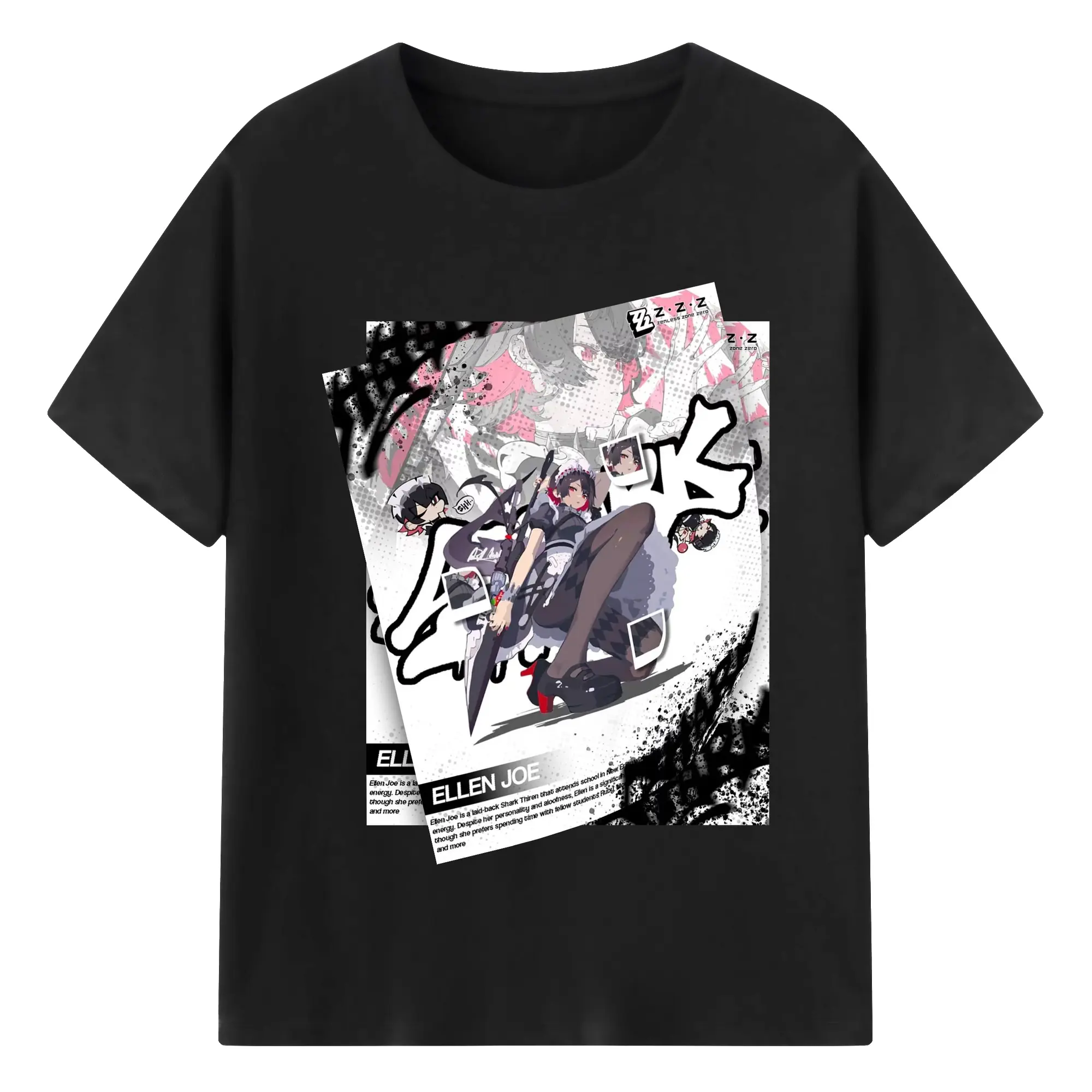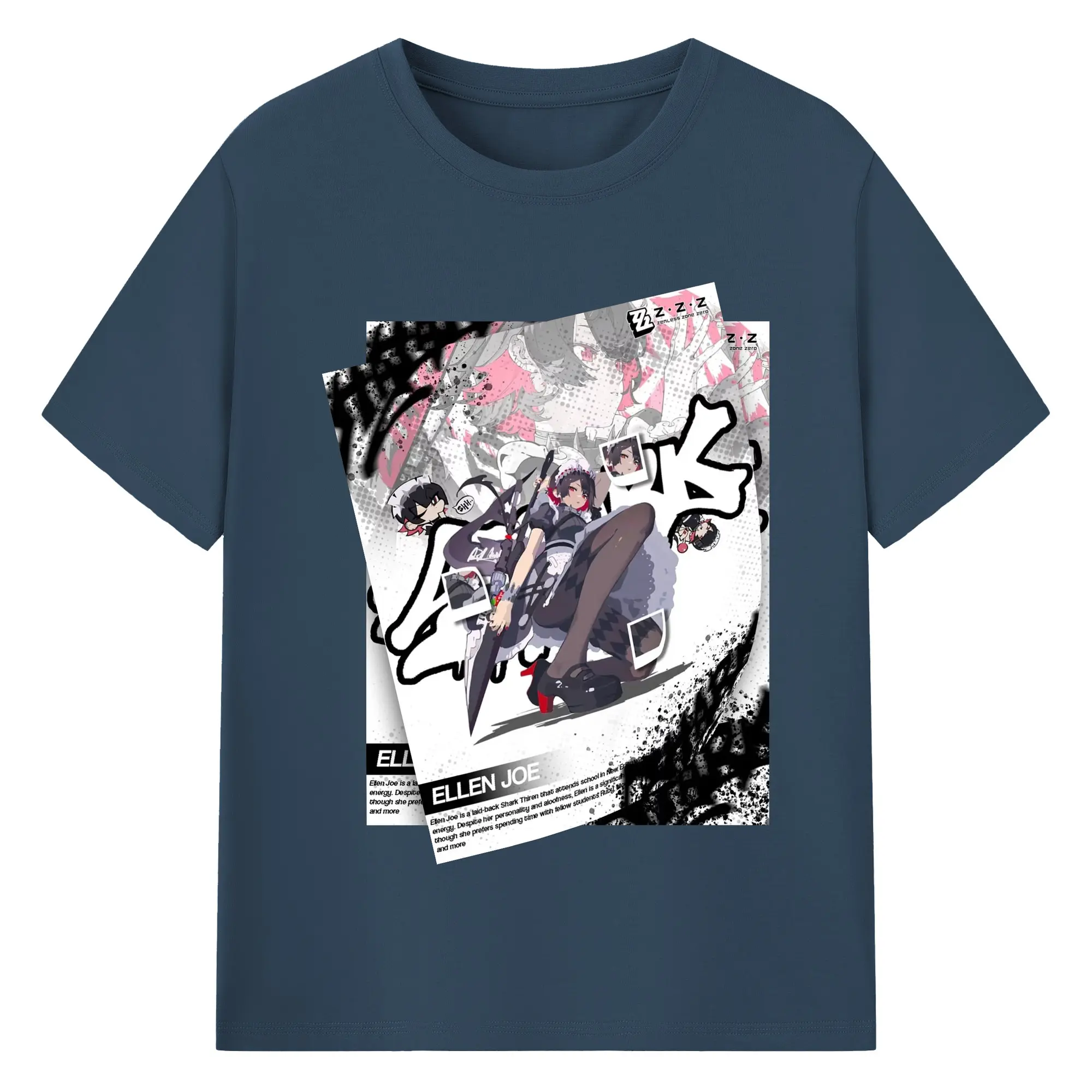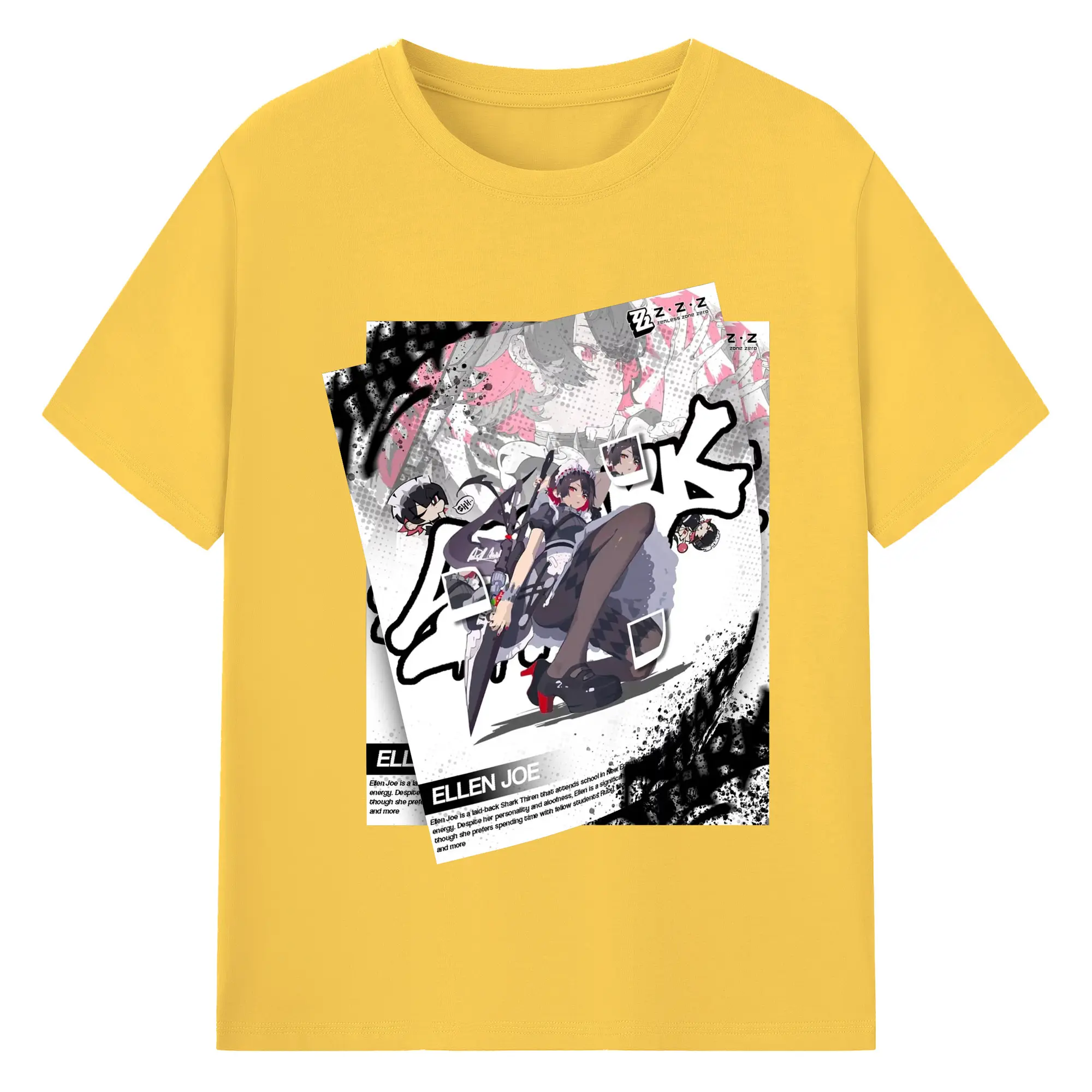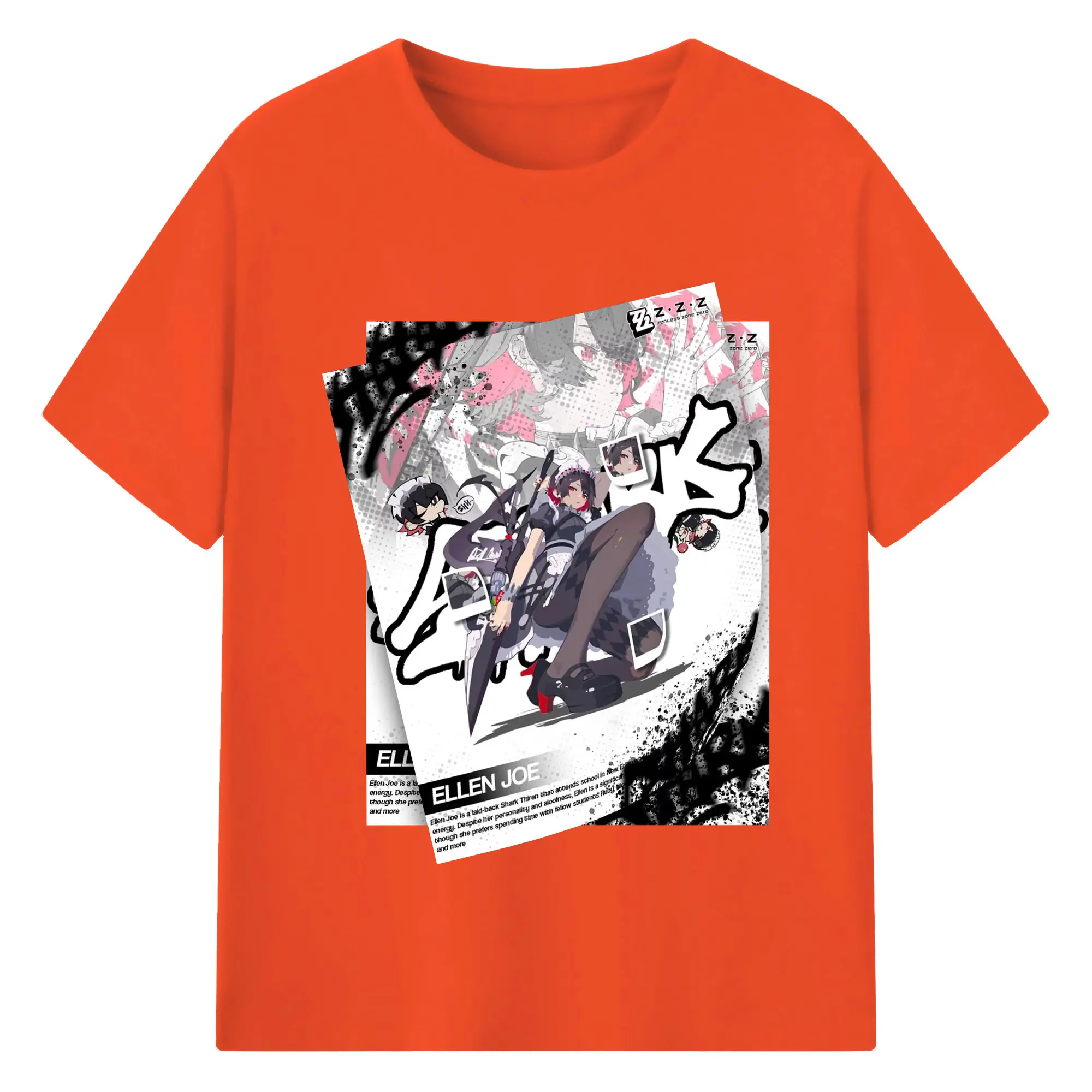 ゼンレスゾーンゼロ 工リン・ジヨー - 綿100% ヴィンテージ風 半袖Tシャツ ・ フロントプリント ・ 柔らか肌触り ・ 通気性 快適 ・ スポーツ カジュアル 外出用