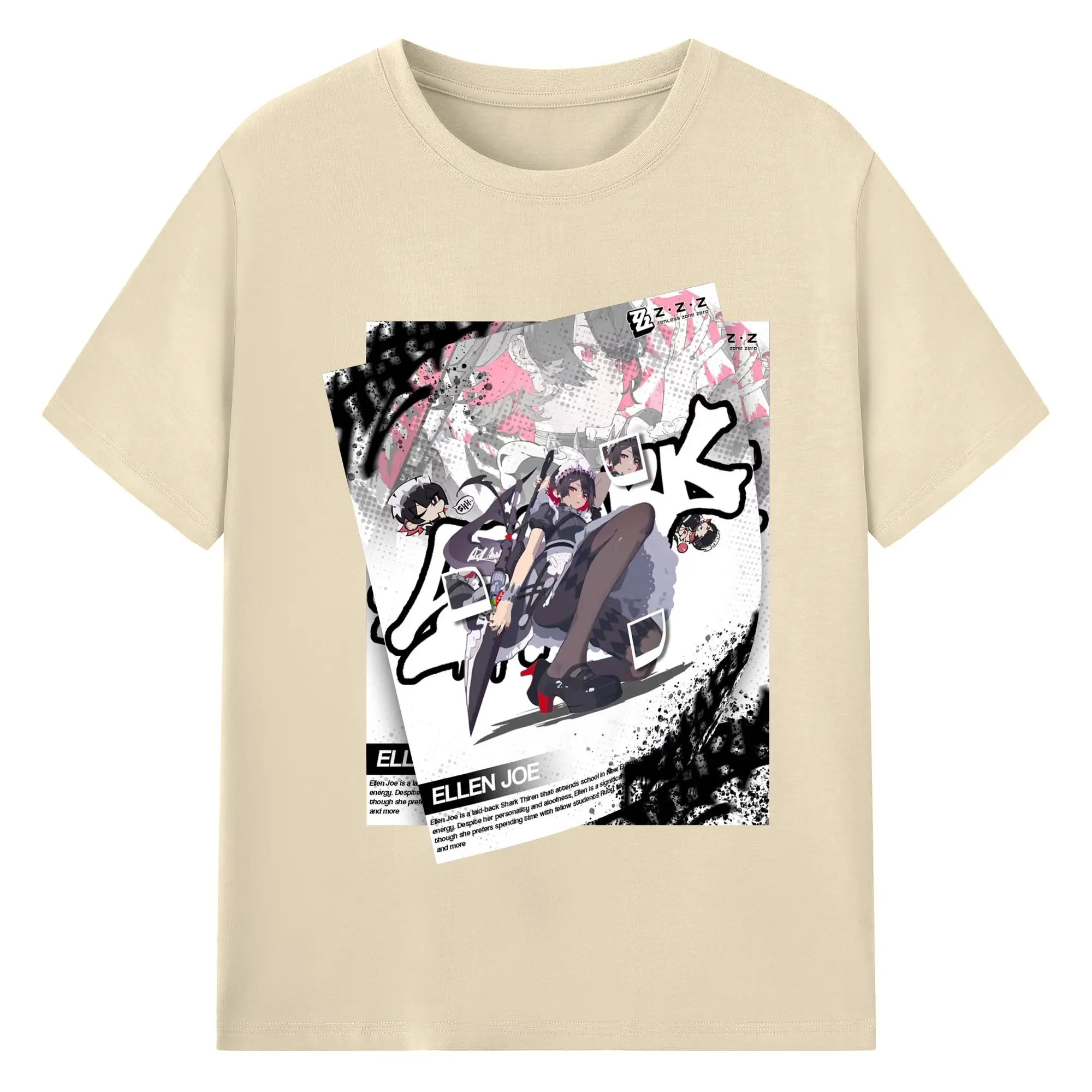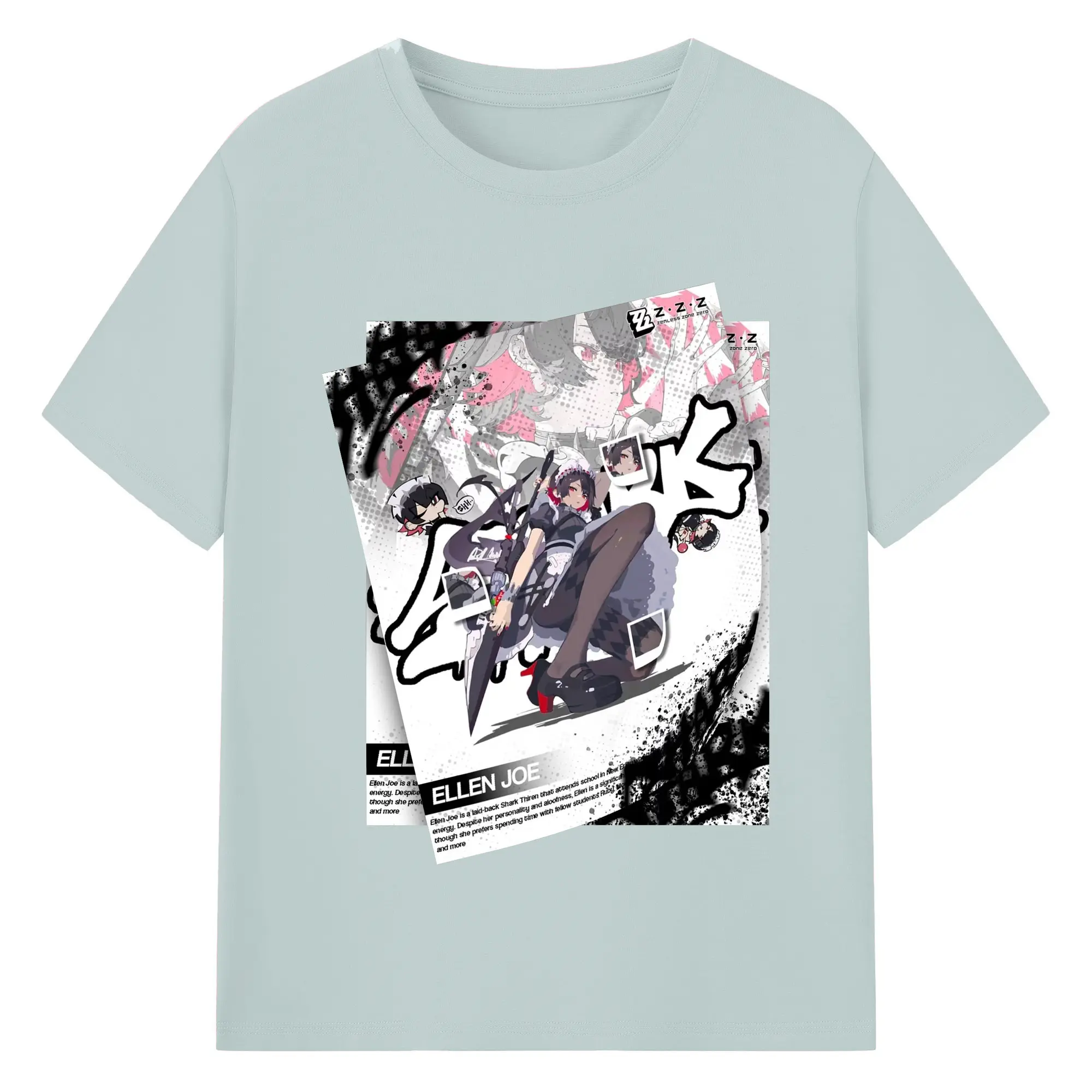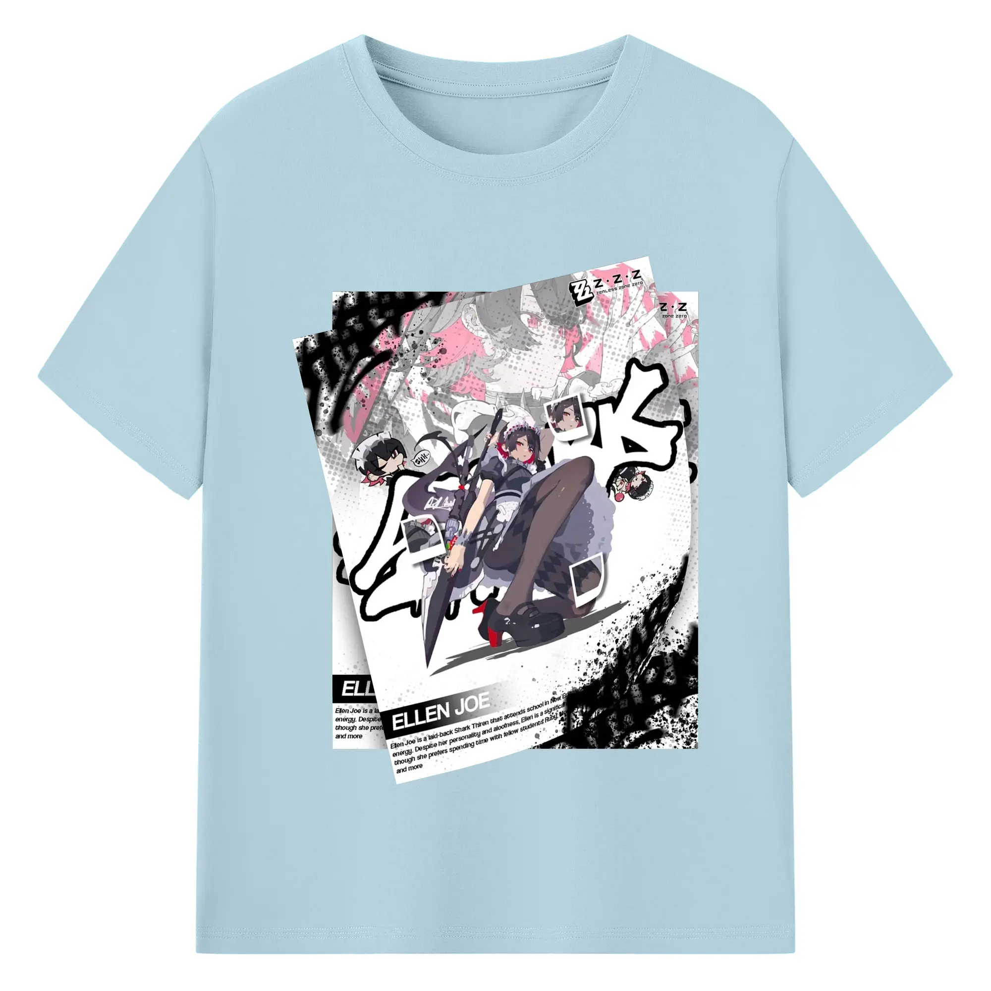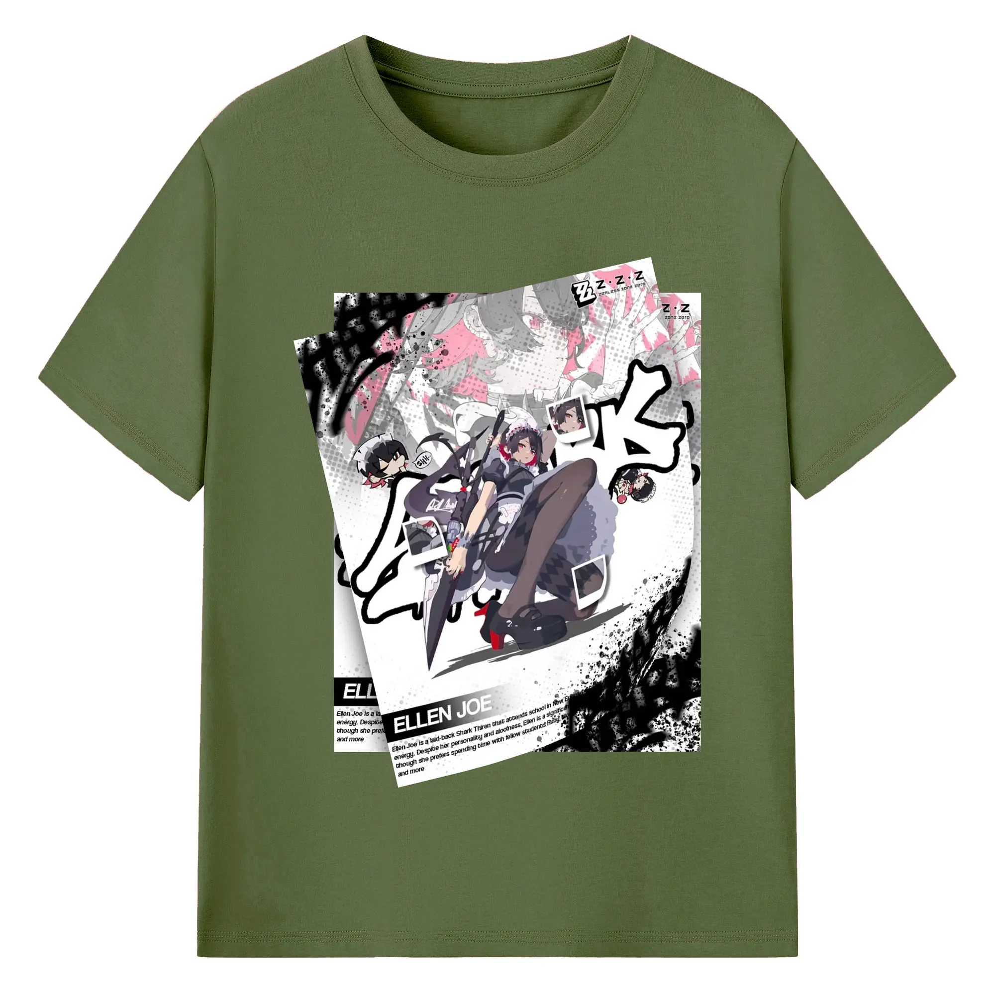 ゼンレスゾーンゼロ 工リン・ジヨー - 綿100% ヴィンテージ風 半袖Tシャツ ・ フロントプリント ・ 柔らか肌触り ・ 通気性 快適 ・ スポーツ カジュアル 外出用