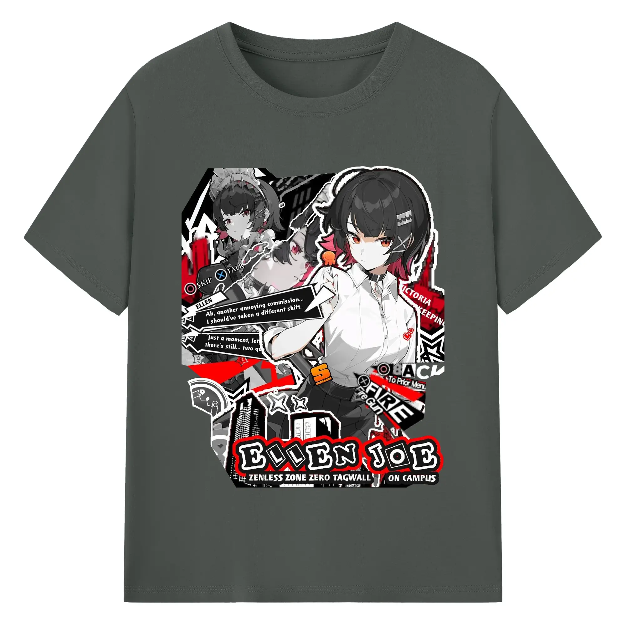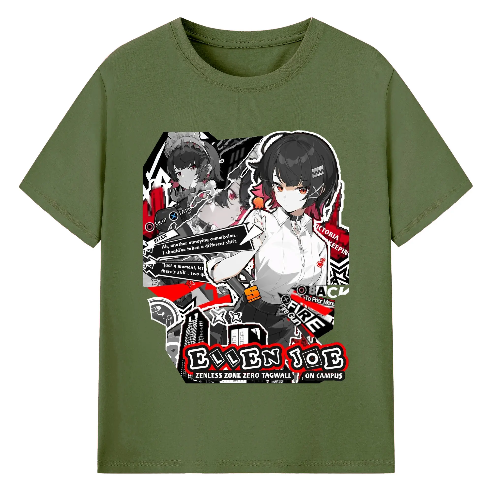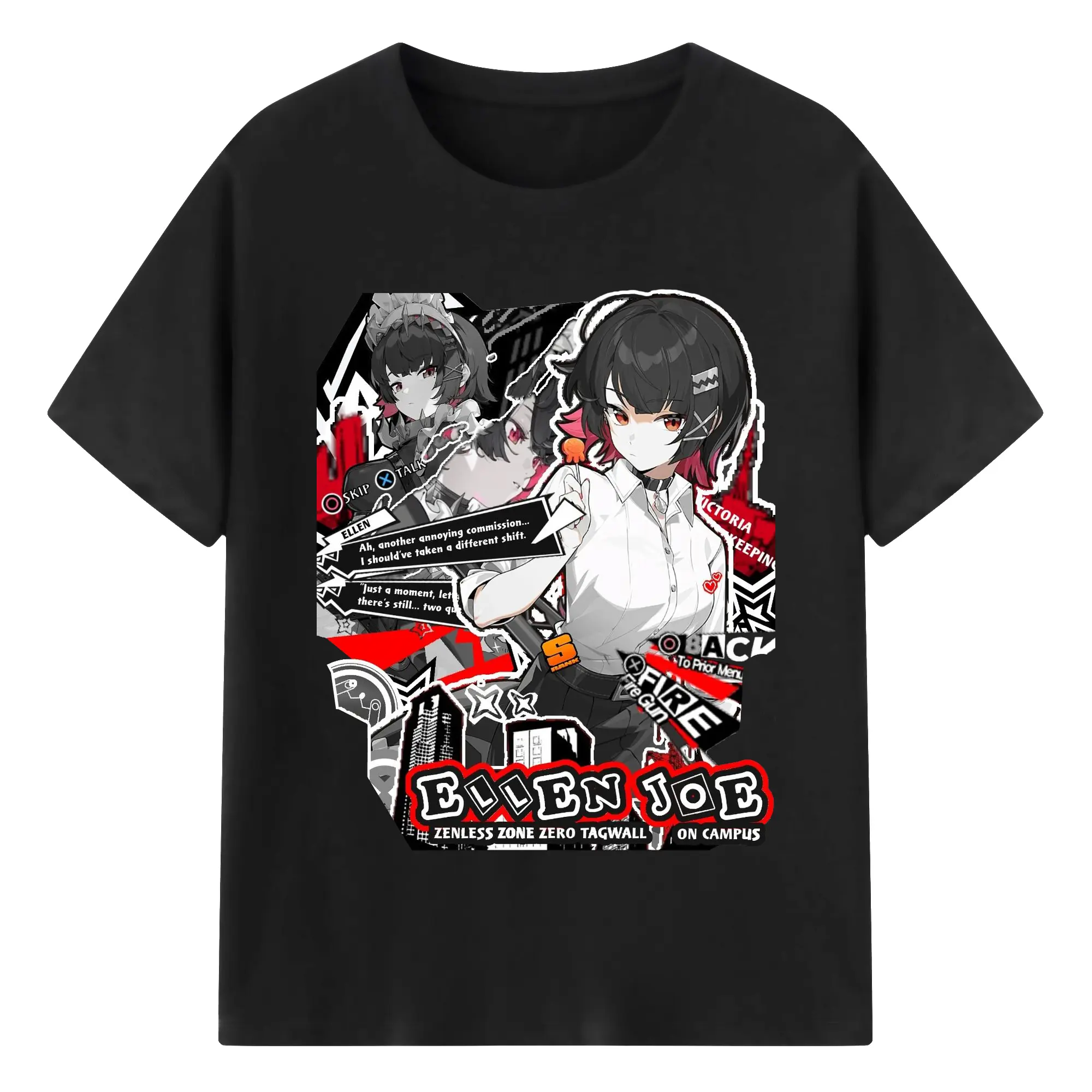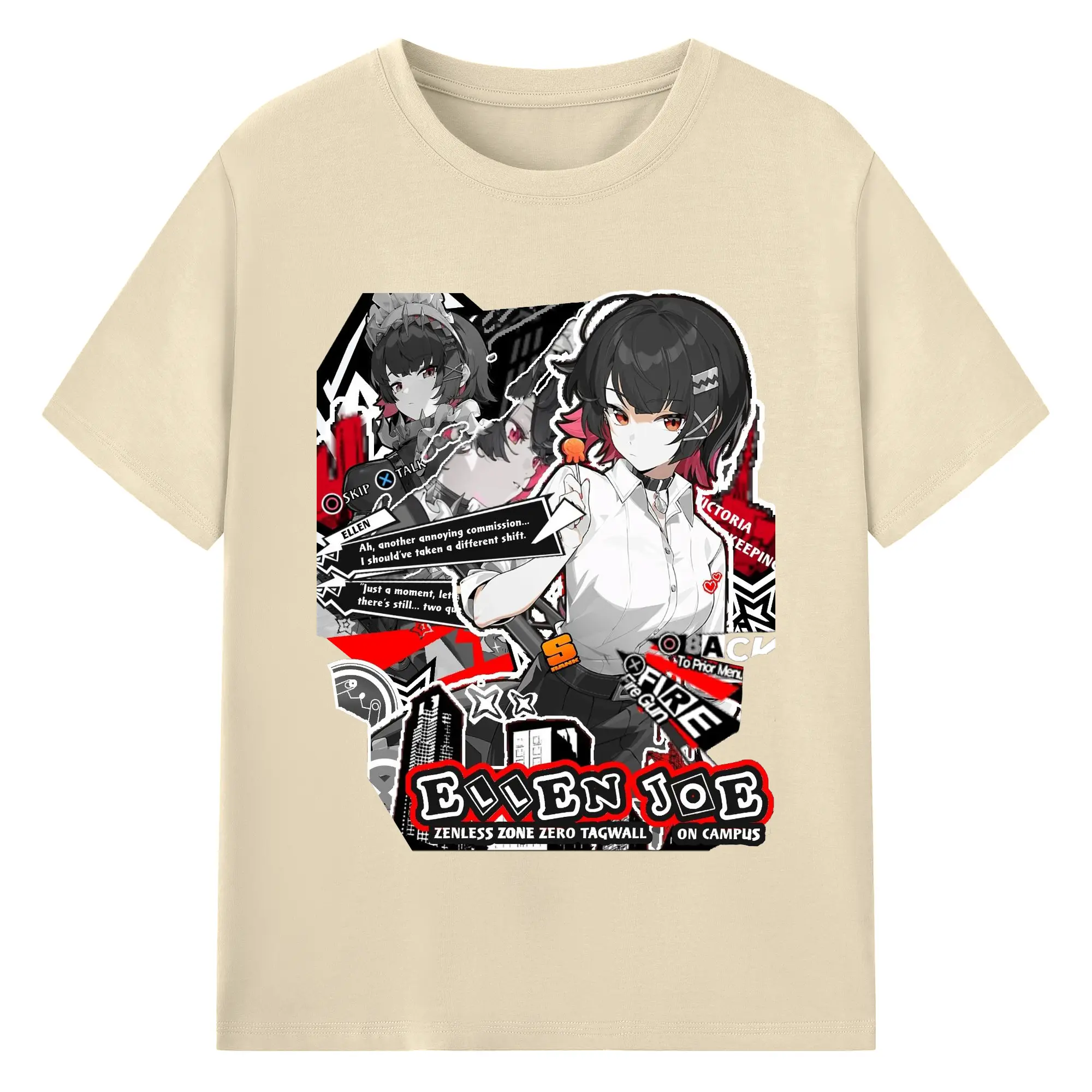 ゼンレスゾーンゼロ工リン・ジヨー - 綿100% ヴィンテージ風 半袖Tシャツ ・ フロントプリント ・ 柔らか肌触り ・ 通気性 快適 ・ スポーツ カジュアル 外出用