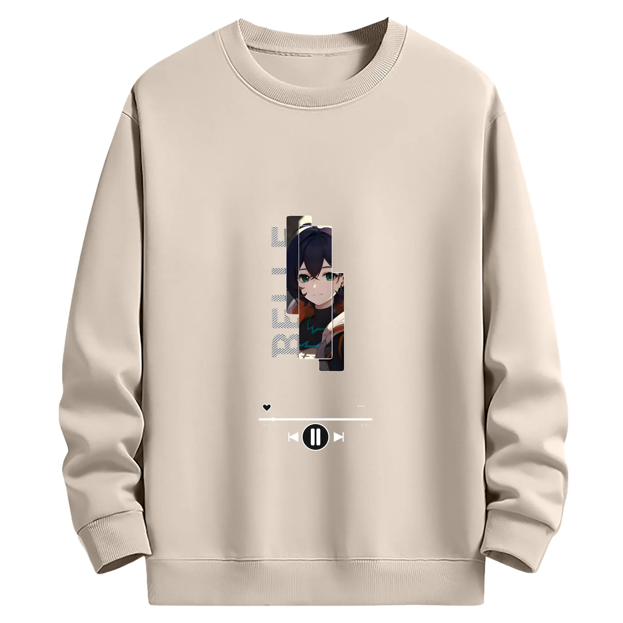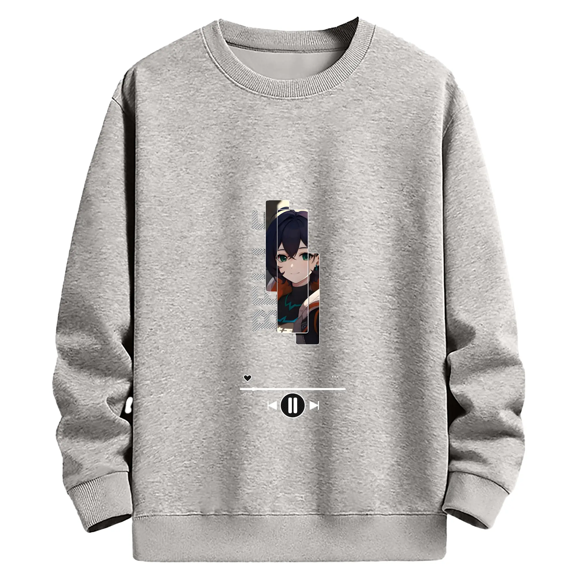 Genshin パイモン - 高品質 クルーネック スウェット ・ コットン59% ポリエステル41% ・ ユニセックス 長袖 トレーナー ・ カジュアル デイリー スポーツ 散歩用