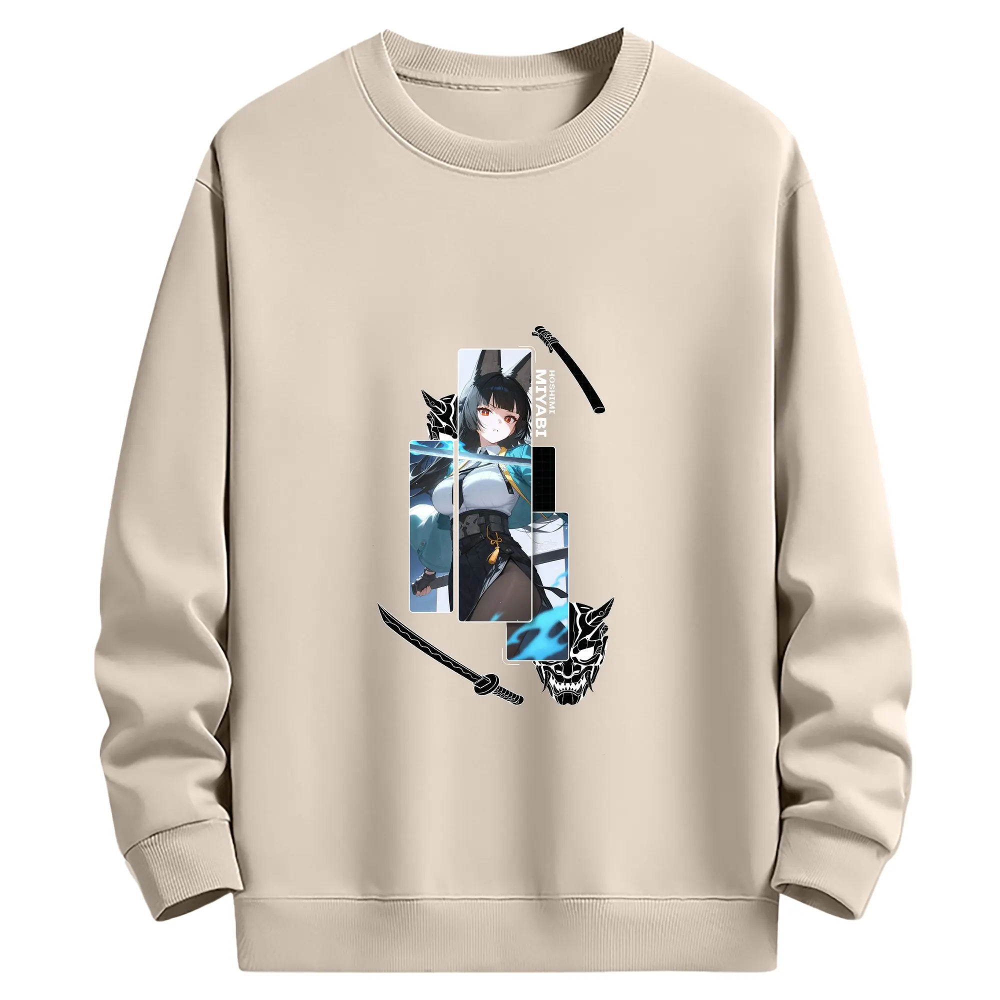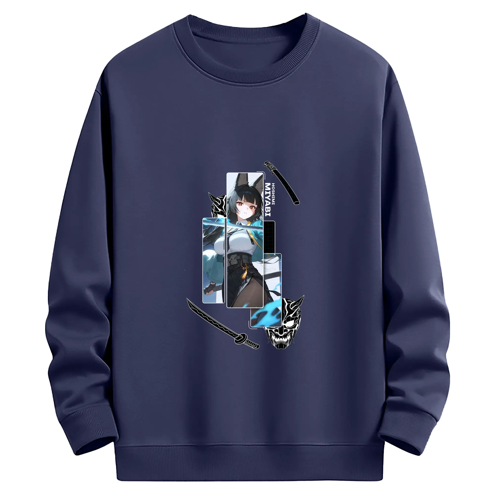 Genshin イナズマ 雷神らいじん ライデンショウグン - 高品質 クルーネック スウェット ・ コットン59% ポリエステル41% ・ ユニセックス 長袖 トレーナー ・ カジュアル デイリー スポーツ 散歩用