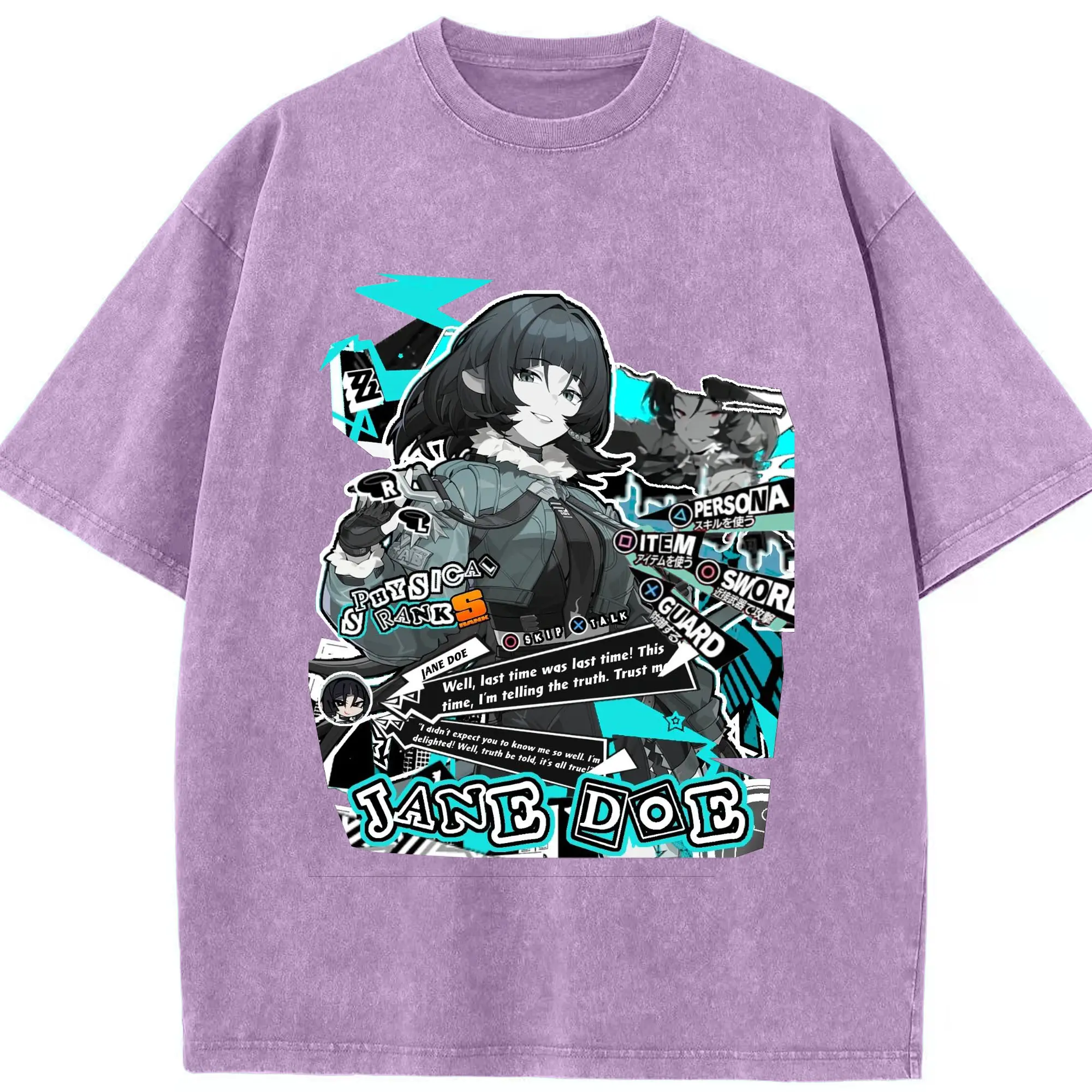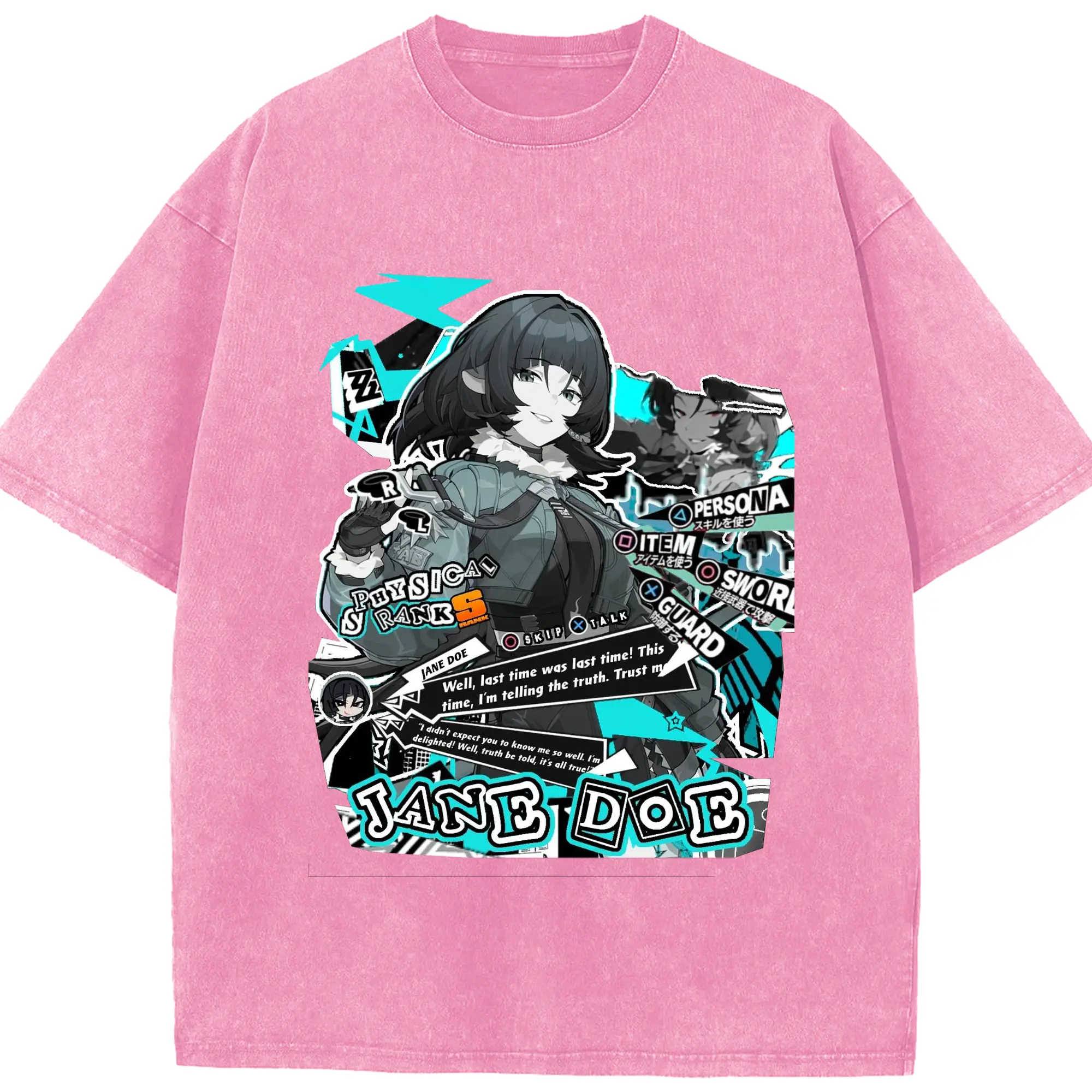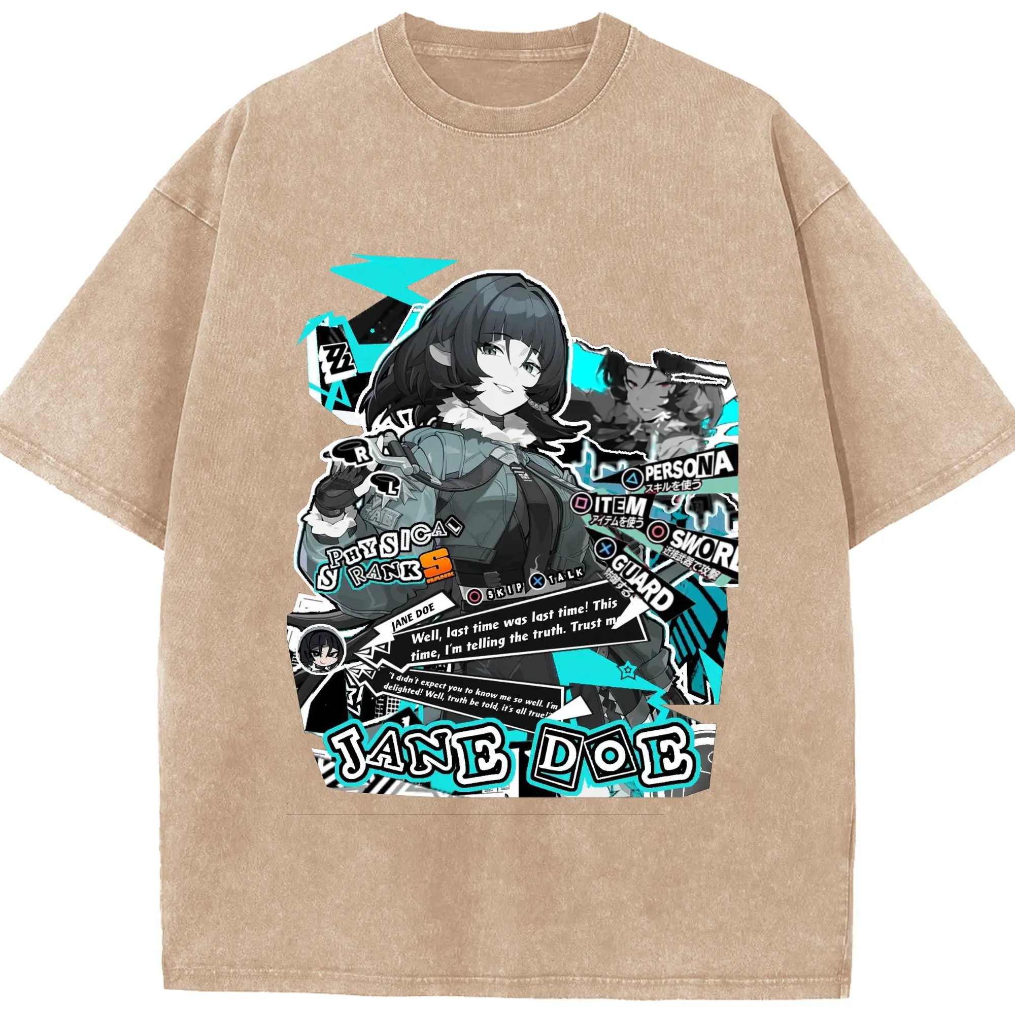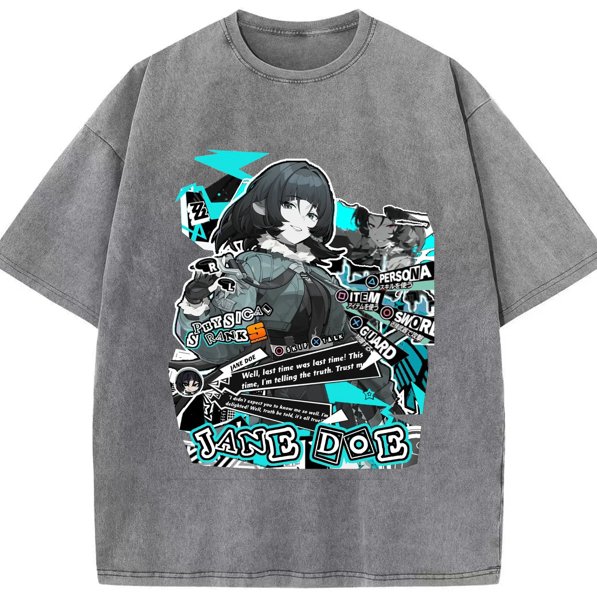 ゼンレスゾーンゼロ ジエーン・ドウ - 綿100% 半袖Tシャツ ・ フロントプリント ・ 快適 通気性 ・ 日常使い 散歩 スポーツ用