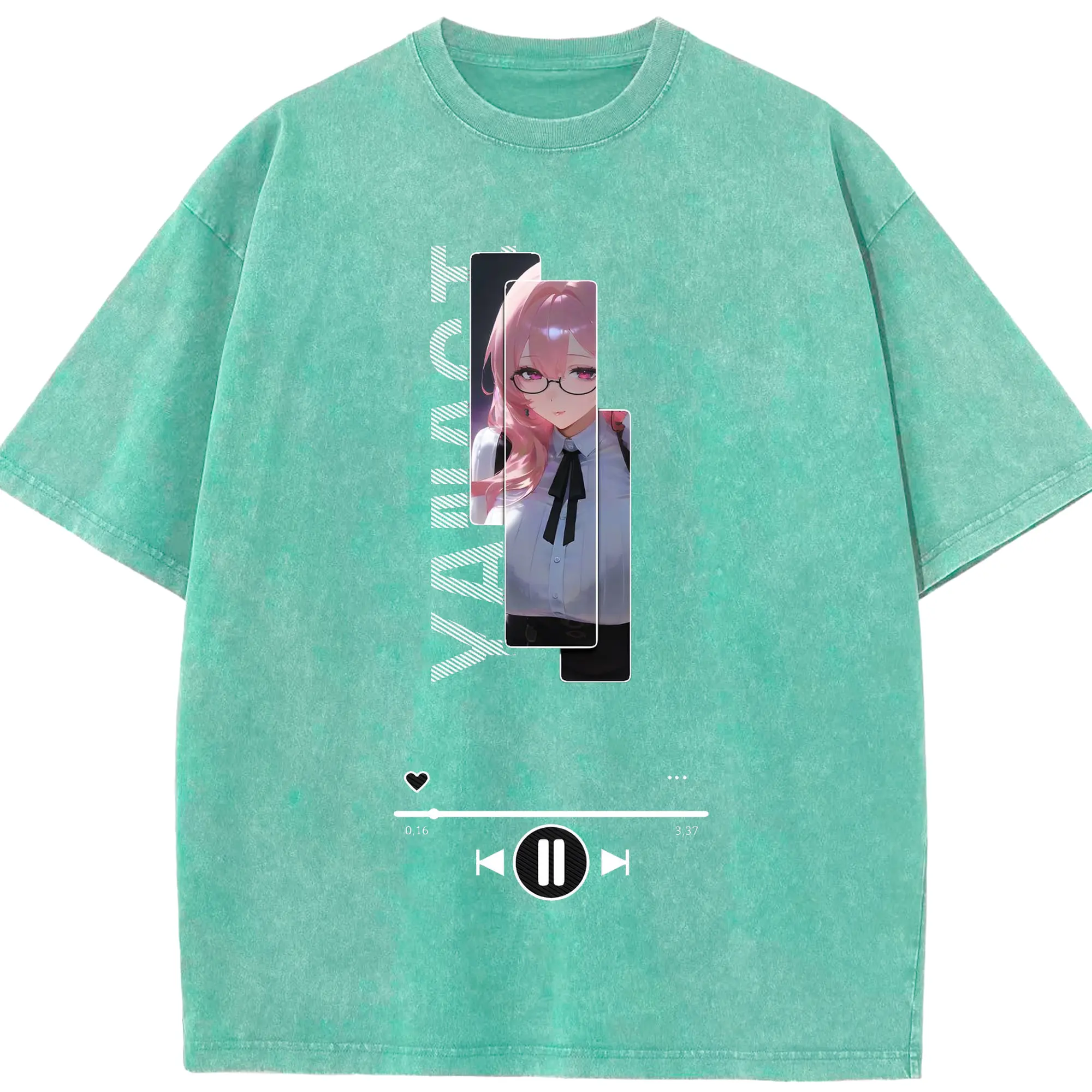Genshin フォンテーヌ 水神すいじんフォカロルス フリーナ - 綿100% ヴィンテージ風 半袖Tシャツ ・ フロントプリント ・ 柔らか肌触り ・ 通気性 快適 ・ スポーツ カジュアル 外出用