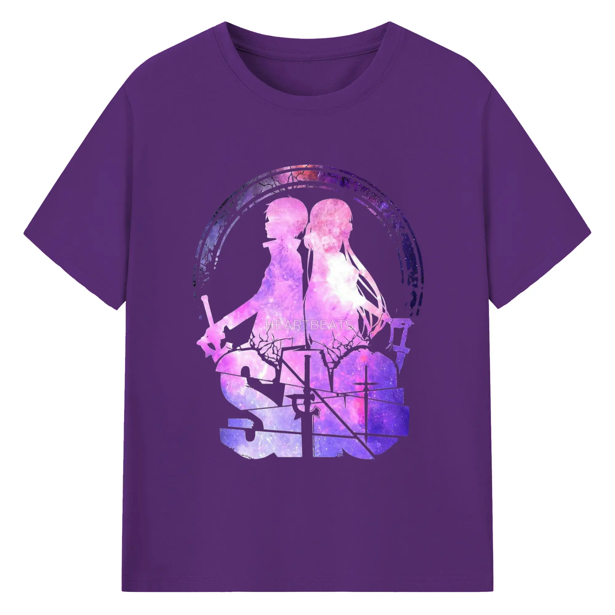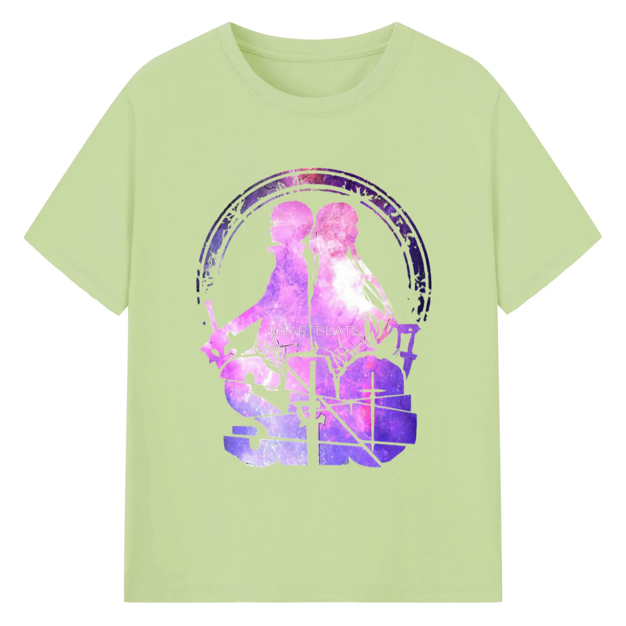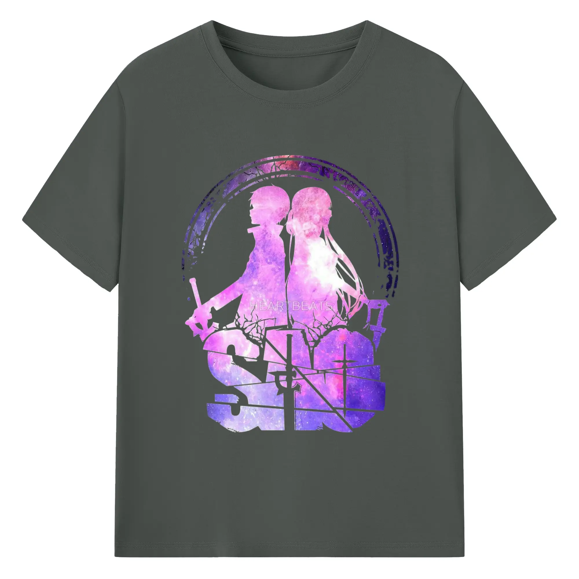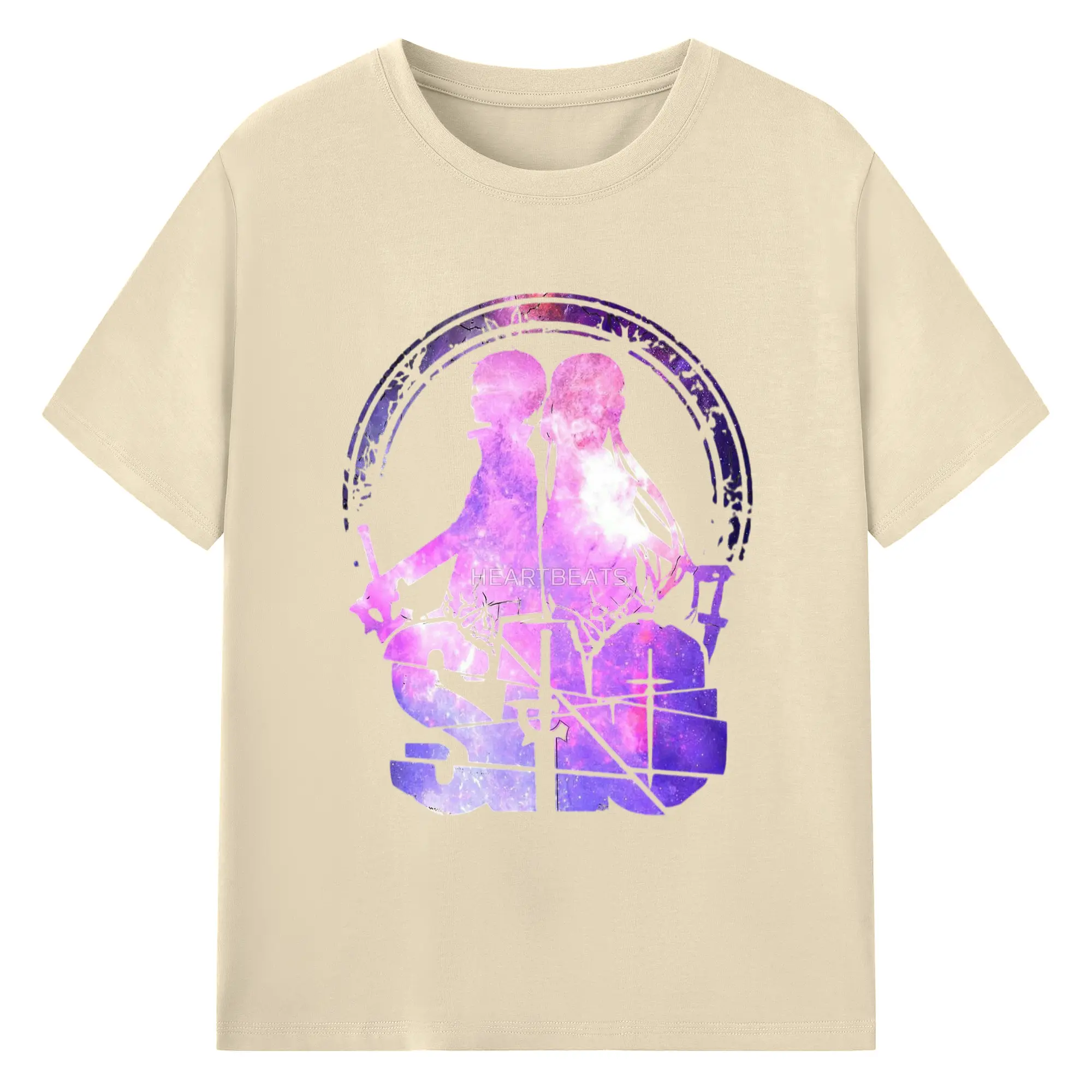 ソードアートオンライン キリトアスナ - 綿100% ヴィンテージ風 半袖Tシャツ ・ フロントプリント ・ 柔らか肌触り ・ 通気性 快適 ・ スポーツ カジュアル 外出用