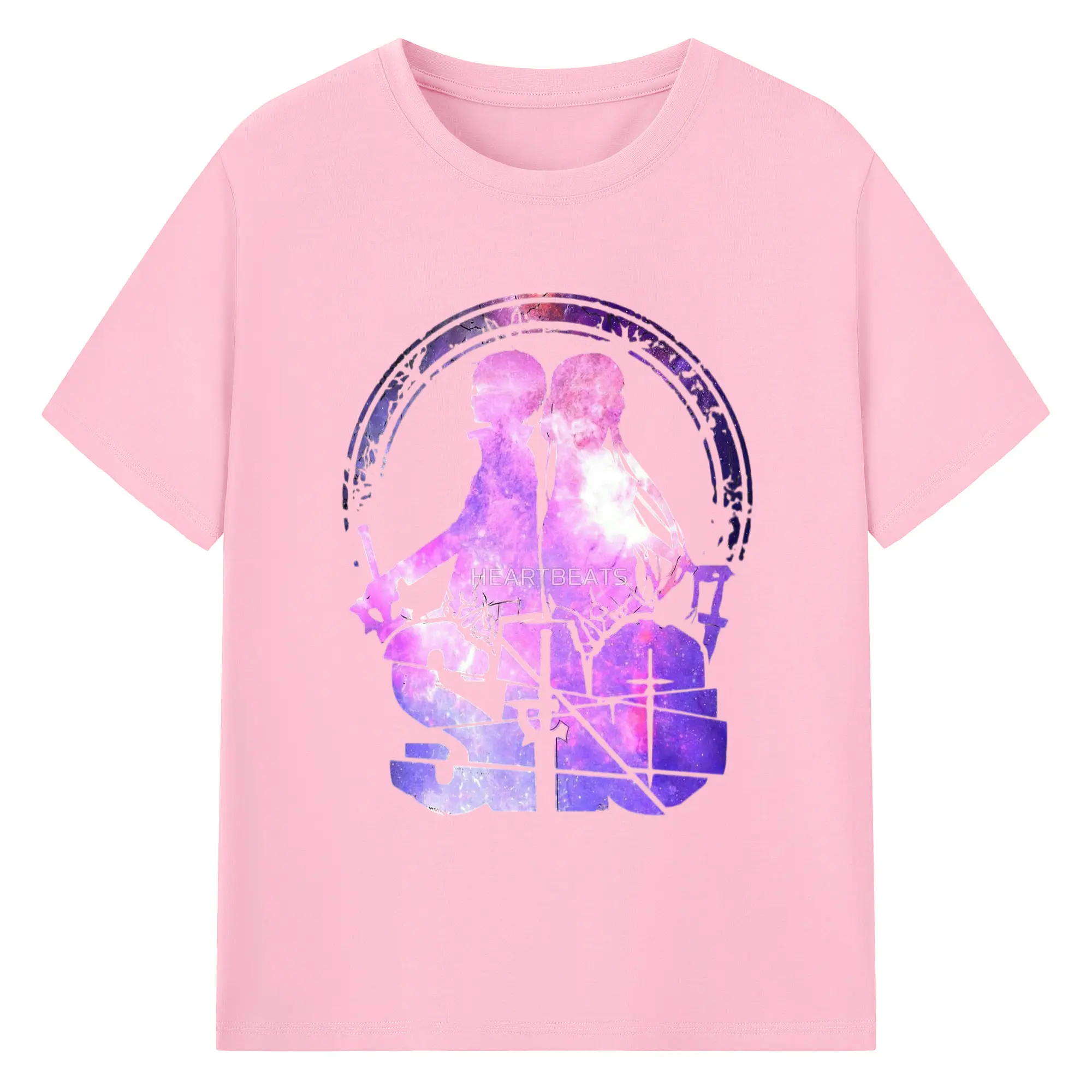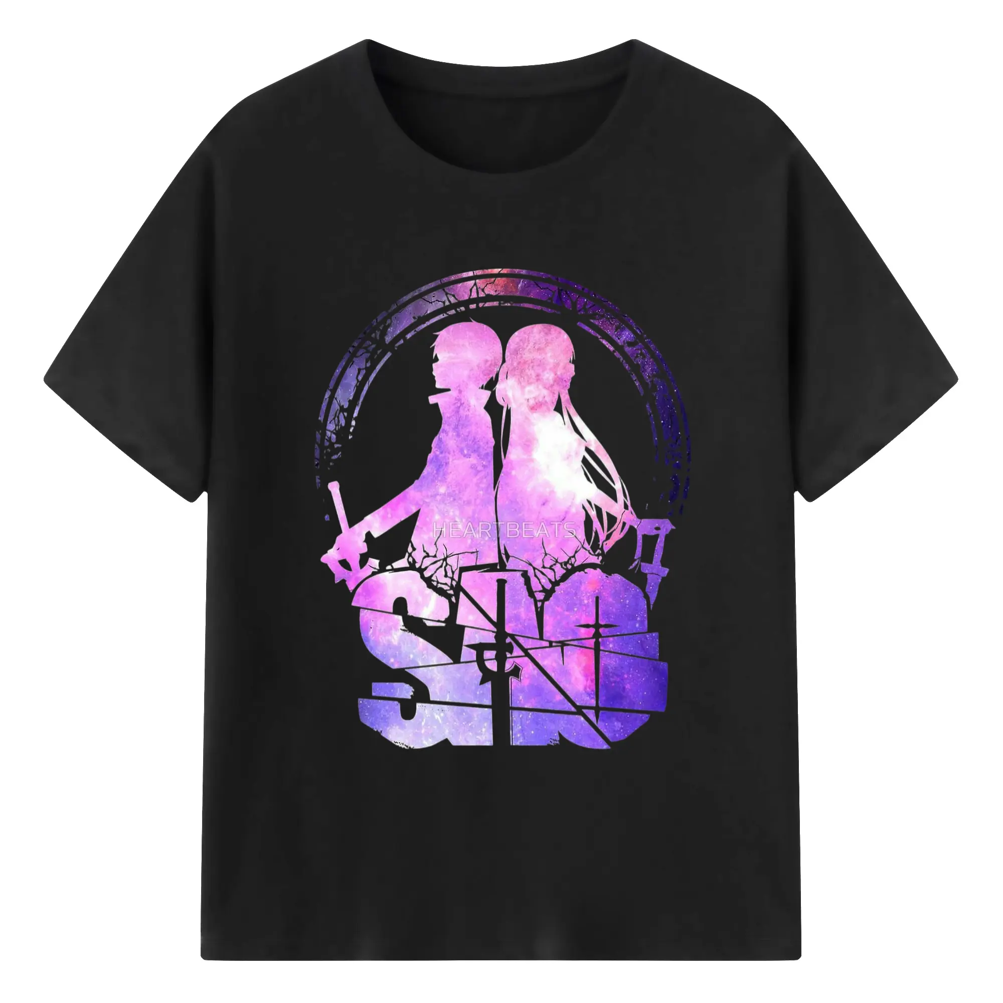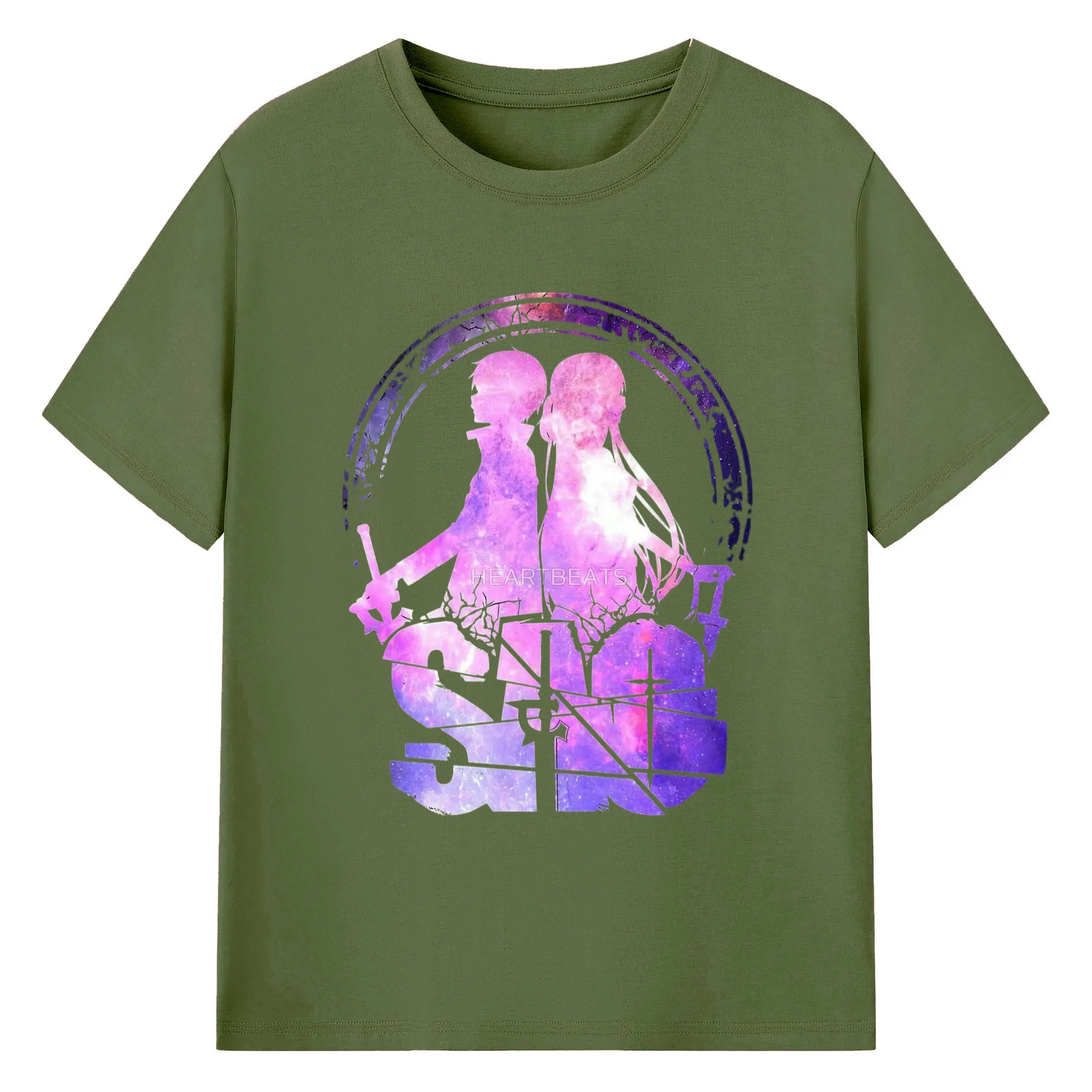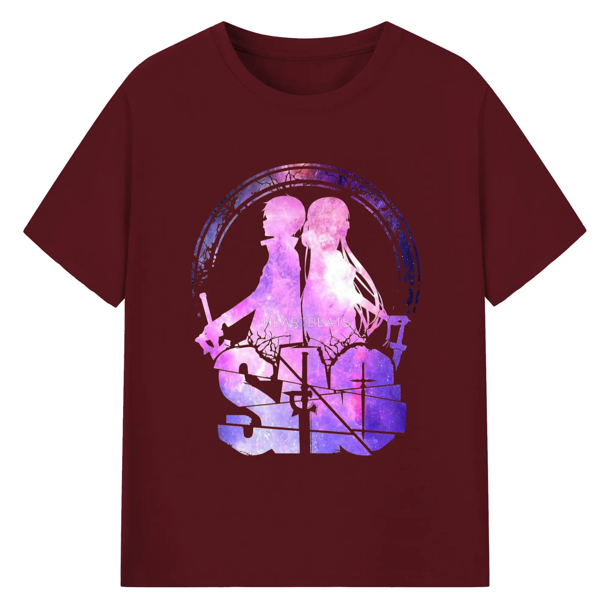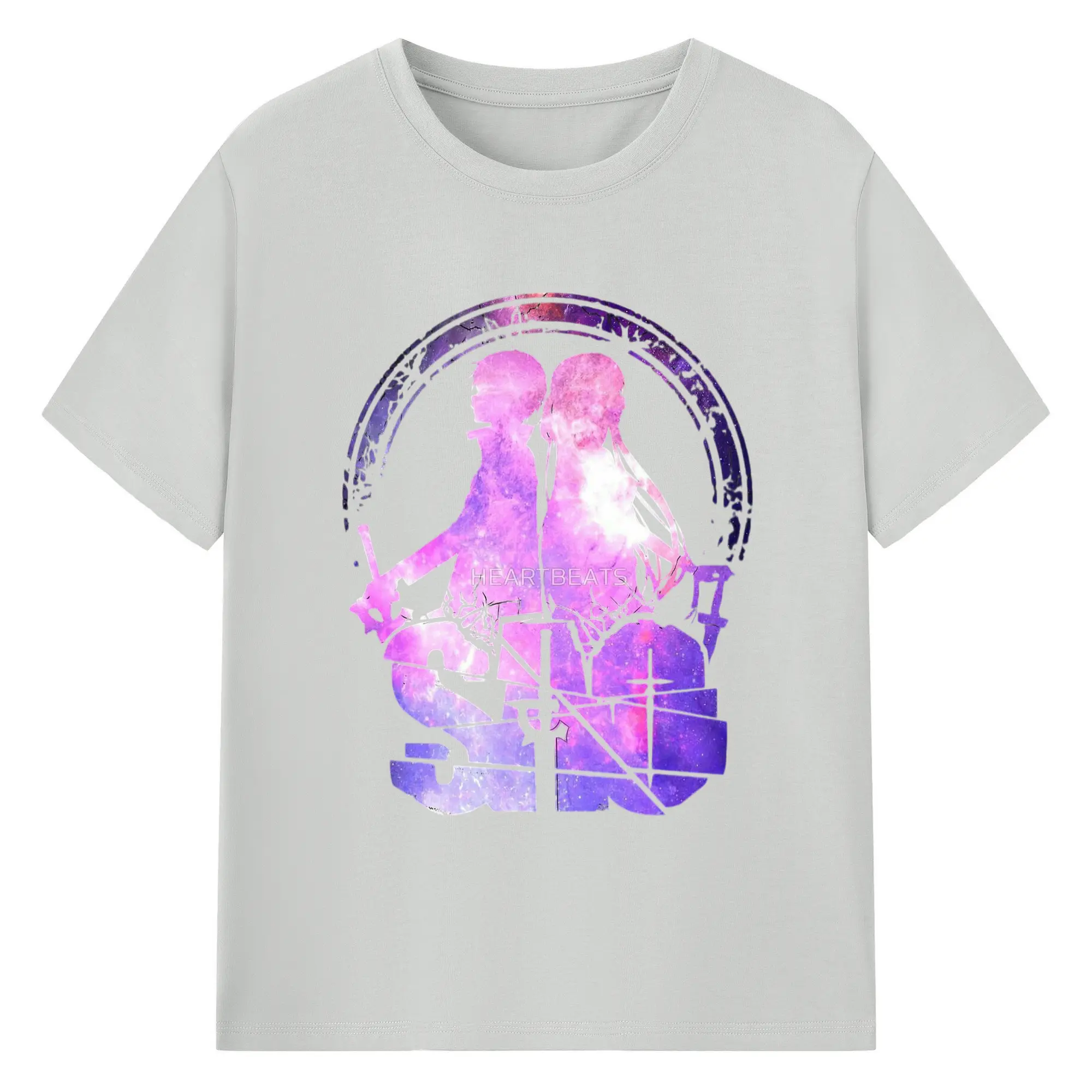 ソードアートオンライン キリトアスナ - 綿100% ヴィンテージ風 半袖Tシャツ ・ フロントプリント ・ 柔らか肌触り ・ 通気性 快適 ・ スポーツ カジュアル 外出用