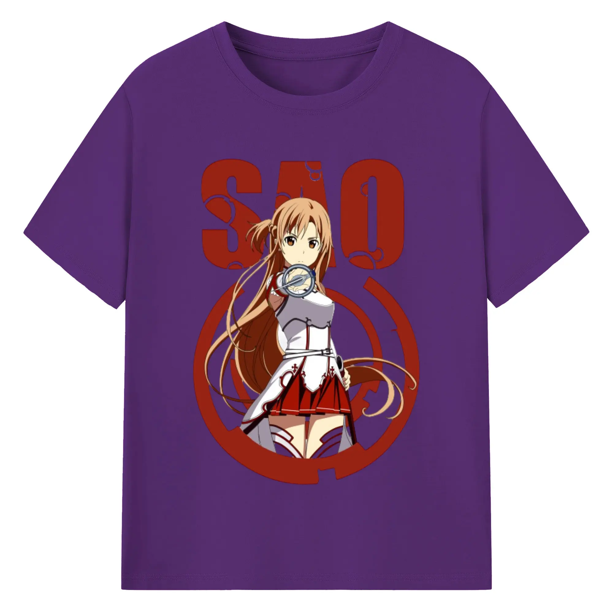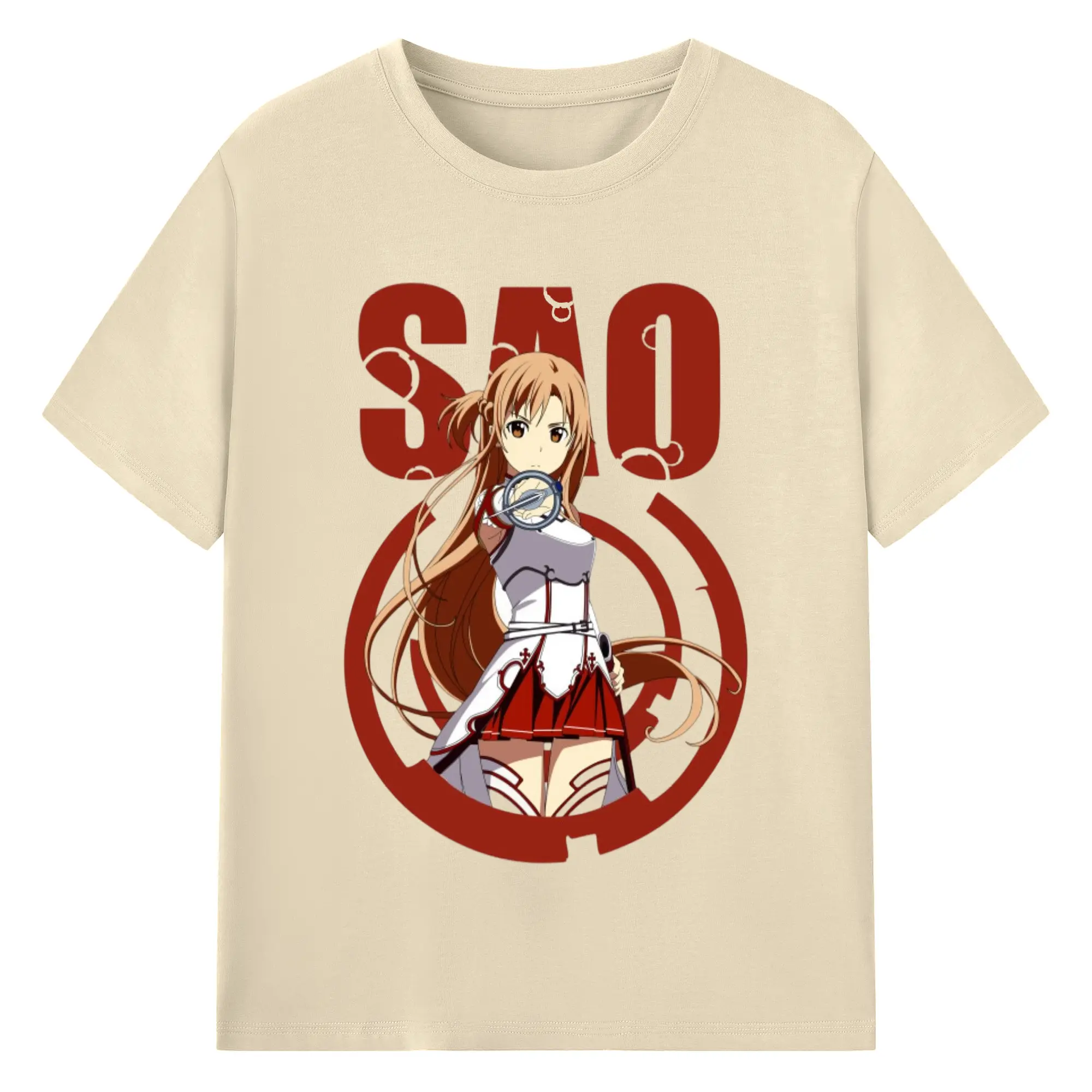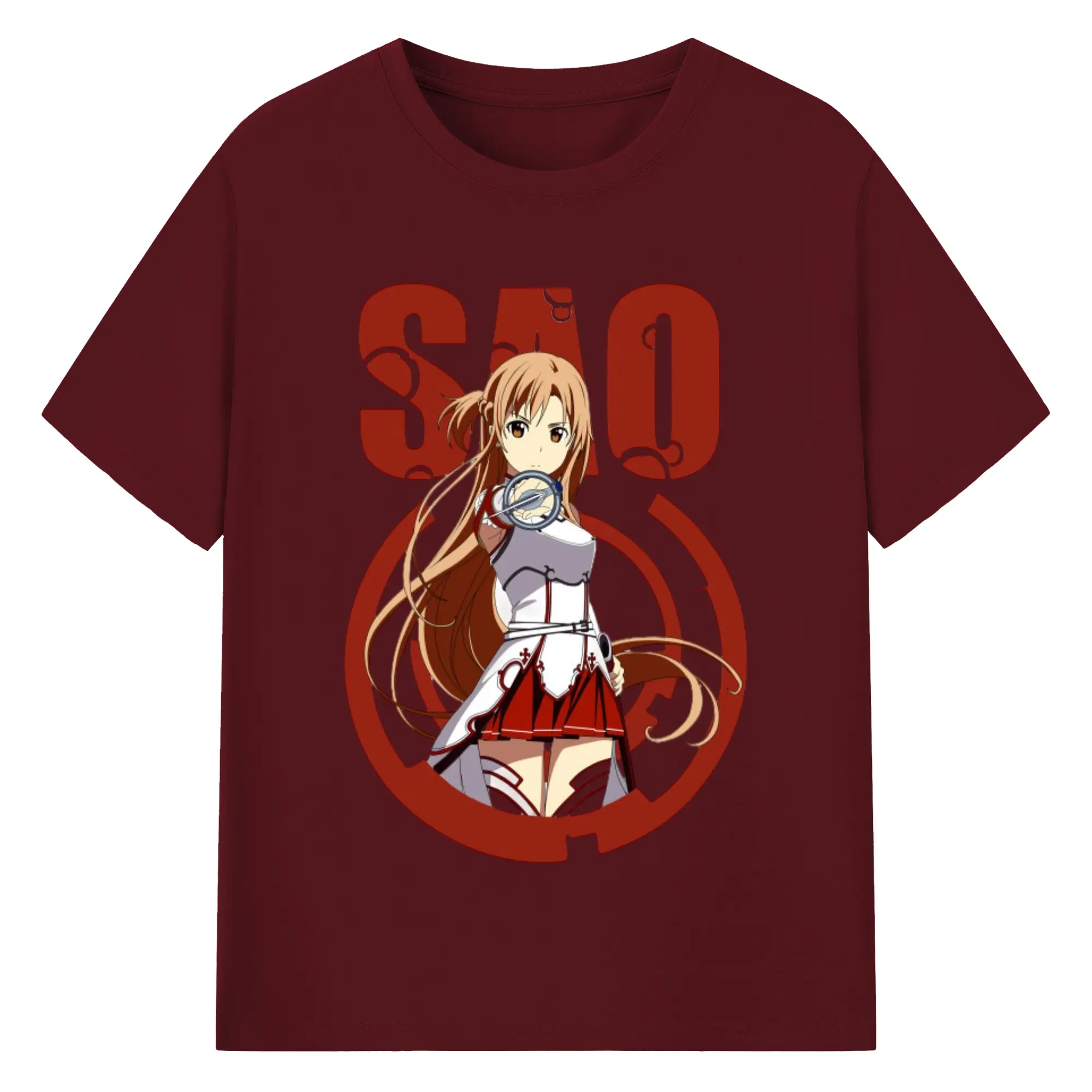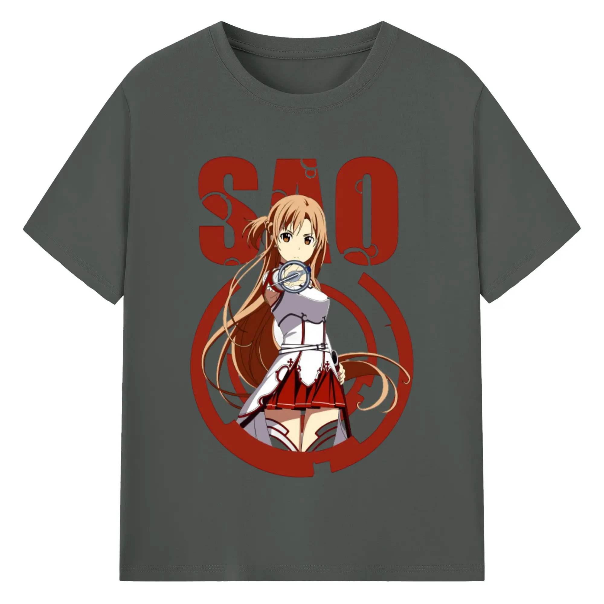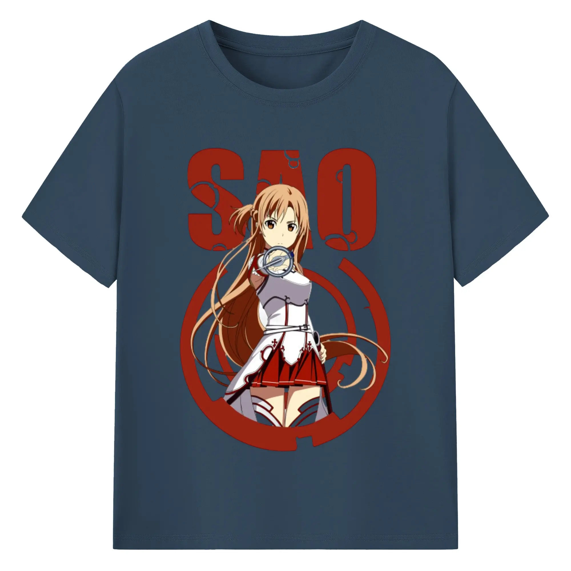 ソードアートオンライン SAOキャラ アスナ - 綿100% ヴィンテージ風 半袖Tシャツ ・ フロントプリント ・ 柔らか肌触り ・ 通気性 快適 ・ スポーツ カジュアル 外出用