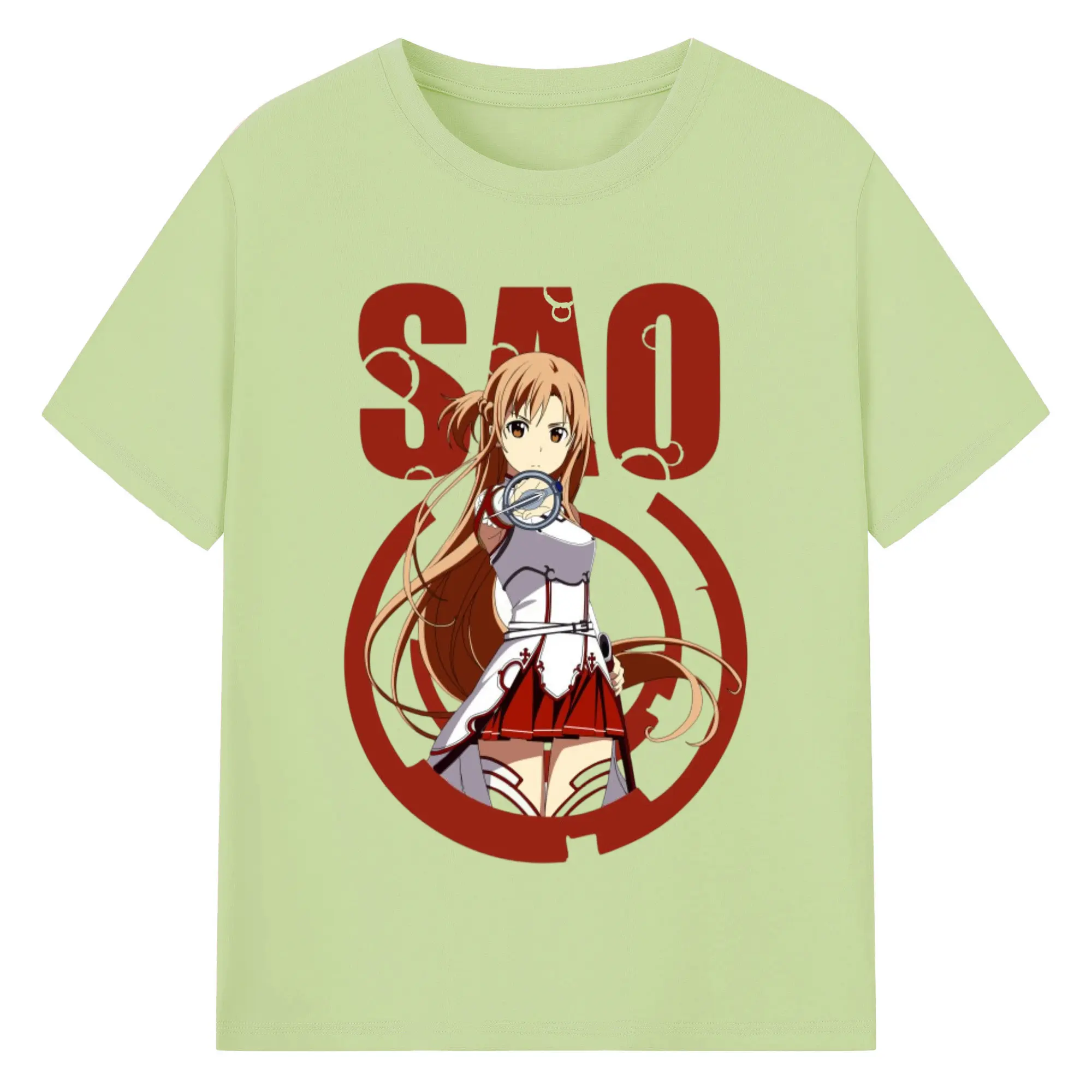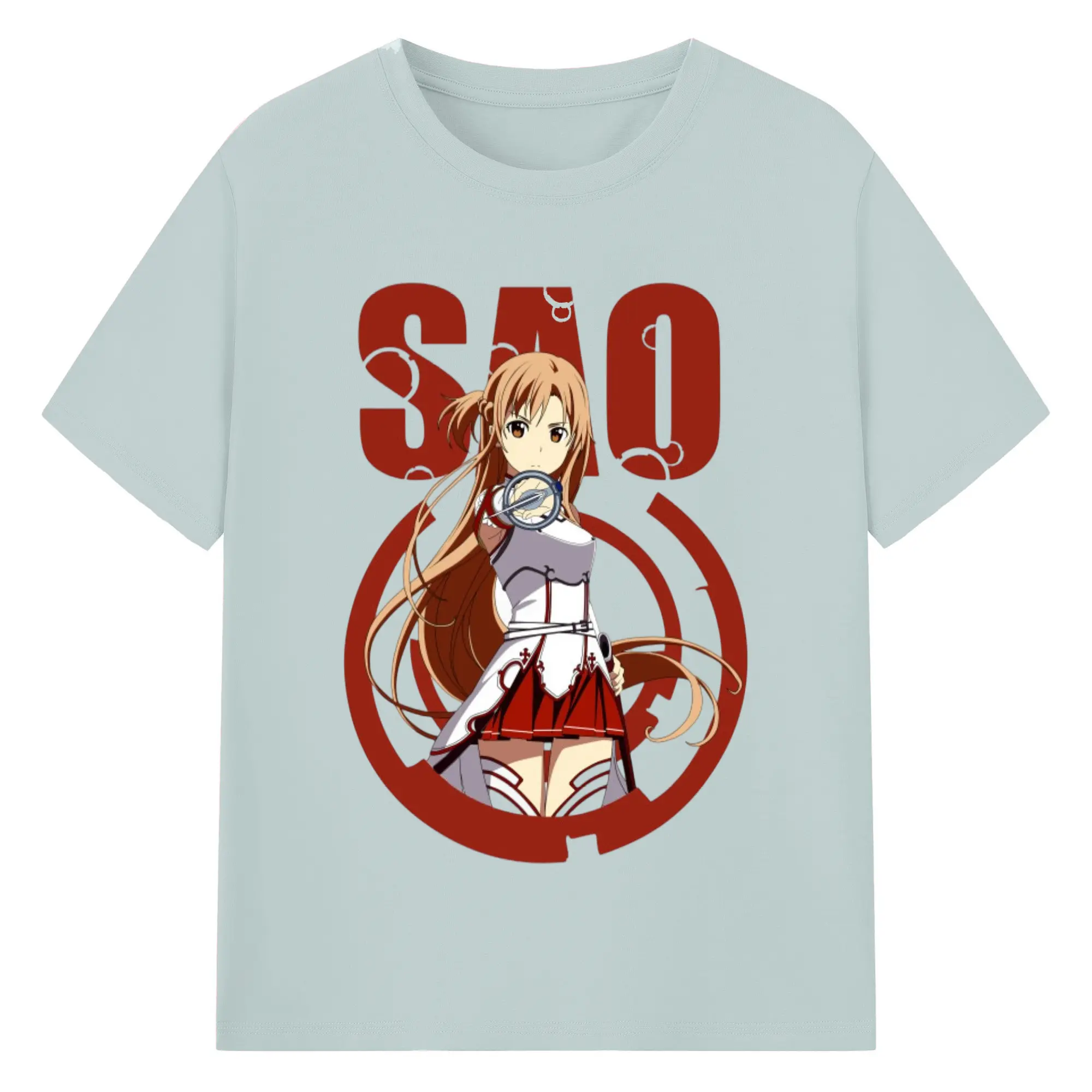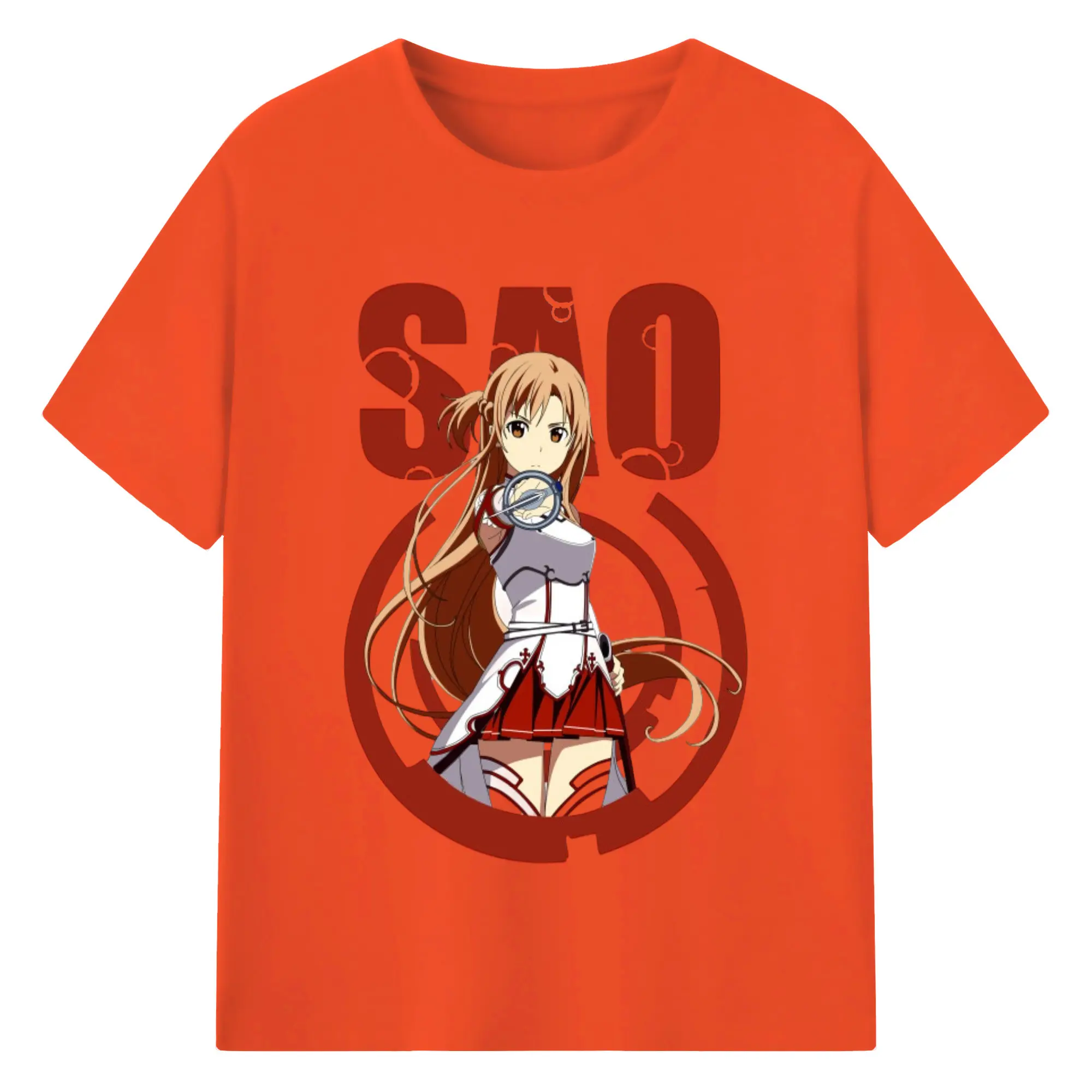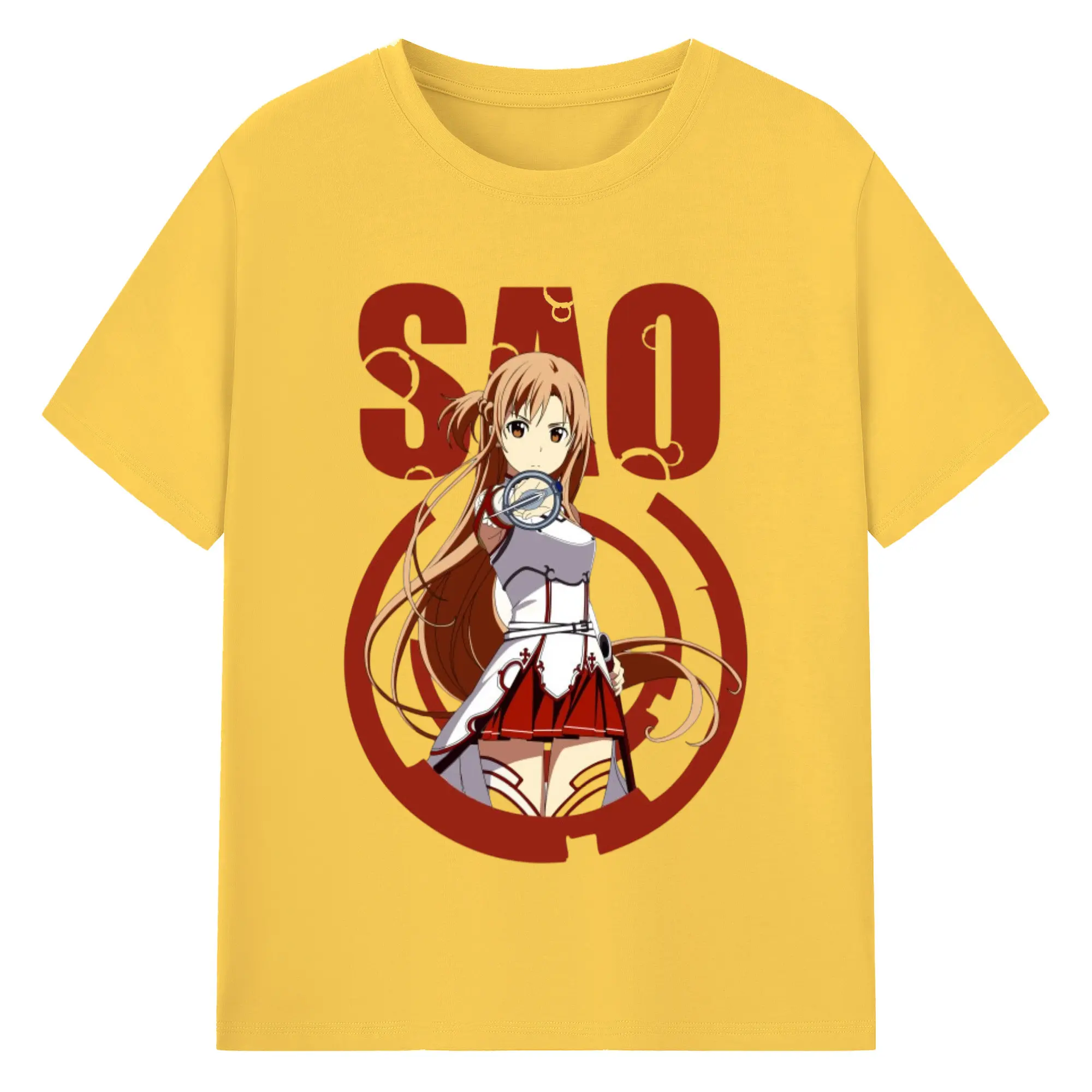 ソードアートオンライン SAOキャラ アスナ - 綿100% ヴィンテージ風 半袖Tシャツ ・ フロントプリント ・ 柔らか肌触り ・ 通気性 快適 ・ スポーツ カジュアル 外出用