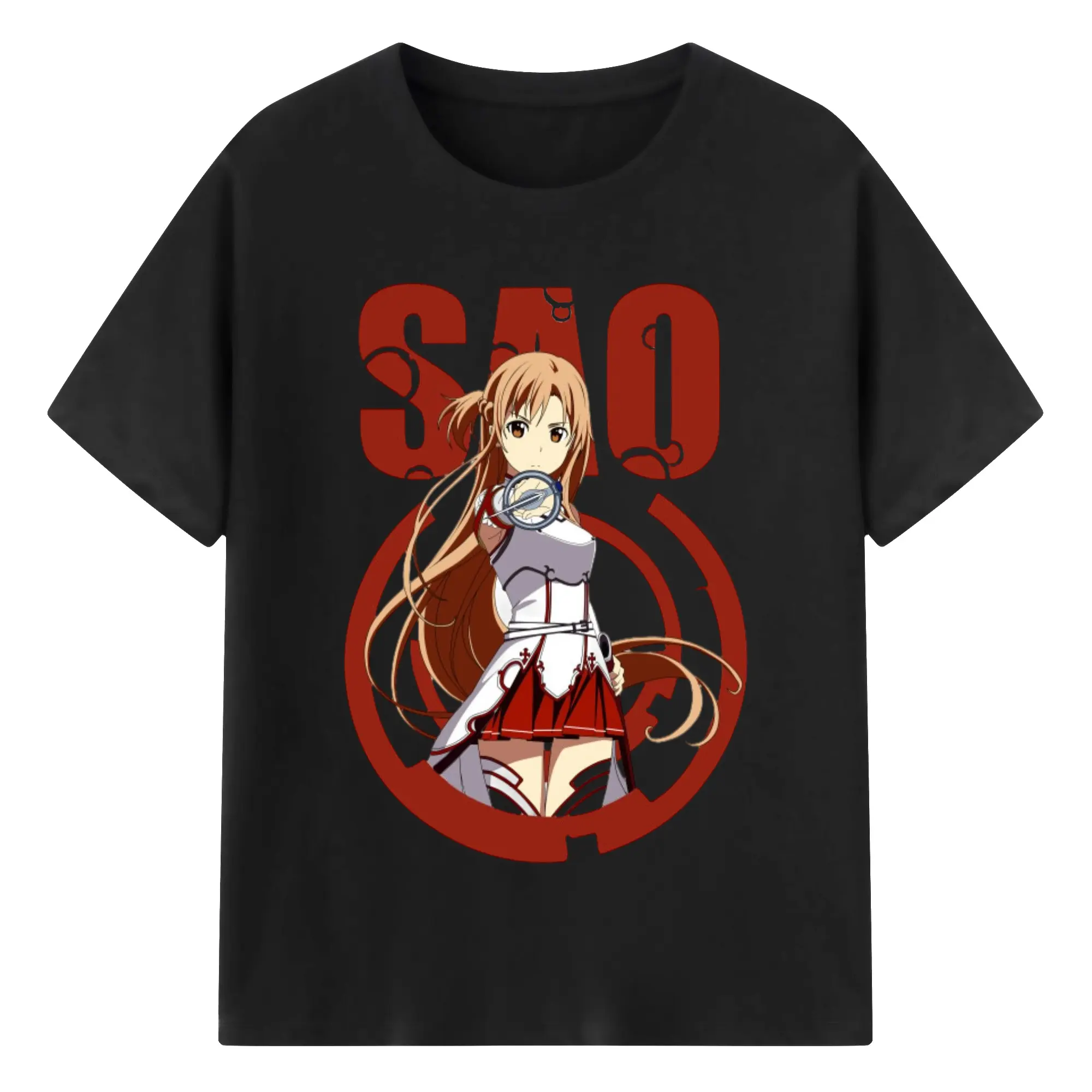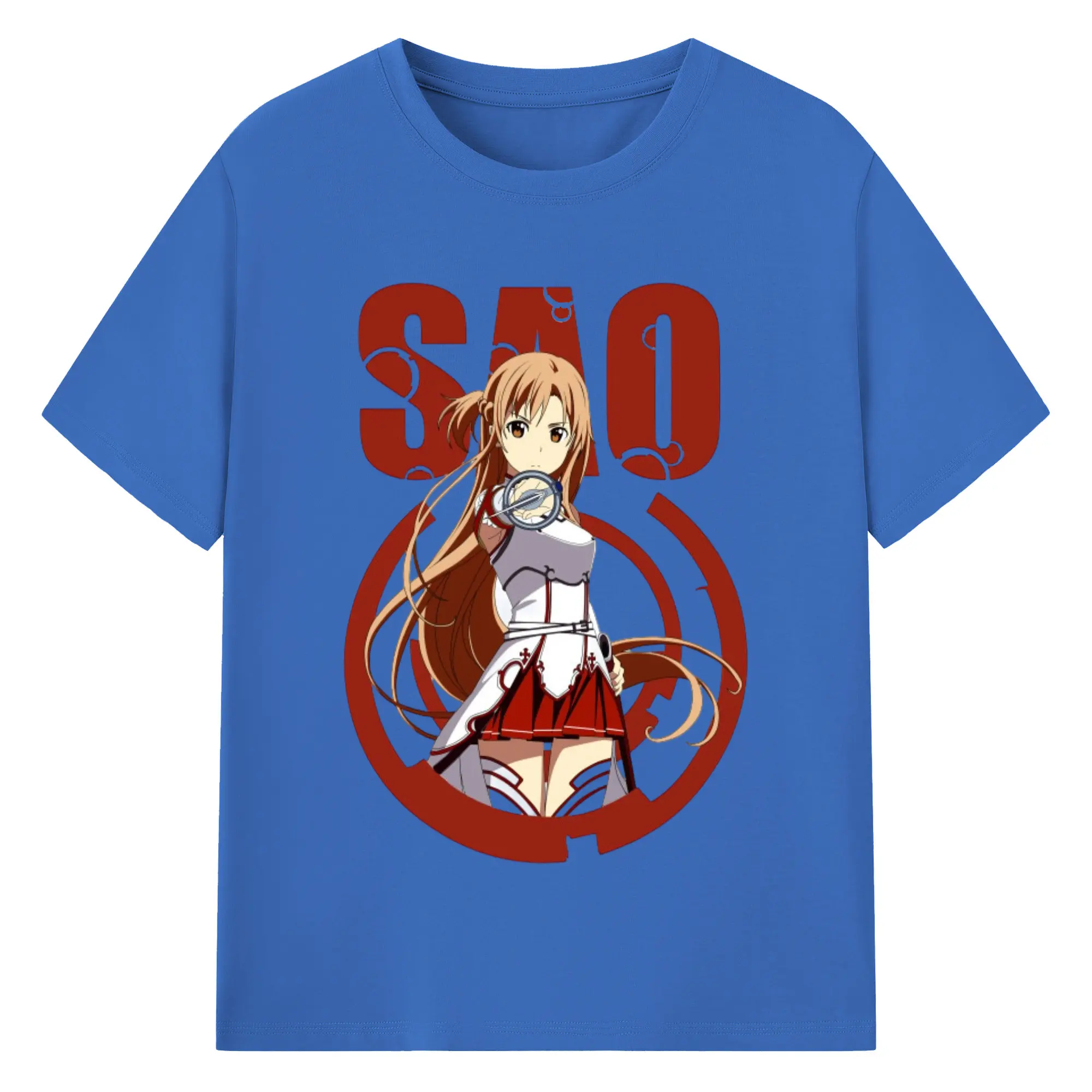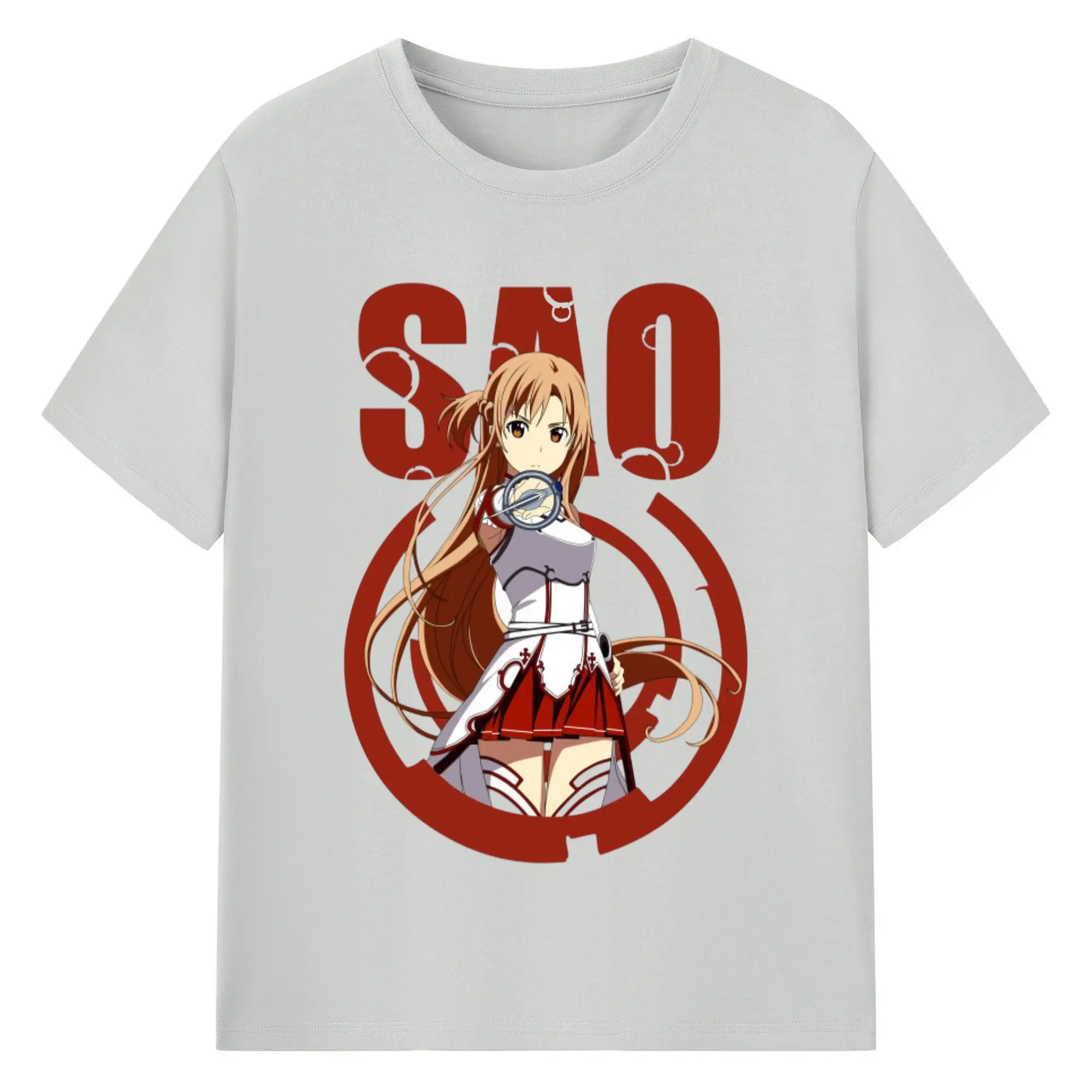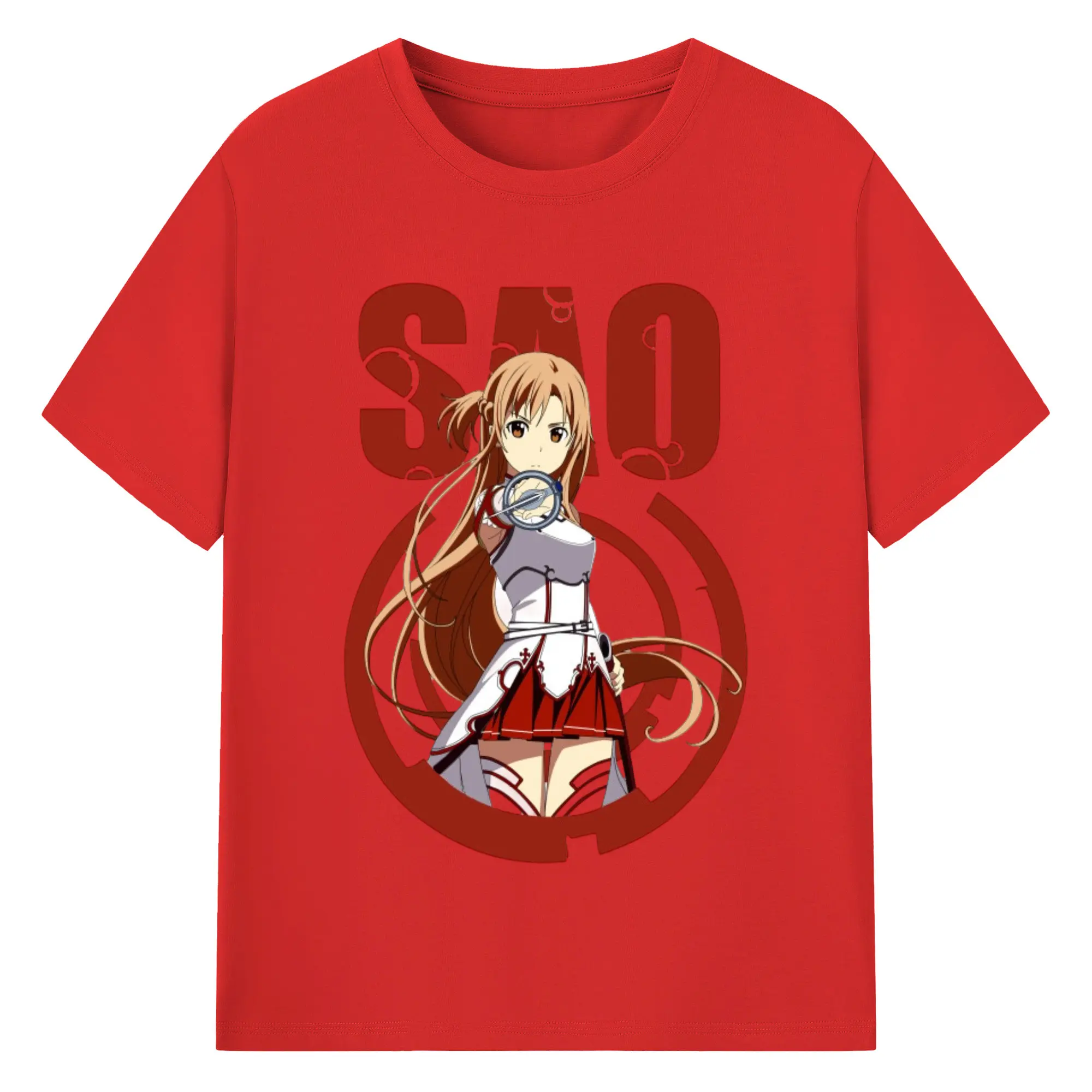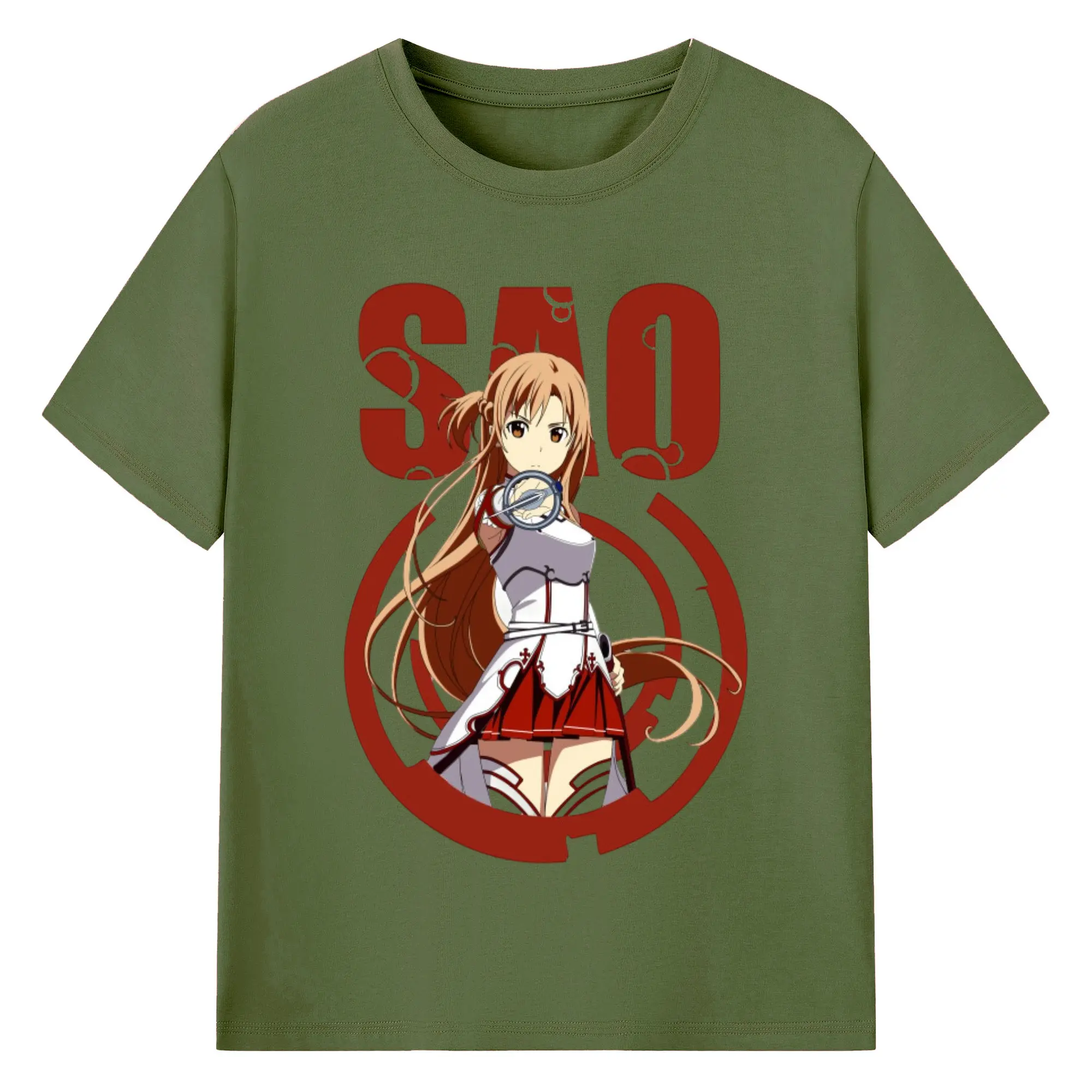 ソードアートオンライン SAOキャラ アスナ - 綿100% ヴィンテージ風 半袖Tシャツ ・ フロントプリント ・ 柔らか肌触り ・ 通気性 快適 ・ スポーツ カジュアル 外出用