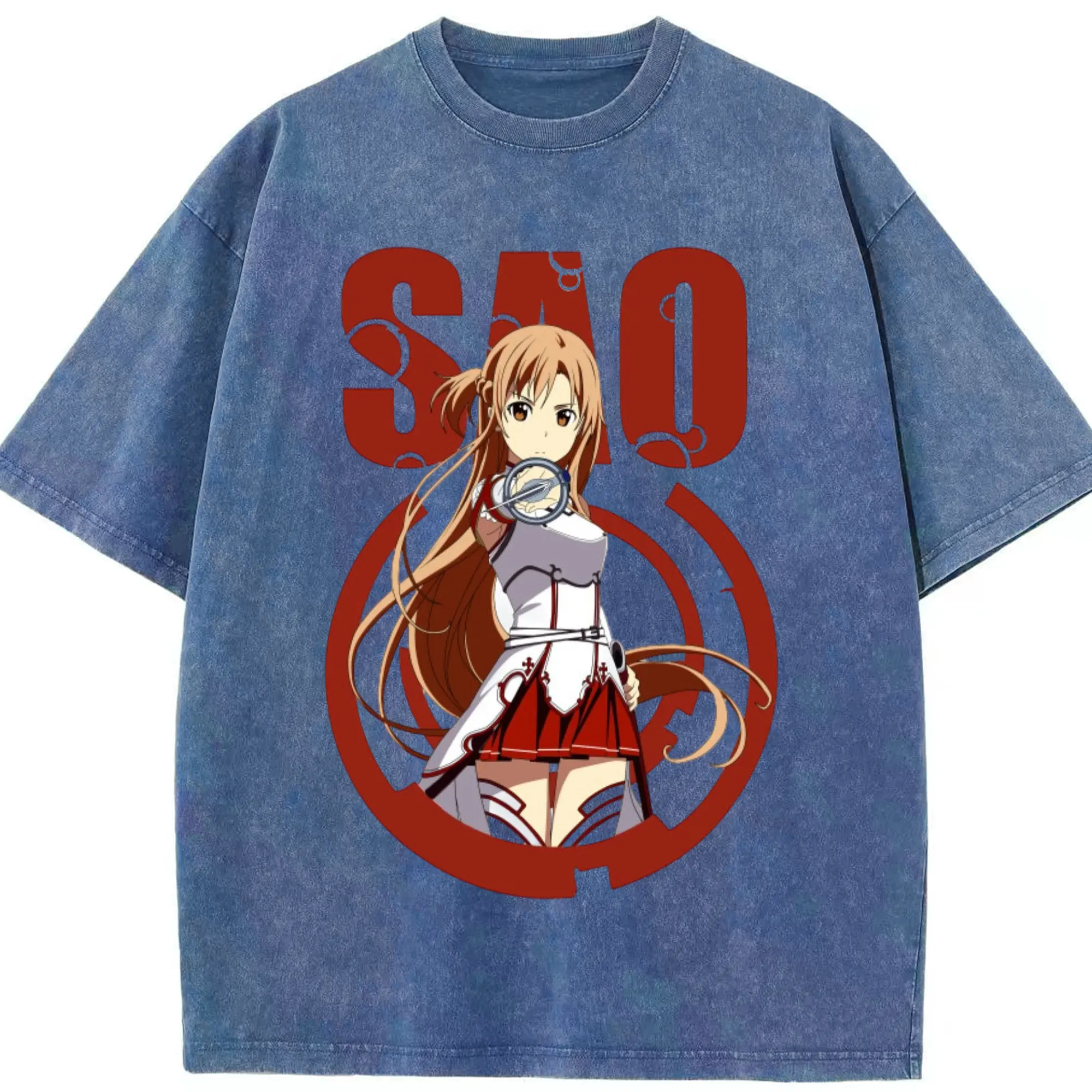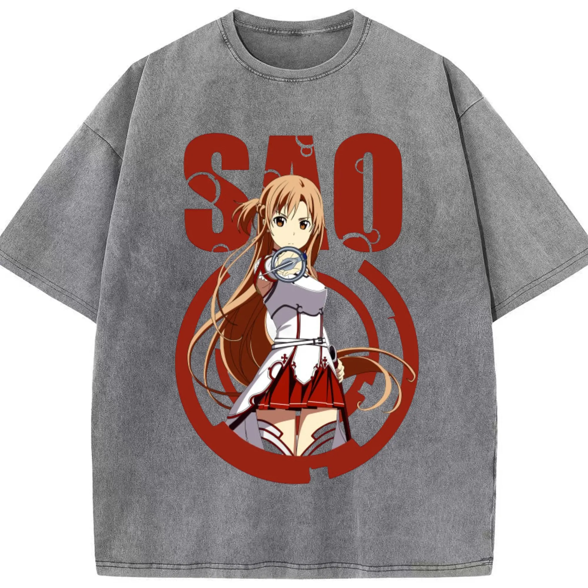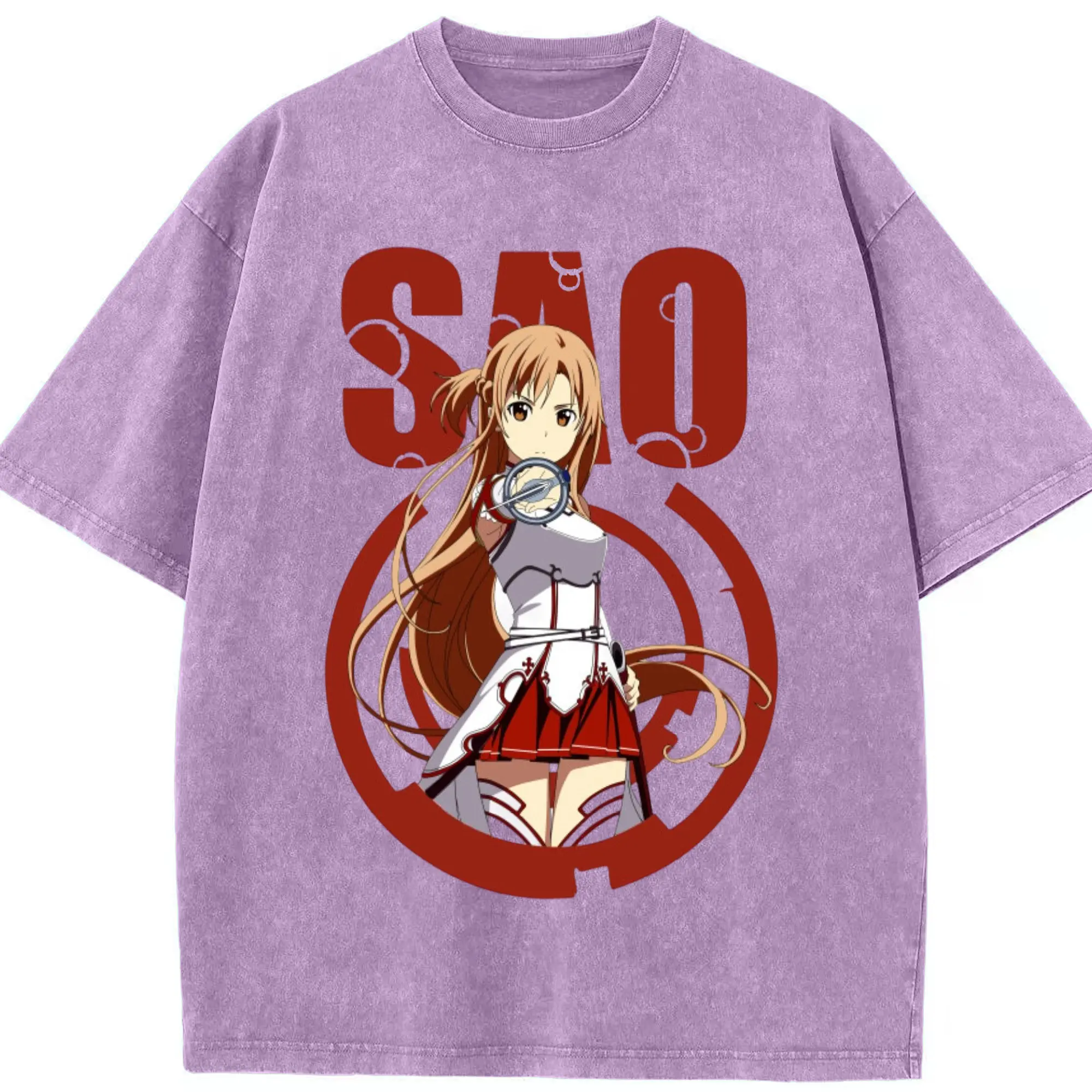 ソードアートオンライン SAOキャラ アスナ - 綿100% 半袖Tシャツ ・ フロントプリント ・ 快適 通気性 ・ 日常使い 散歩 スポーツ用