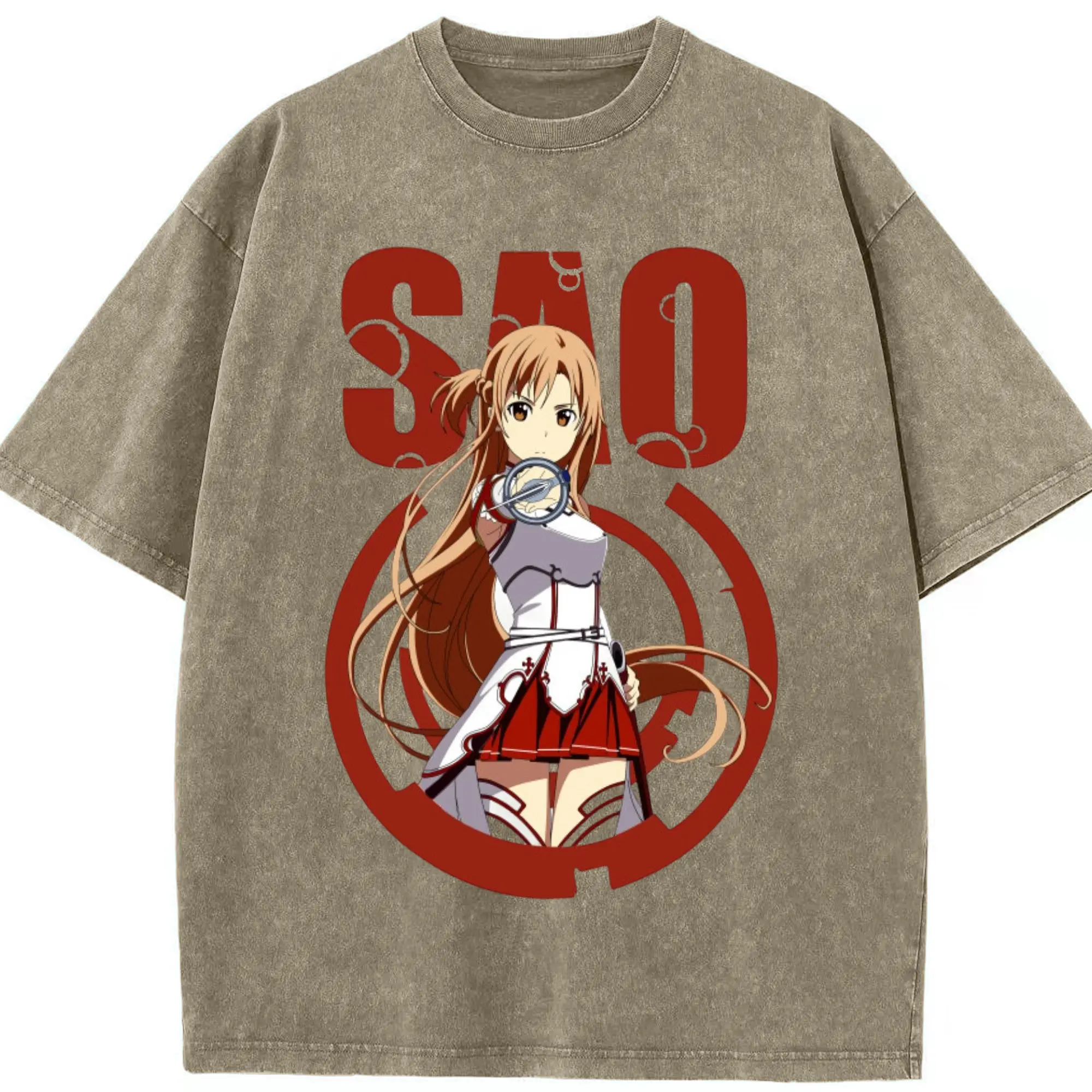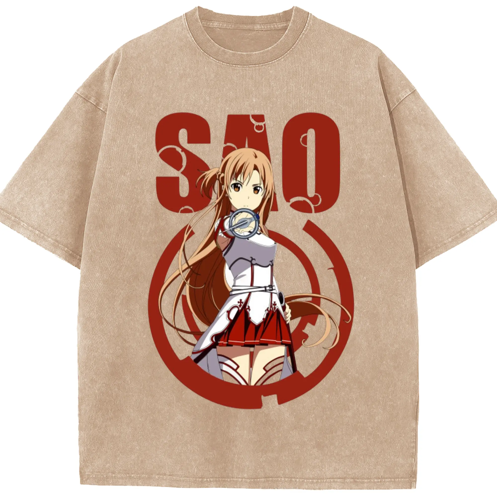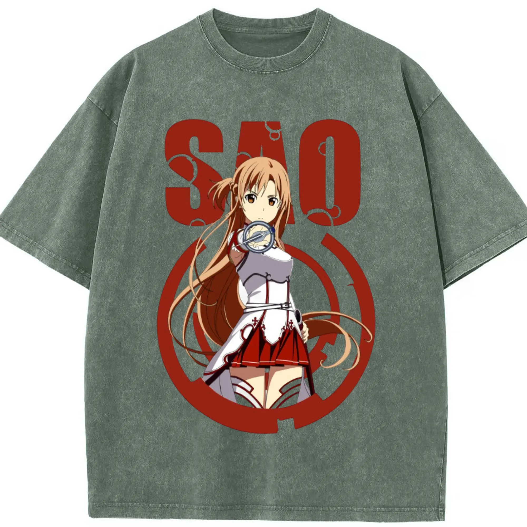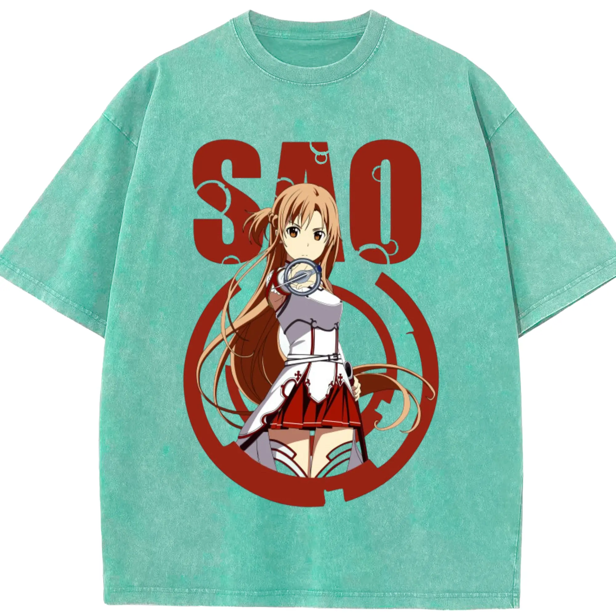 ソードアートオンライン SAOキャラ アスナ - 綿100% 半袖Tシャツ ・ フロントプリント ・ 快適 通気性 ・ 日常使い 散歩 スポーツ用