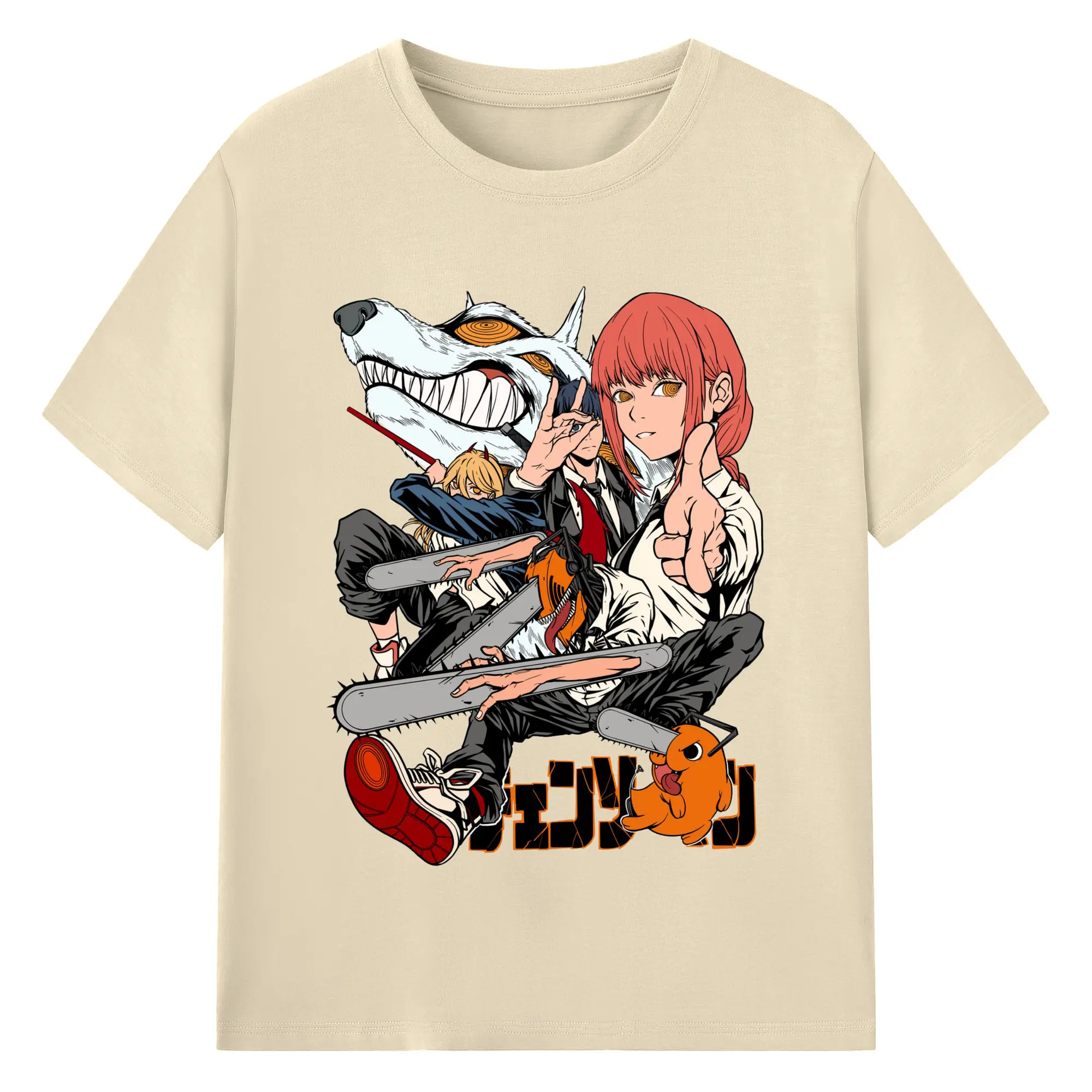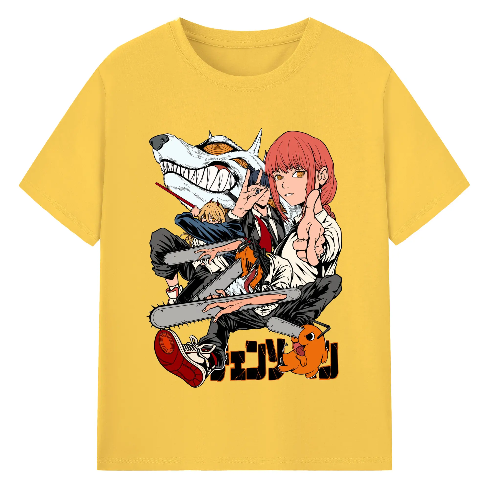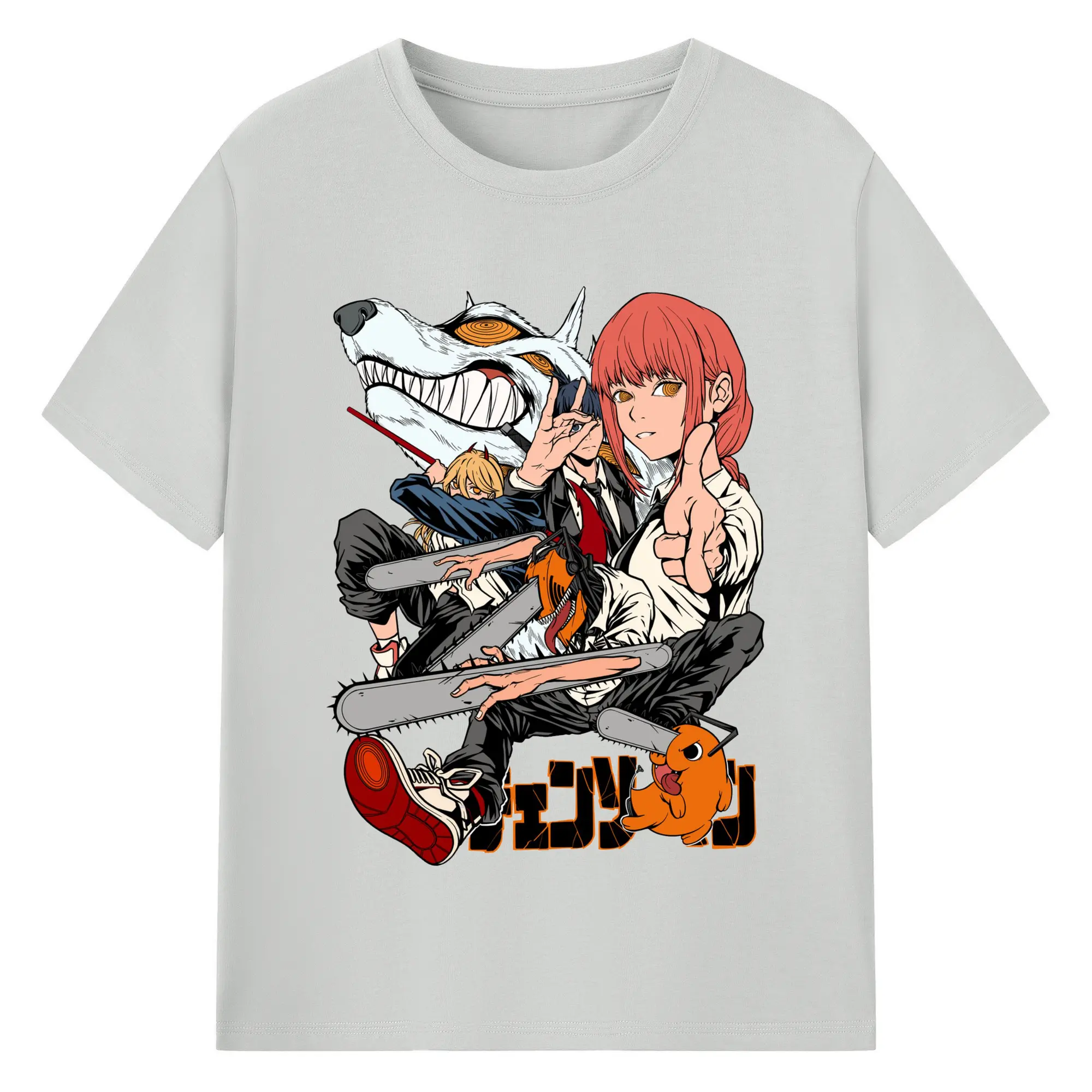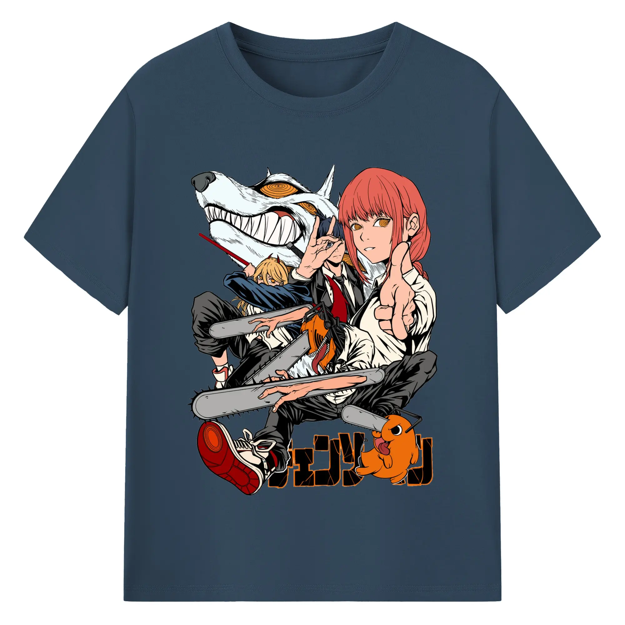 チェンソーマン デンジマキマ - 綿100% ヴィンテージ風 半袖Tシャツ ・ フロントプリント ・ 柔らか肌触り ・ 通気性 快適 ・ スポーツ カジュアル 外出用