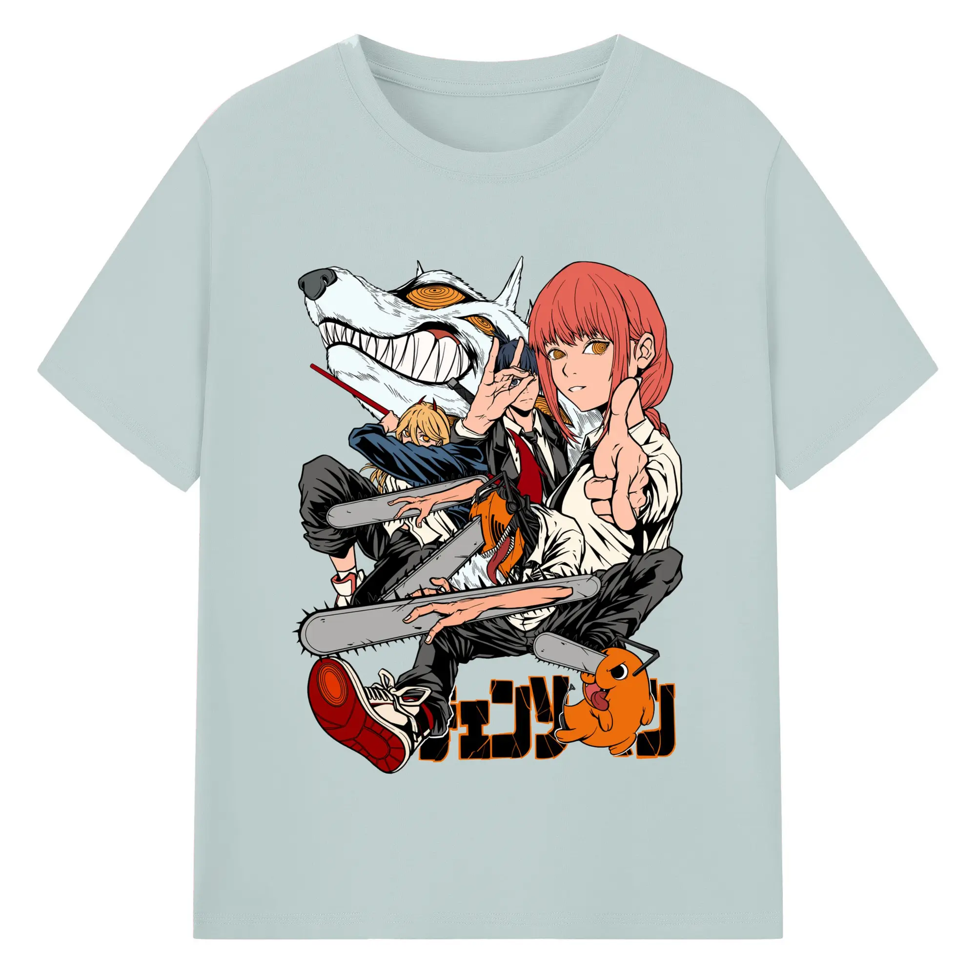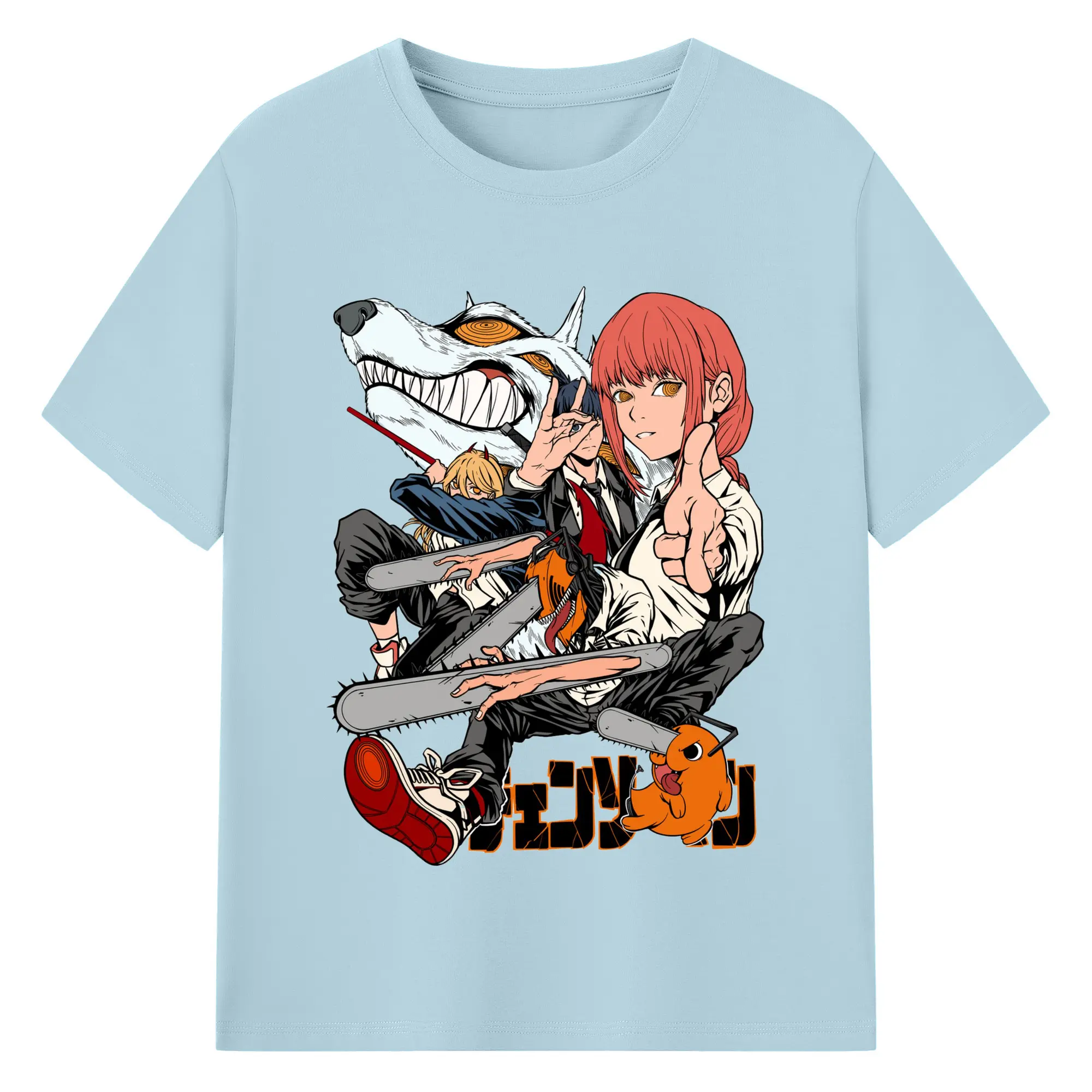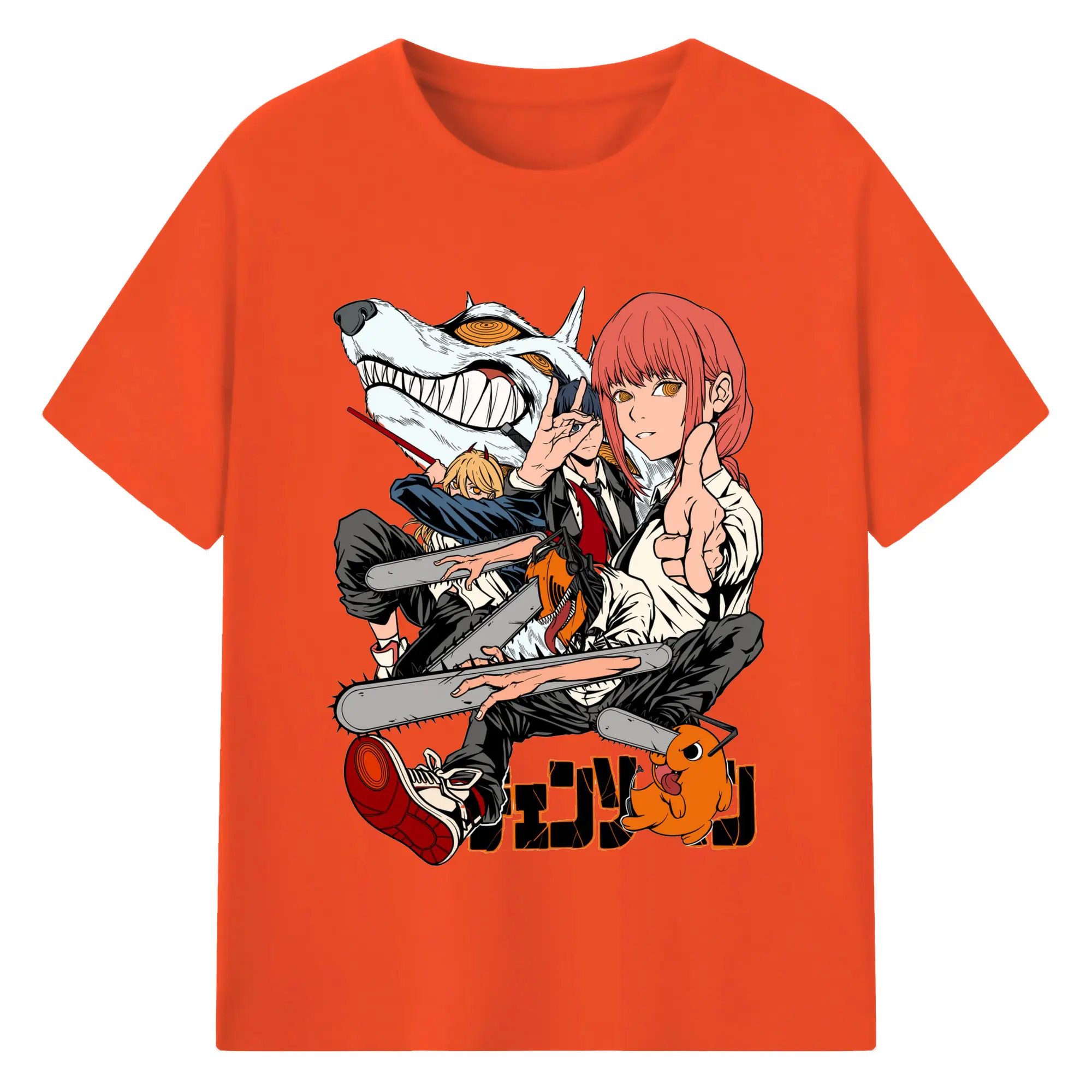 チェンソーマン デンジマキマ - 綿100% ヴィンテージ風 半袖Tシャツ ・ フロントプリント ・ 柔らか肌触り ・ 通気性 快適 ・ スポーツ カジュアル 外出用
