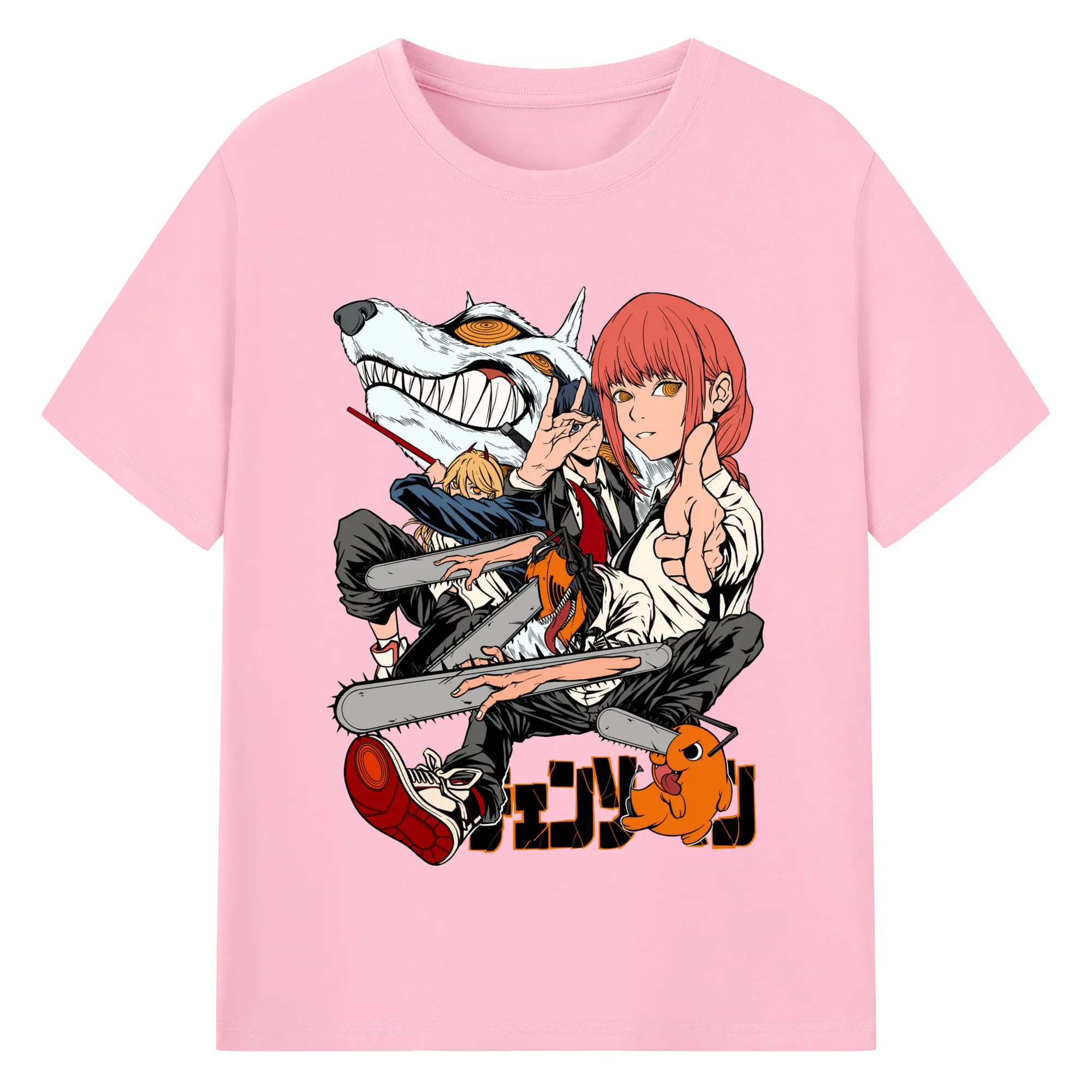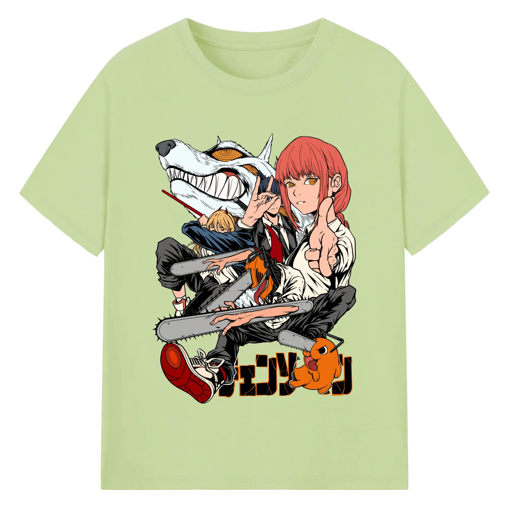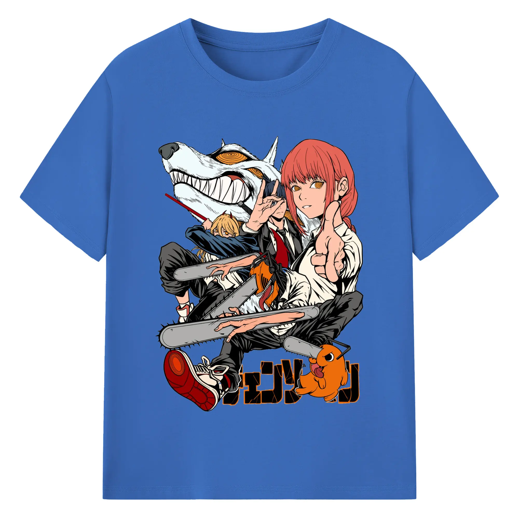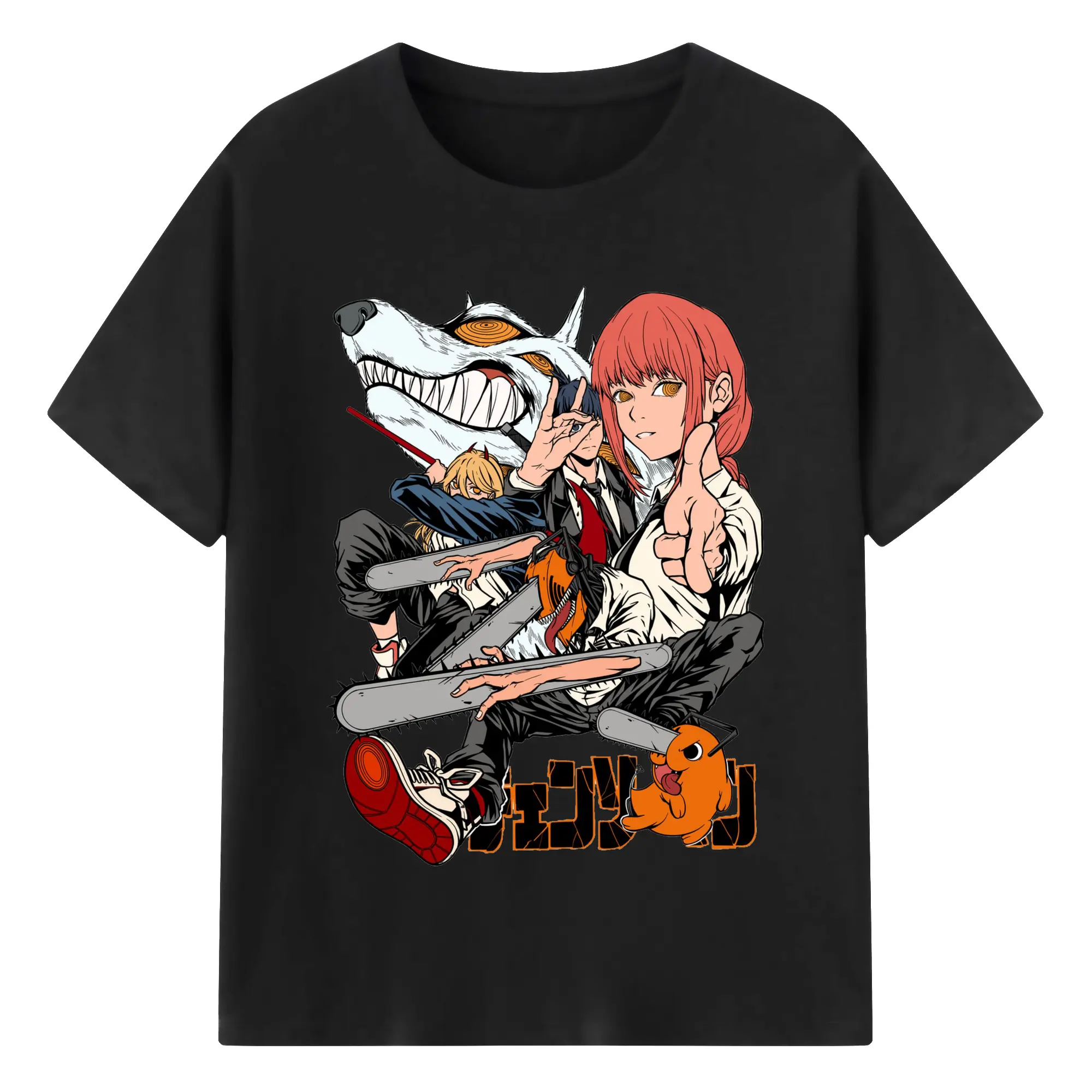 チェンソーマン デンジマキマ - 綿100% ヴィンテージ風 半袖Tシャツ ・ フロントプリント ・ 柔らか肌触り ・ 通気性 快適 ・ スポーツ カジュアル 外出用