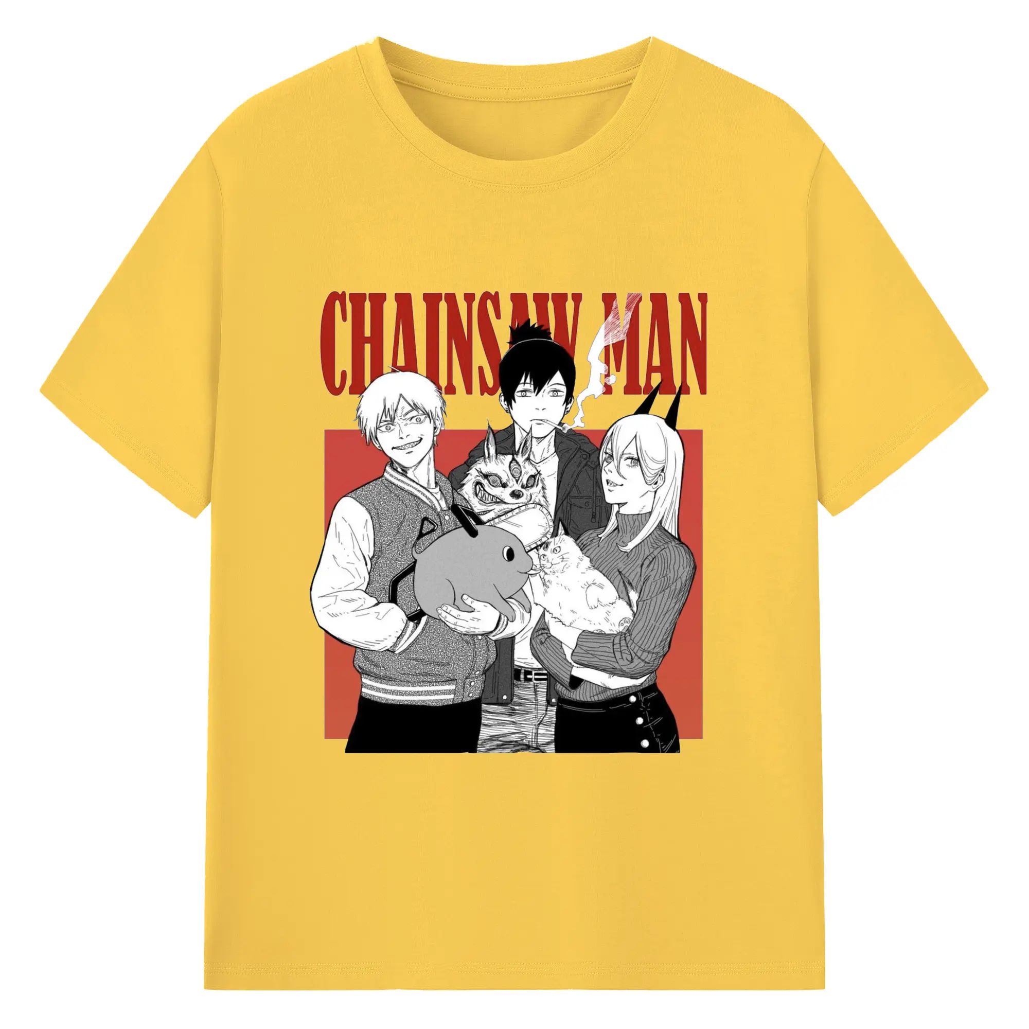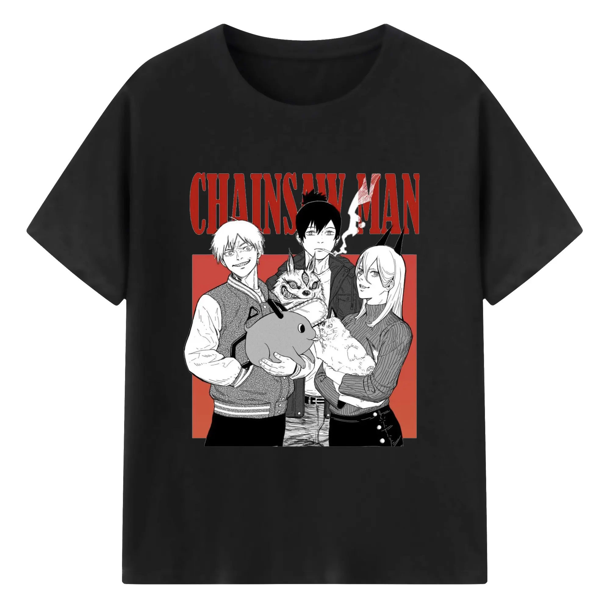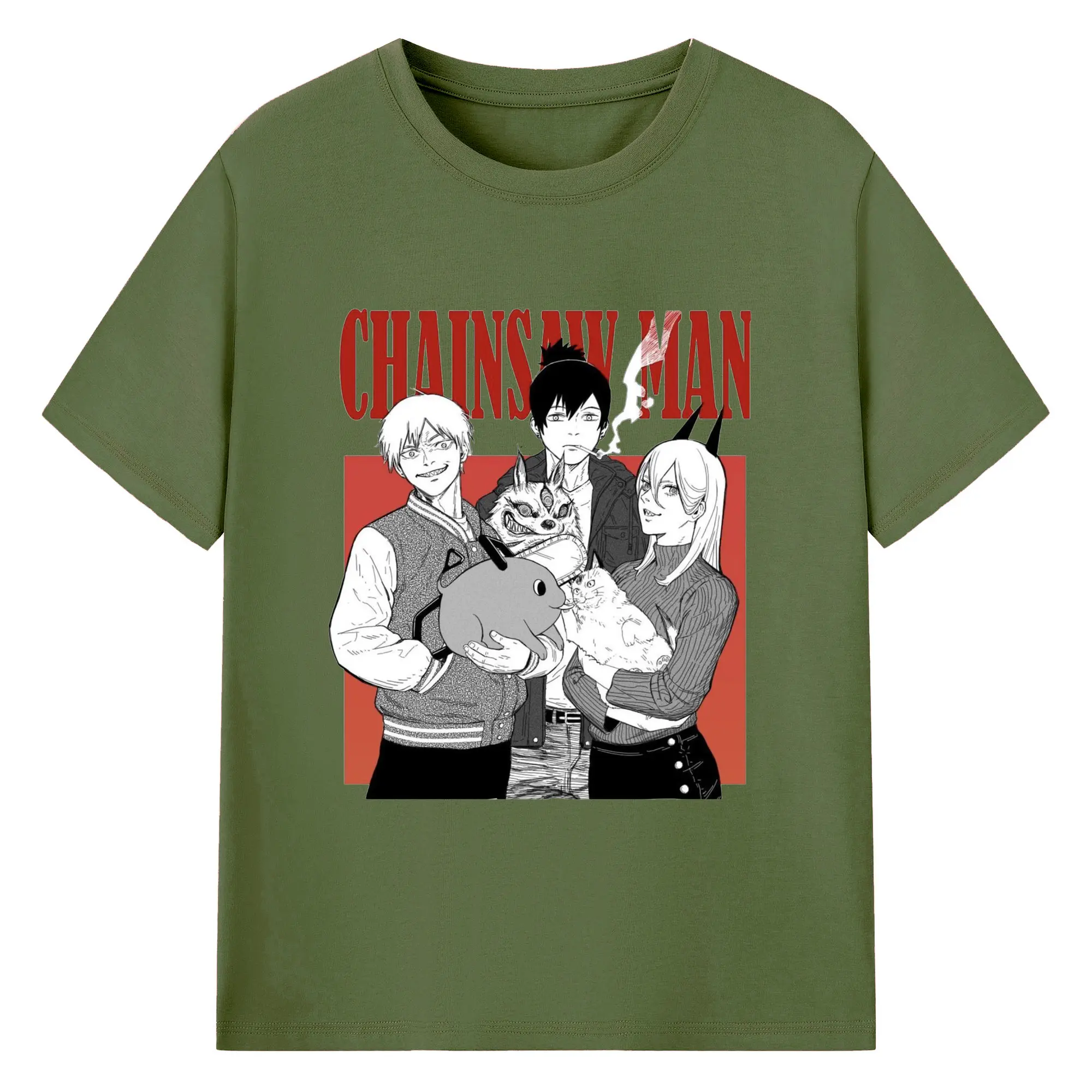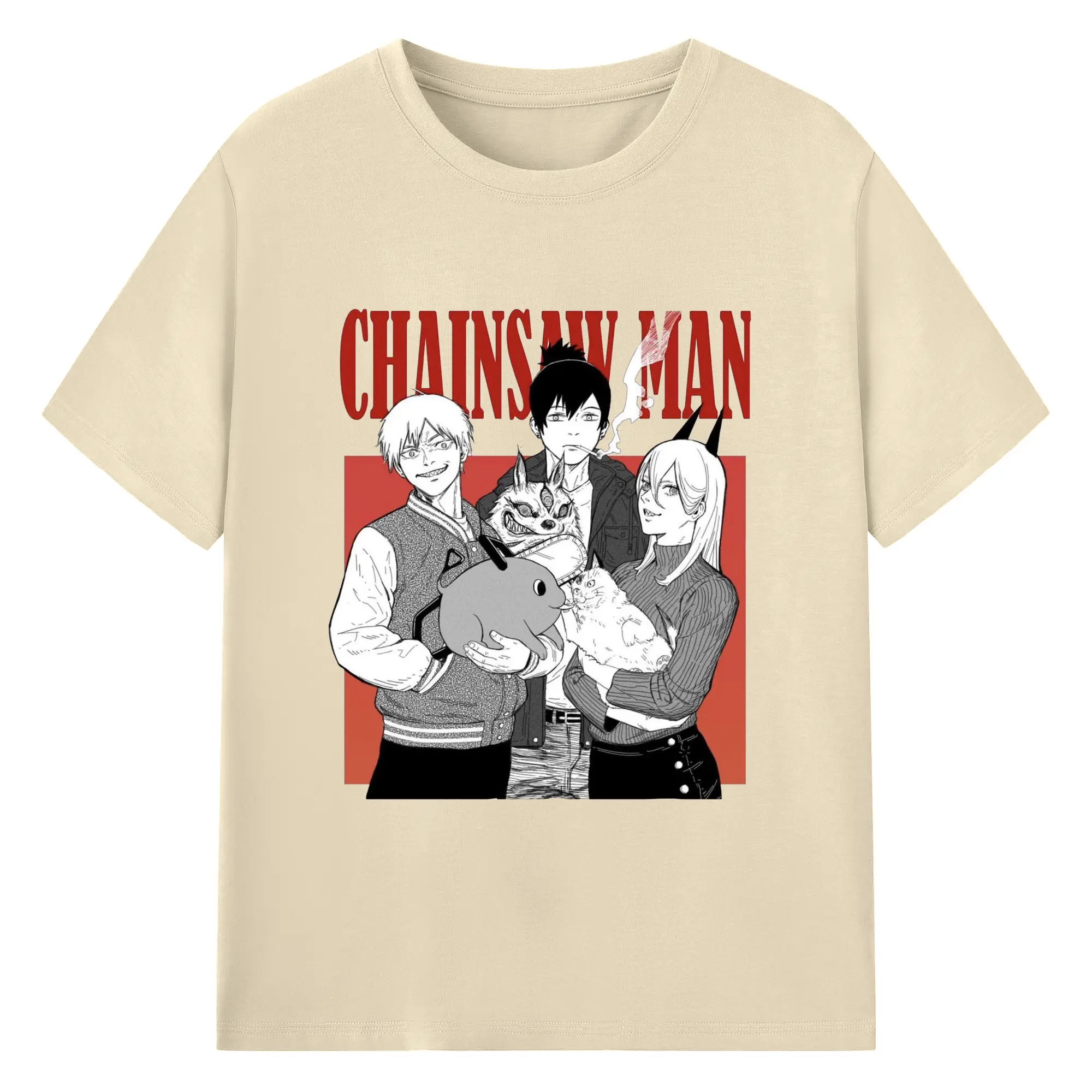 チェンソーマン マキマ推し - 綿100% ヴィンテージ風 半袖Tシャツ ・ フロントプリント ・ 柔らか肌触り ・ 通気性 快適 ・ スポーツ カジュアル 外出用