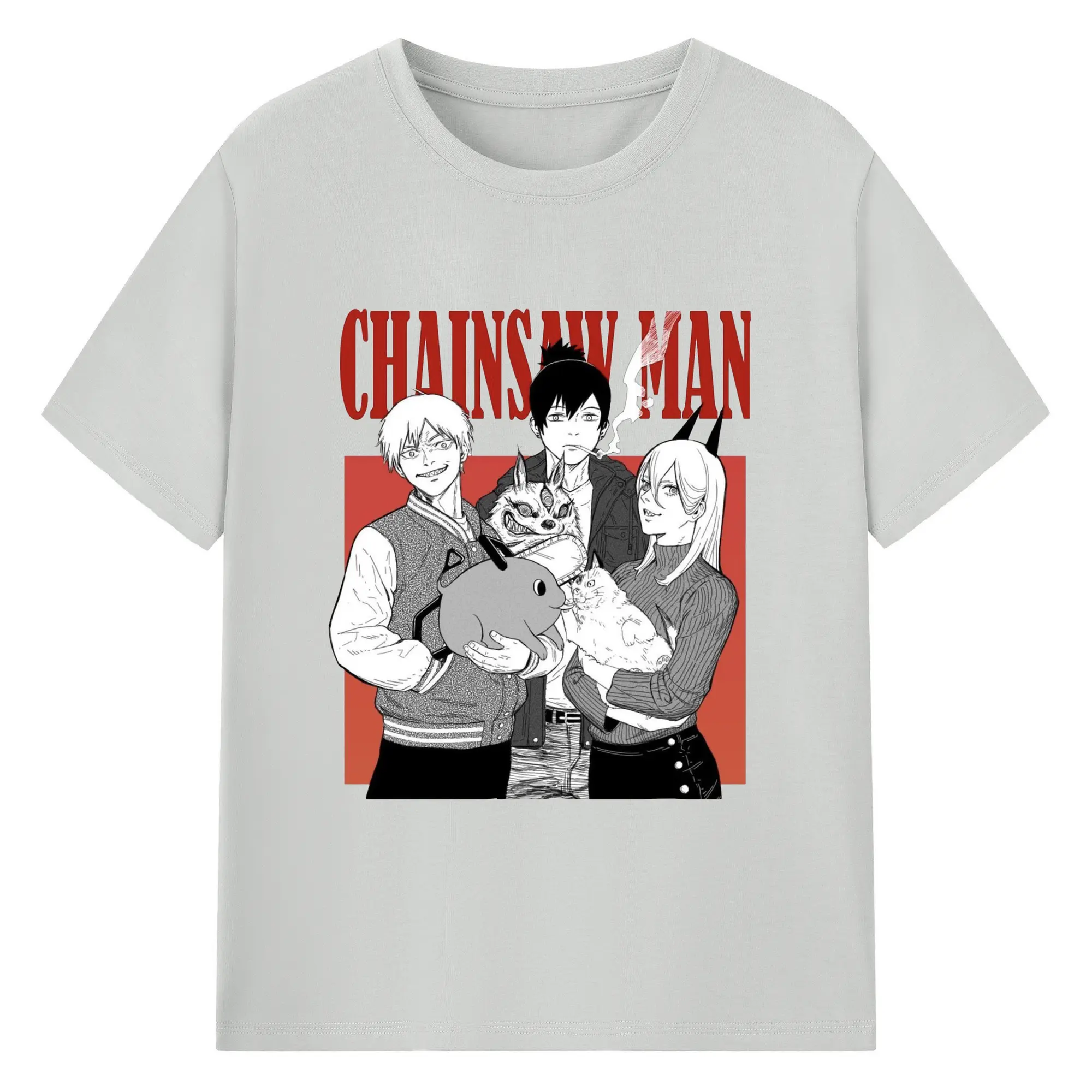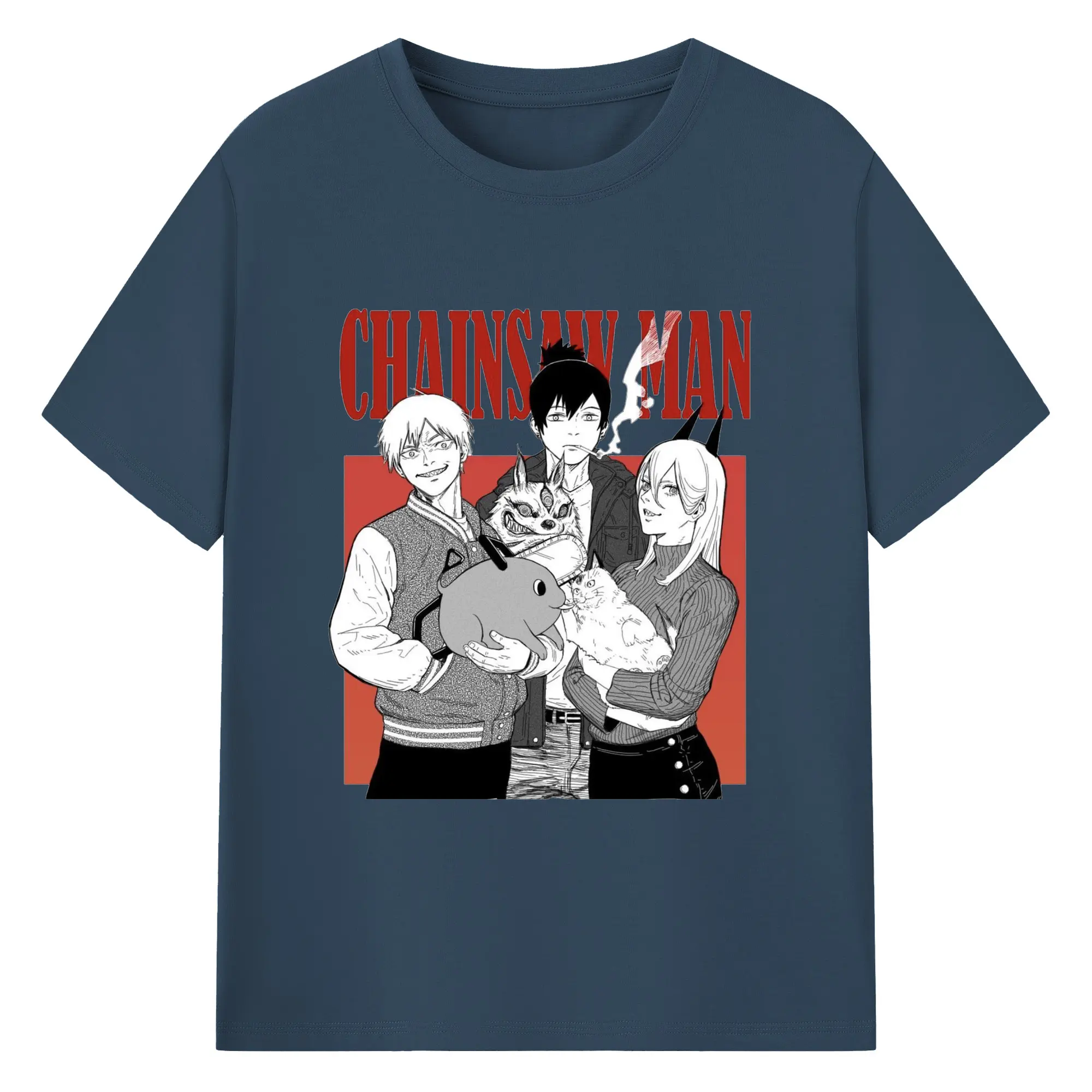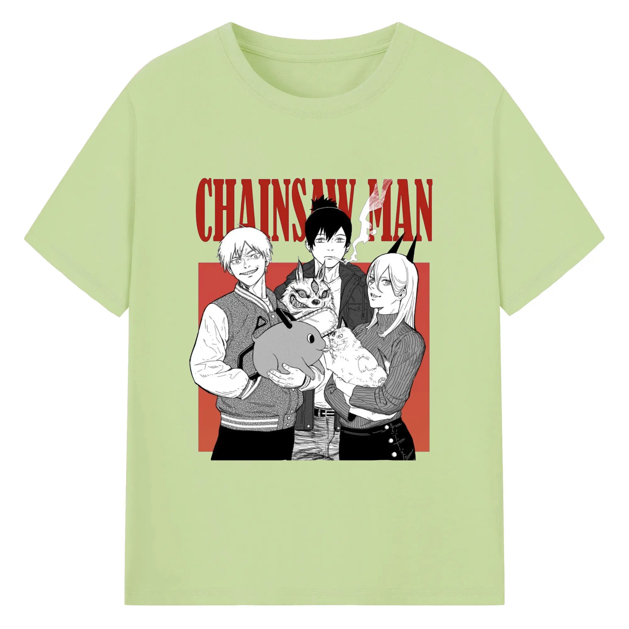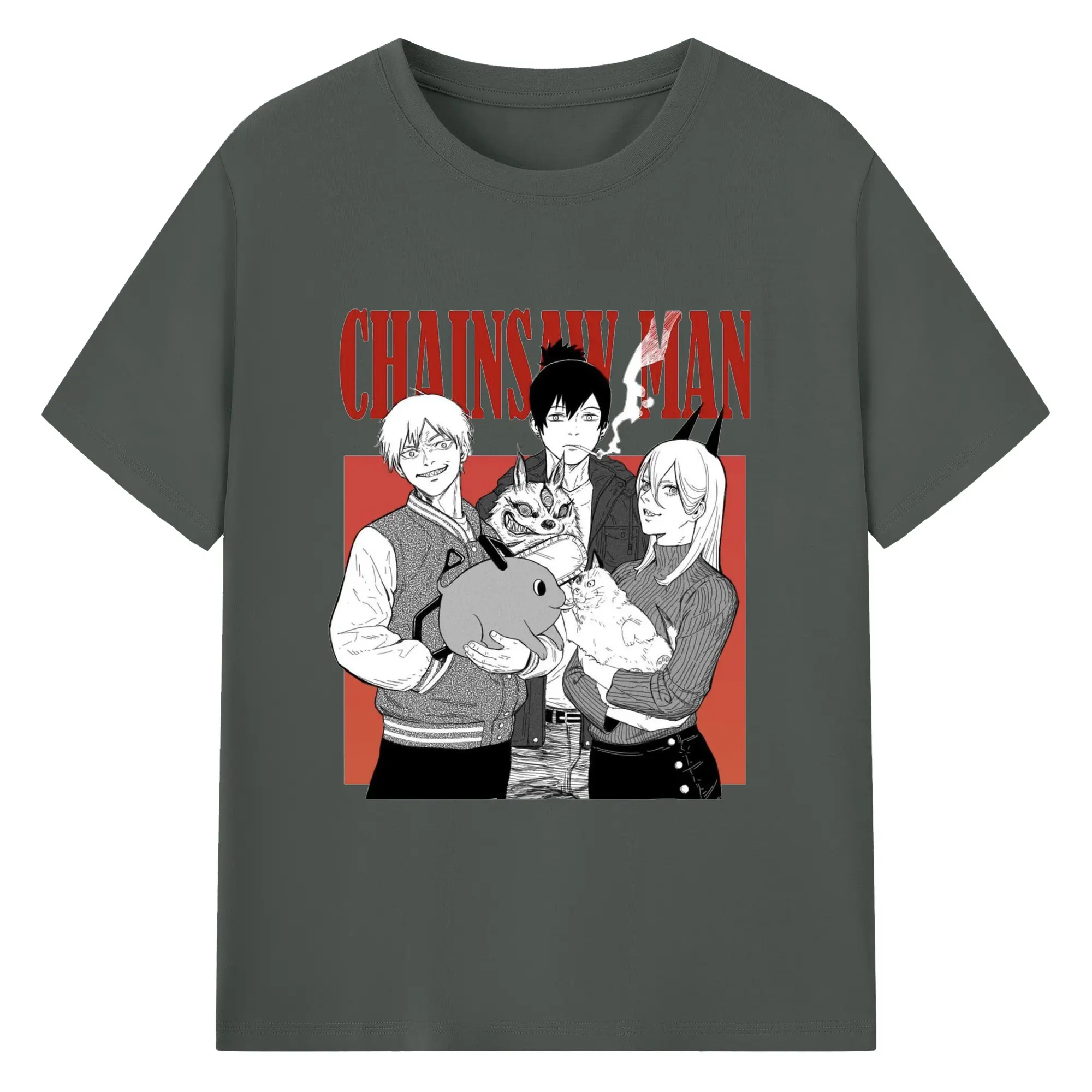 チェンソーマン マキマ推し - 綿100% ヴィンテージ風 半袖Tシャツ ・ フロントプリント ・ 柔らか肌触り ・ 通気性 快適 ・ スポーツ カジュアル 外出用