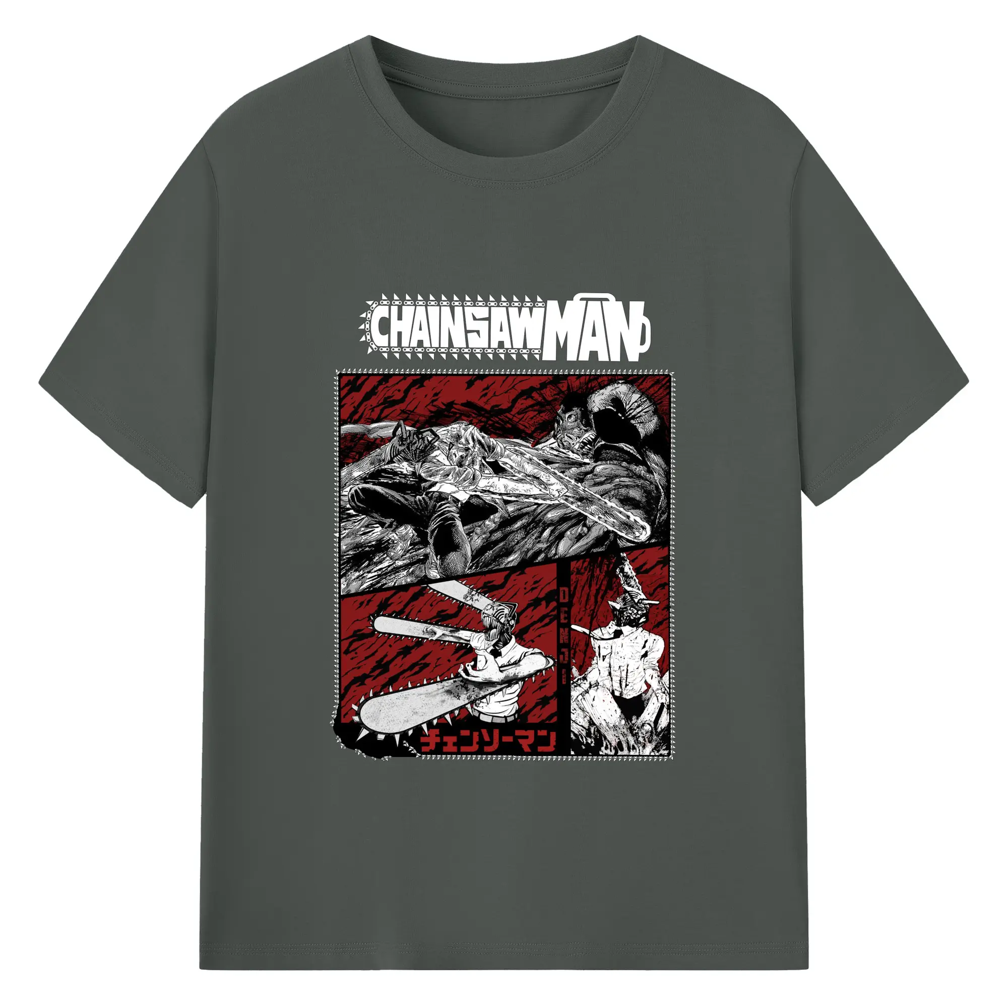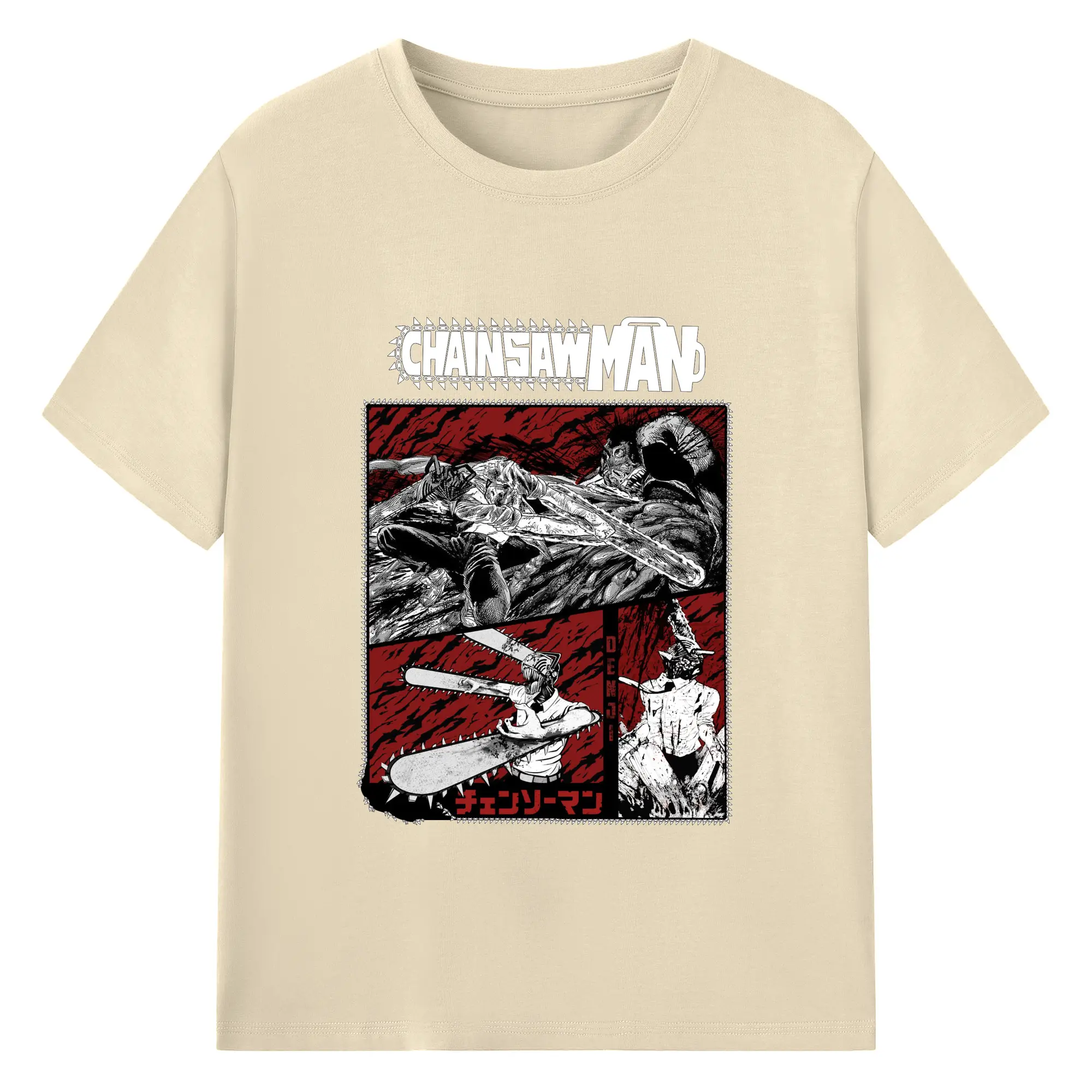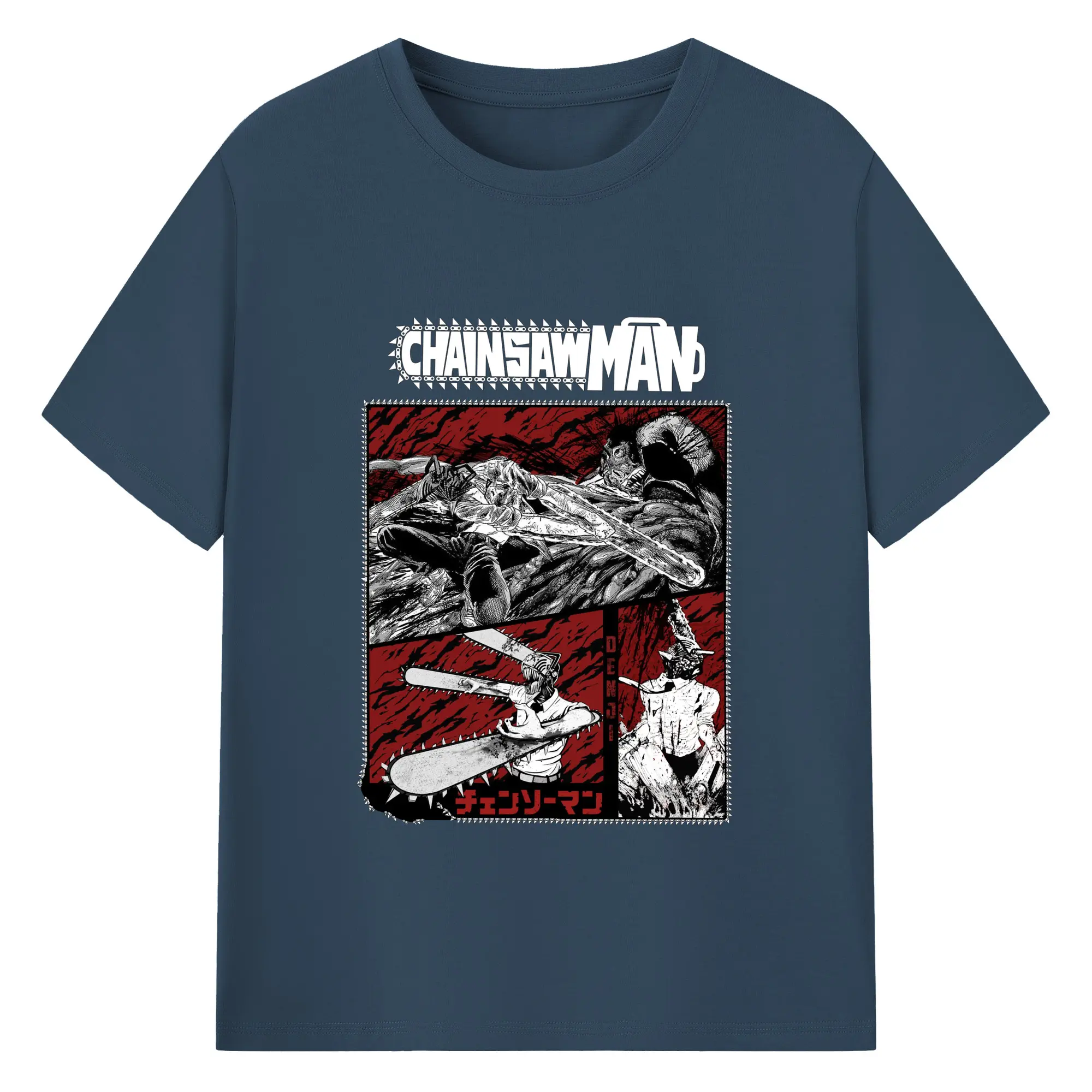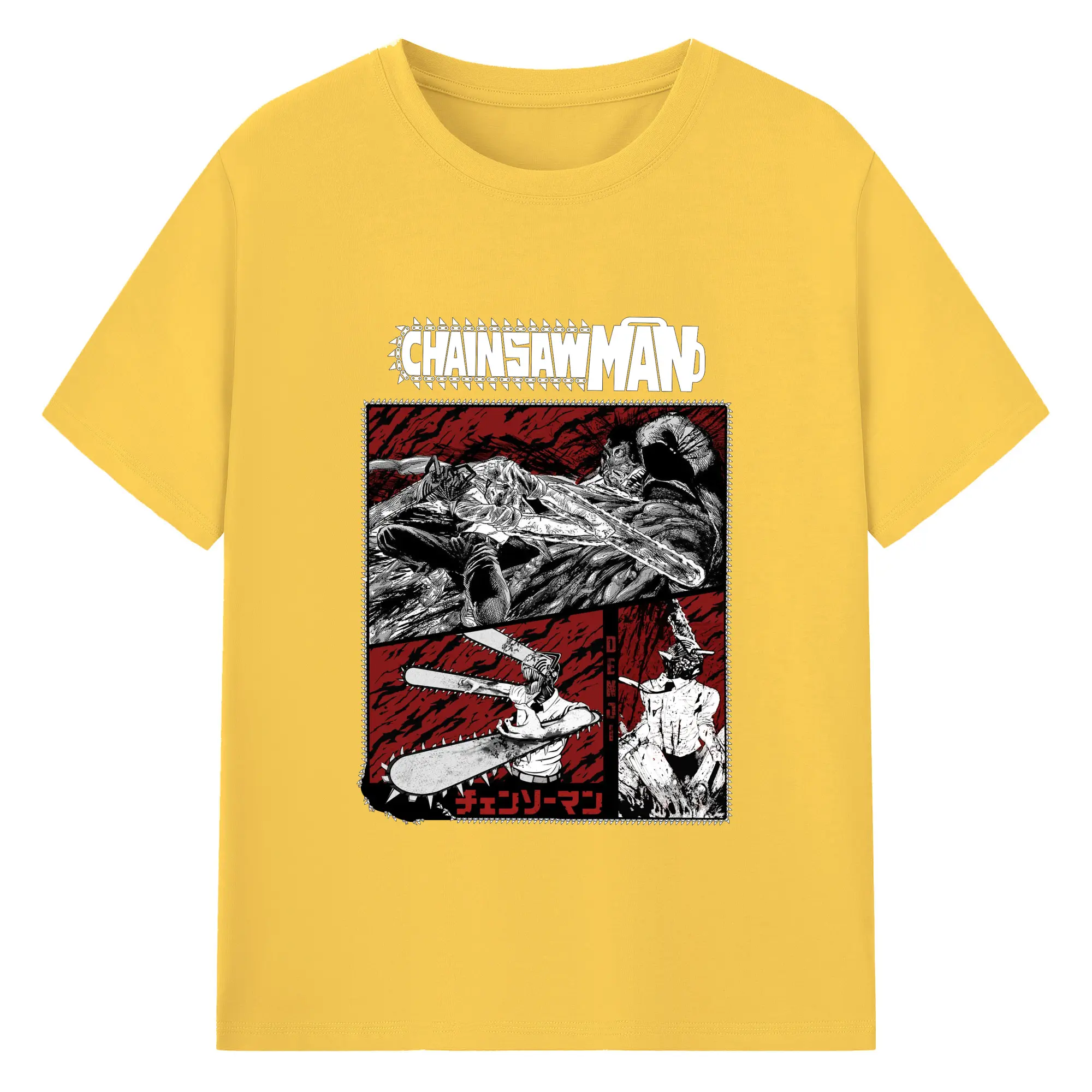 チェンソーマン chainsawman 電ノコ少年 デンジポチタ - 綿100% ヴィンテージ風 半袖Tシャツ ・ フロントプリント ・ 柔らか肌触り ・ 通気性 快適 ・ スポーツ カジュアル 外出用