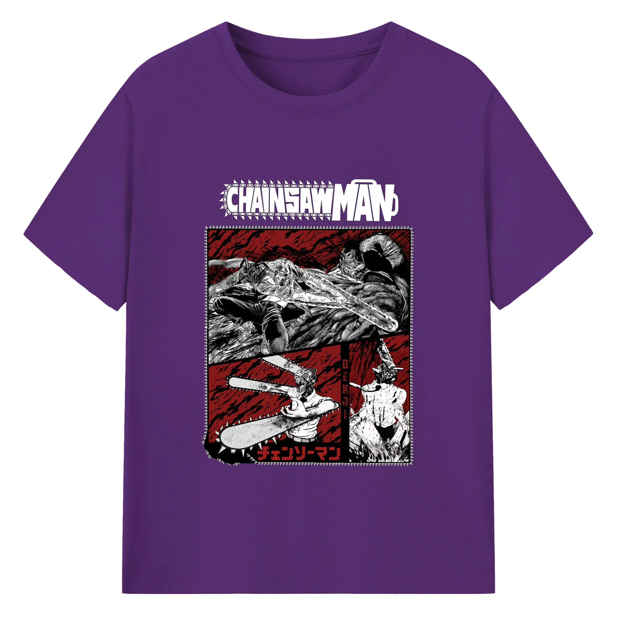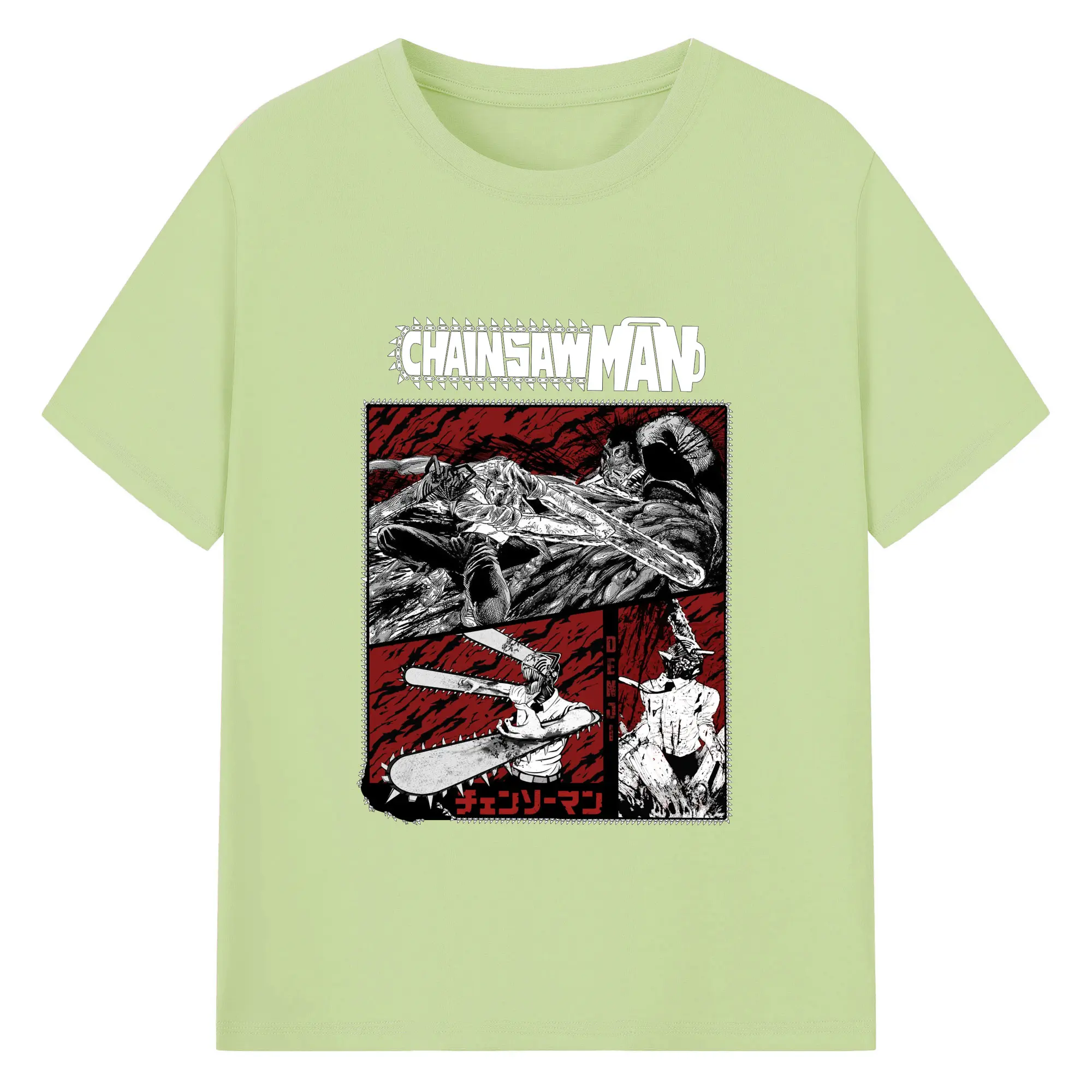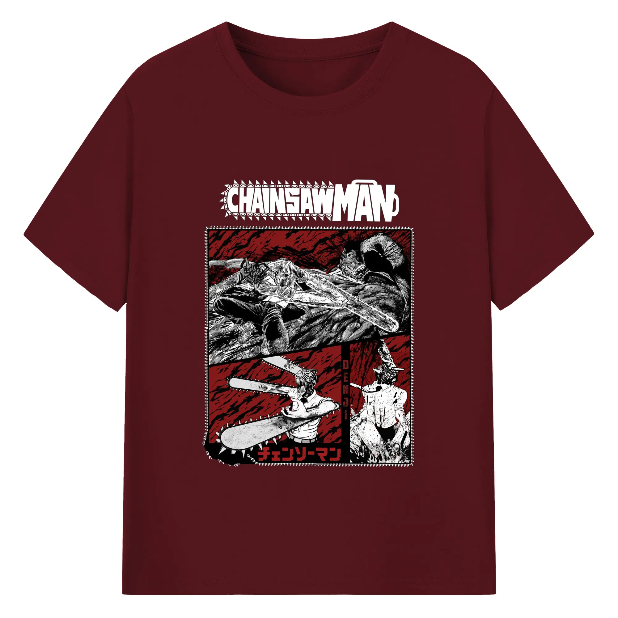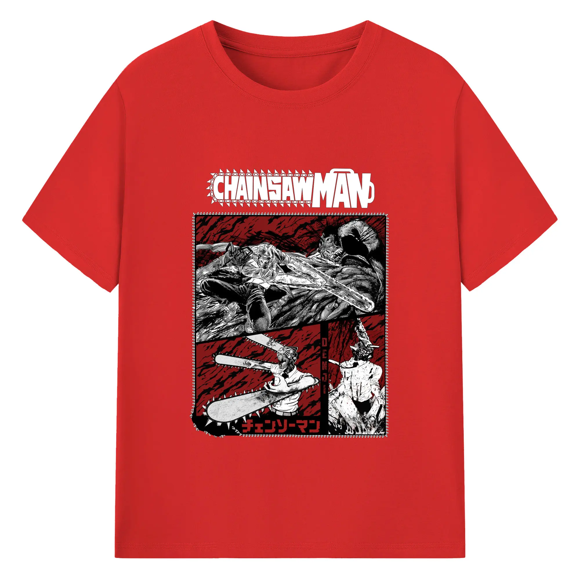 チェンソーマン chainsawman 電ノコ少年 デンジポチタ - 綿100% ヴィンテージ風 半袖Tシャツ ・ フロントプリント ・ 柔らか肌触り ・ 通気性 快適 ・ スポーツ カジュアル 外出用