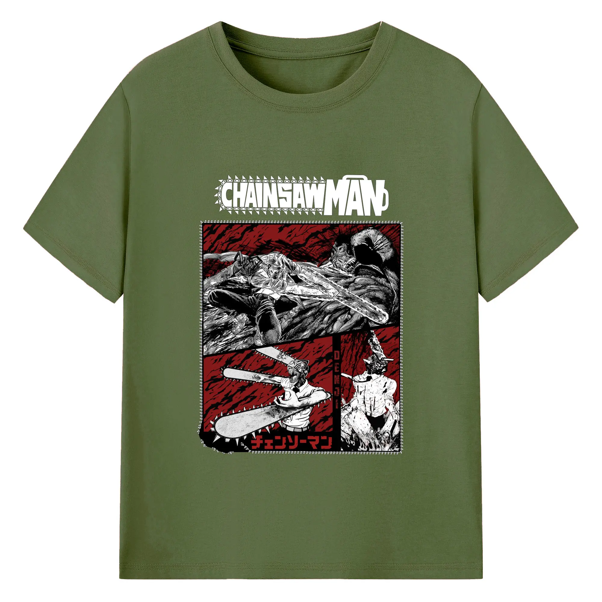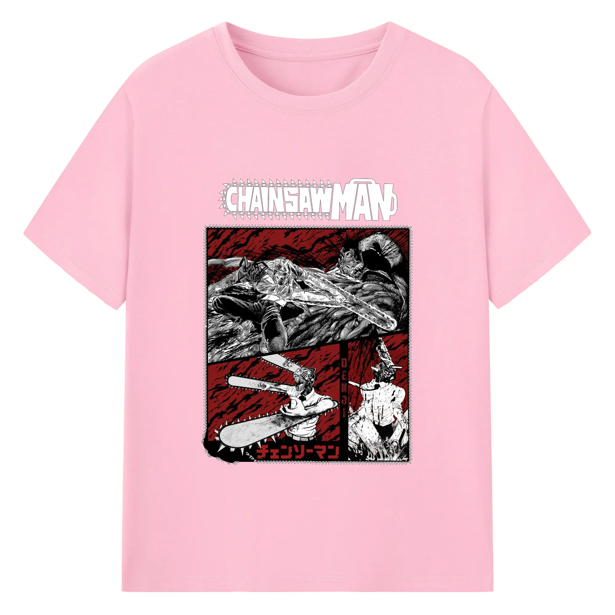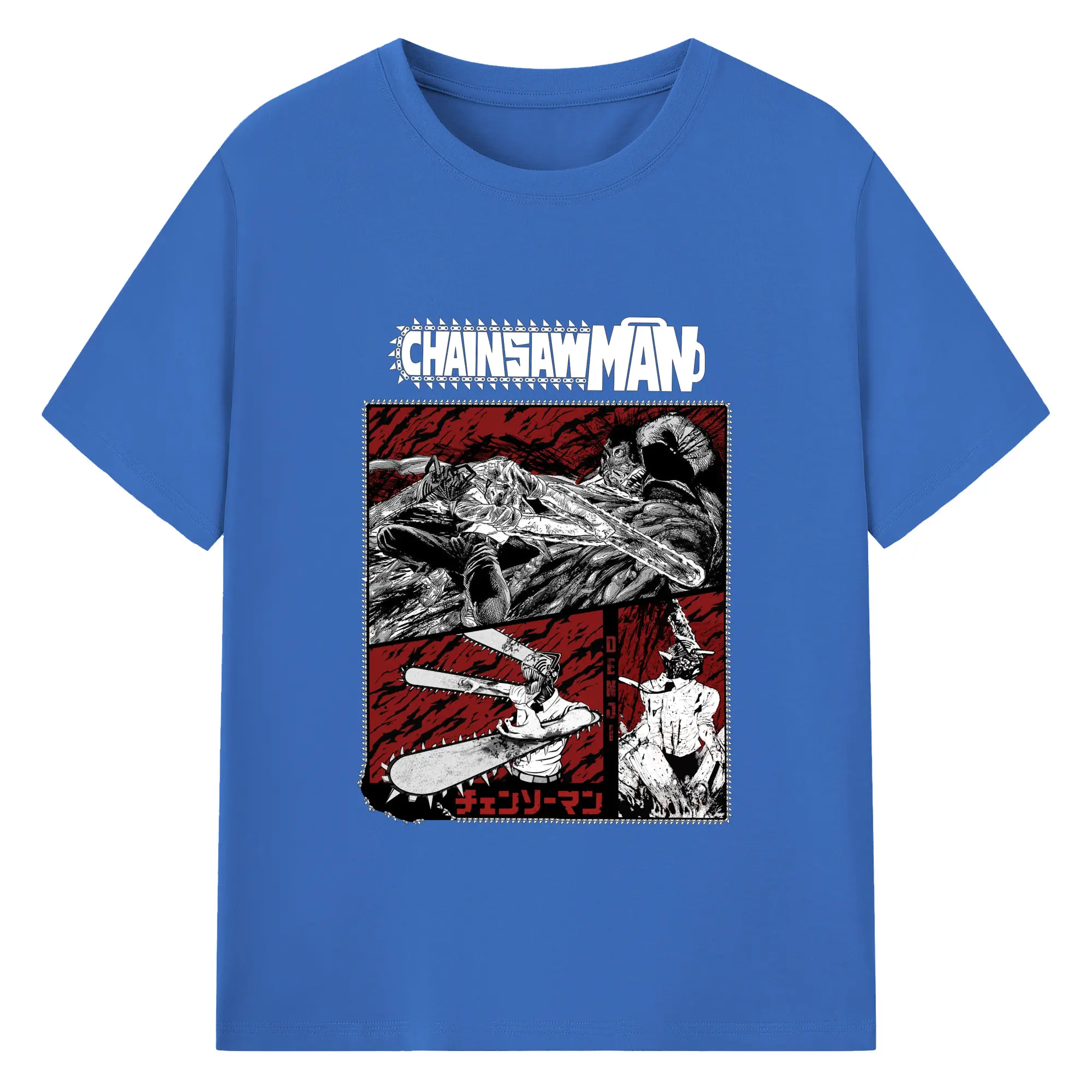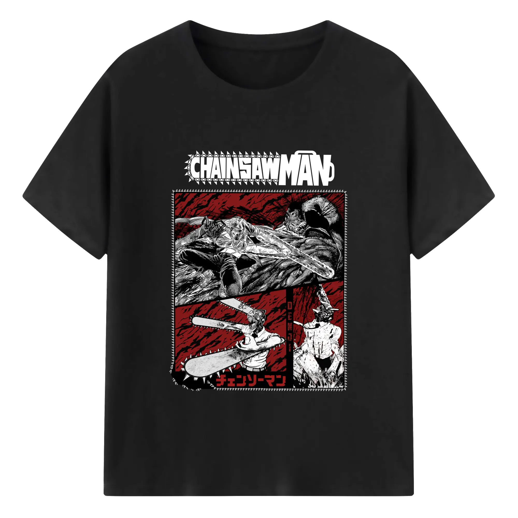 チェンソーマン chainsawman 電ノコ少年 デンジポチタ - 綿100% ヴィンテージ風 半袖Tシャツ ・ フロントプリント ・ 柔らか肌触り ・ 通気性 快適 ・ スポーツ カジュアル 外出用